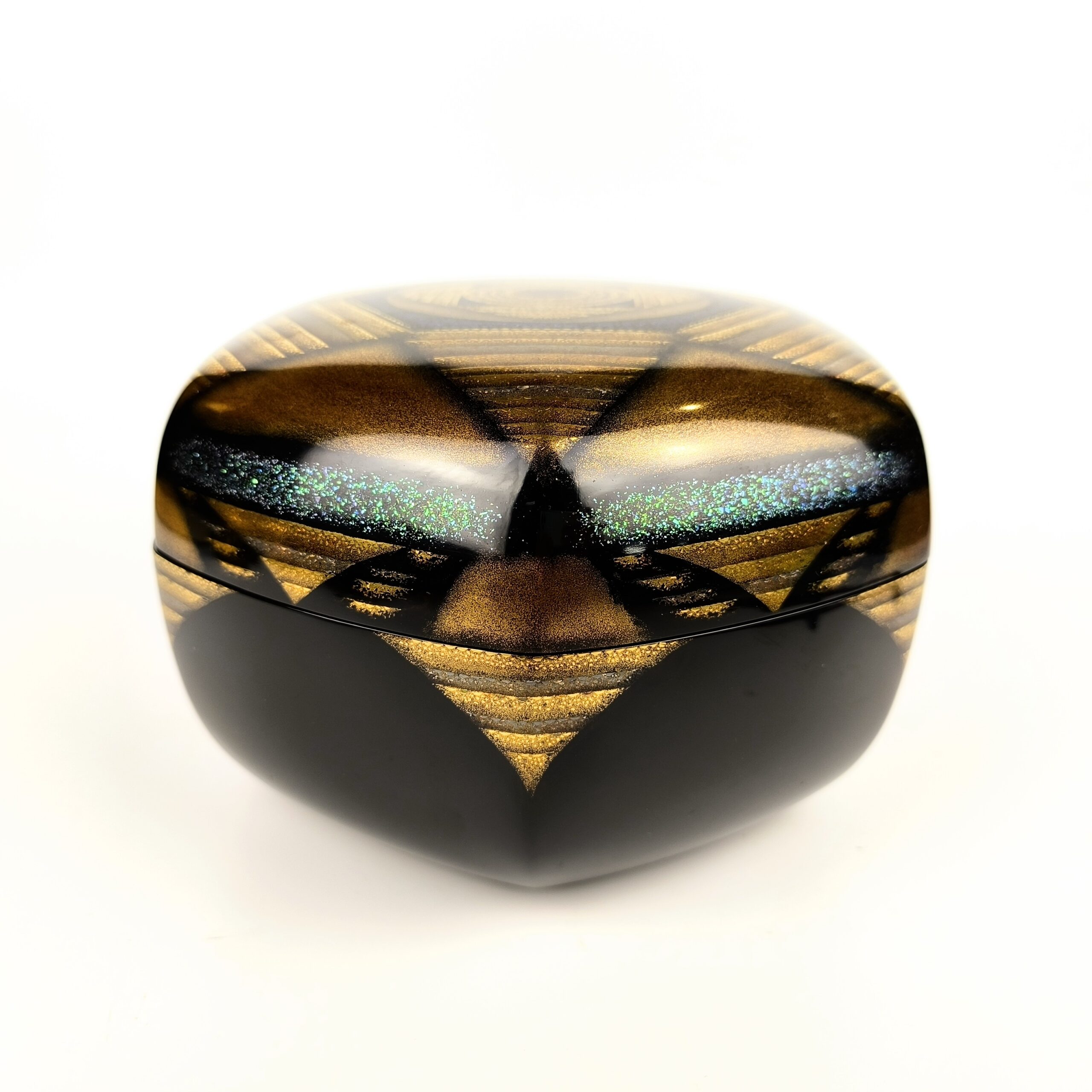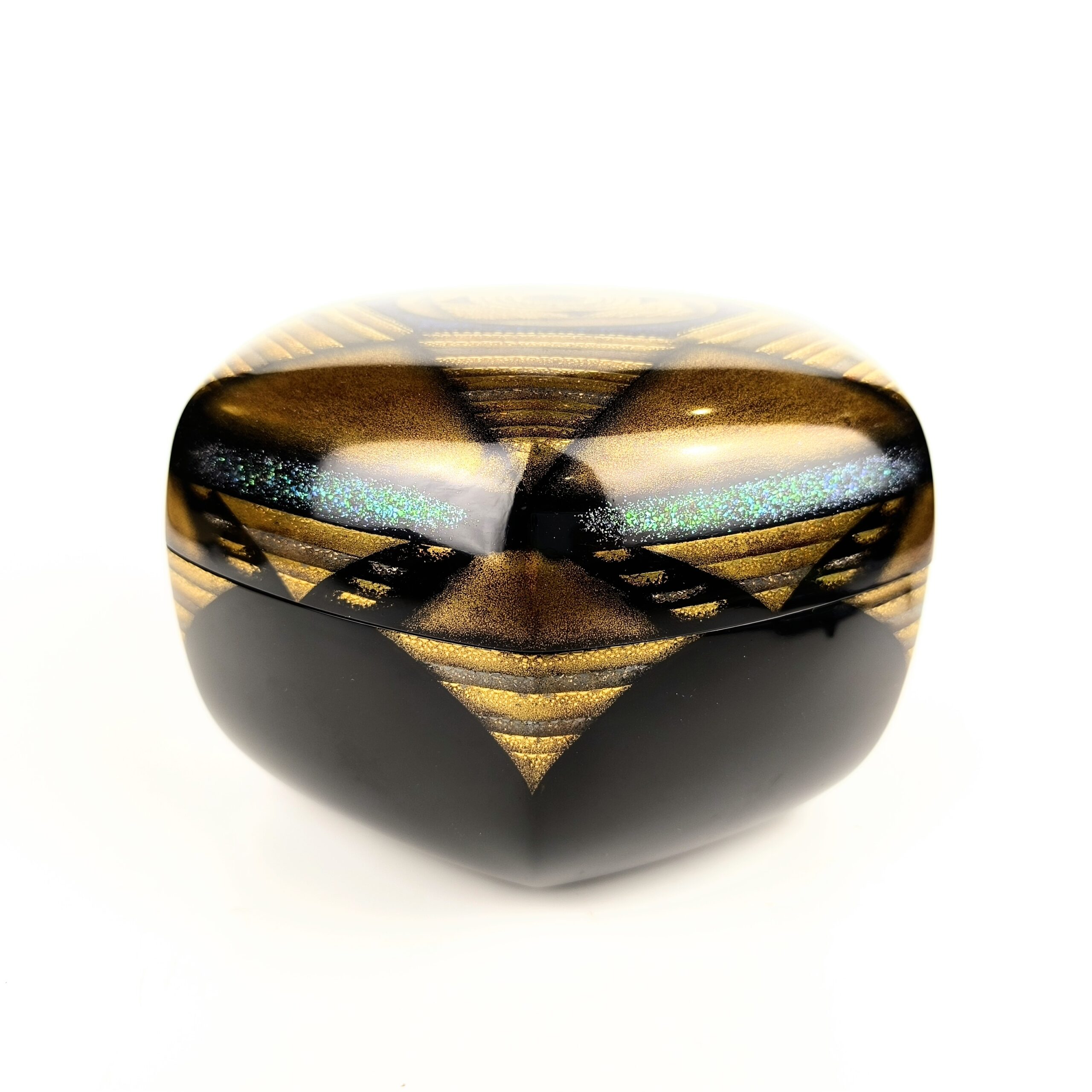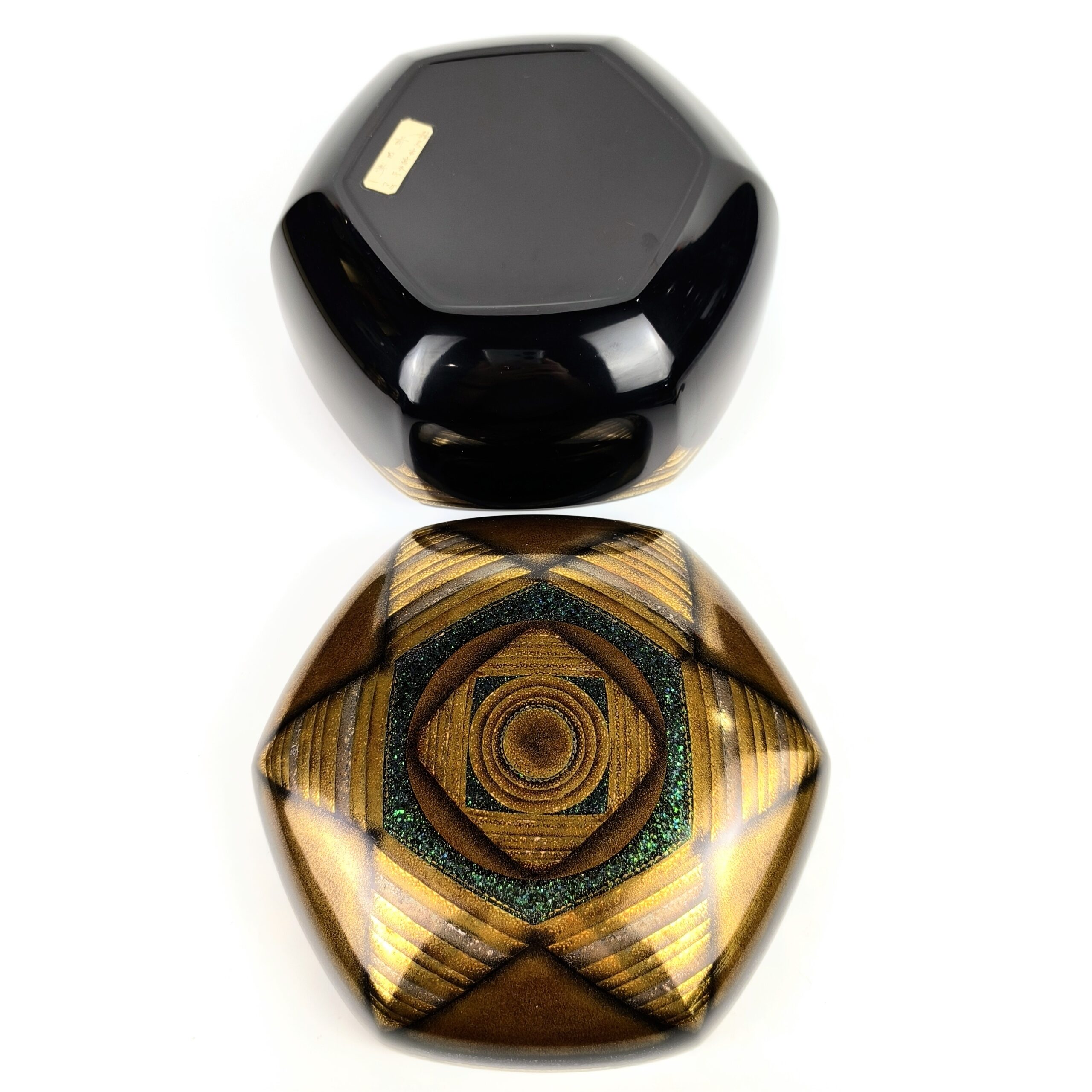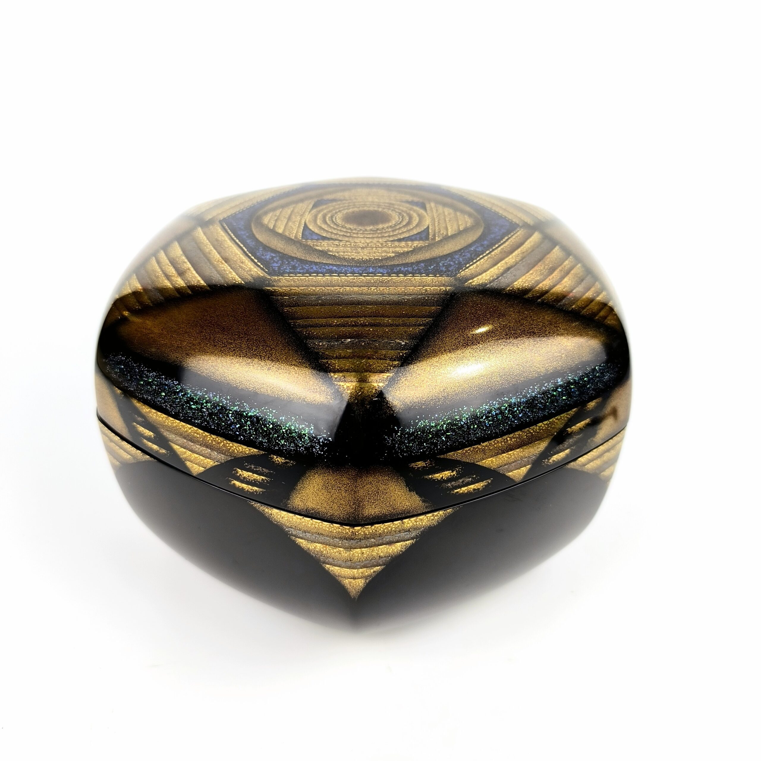 蒔絵(まきえ)とは漆工芸における代表的な加飾技法の一つで、漆で模様を描き、乾く前に金銀の粉(金属粉)などを「蒔く(まく)」ことで定着させ、華やかな装飾を施す日本の伝統的な漆工芸技法です。粉を蒔いて絵にすることから「蒔絵」と呼ばれ、漆黒の器体に金銀が浮かび上がるような美しい仕上がりになるのが特徴です。