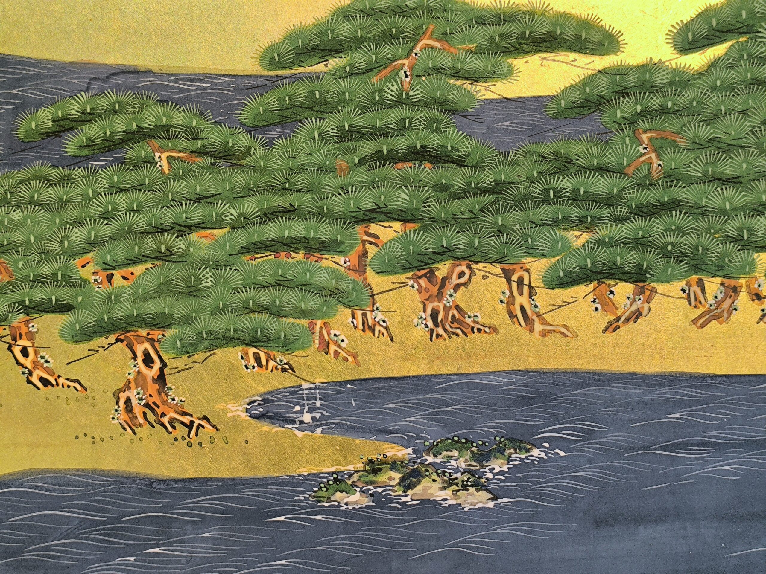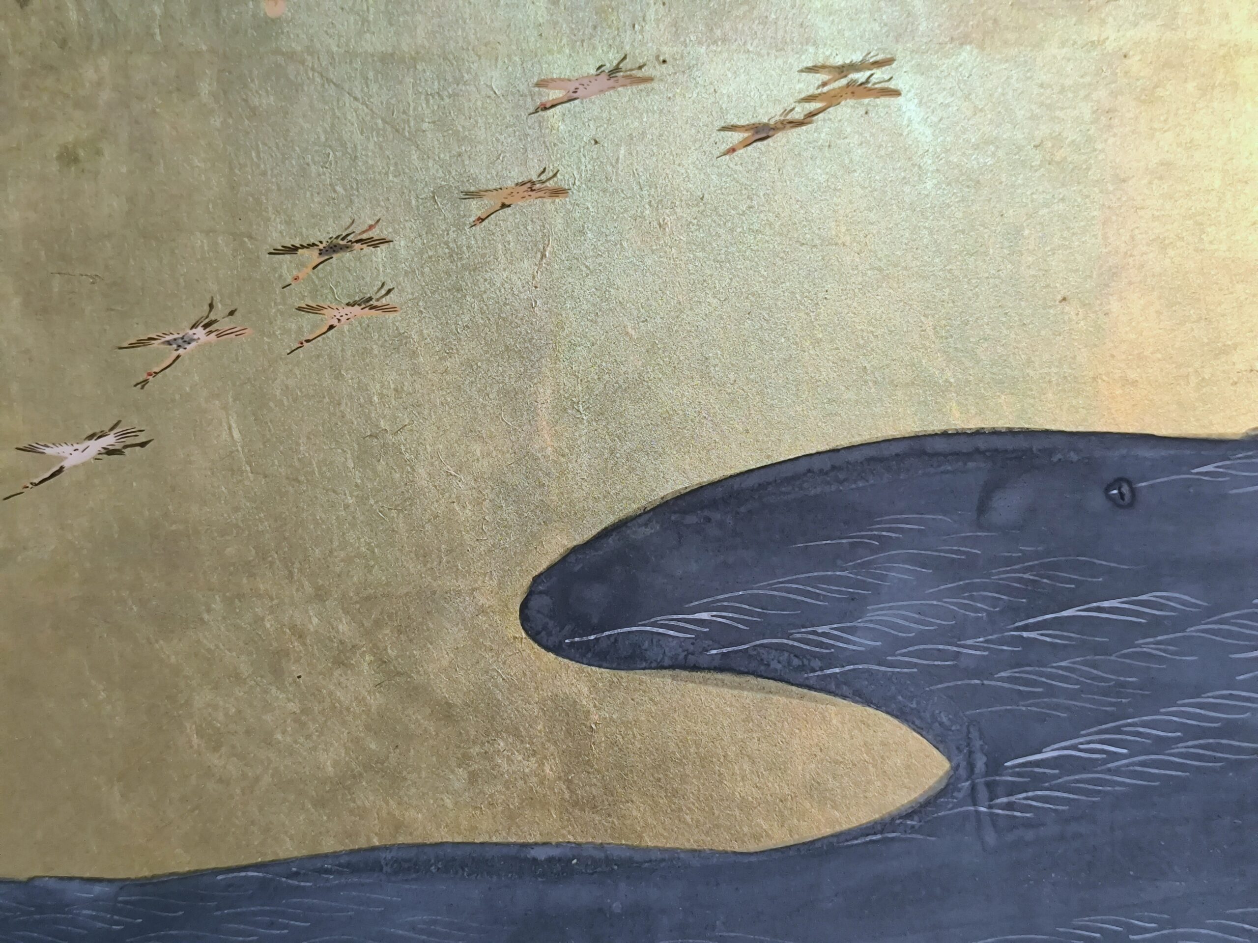 雄大な海原の構図で、波や海風など動きもを感じられる屏風です。