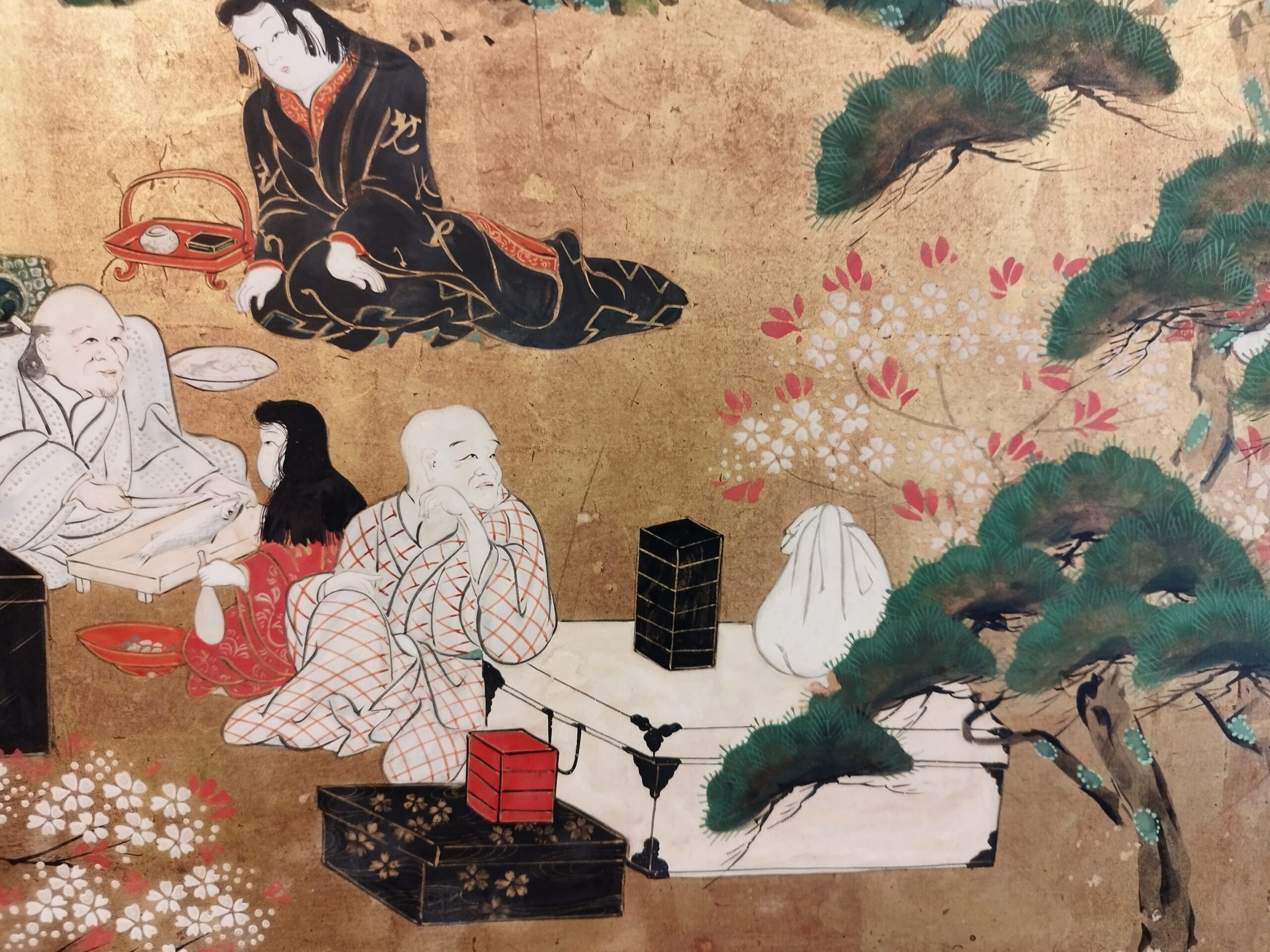 nice to see the scene in cherry blossom season at that old time,painted well for their clothing and expression