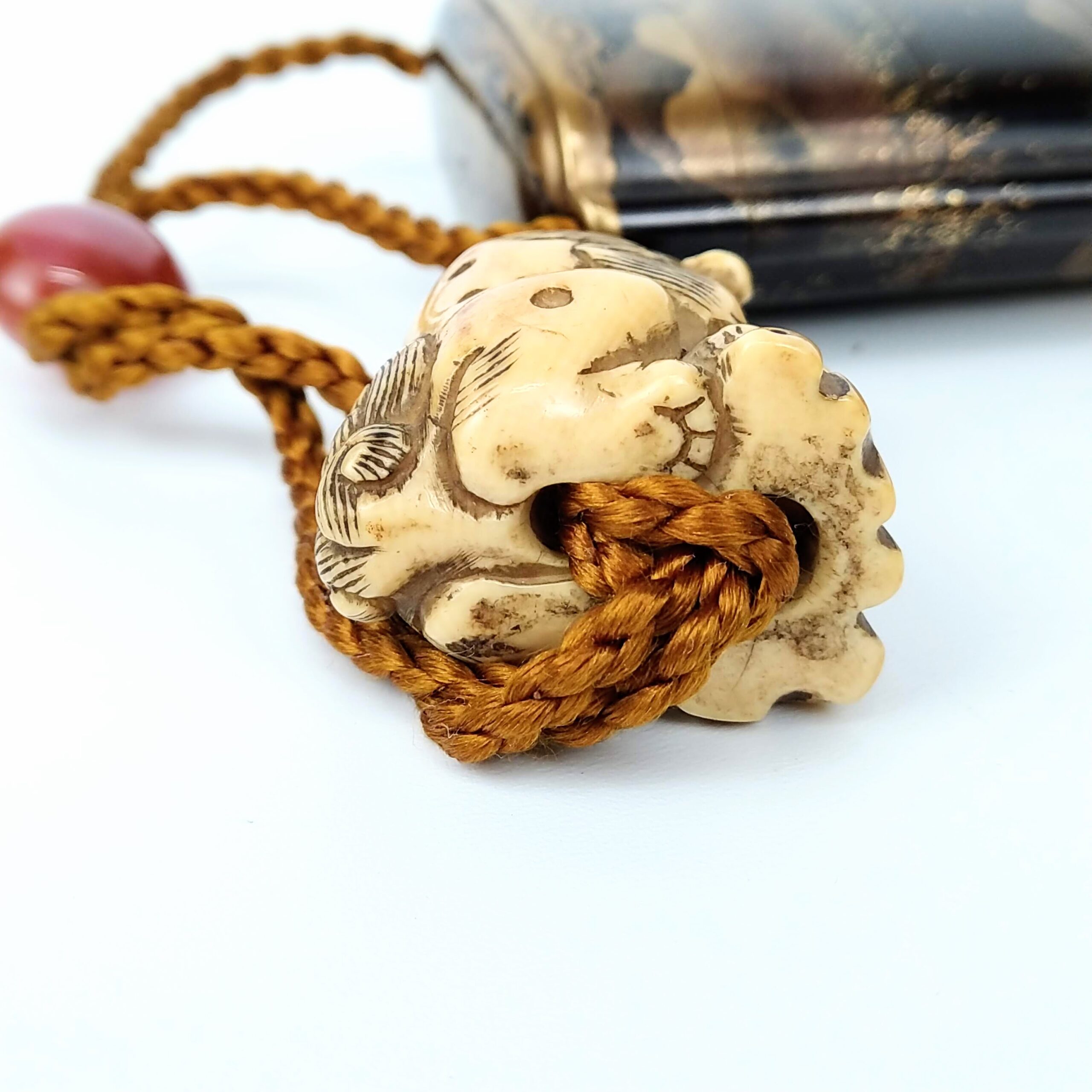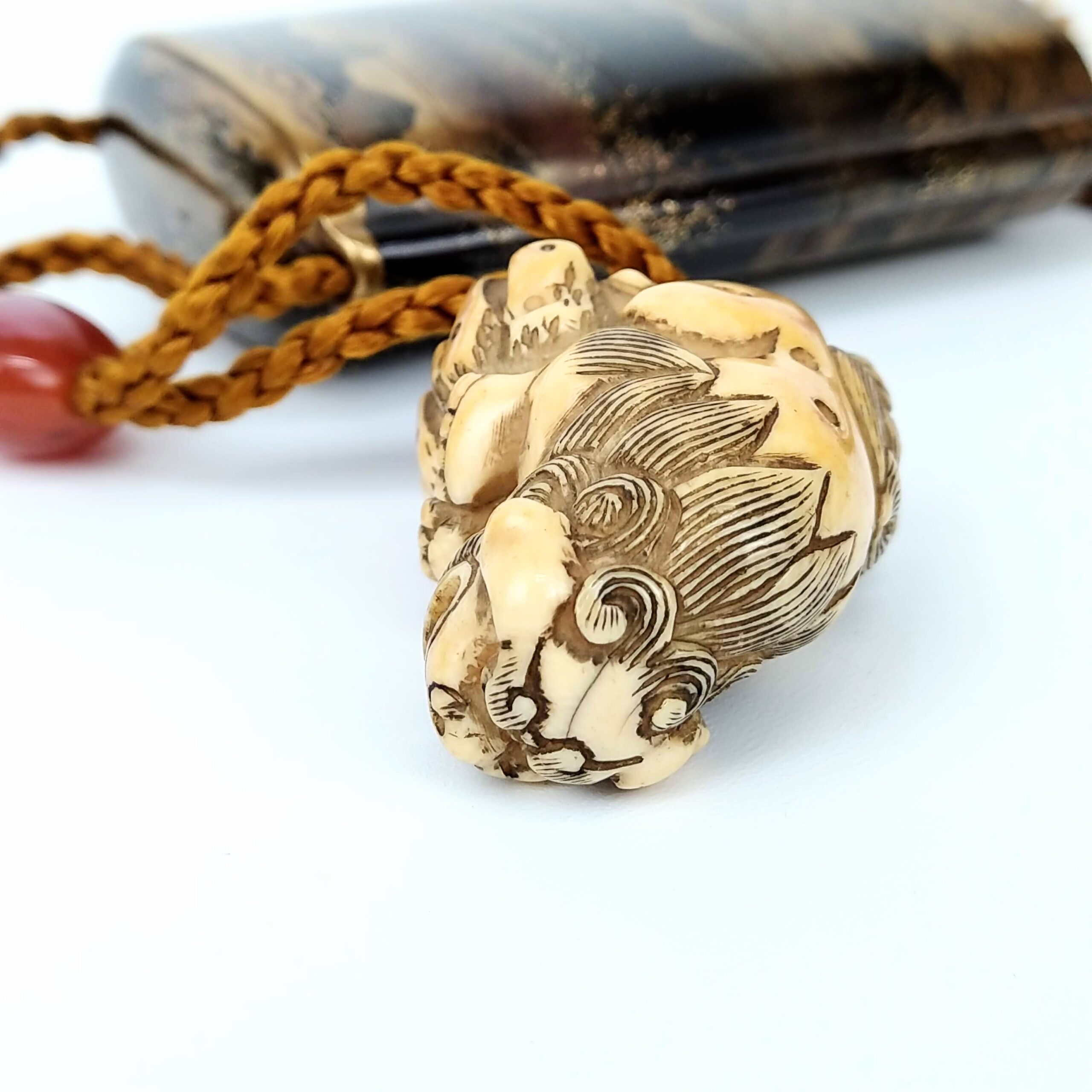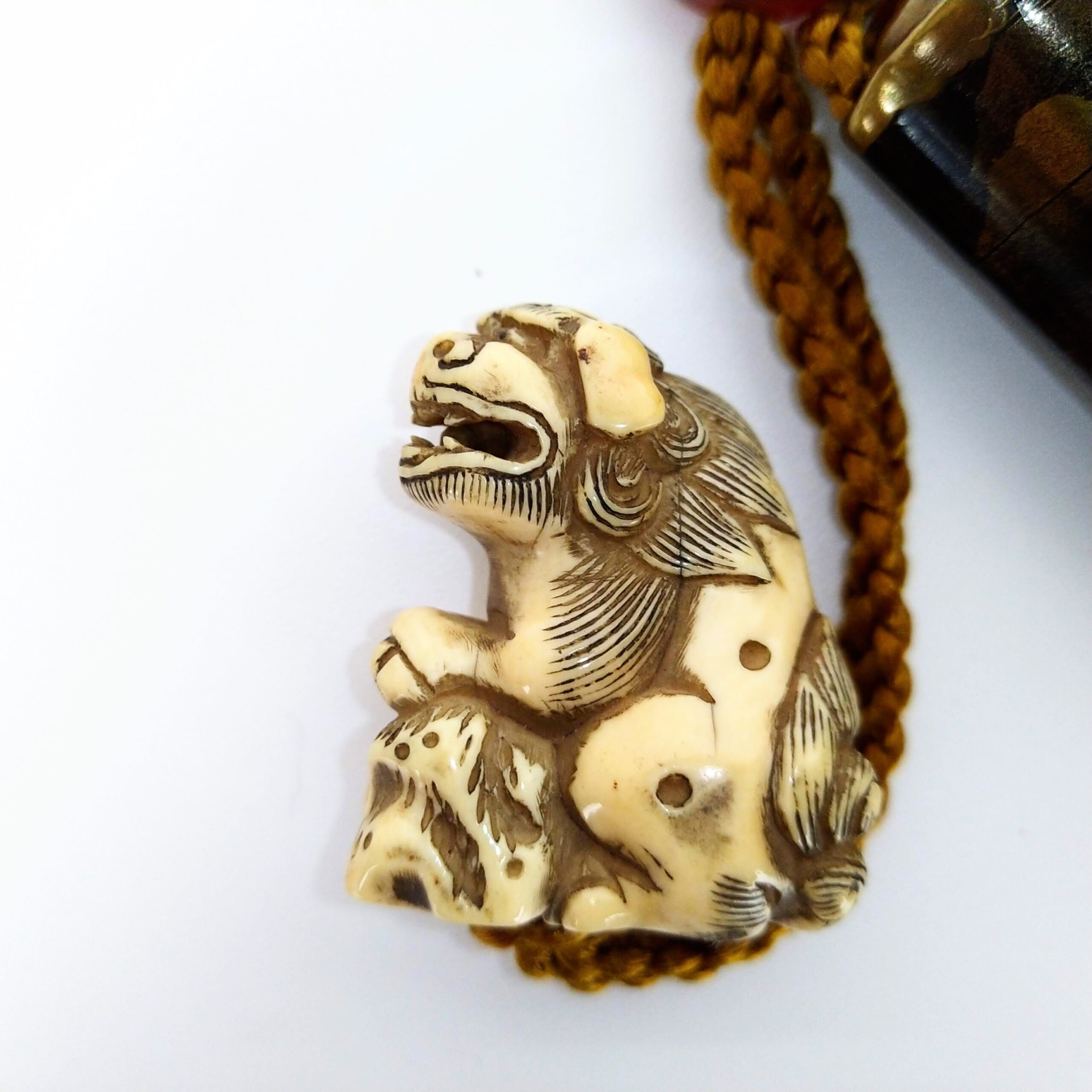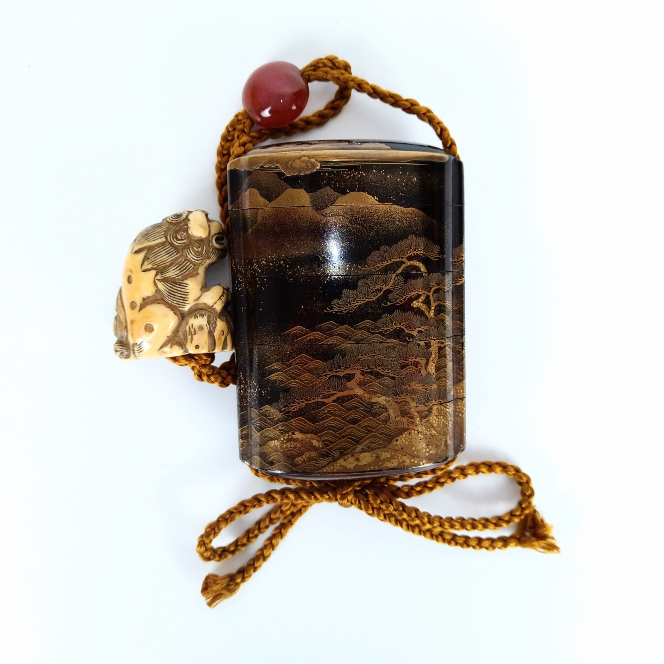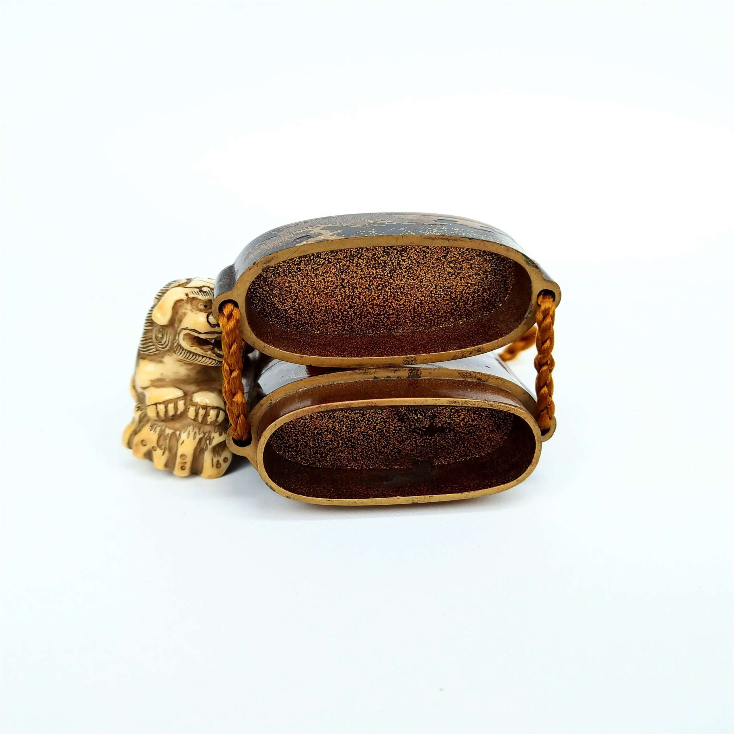 japanese antique 5-Case Lacquer Inro by Koma,Shishi Netsuke