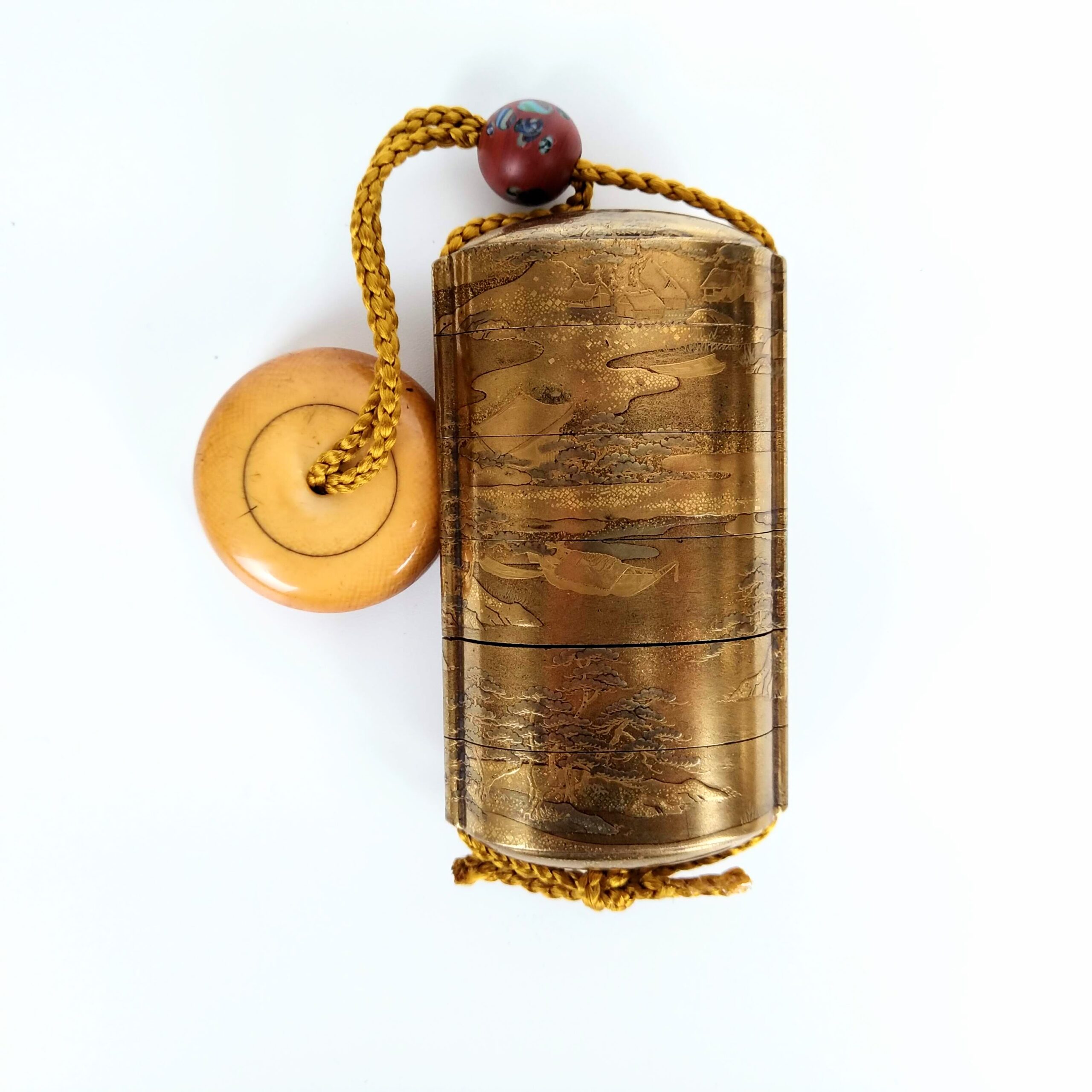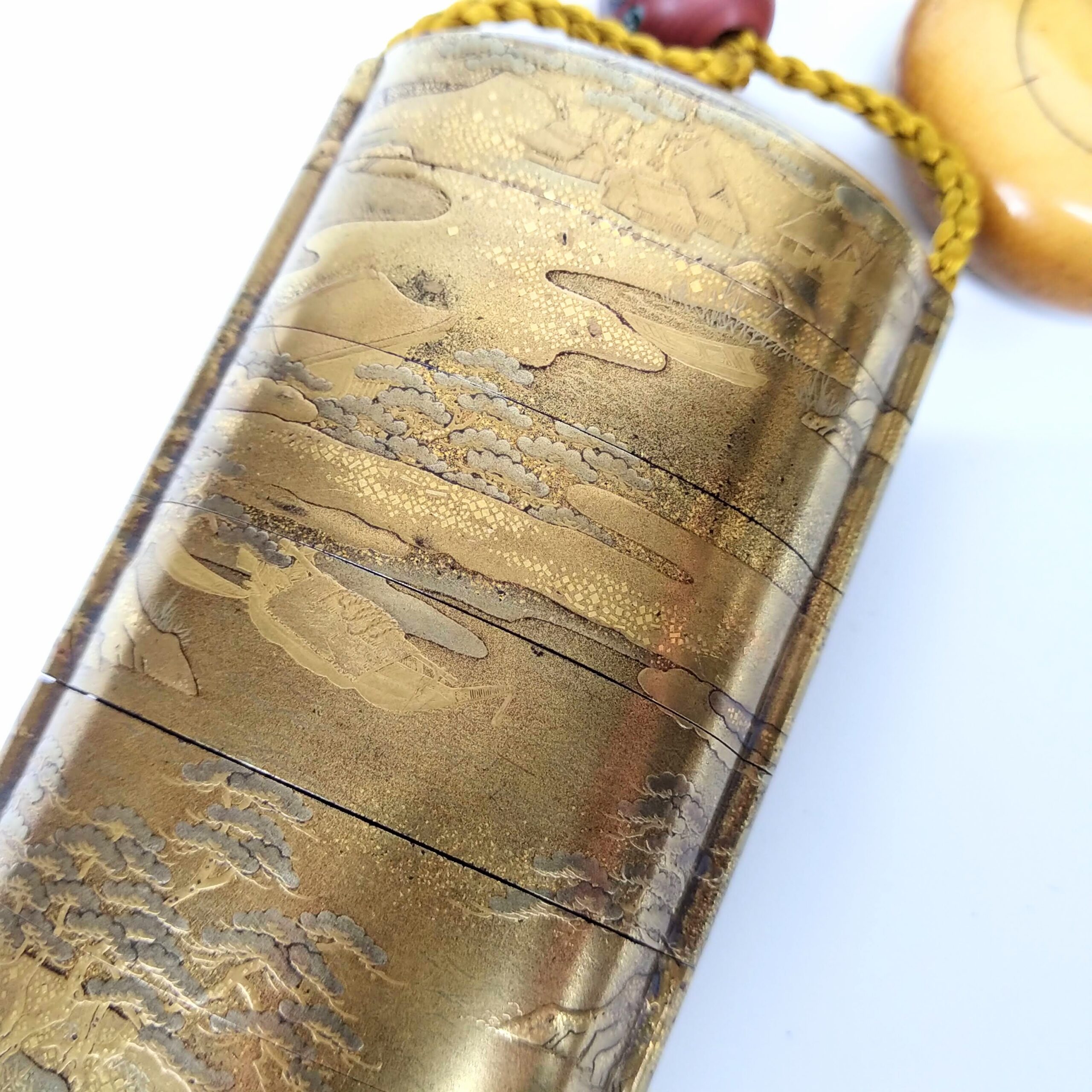 japanese antique 6-case lacquer Inro,glass Ojime,Manju Netsuke