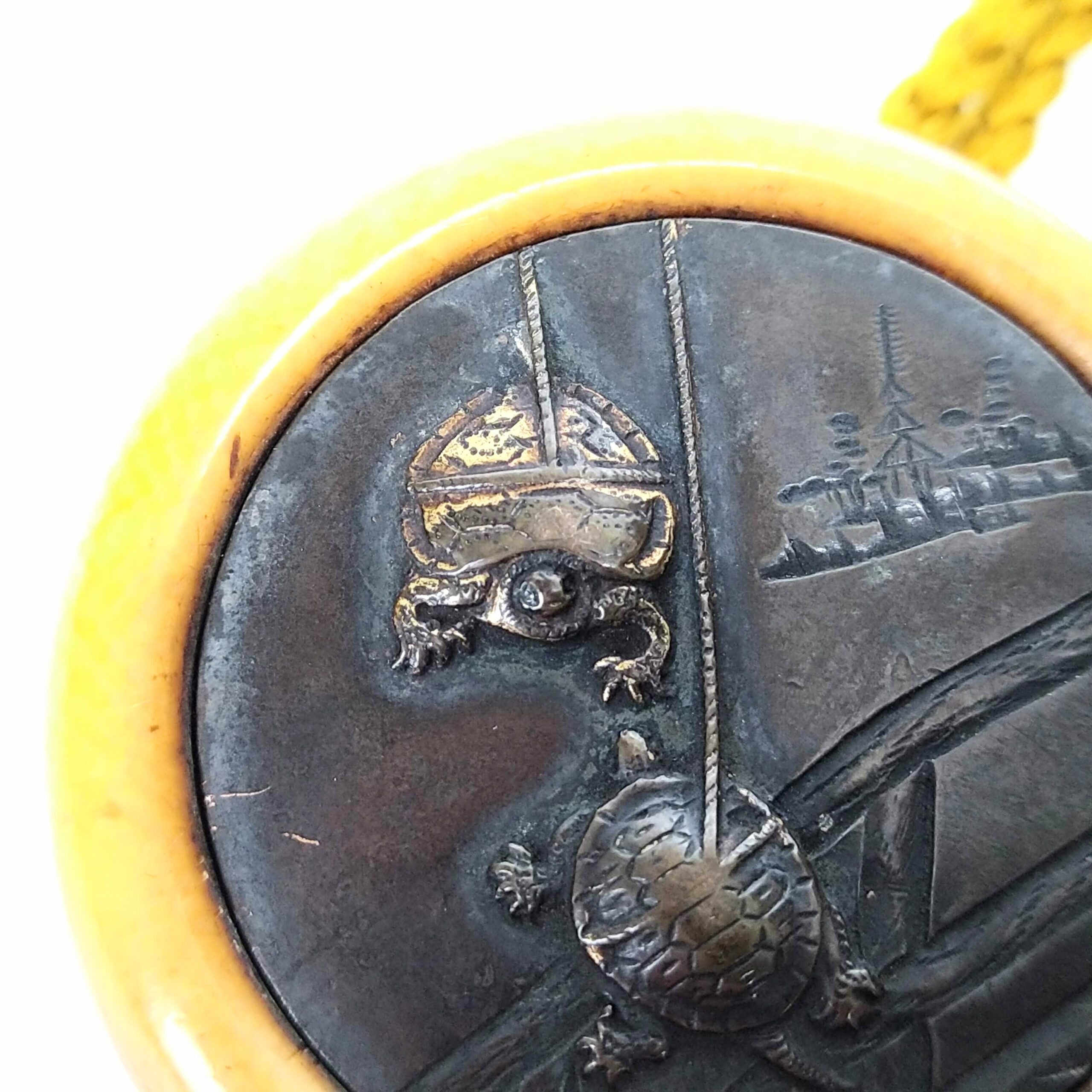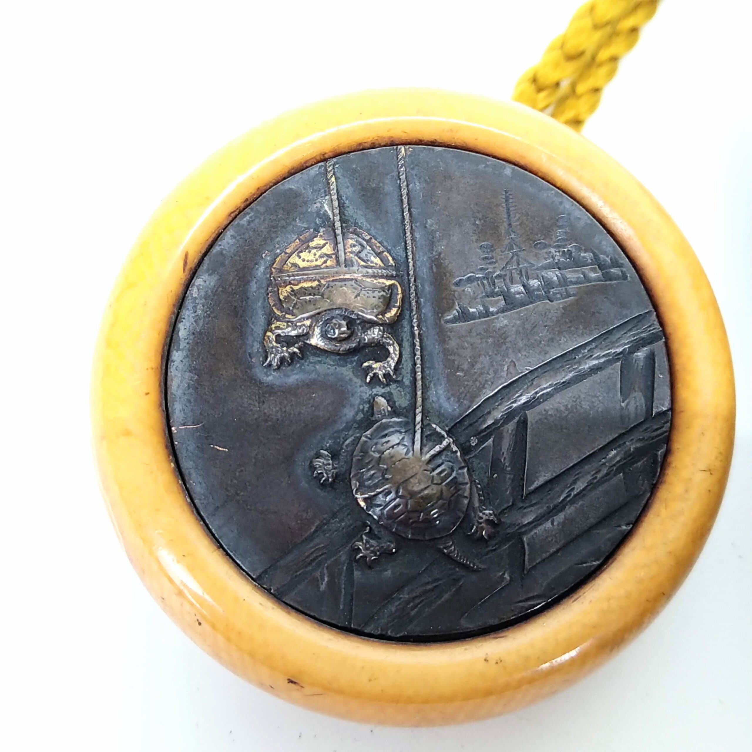 finely work,unique Netsuke with design of hanging turtles.