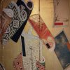 japanese antique 6 hold paper screen painted in ink and color with design of japanese-style books
