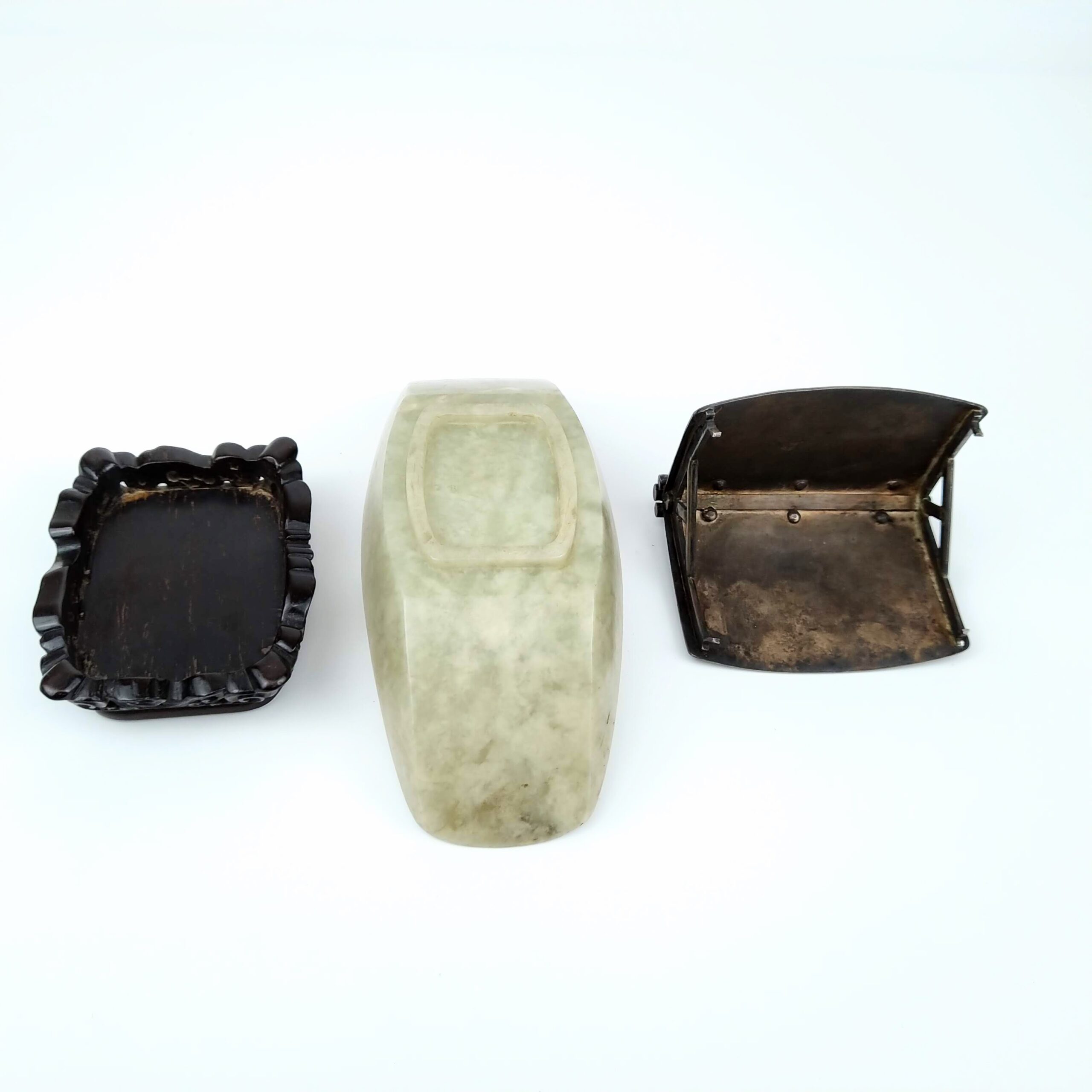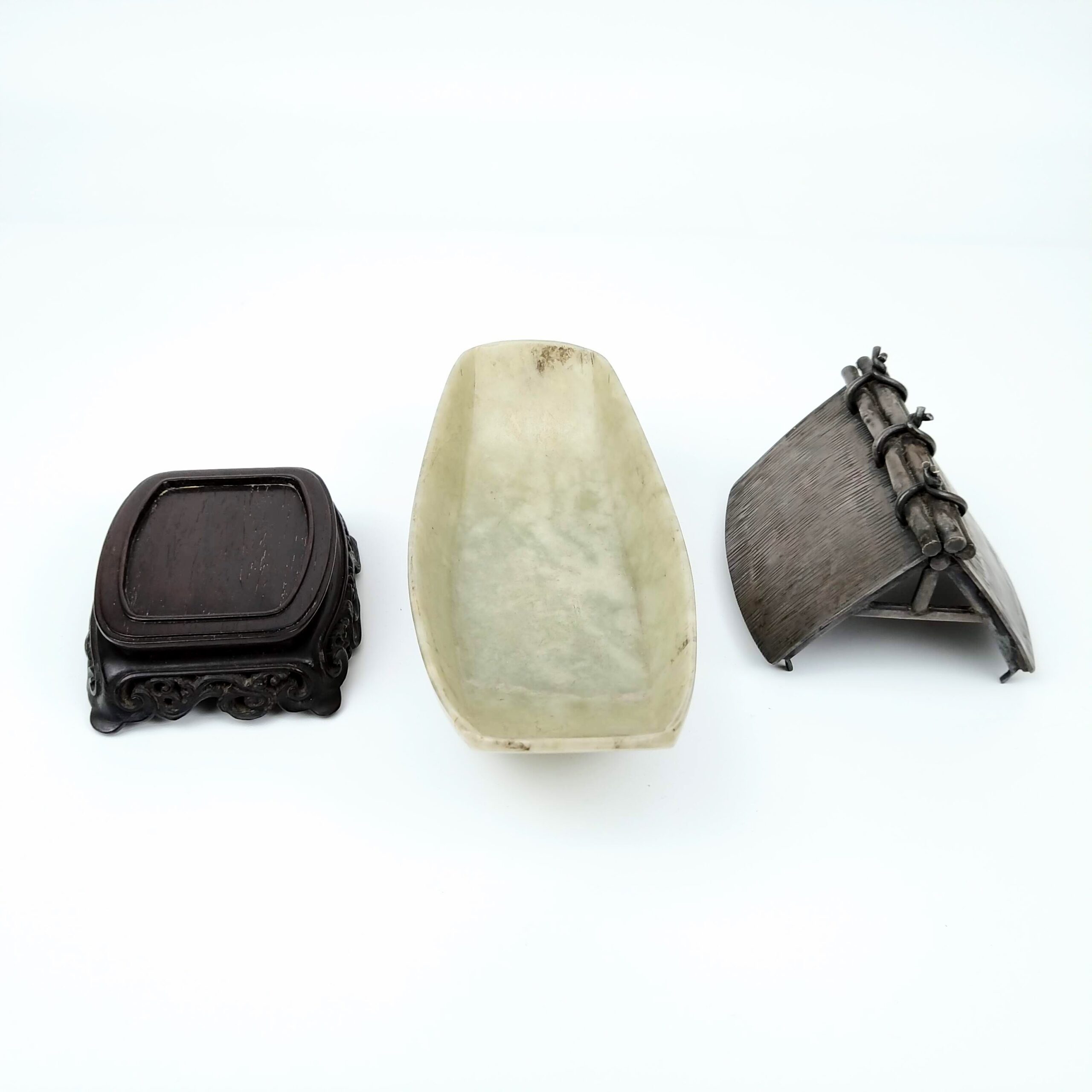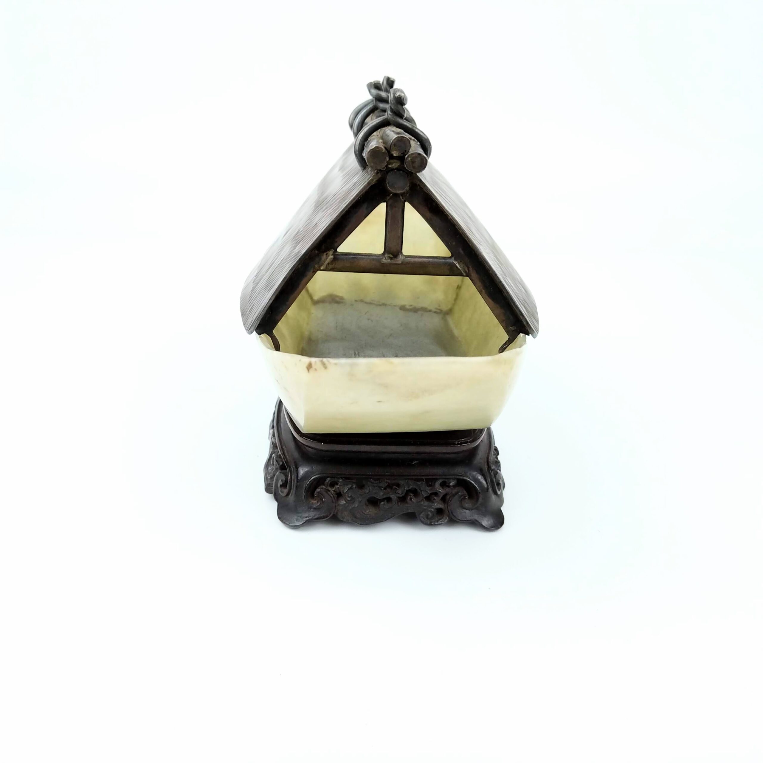 japanese antique jade boat shape incense burner with red sandalwood and silver lamp chimny