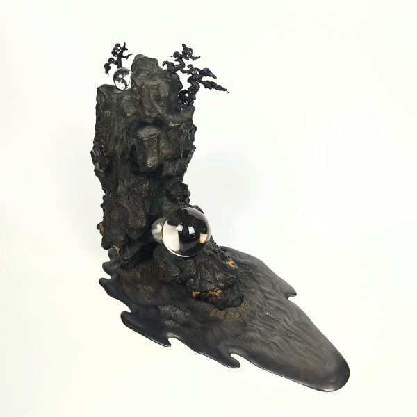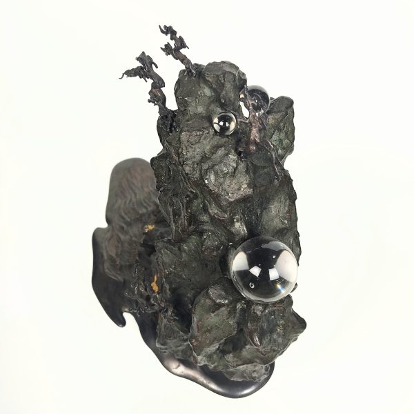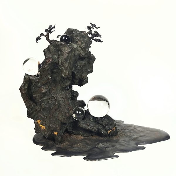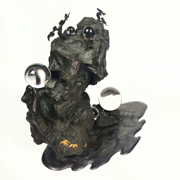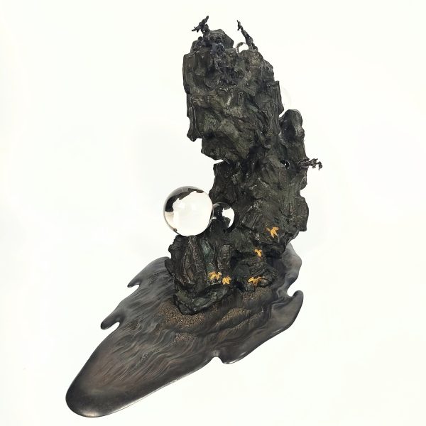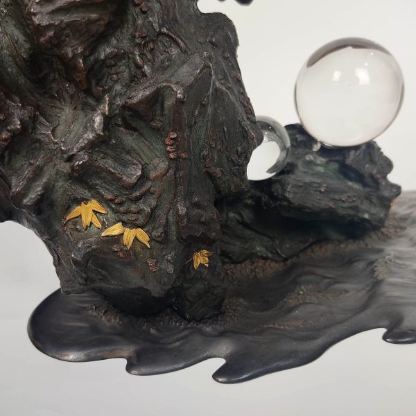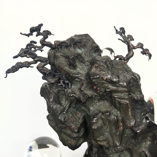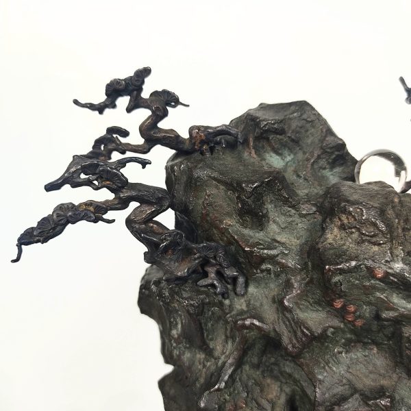 japanese antique Bronze Mt.Horai(treasure mountain) OKIMONO with gold and silver decoration,also crystals by KIBUNDO SHOHEI for ceremony of the emperor TAISHO