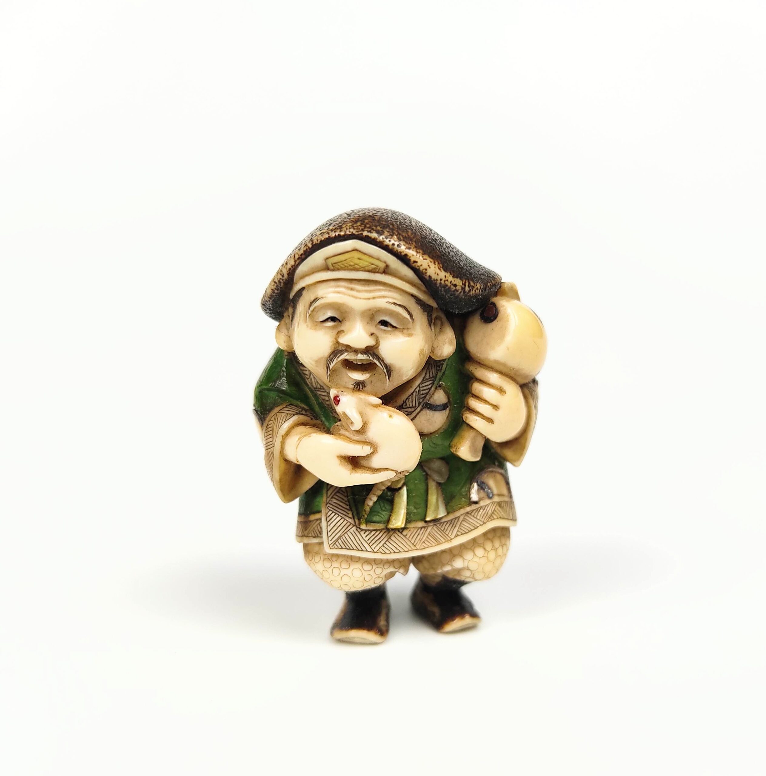 japanese antique carved ivory NETSUKE of DAIKOKU by YASUAKI(HOMEI)
