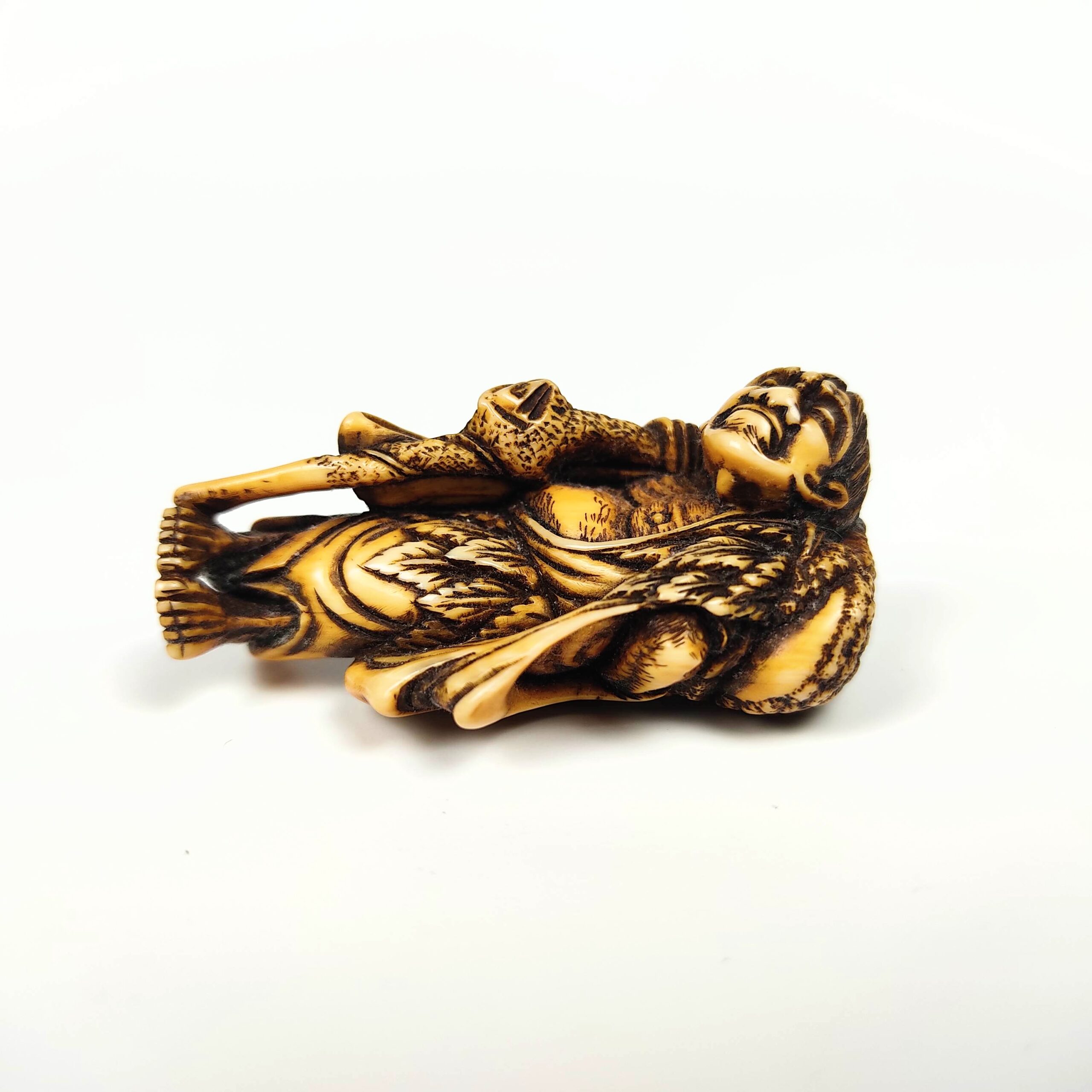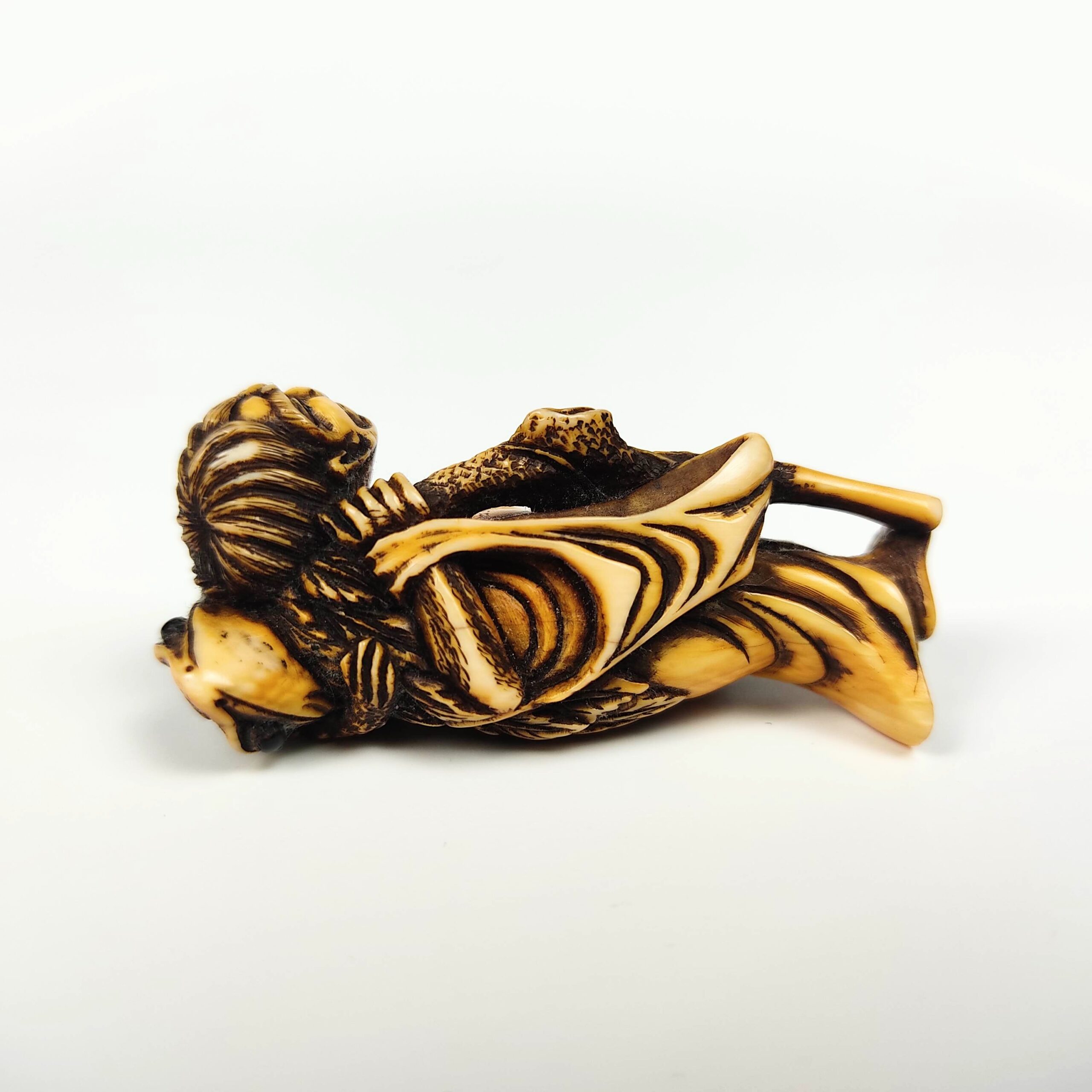 japanese antique carved ivory NETSUKE of toad hermit GAMA SENNIN