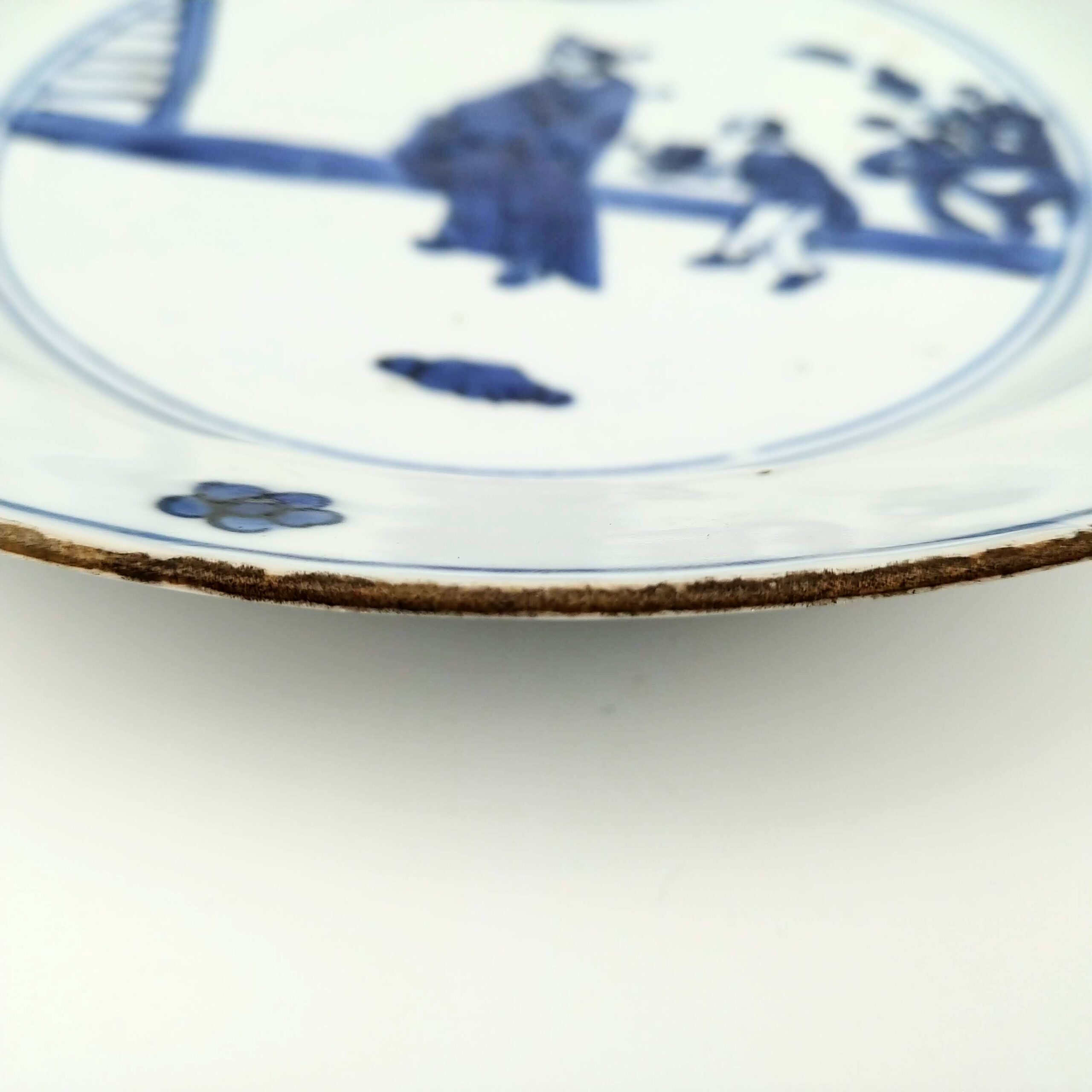 Chinese antique porcelain Ko-Sometsuke dish with design of civilian