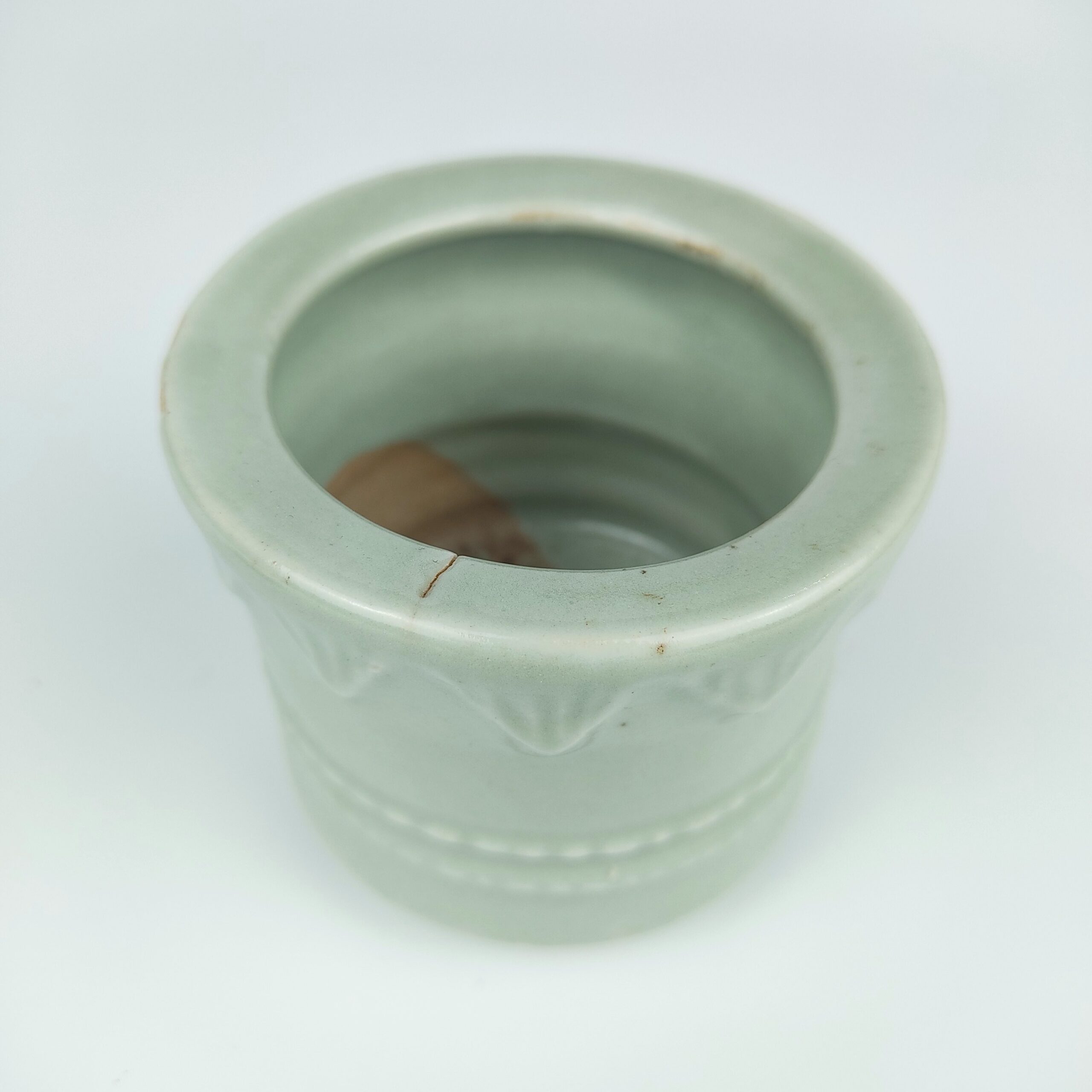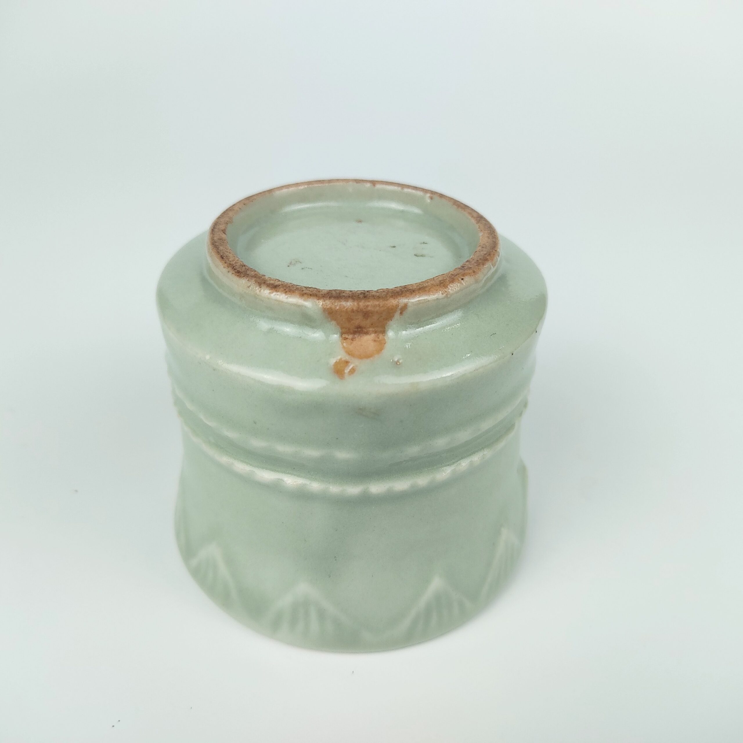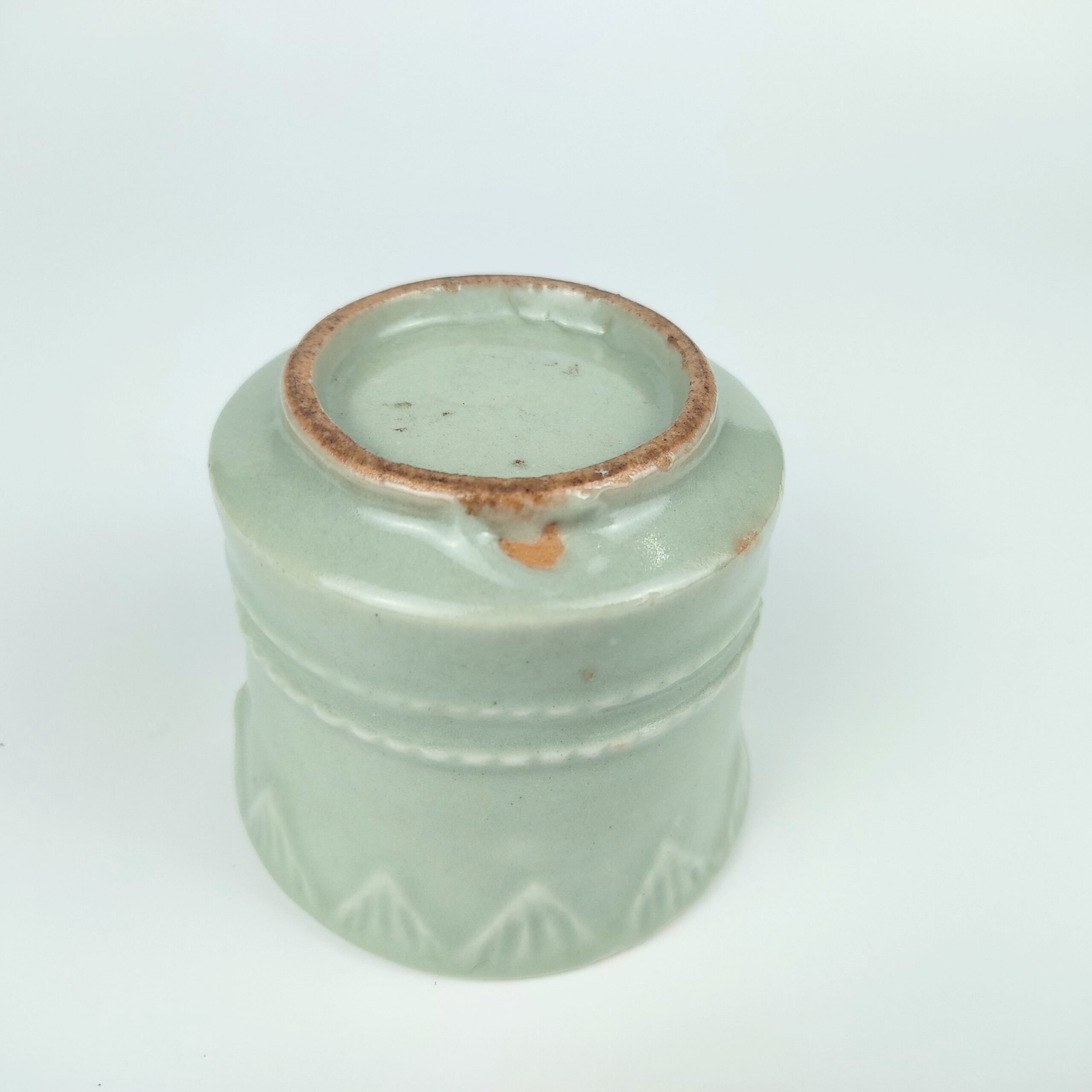 japanese antique Early imari celadon incense burner with design of cord