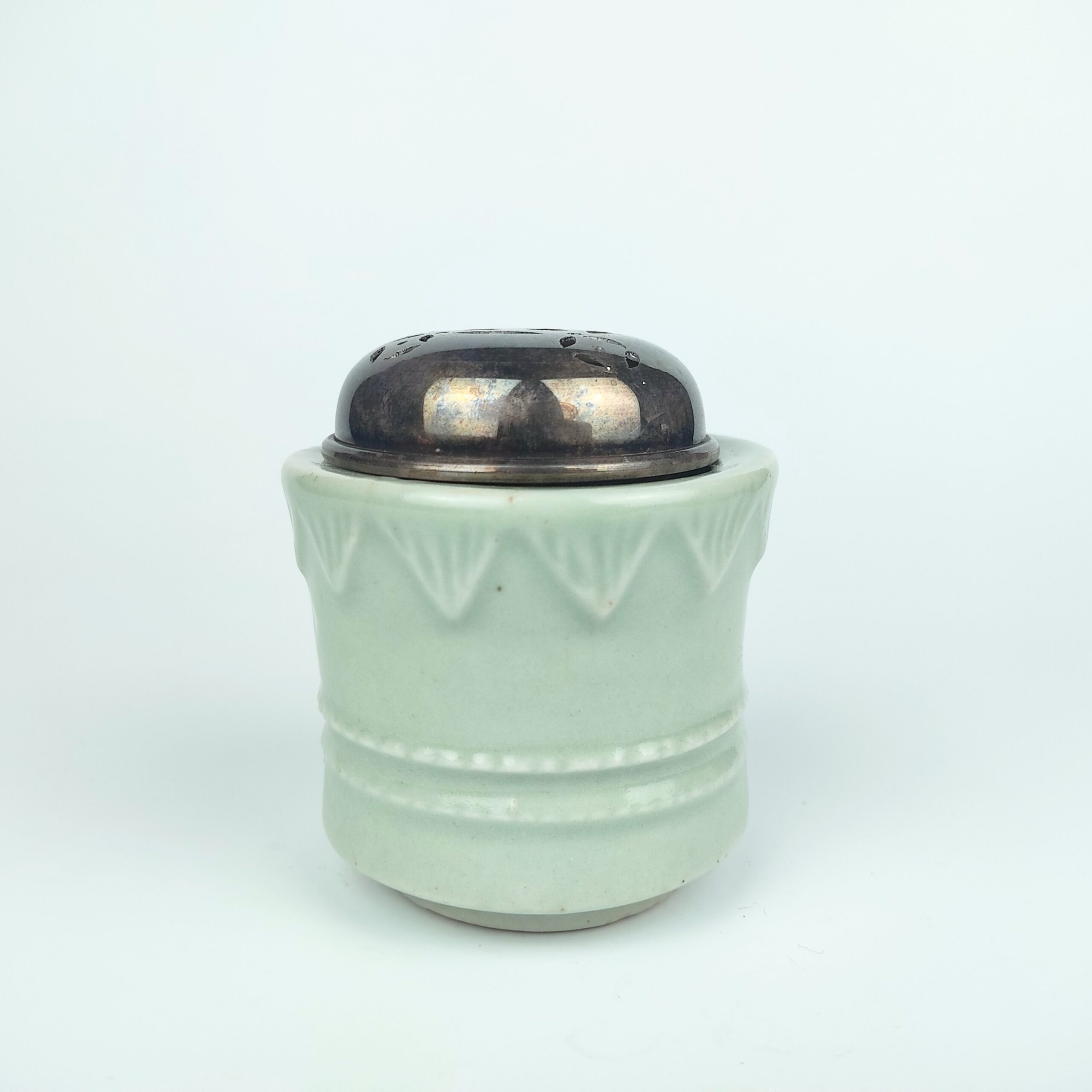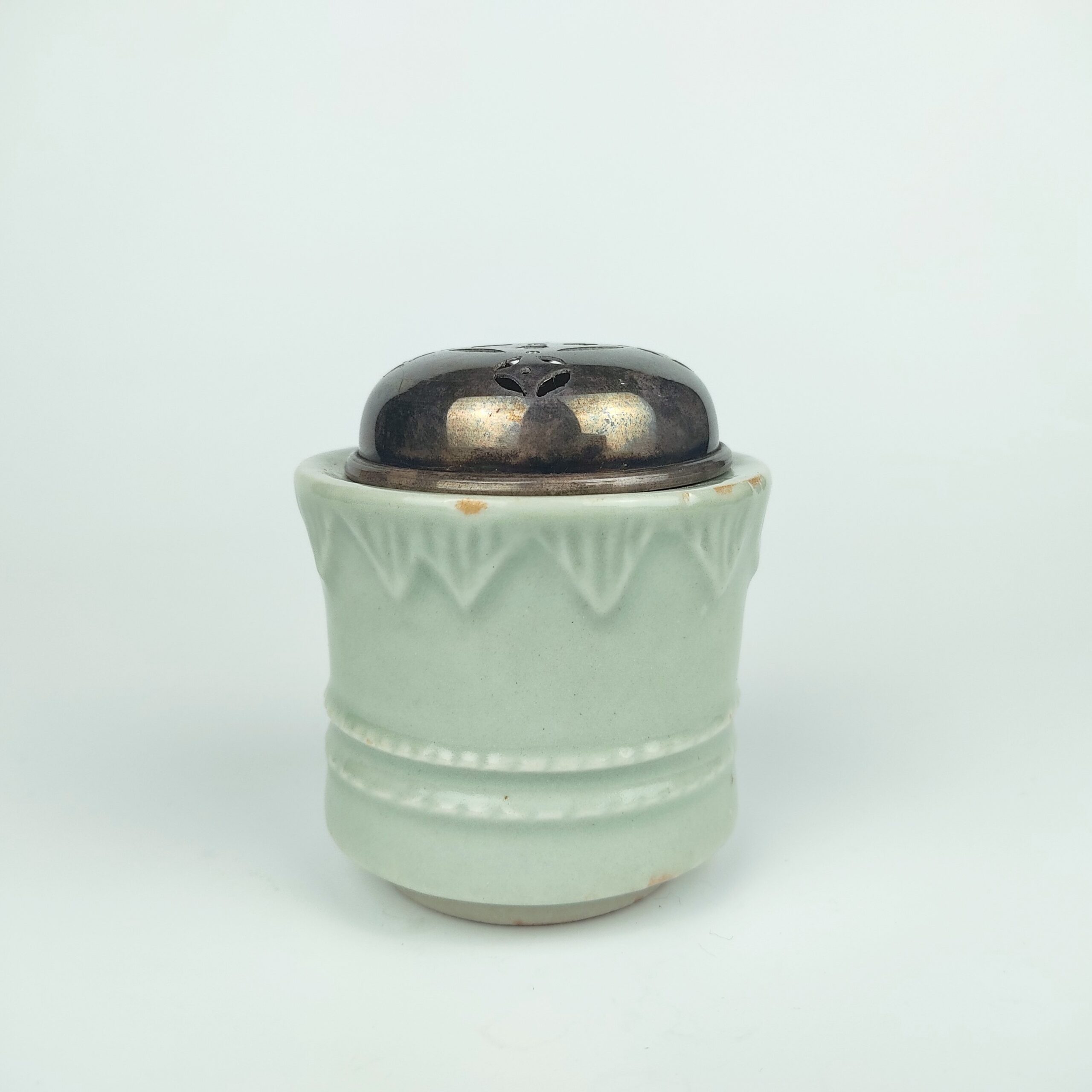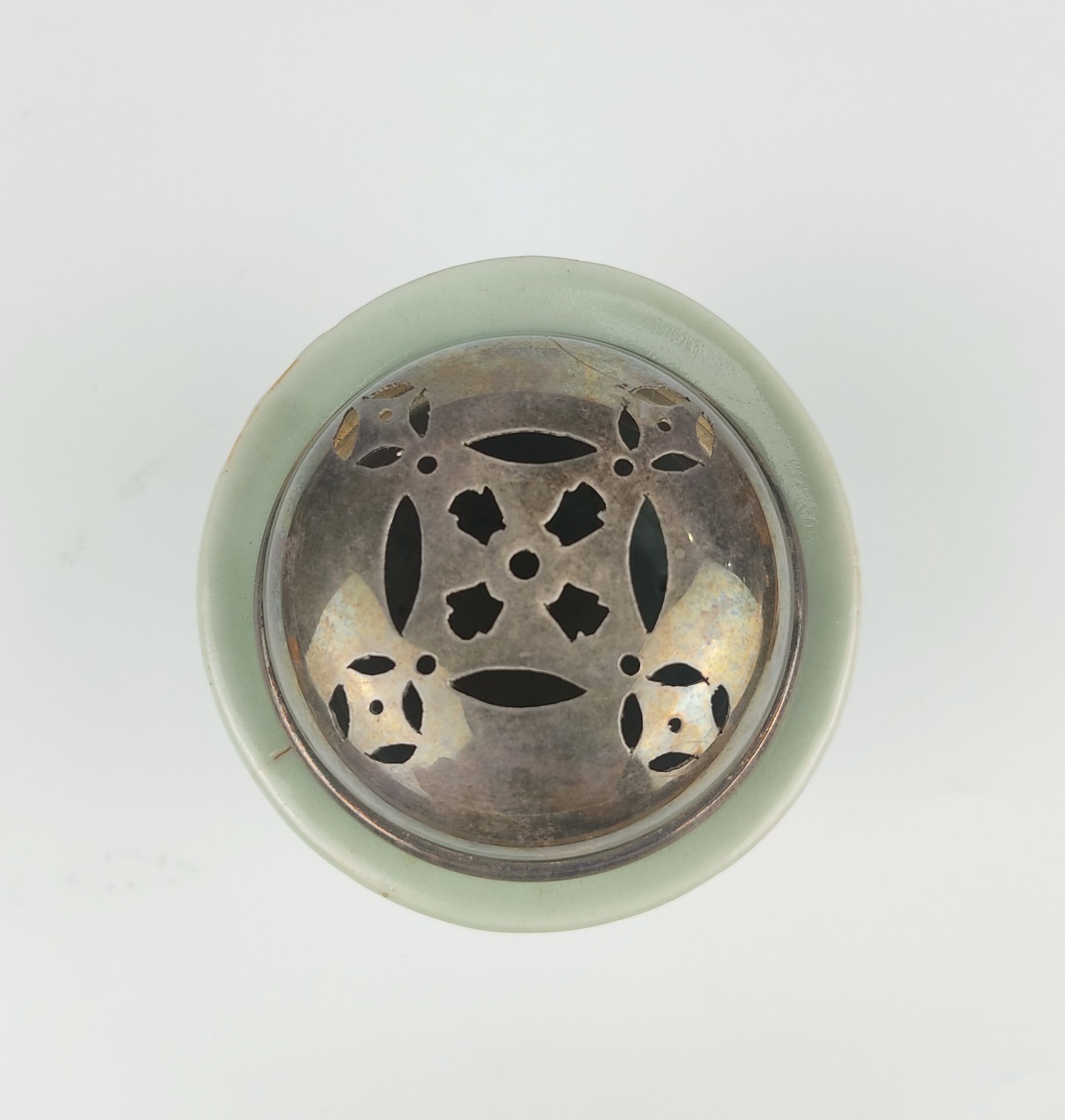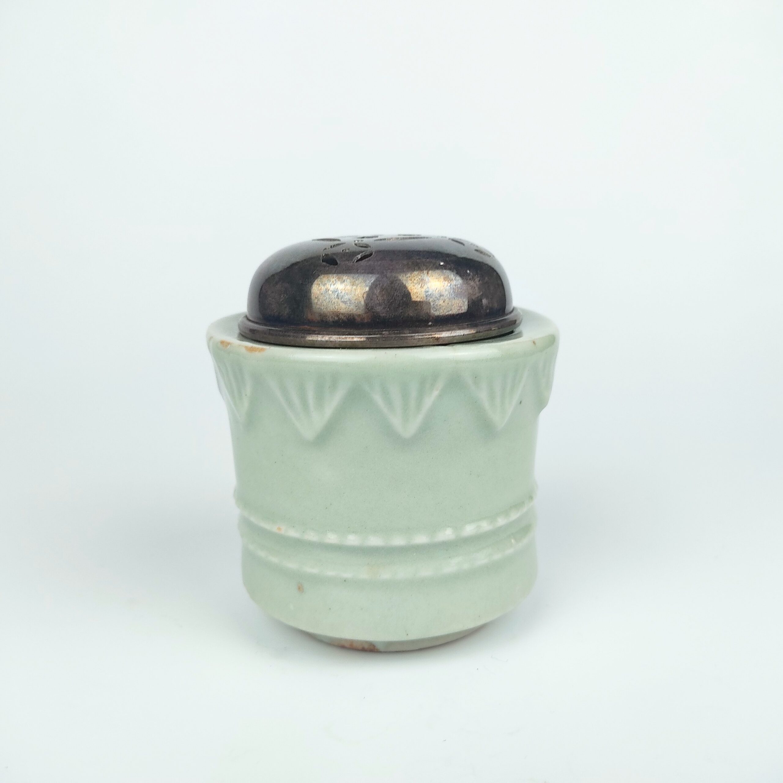 japanese antique Early imari celadon incense burner with design of cord