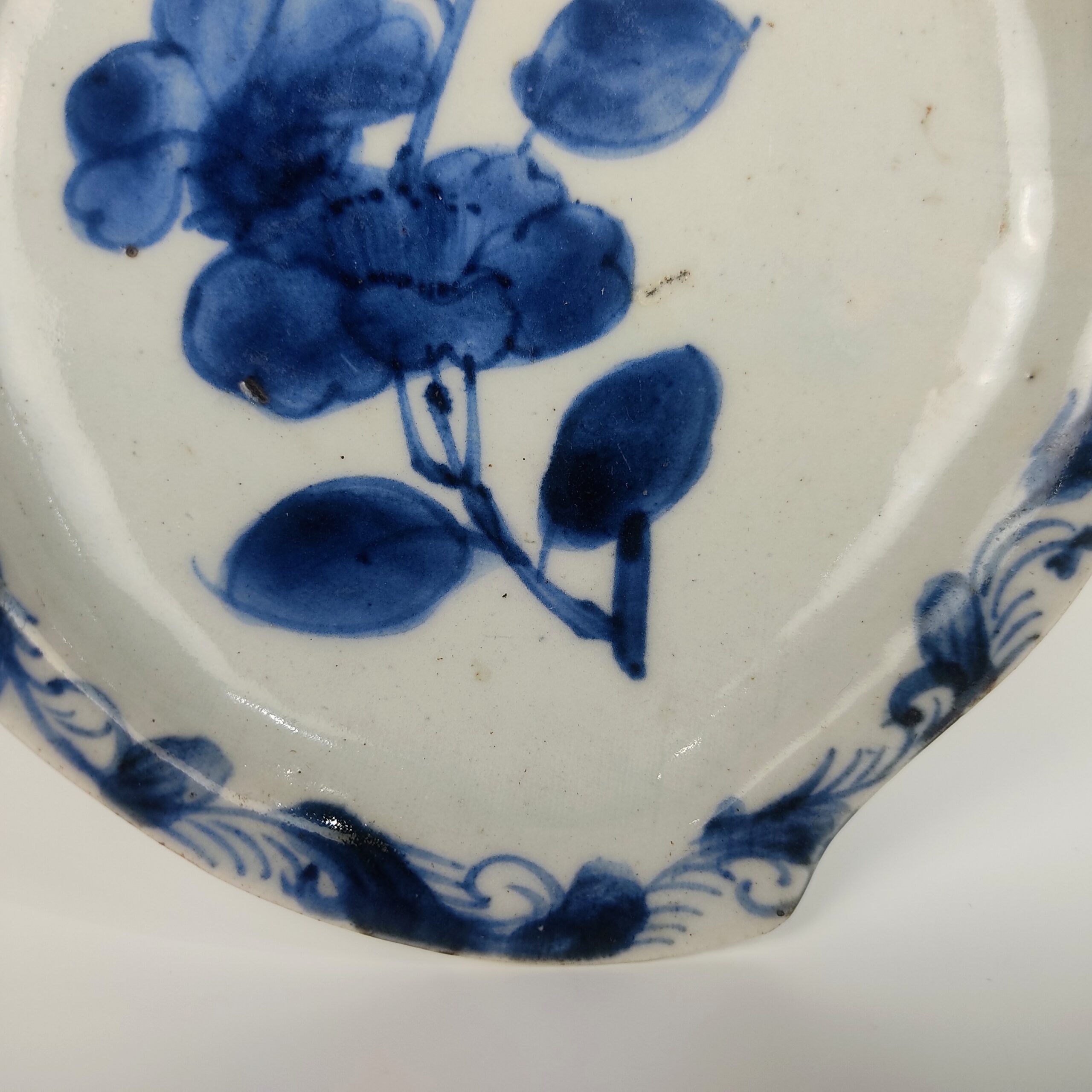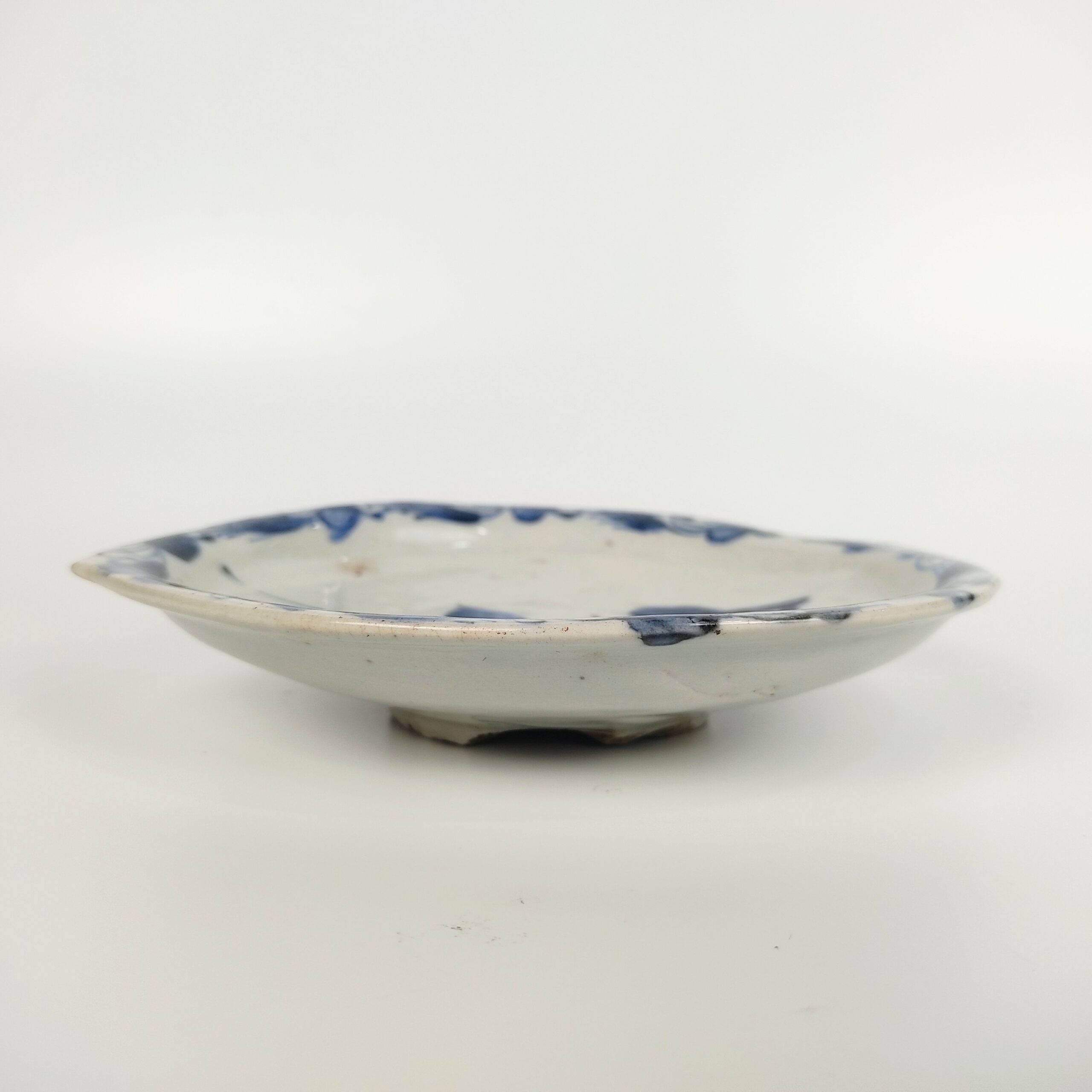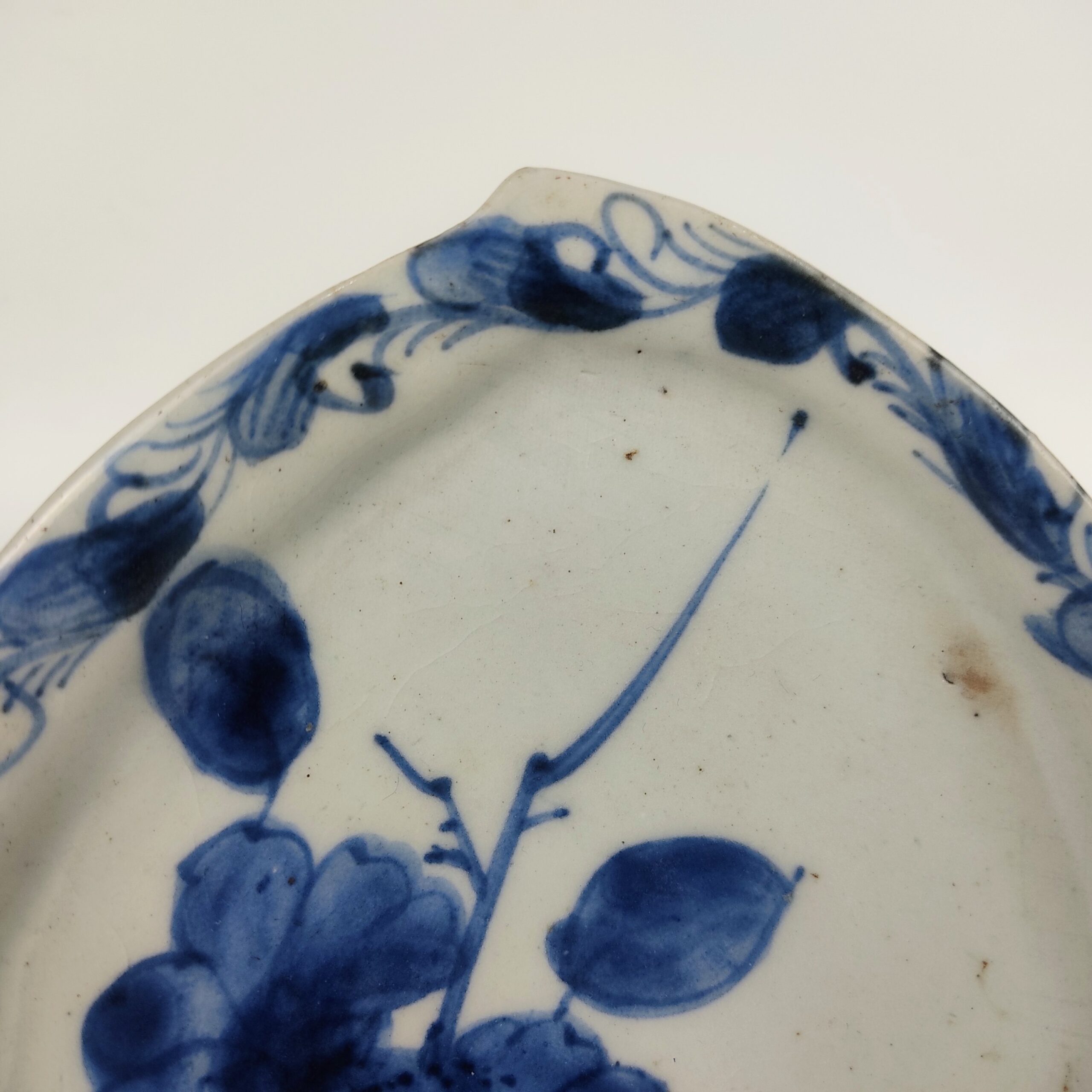 japanese antique Early imari ware blue and white leaf shape dish with design of camellia