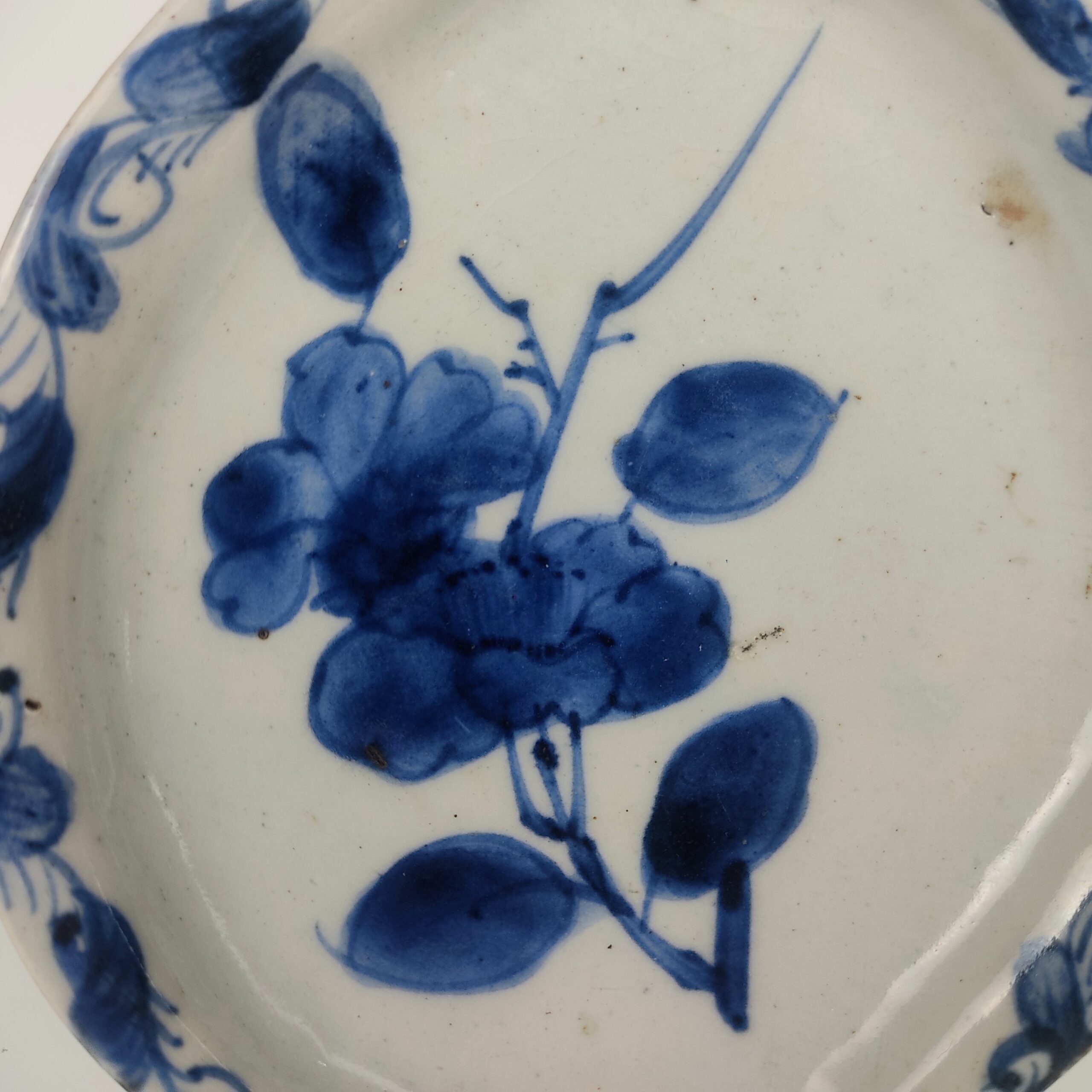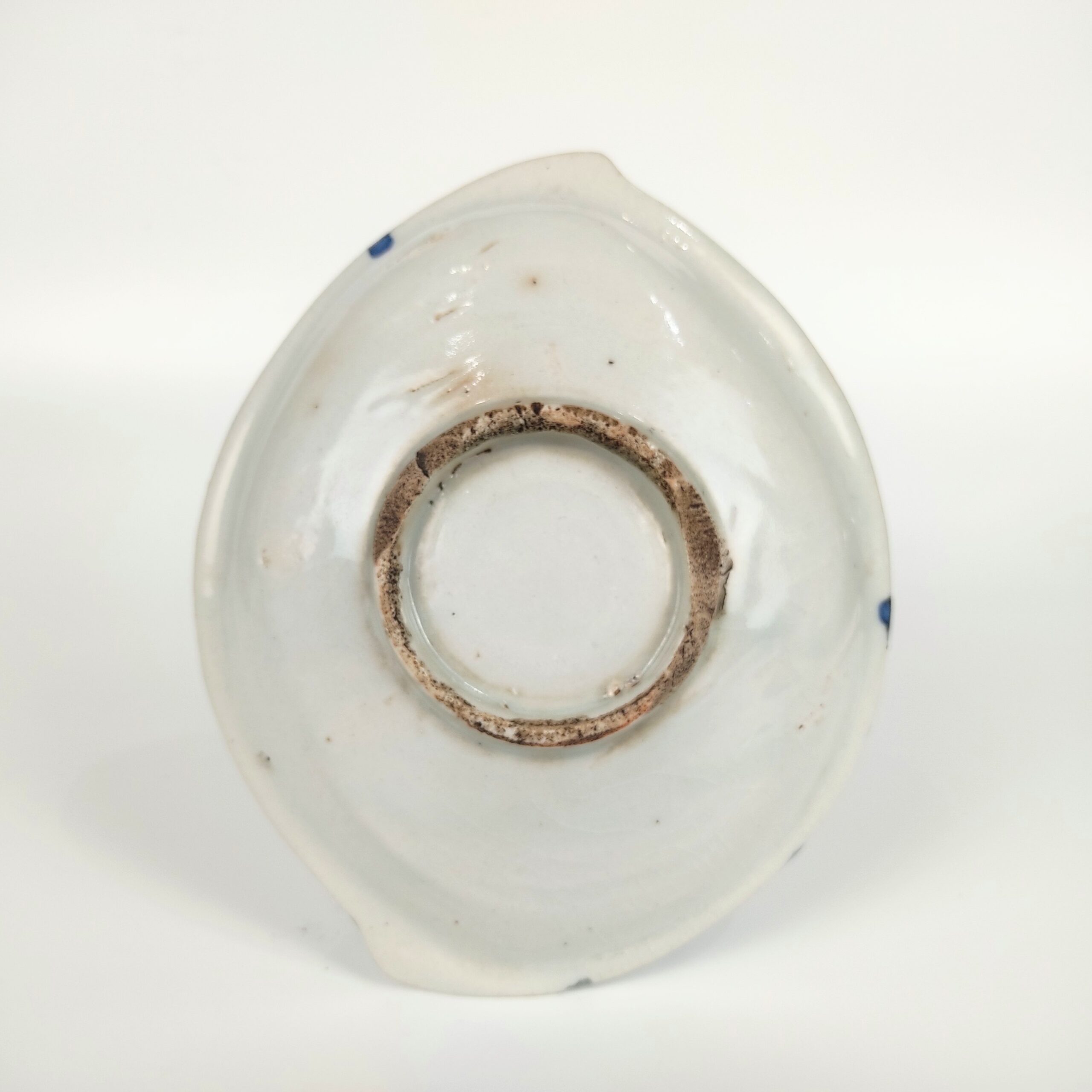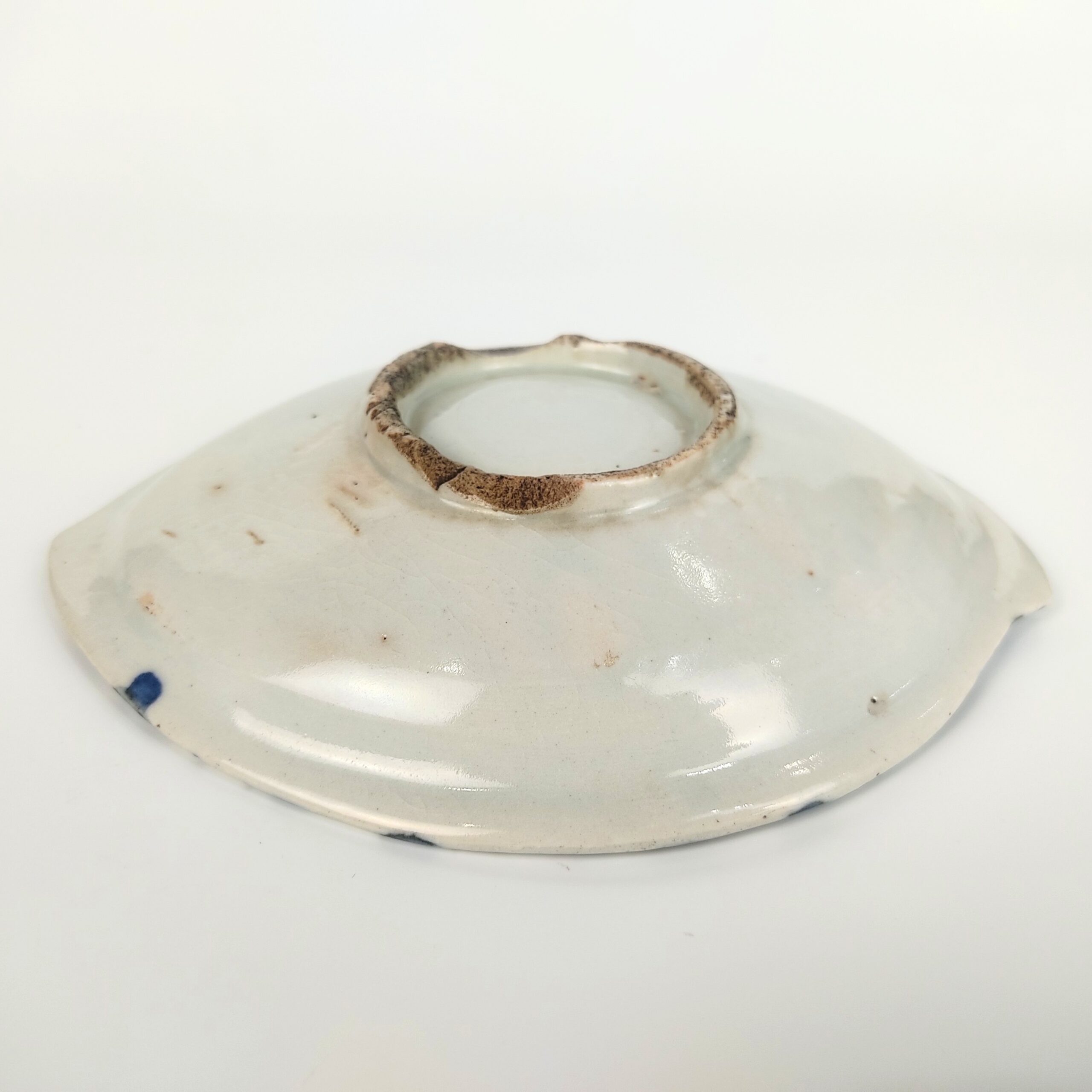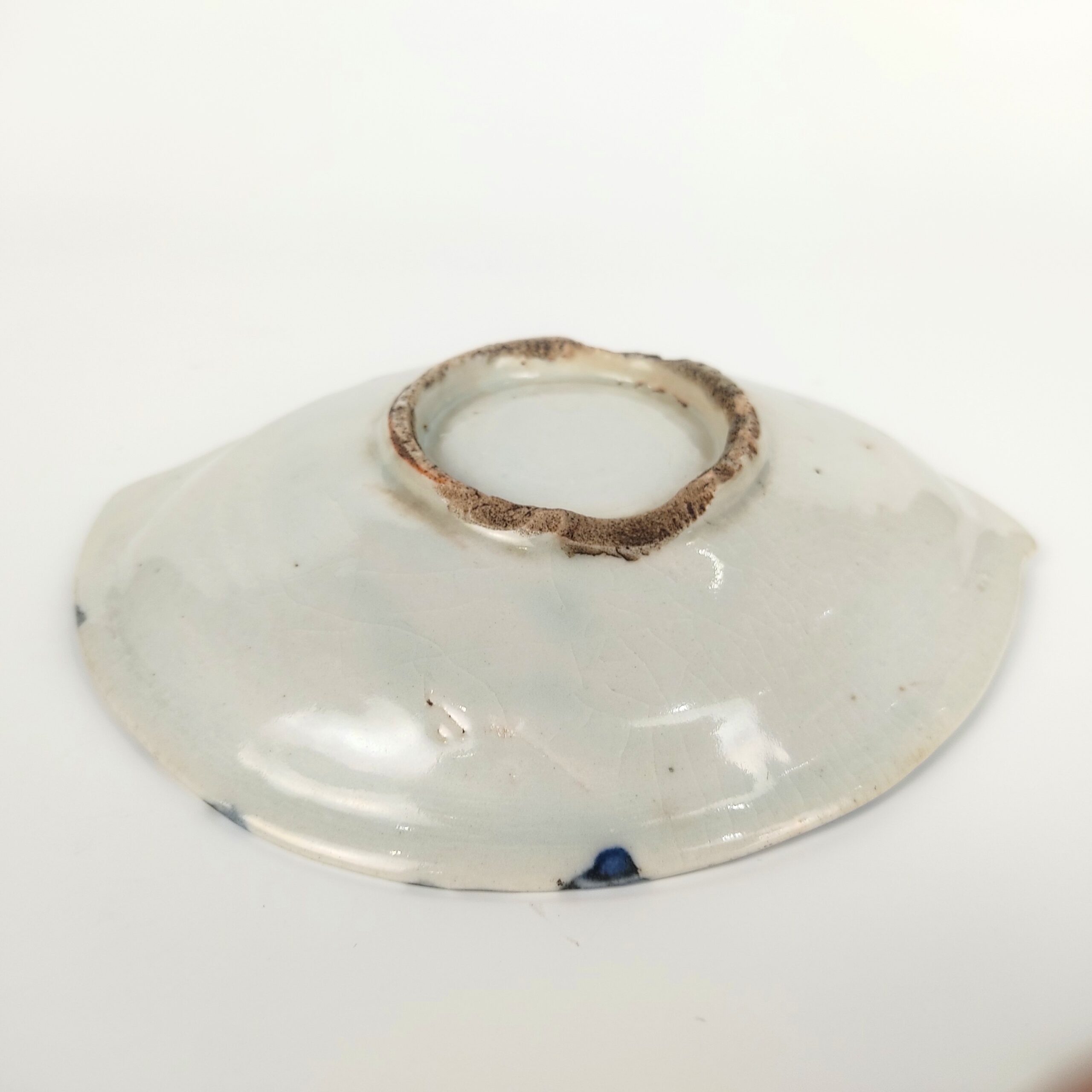 japanese antique Early imari ware blue and white leaf shape dish with design of camellia