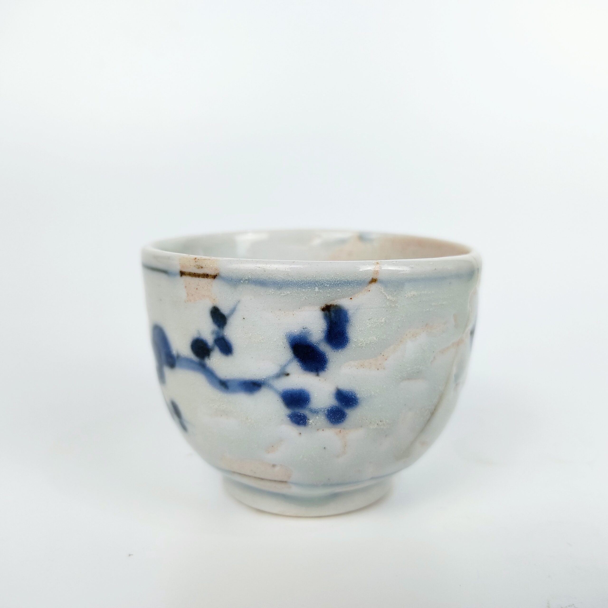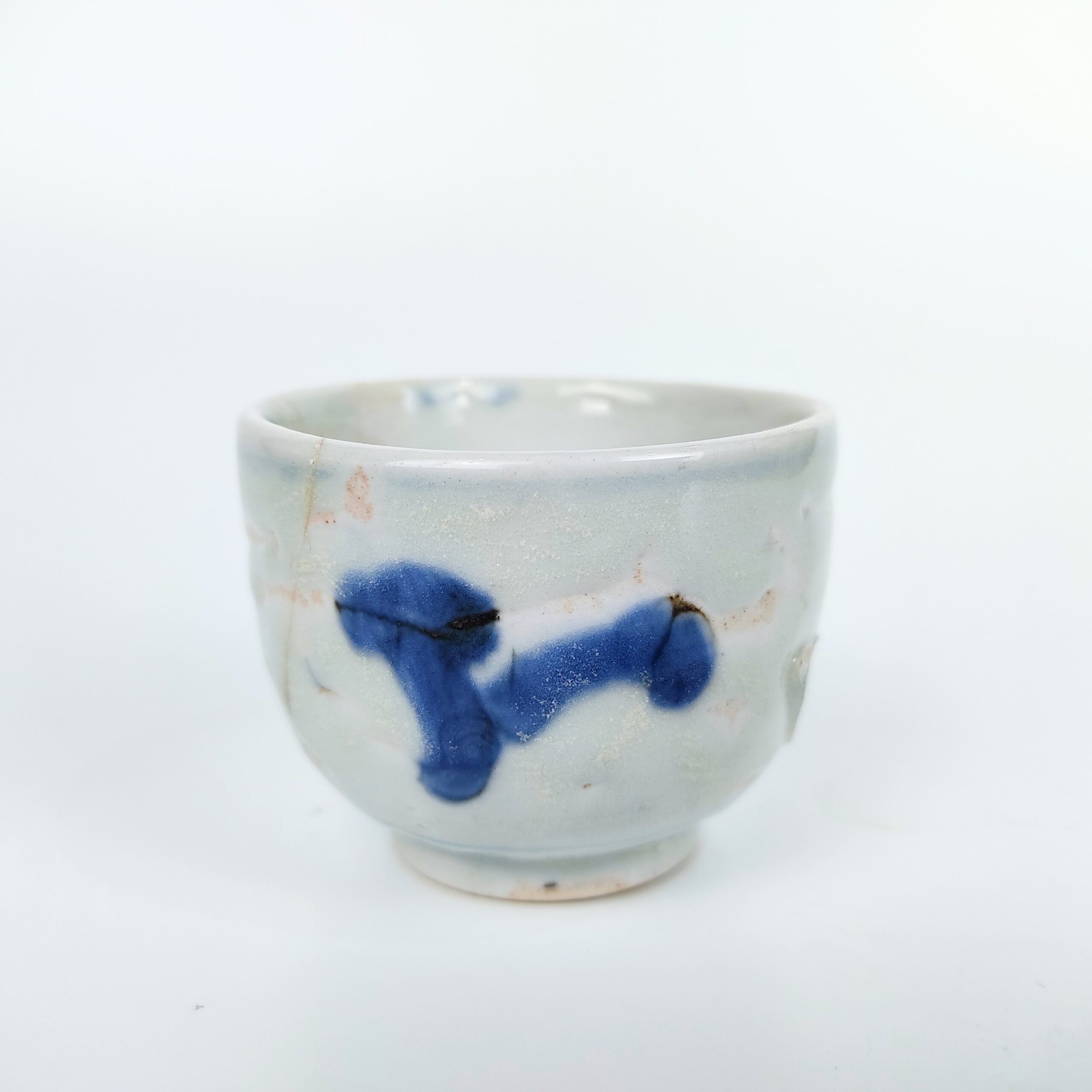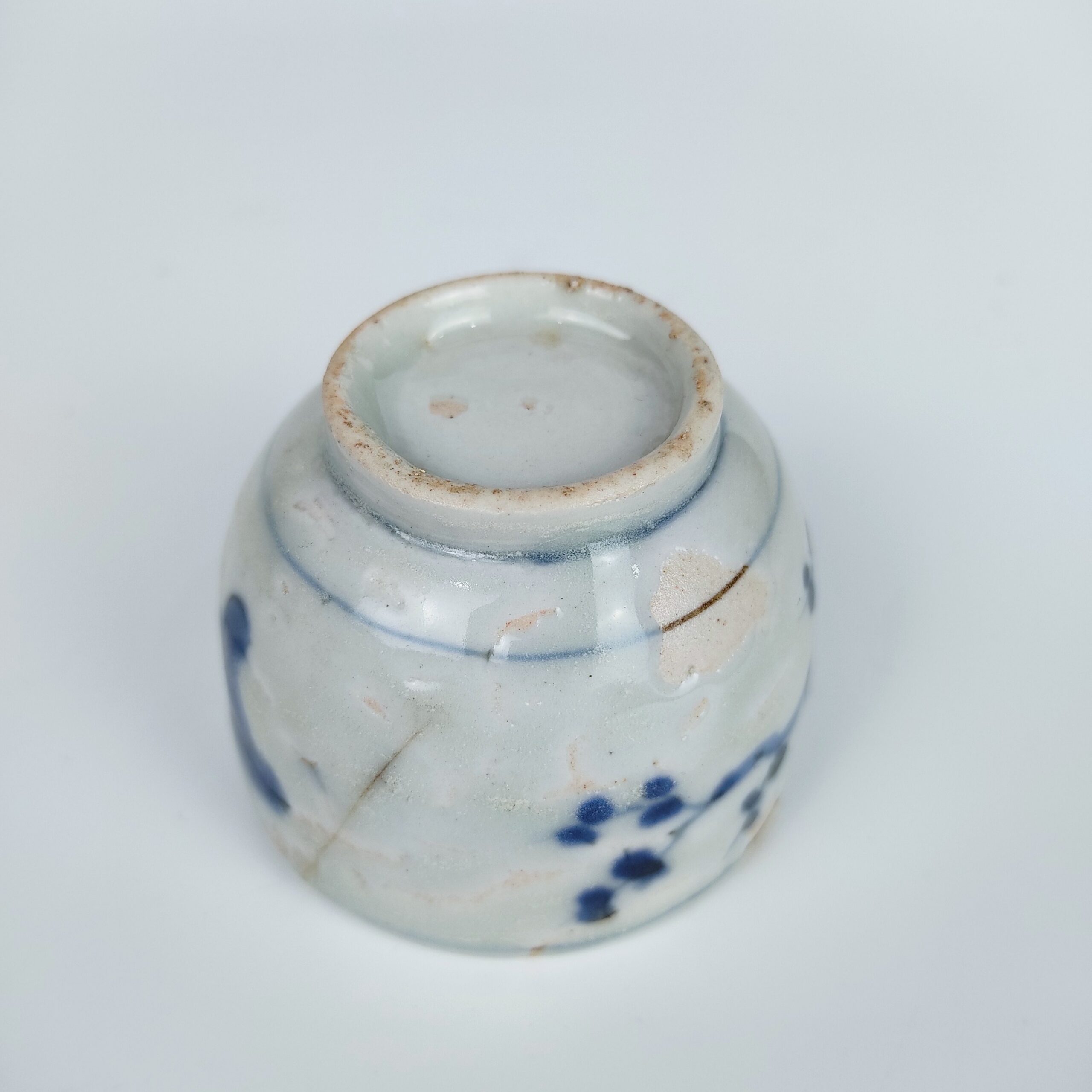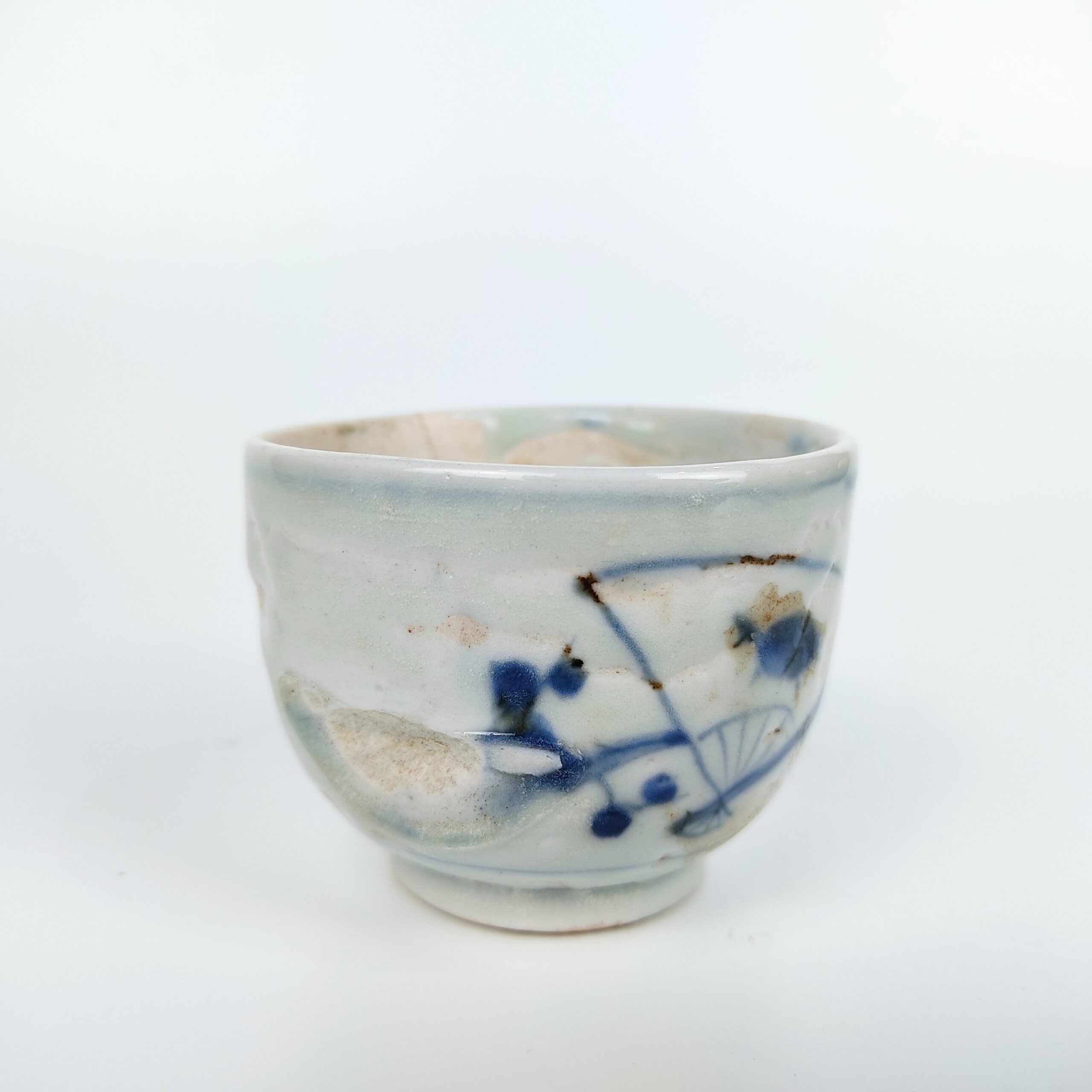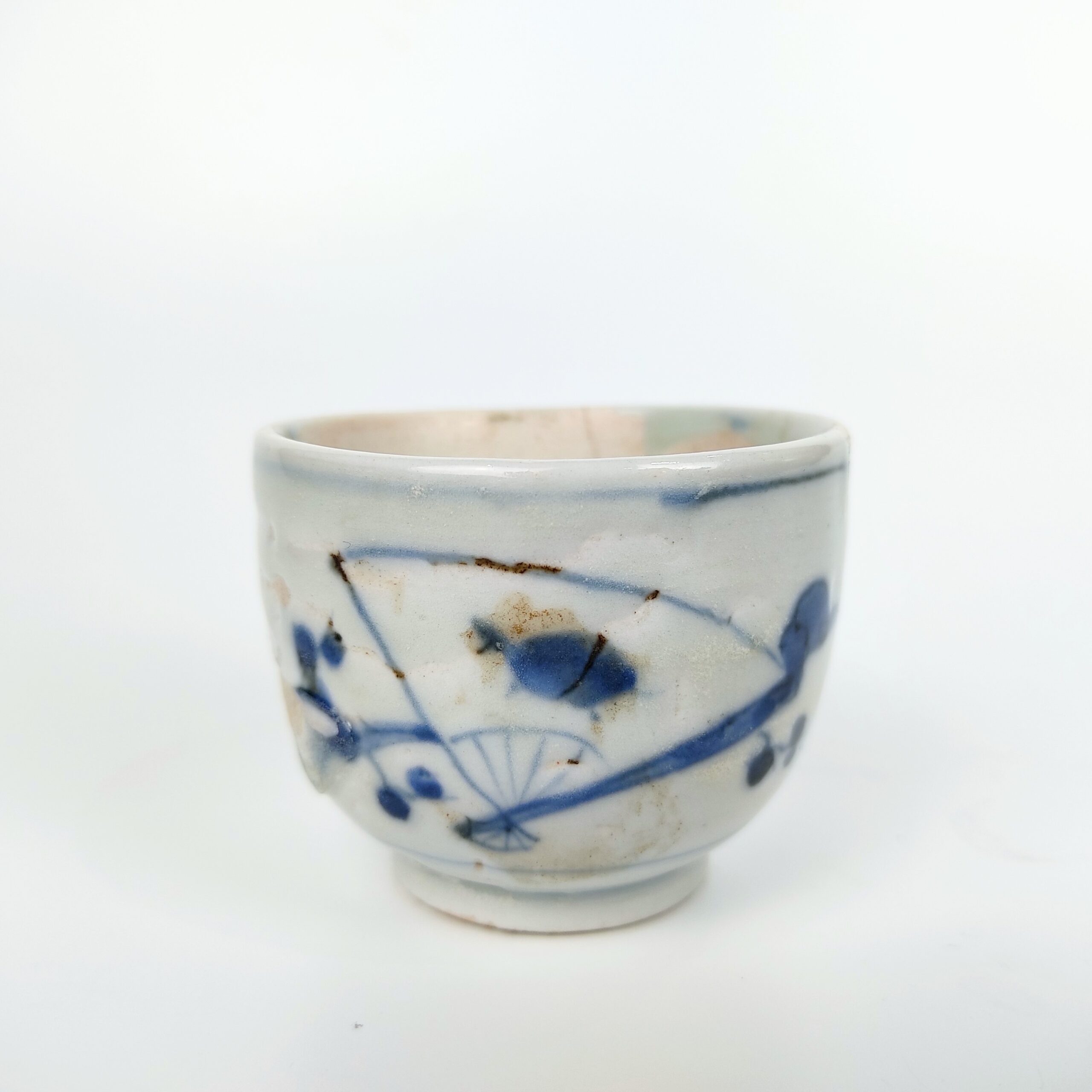 japanese antique Early imari ware blue and white sake cup with design of folding fan