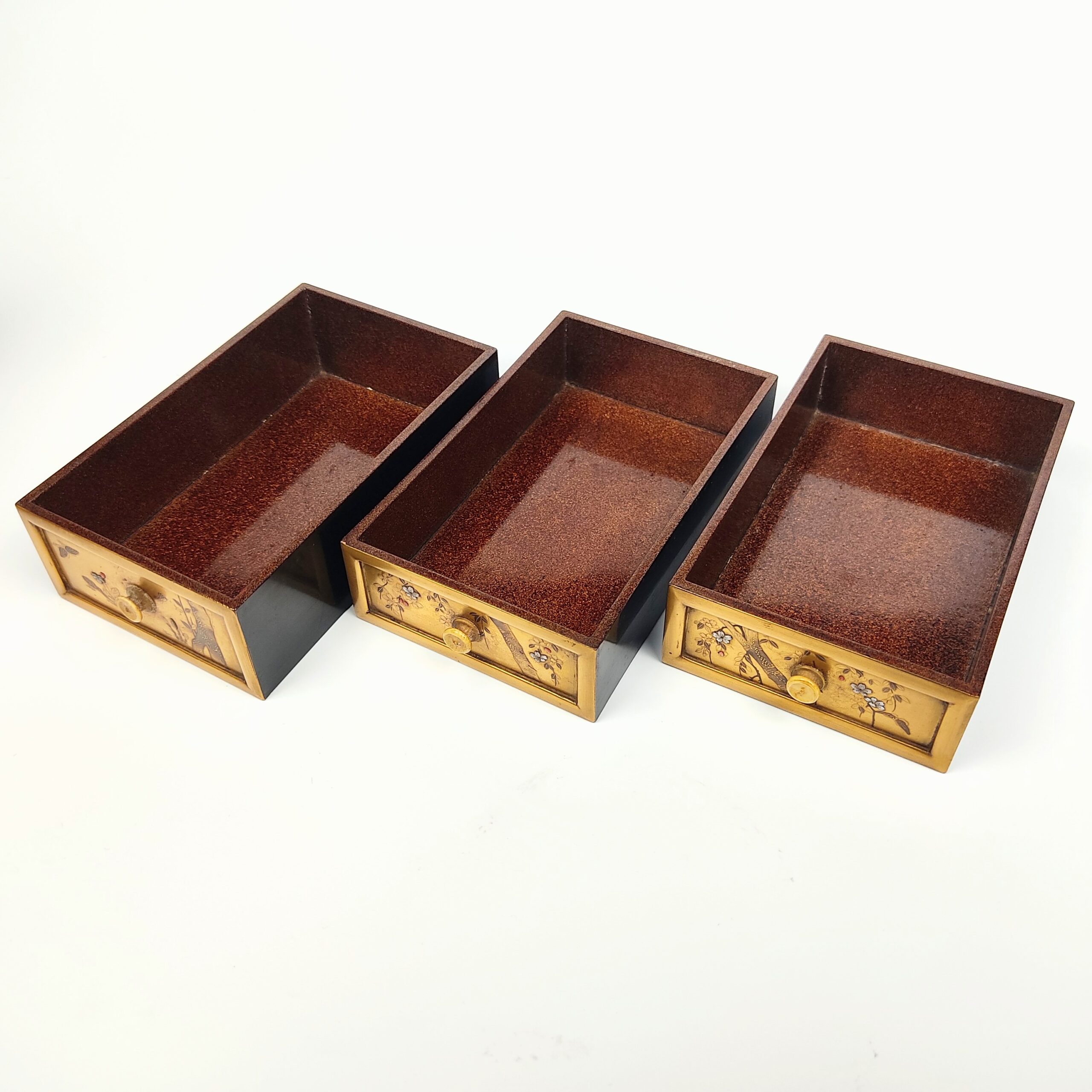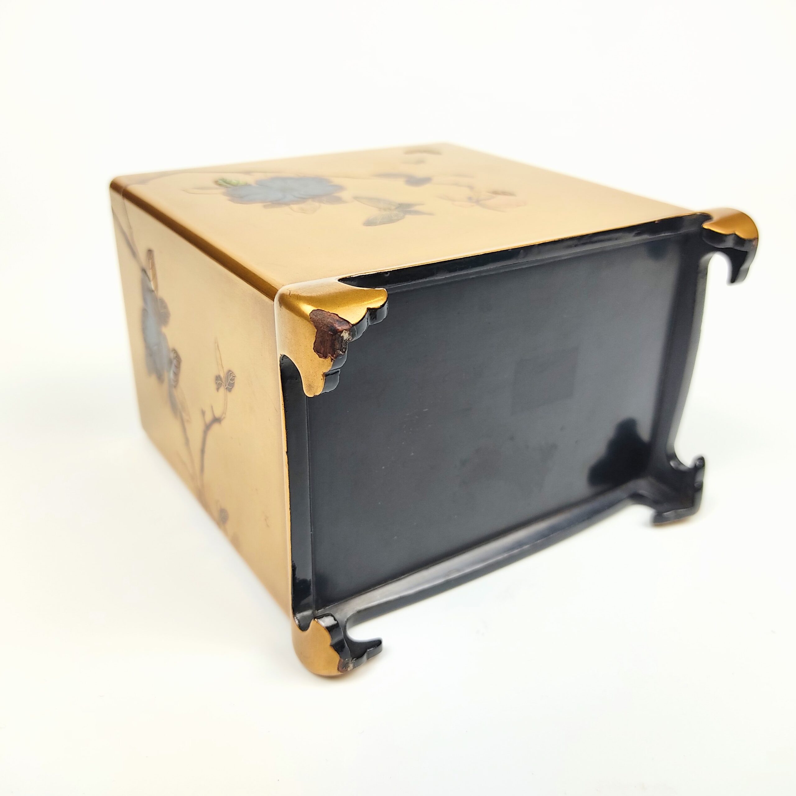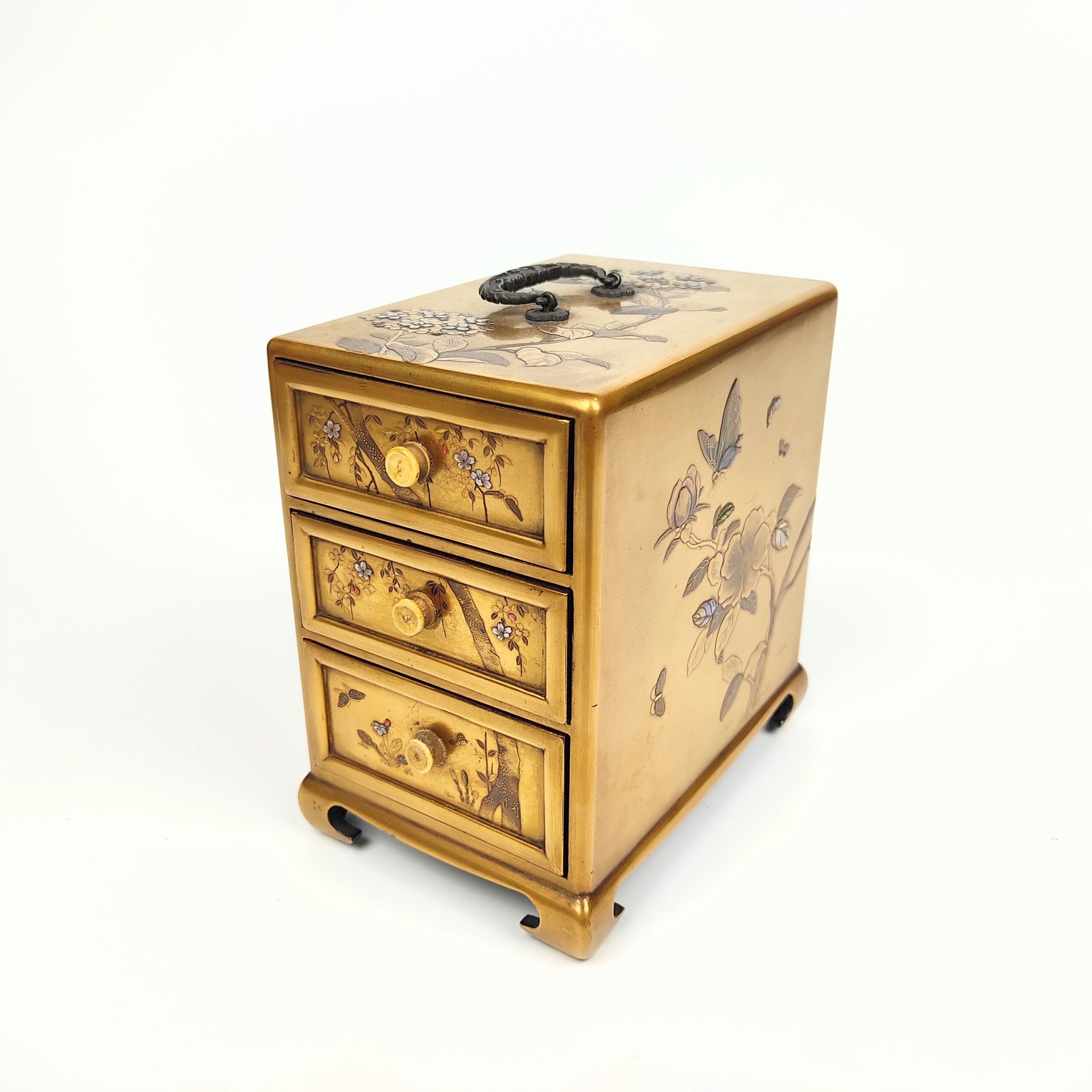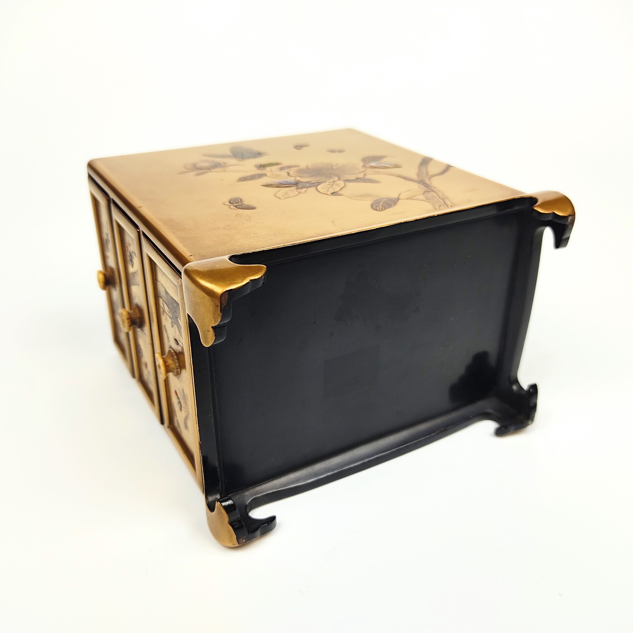 japanese antique Flowers and butterflies design 3 drawer box with gold and silver lacquer,mother of pearl and coral decorations