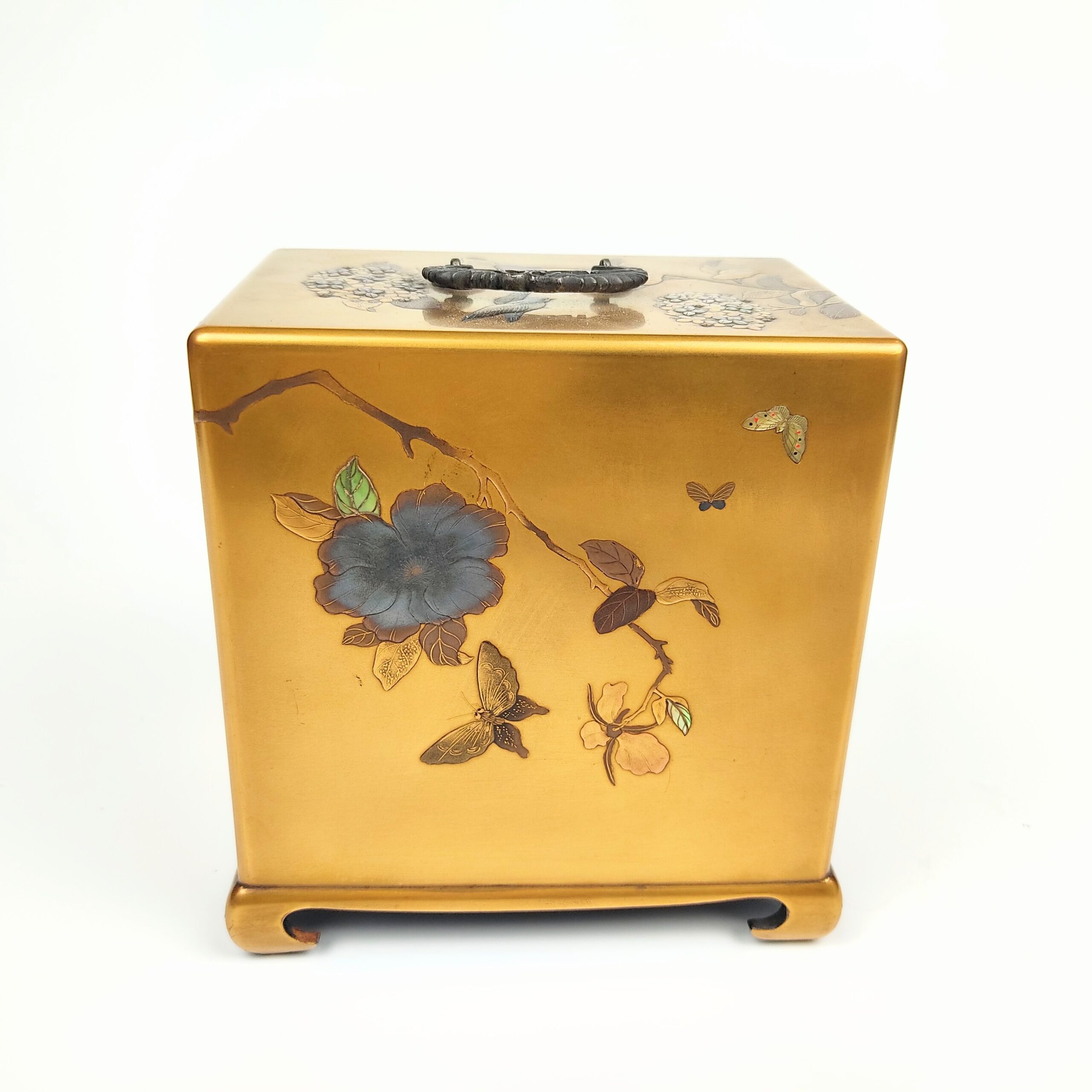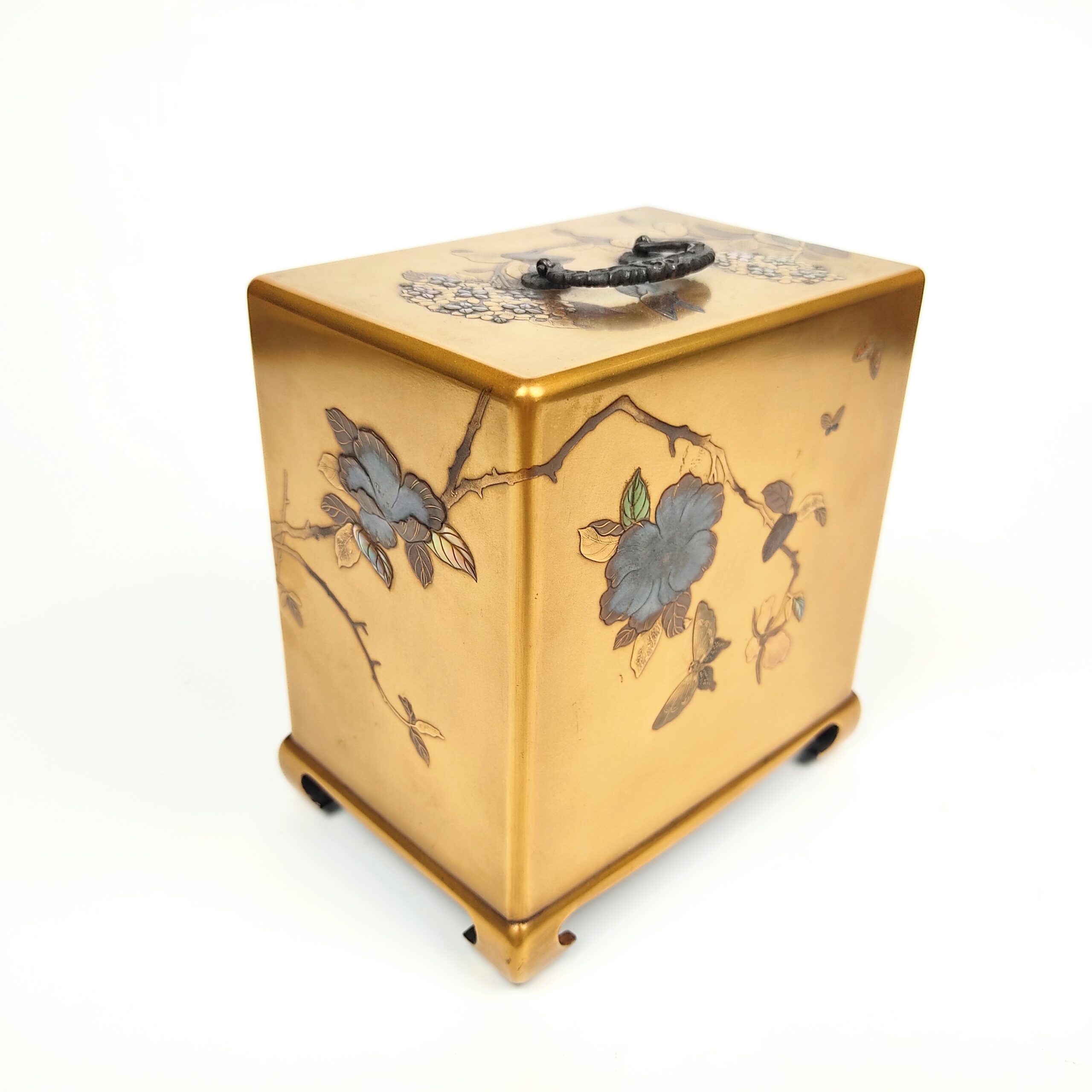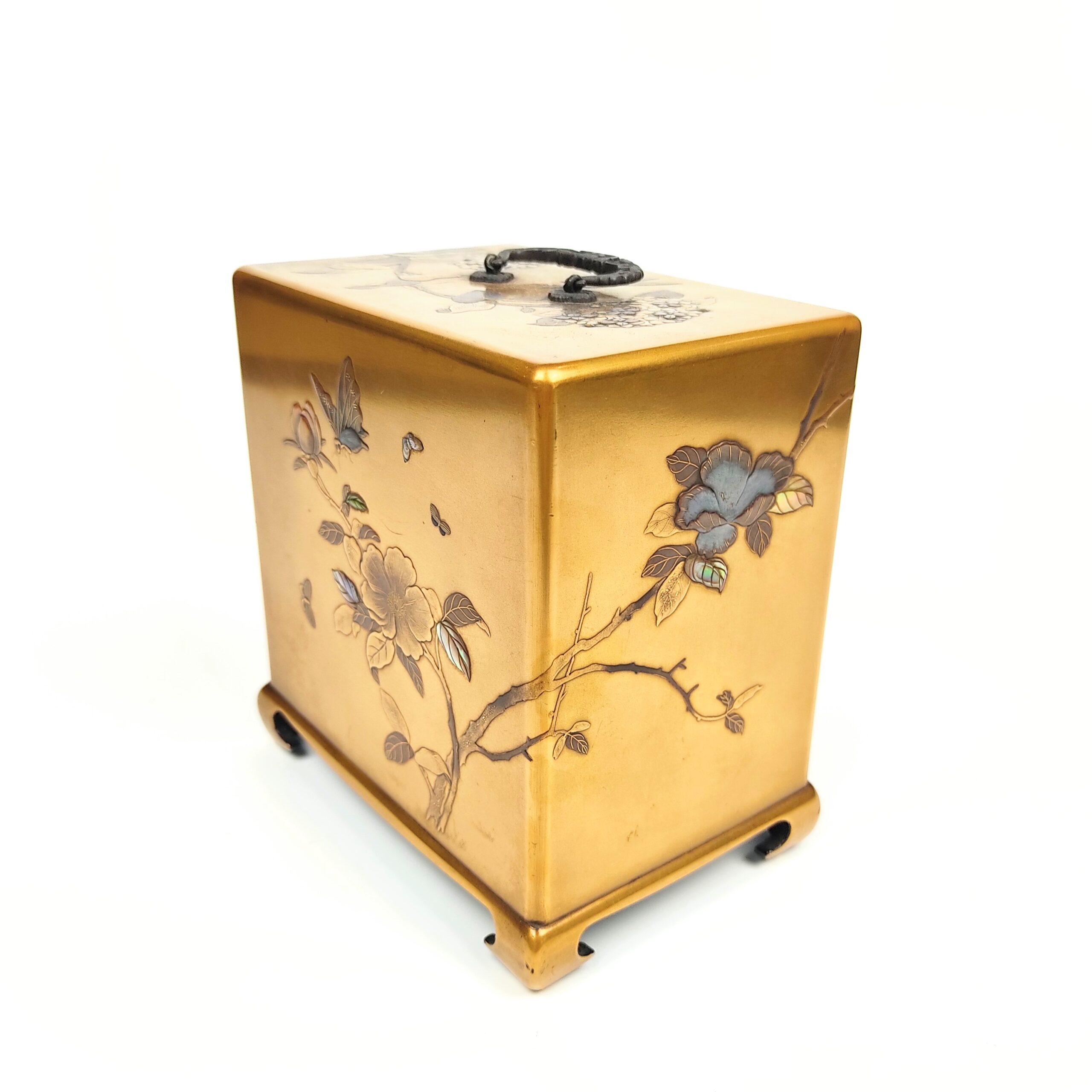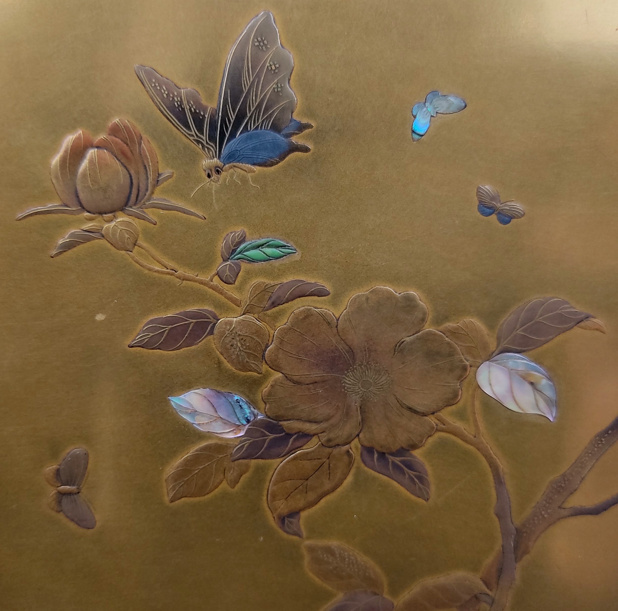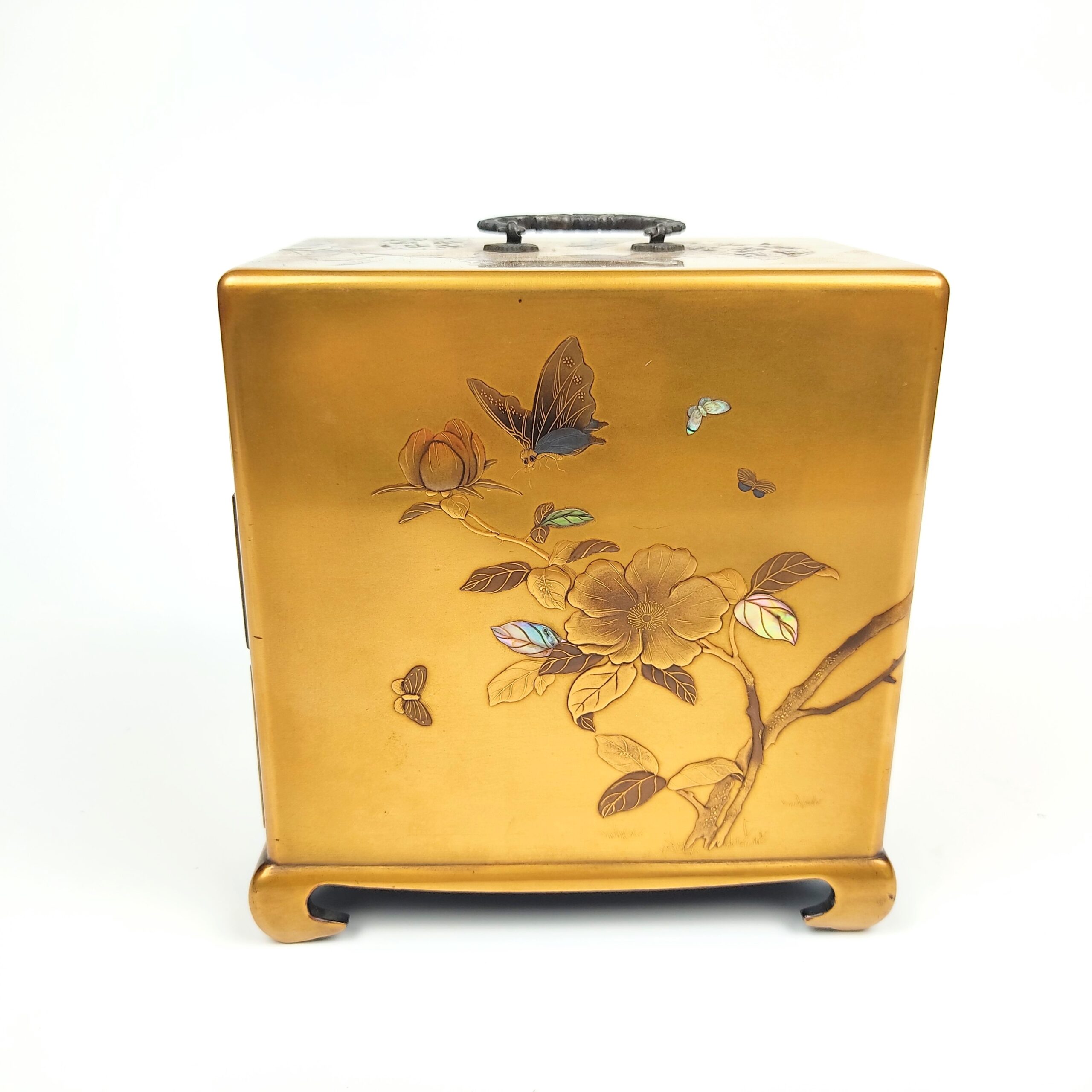 japanese antique Flowers and butterflies design 3 drawer box with gold and silver lacquer,mother of pearl and coral decorations