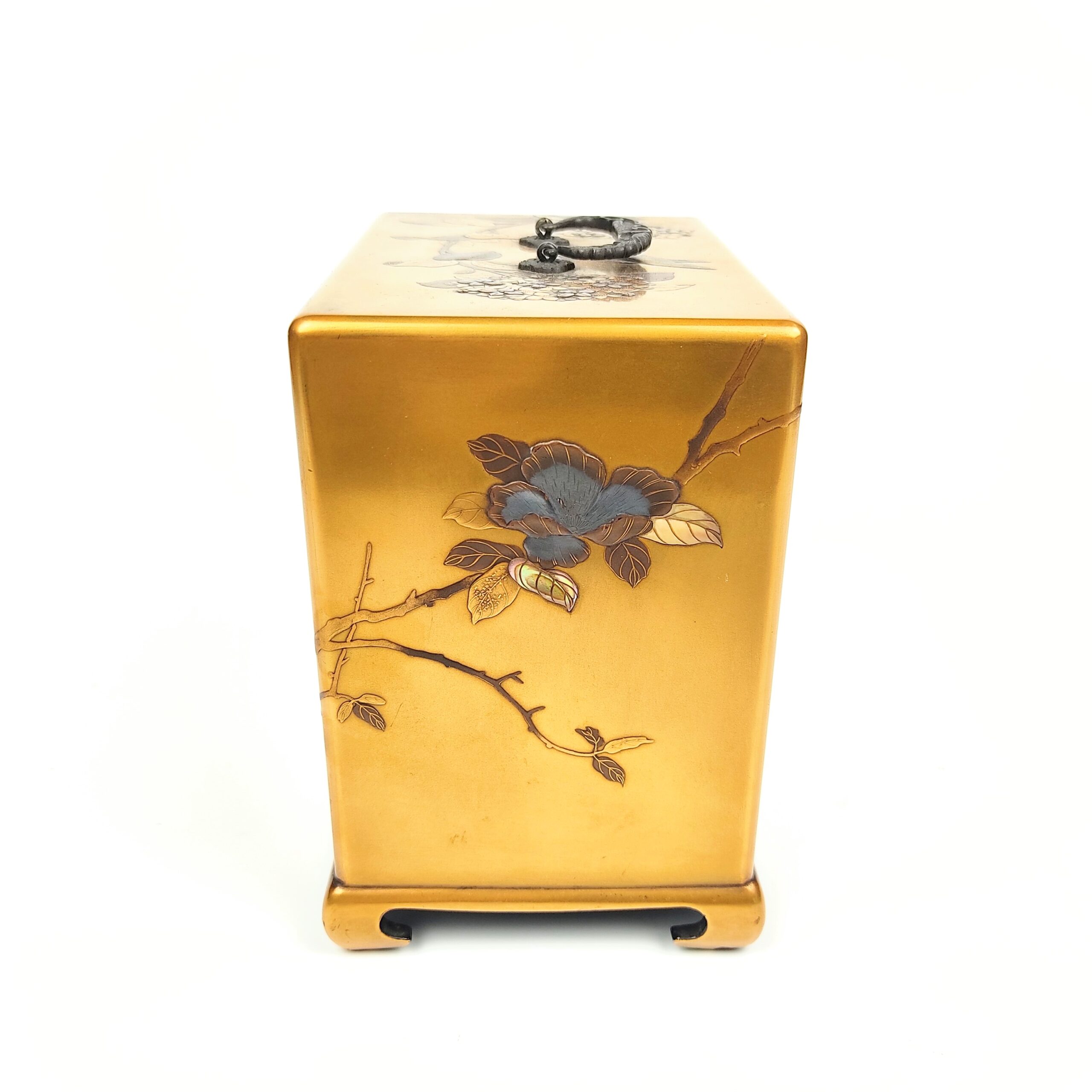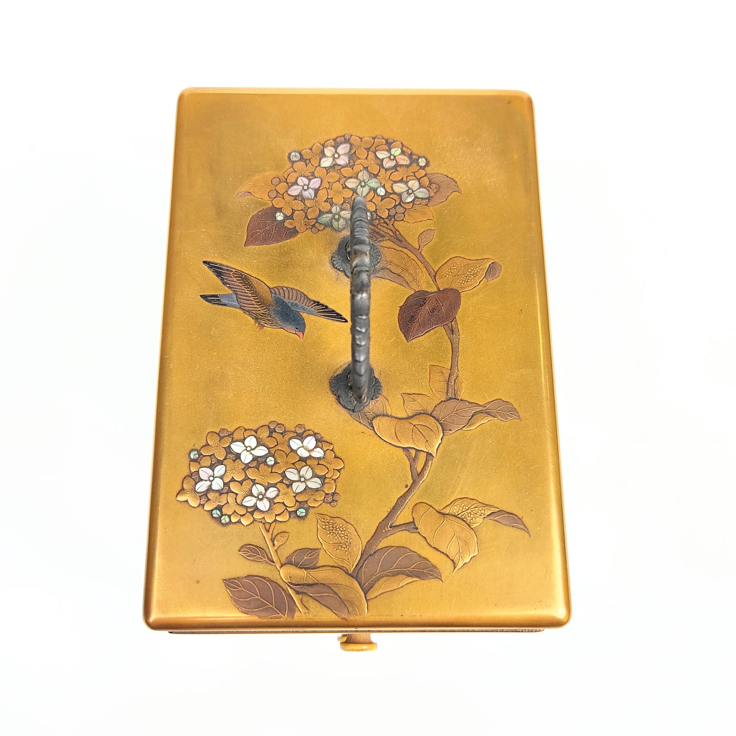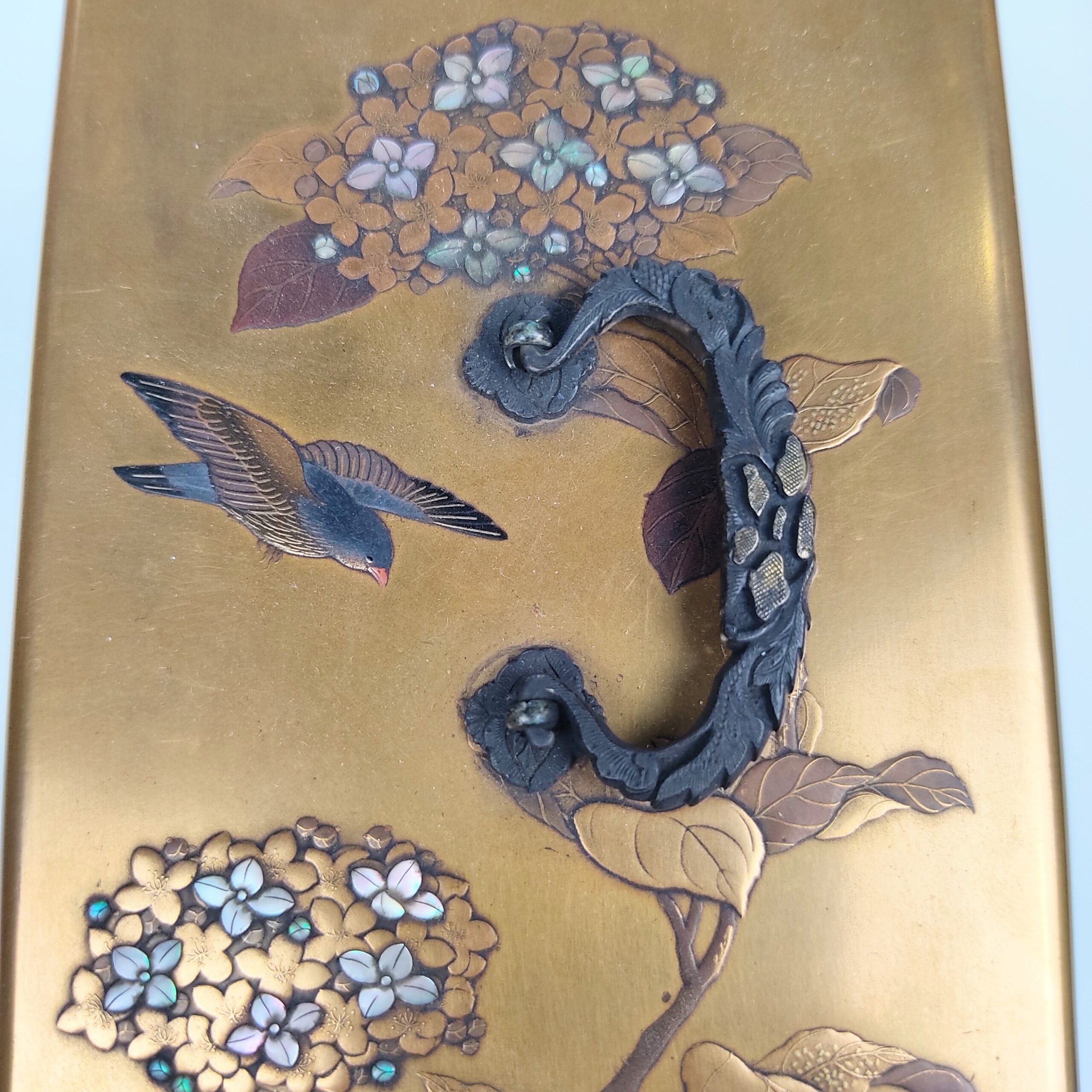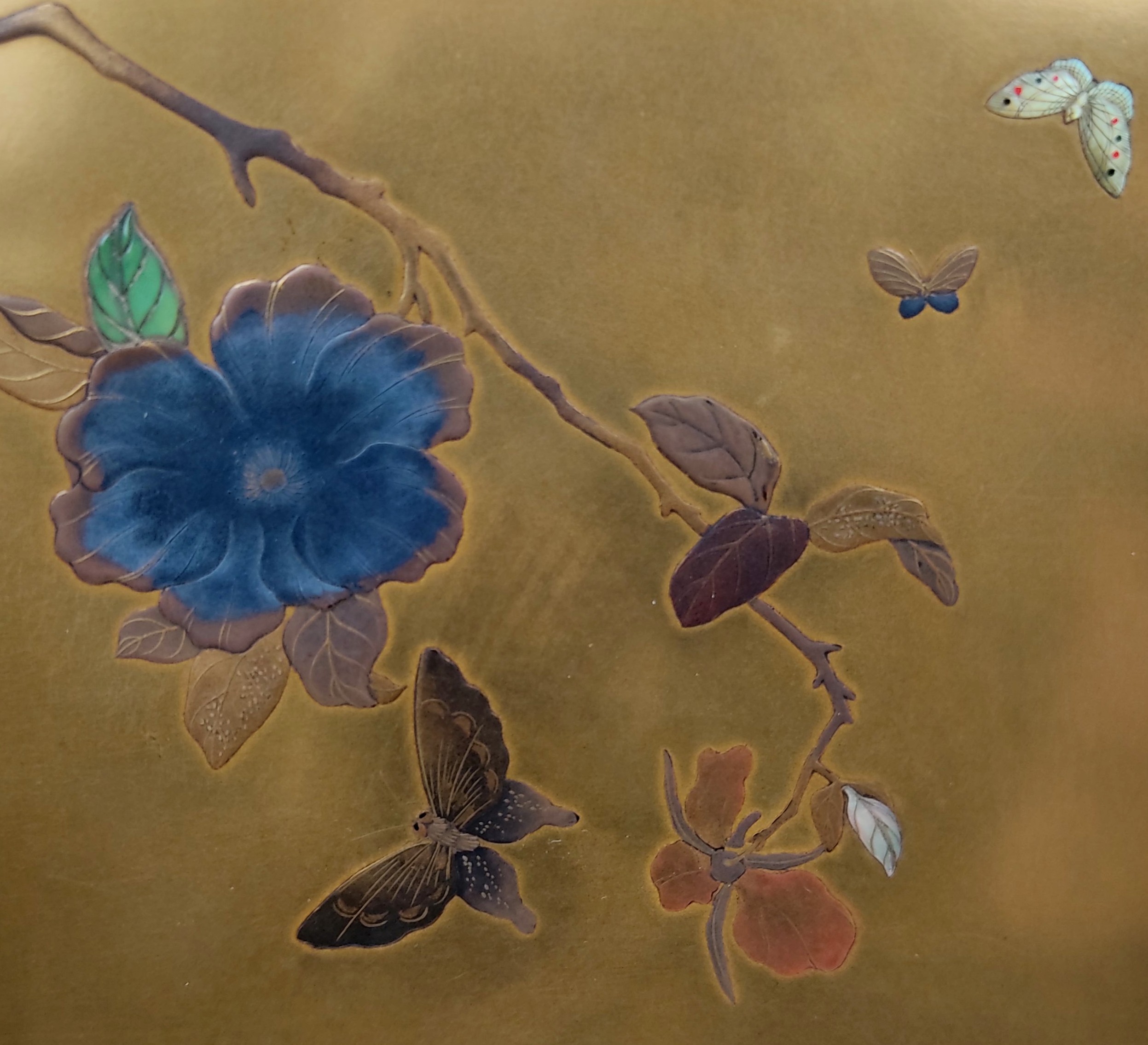 japanese antique Flowers and butterflies design 3 drawer box with gold and silver lacquer,mother of pearl and coral decorations