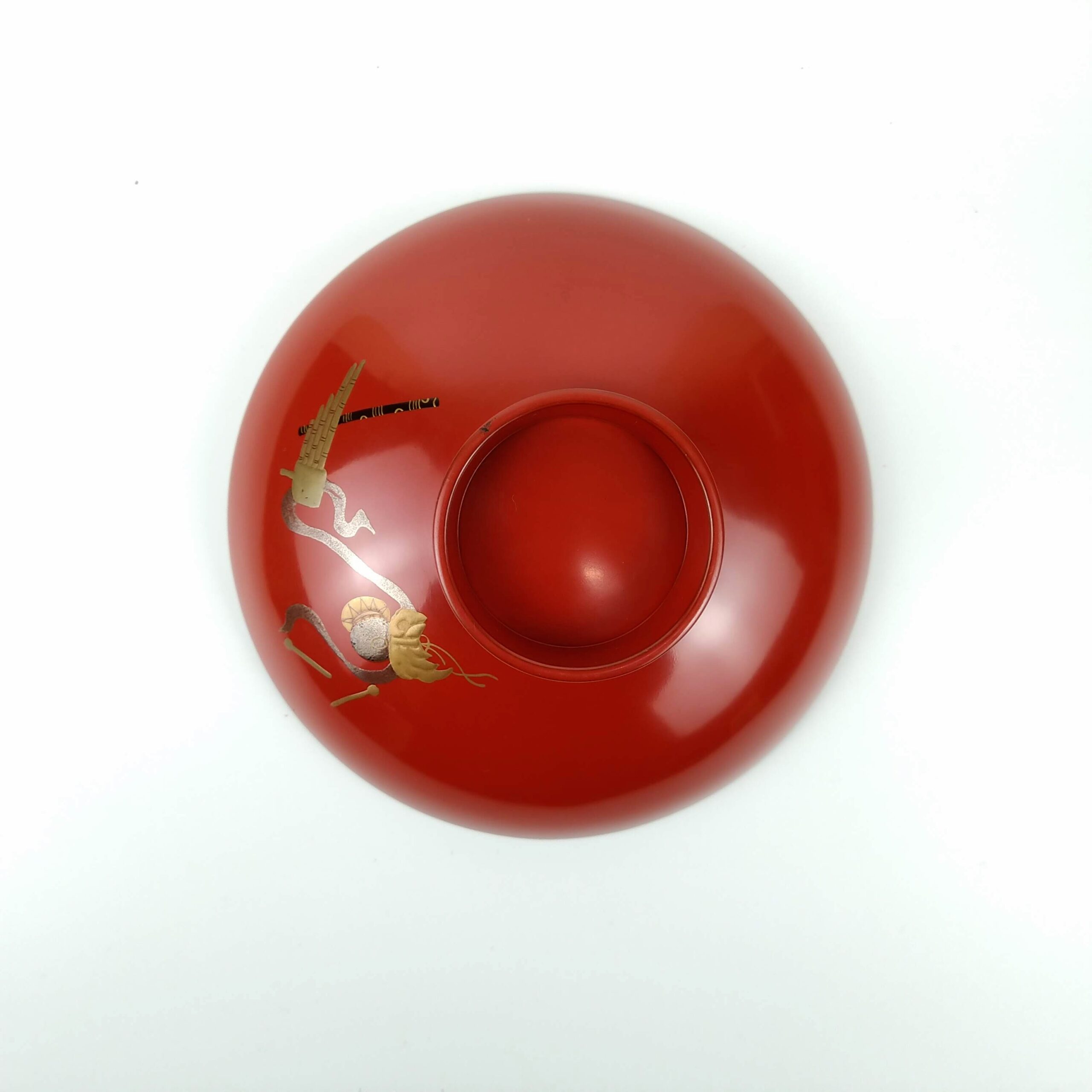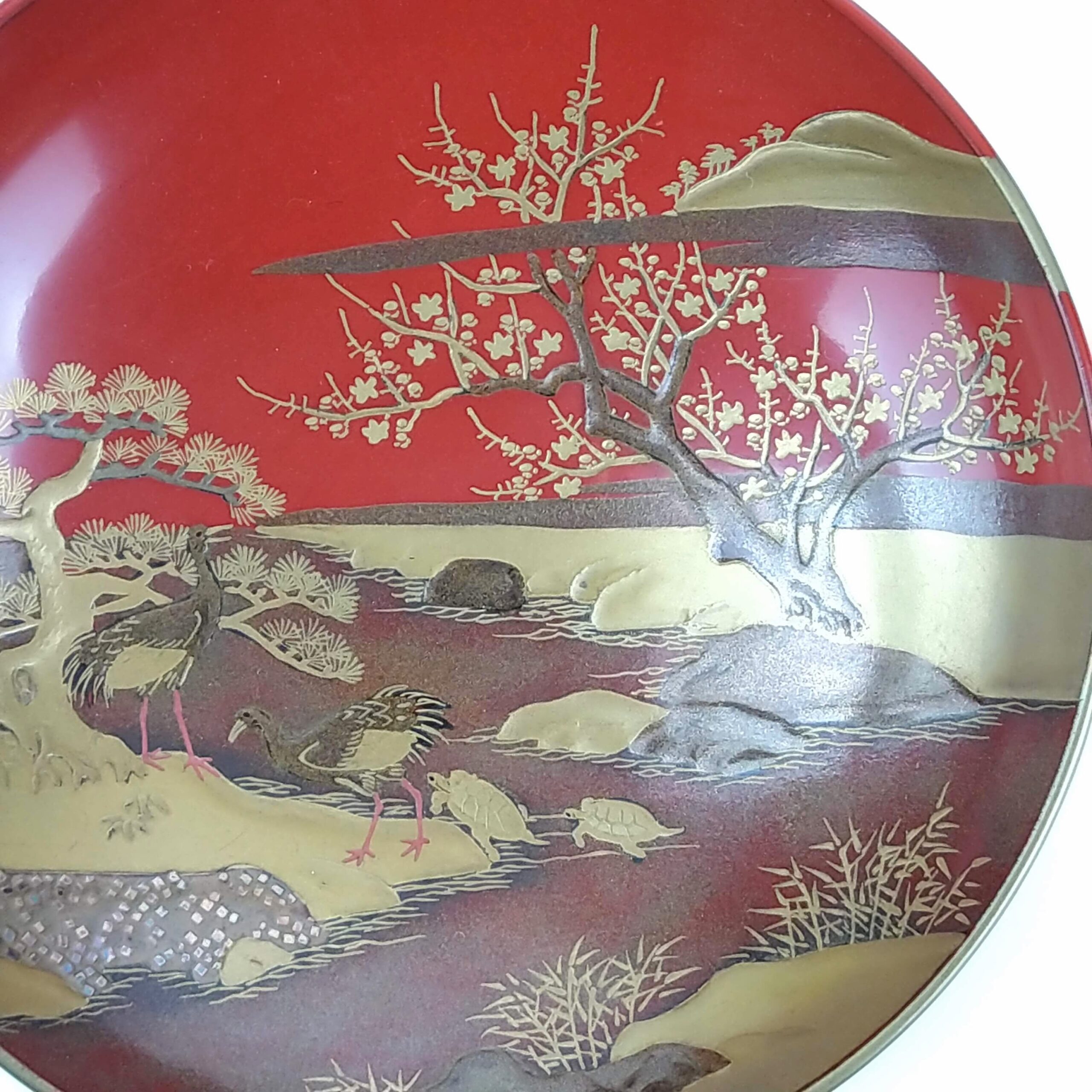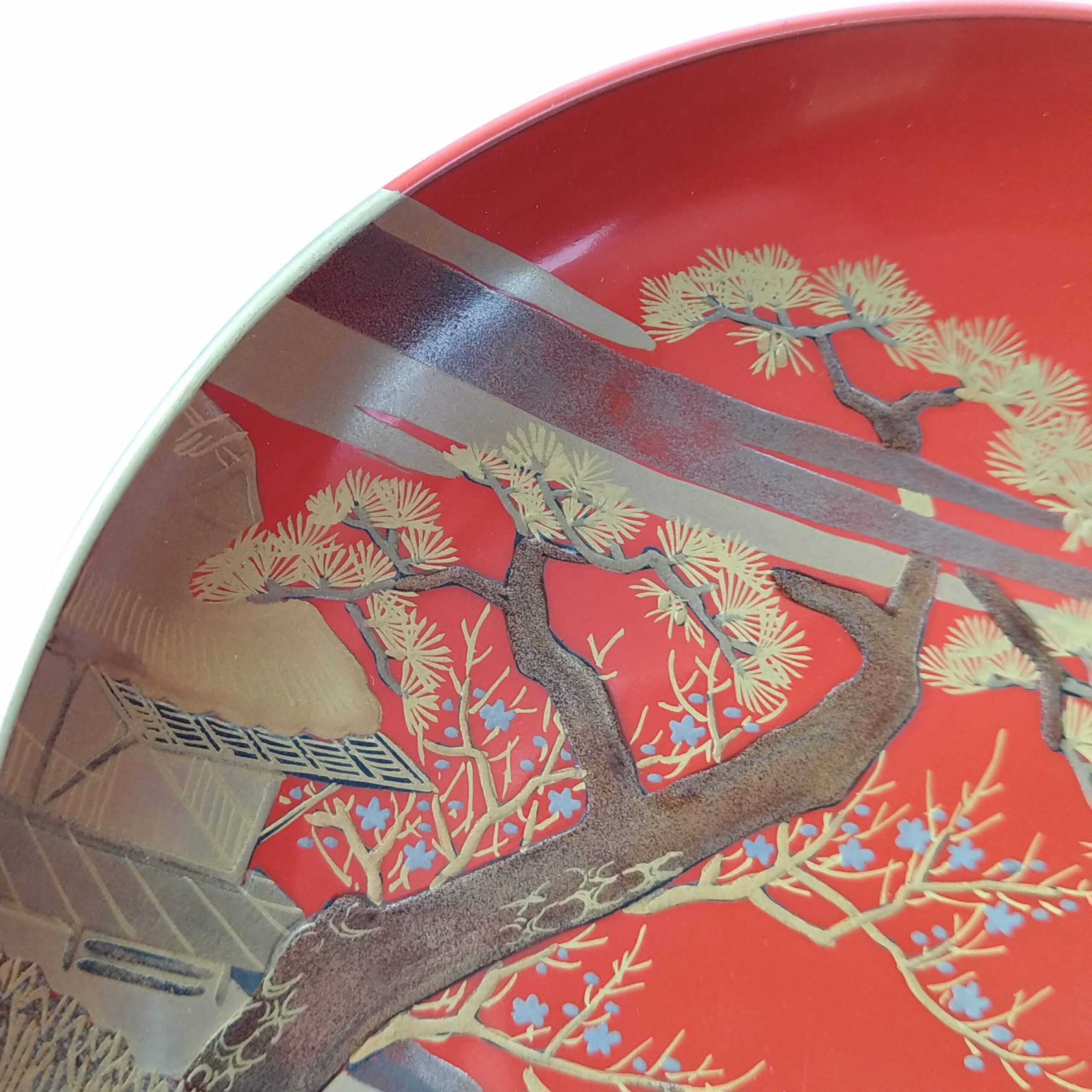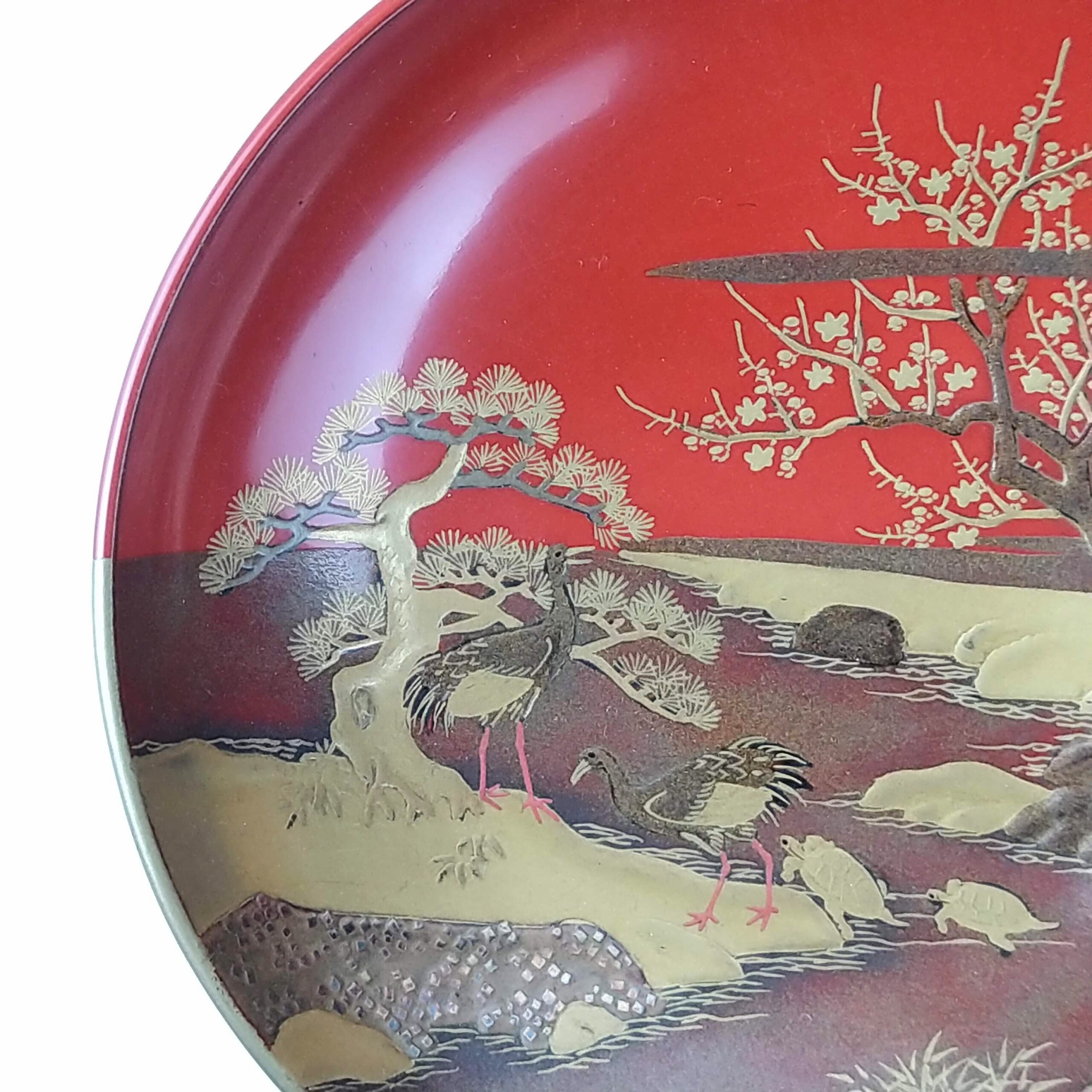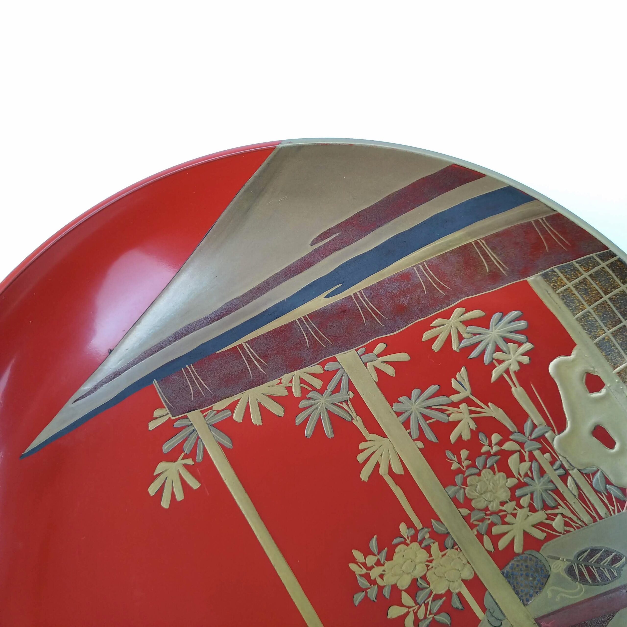 japanese antique Gold lacquer 9 sake cups with different design and stand