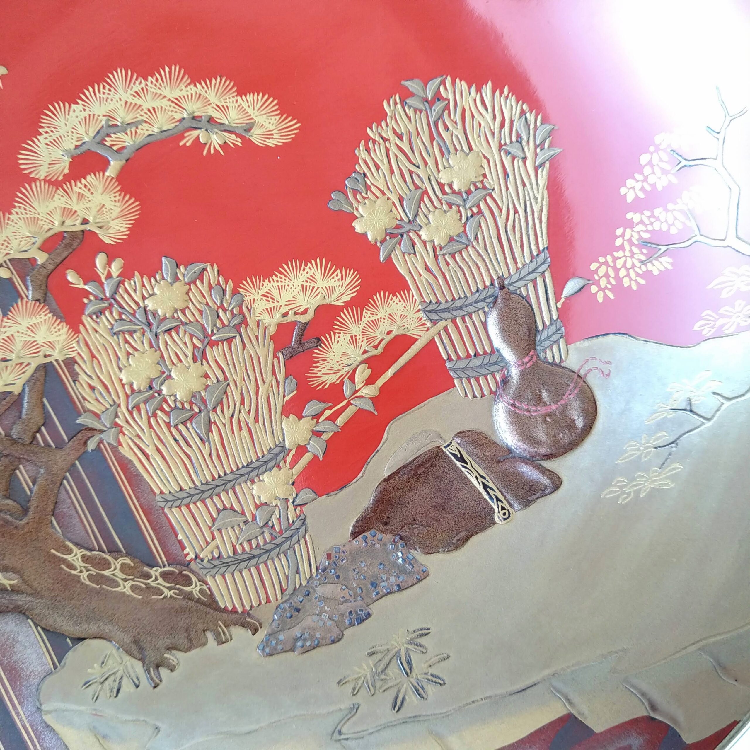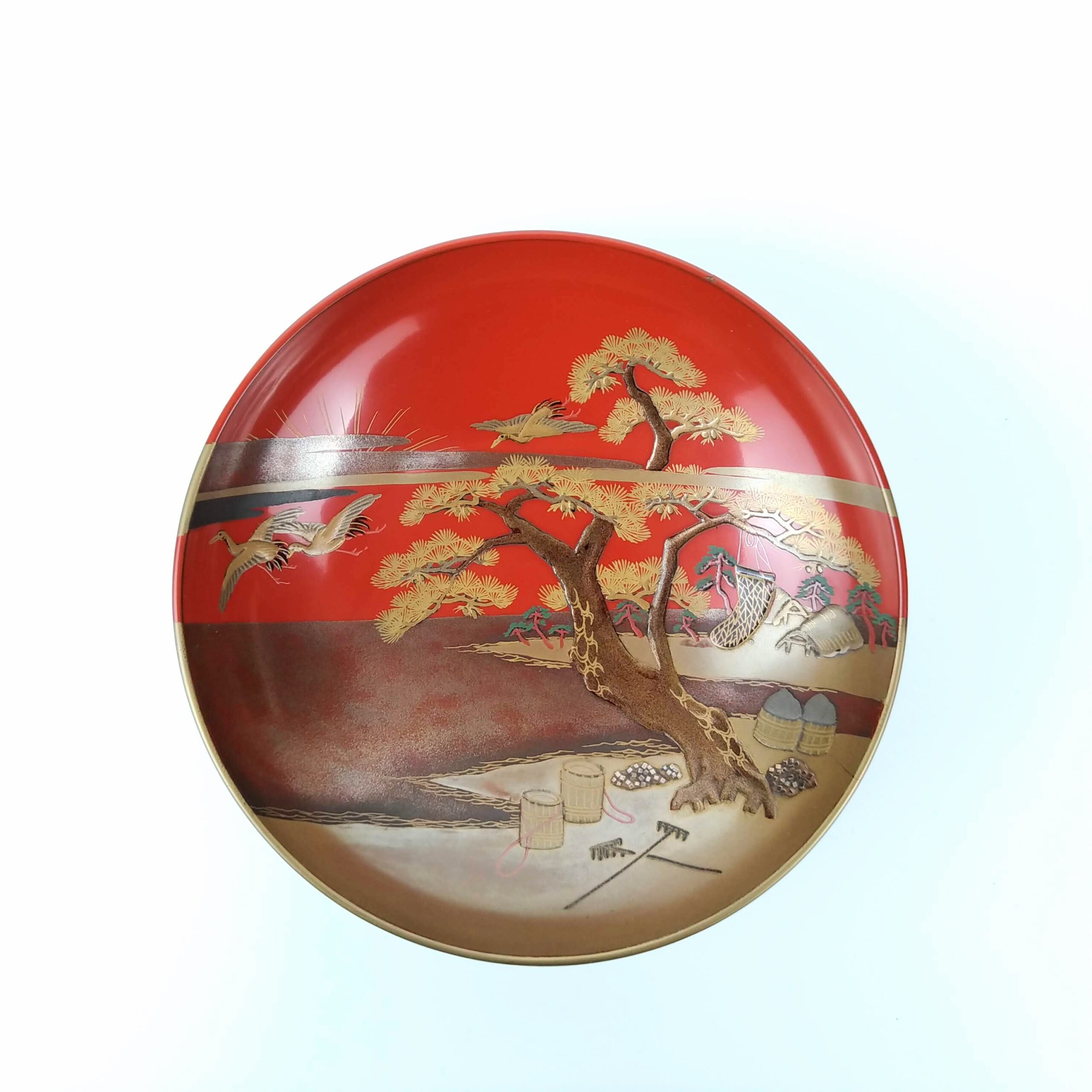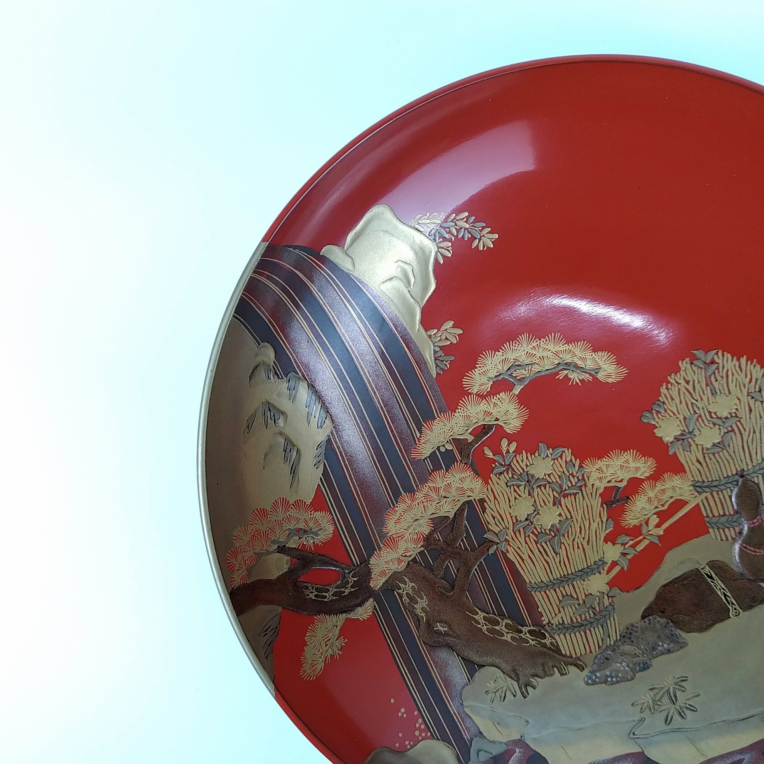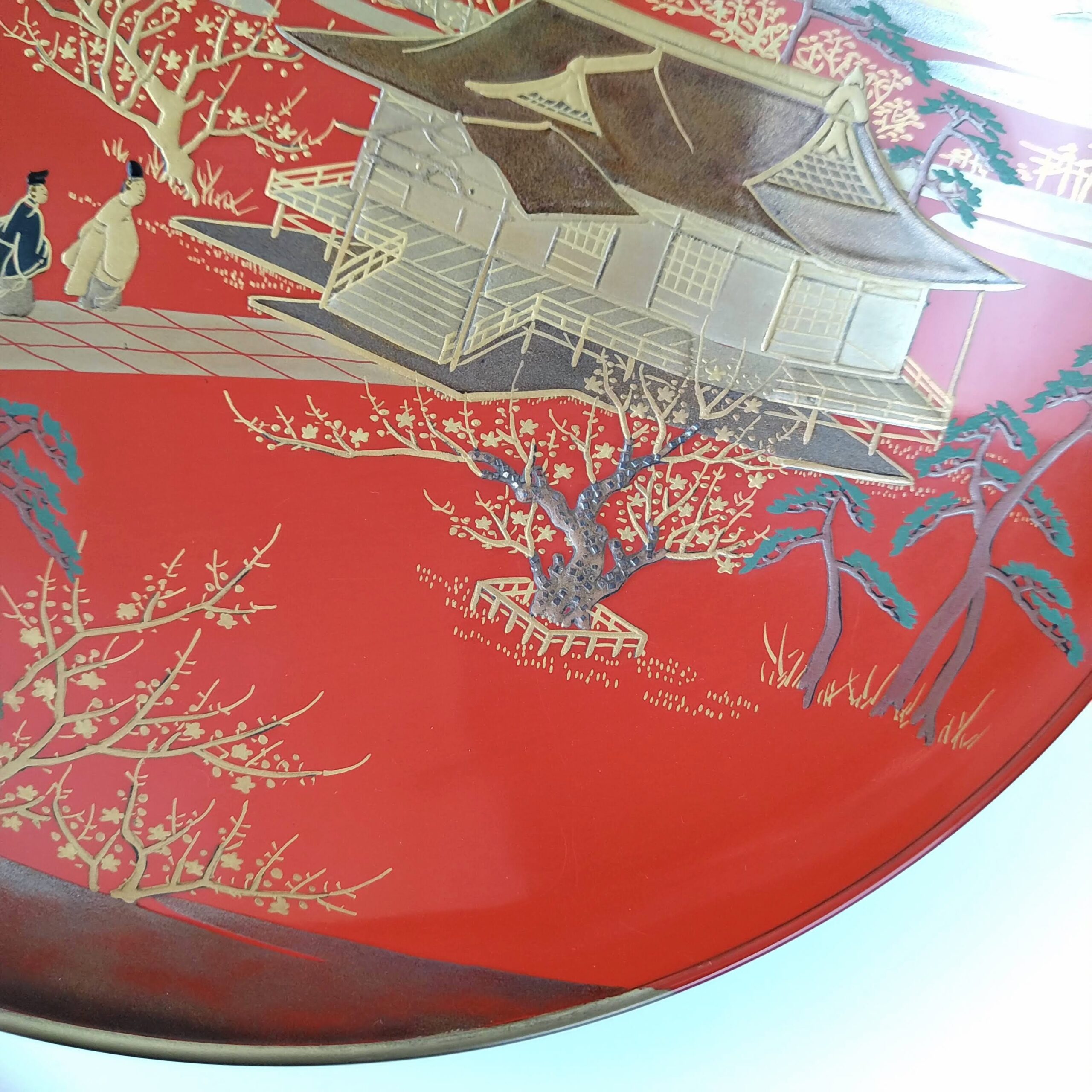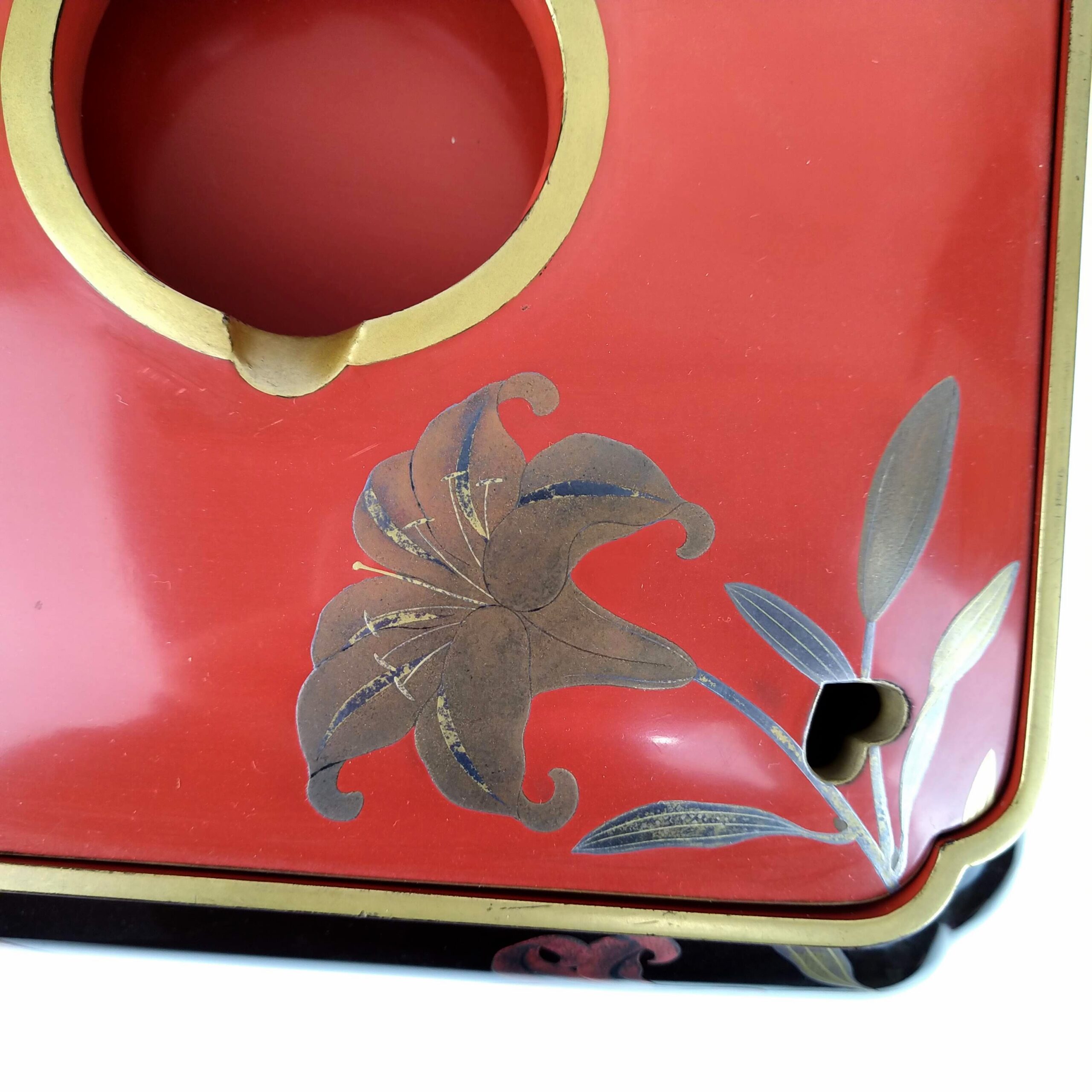 japanese antique Gold lacquer 9 sake cups with different design and stand