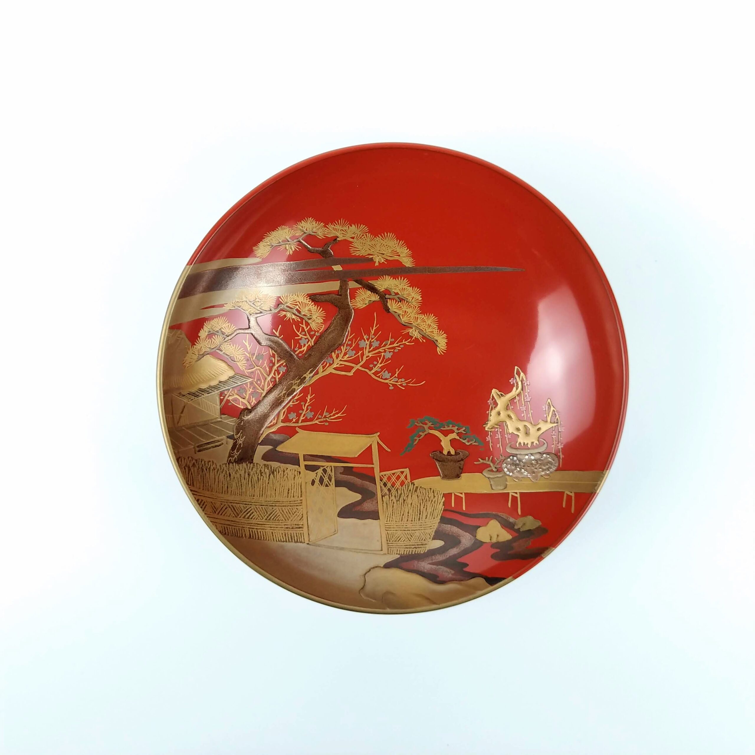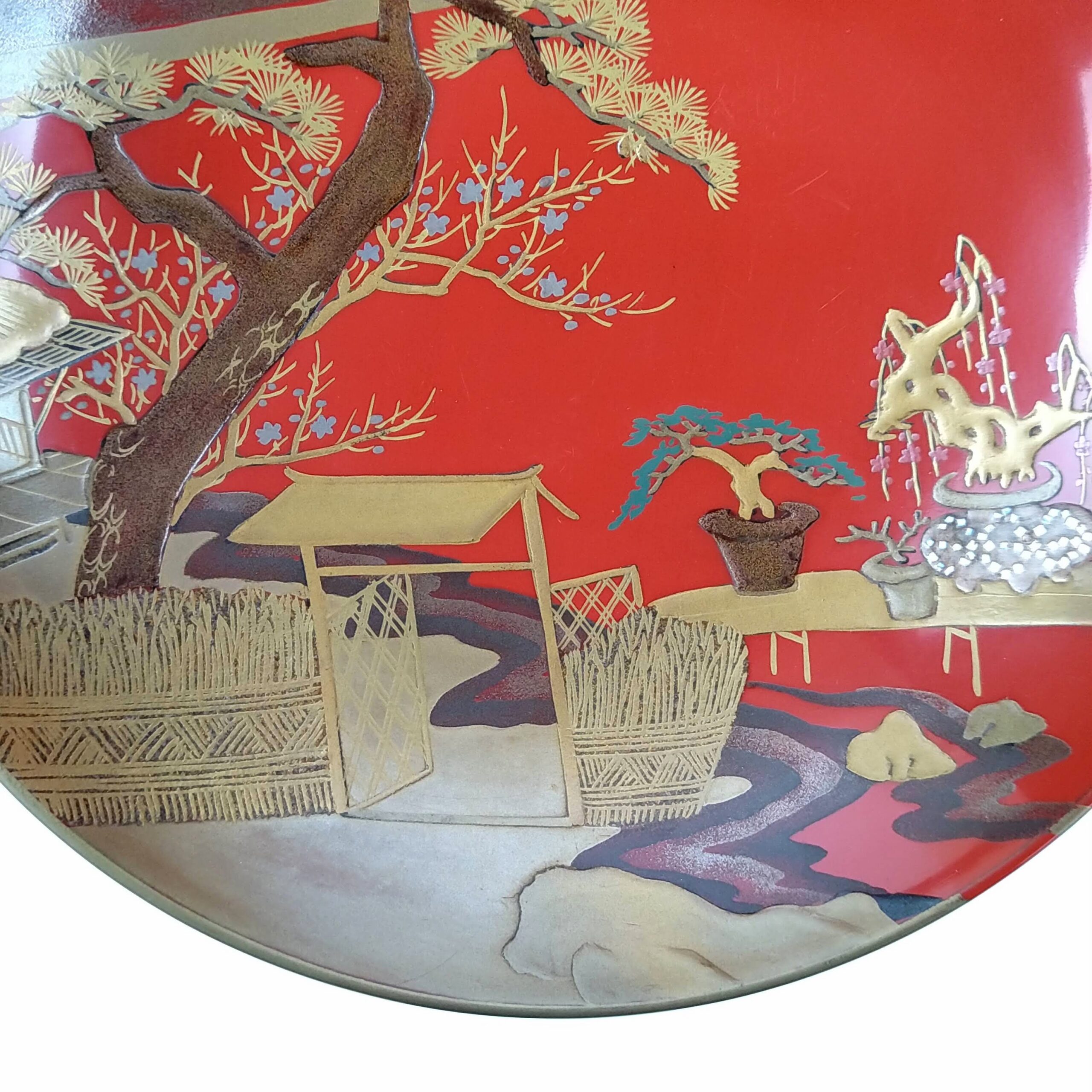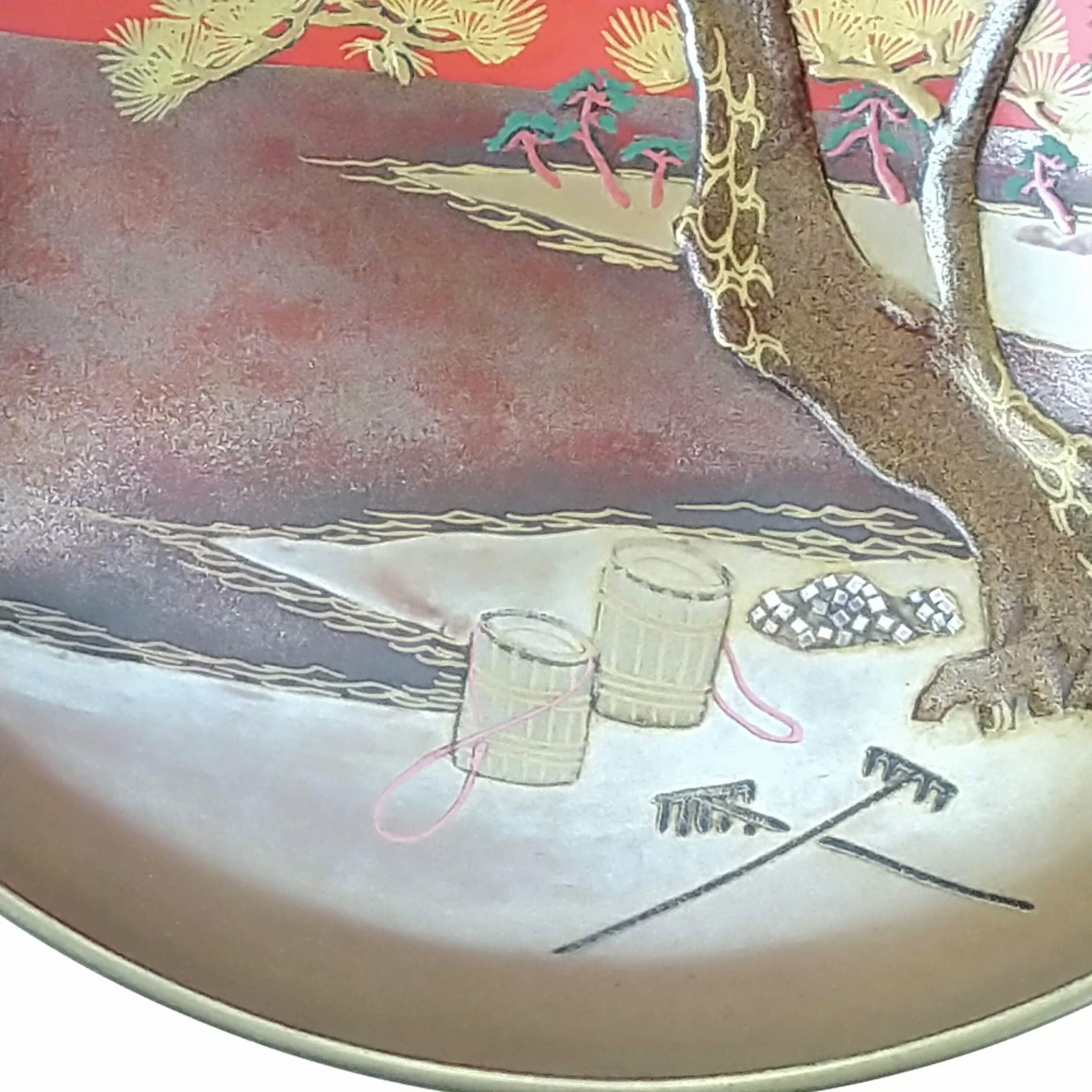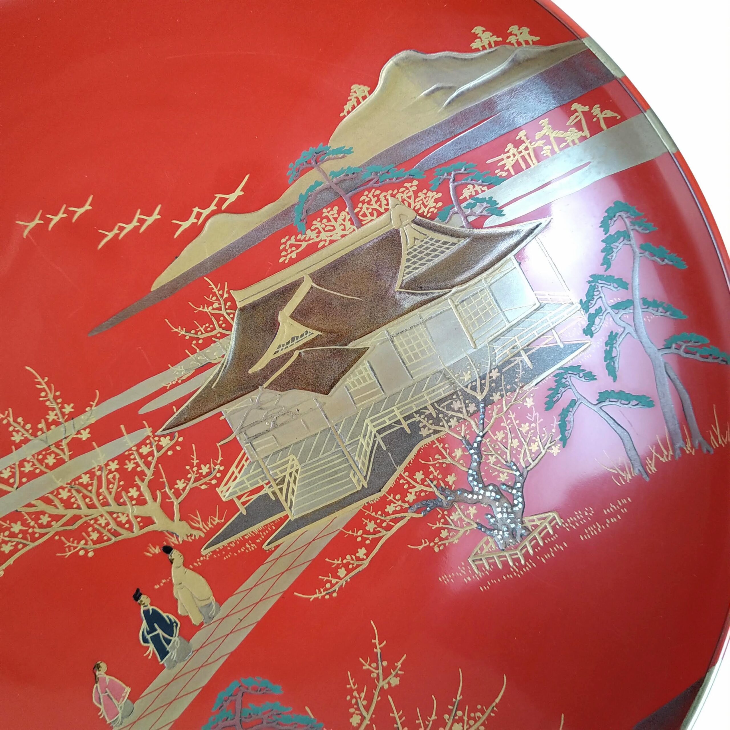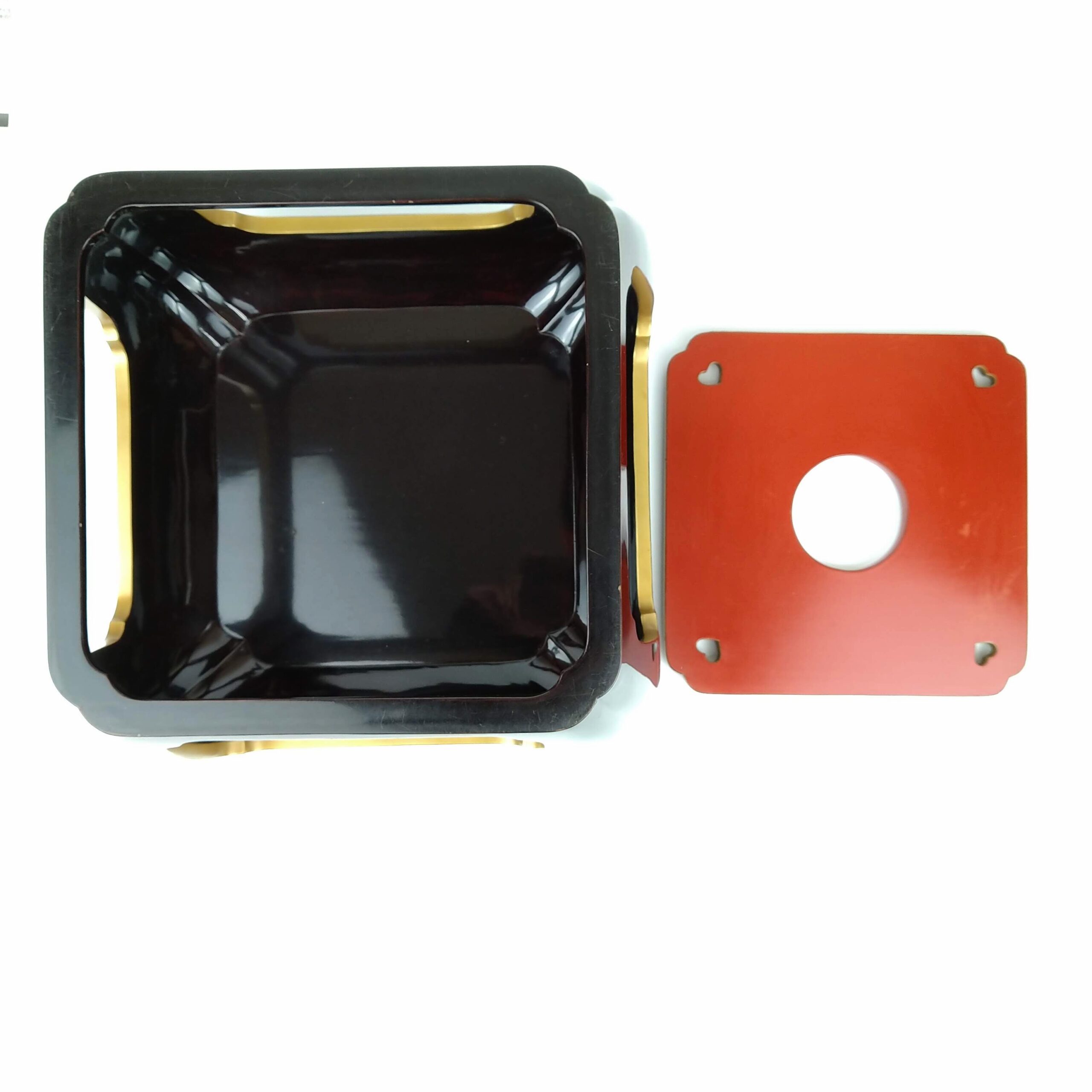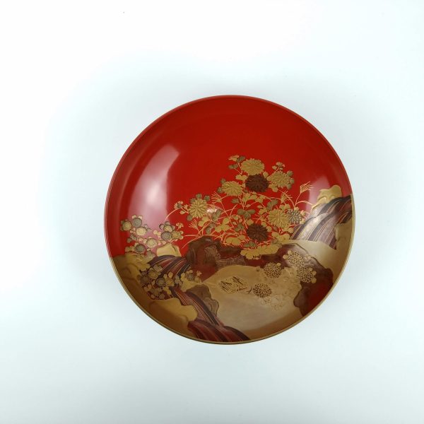 japanese antique Gold lacquer 9 sake cups with different design and stand