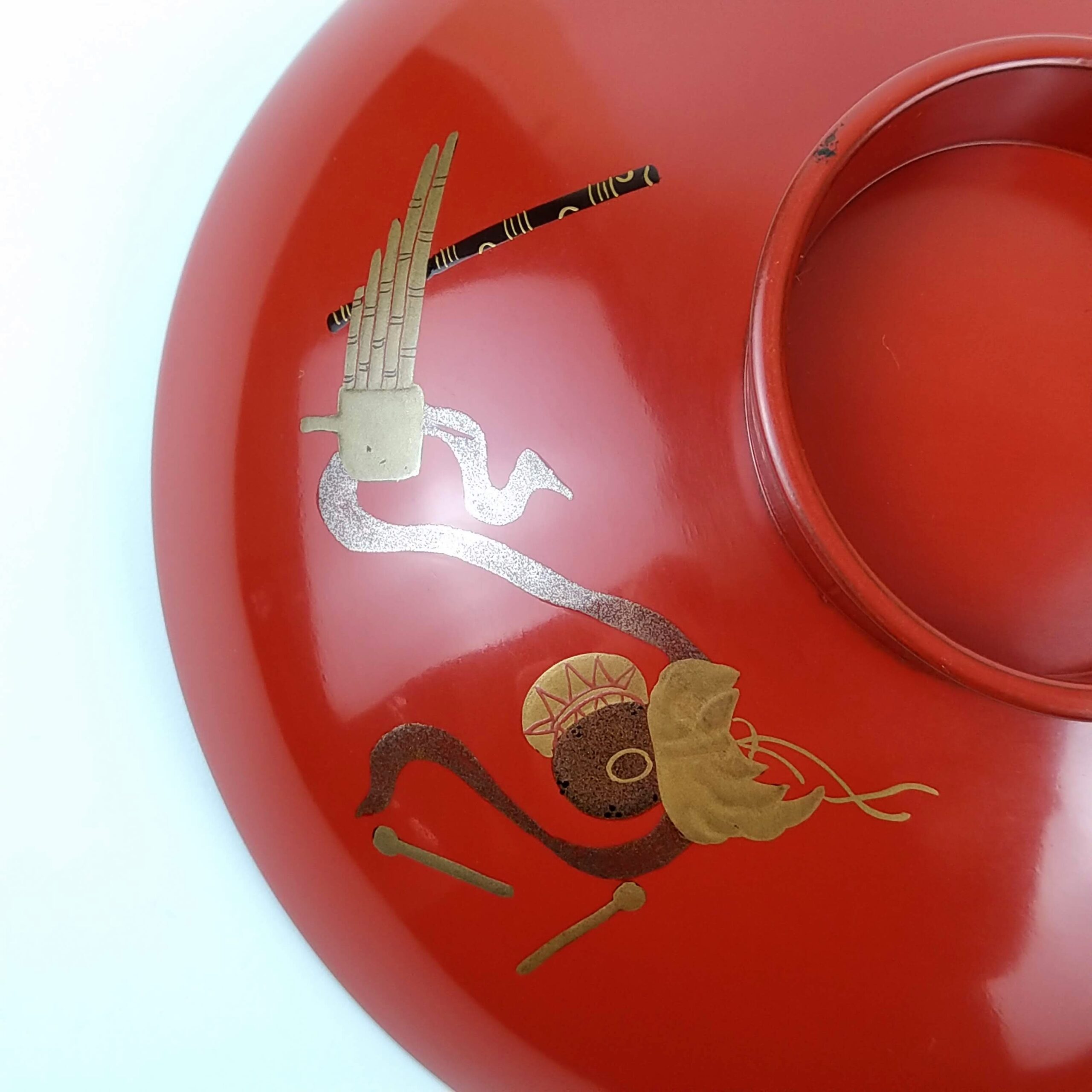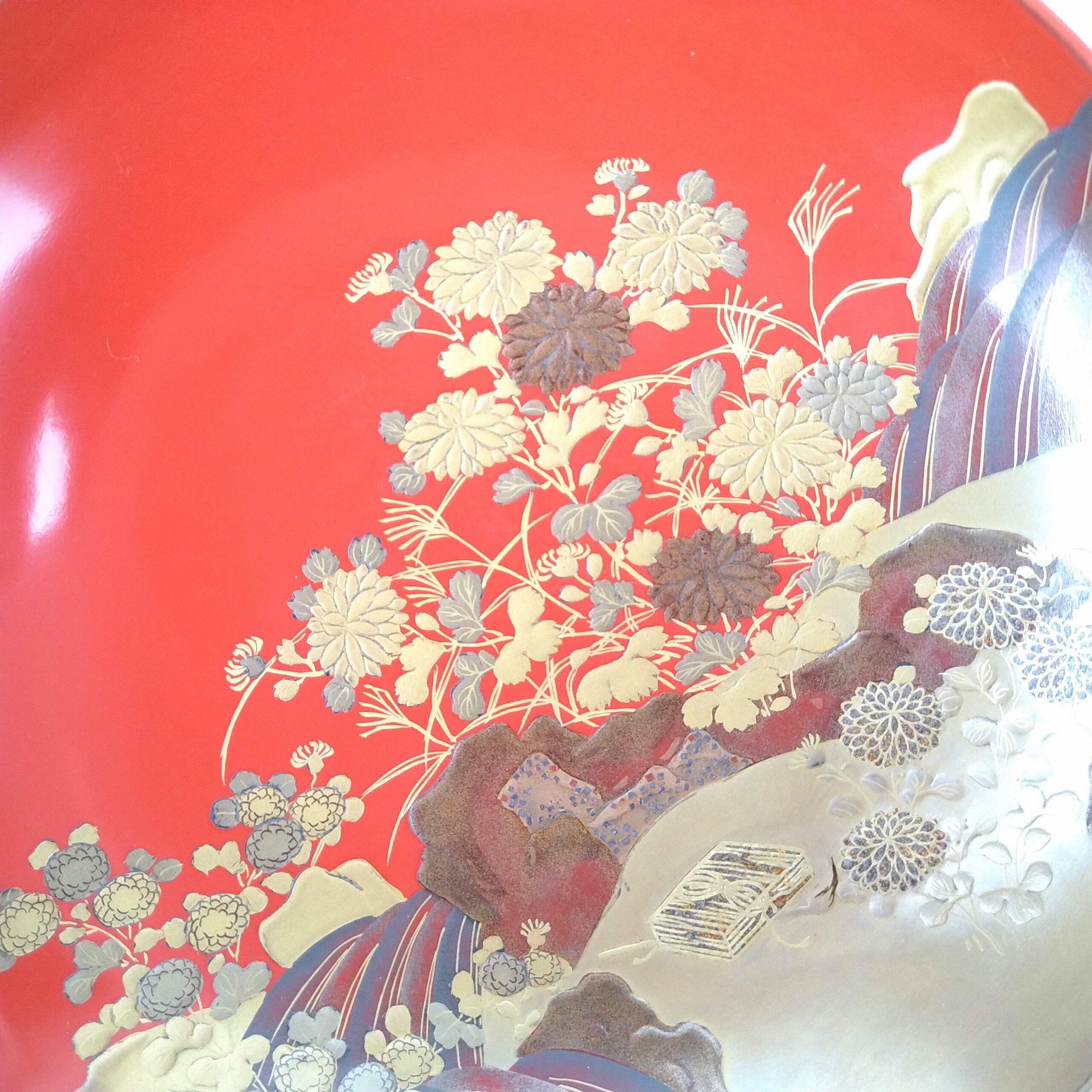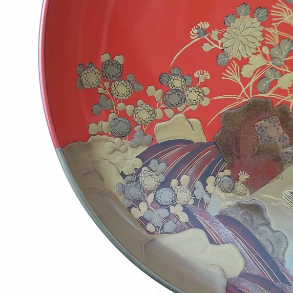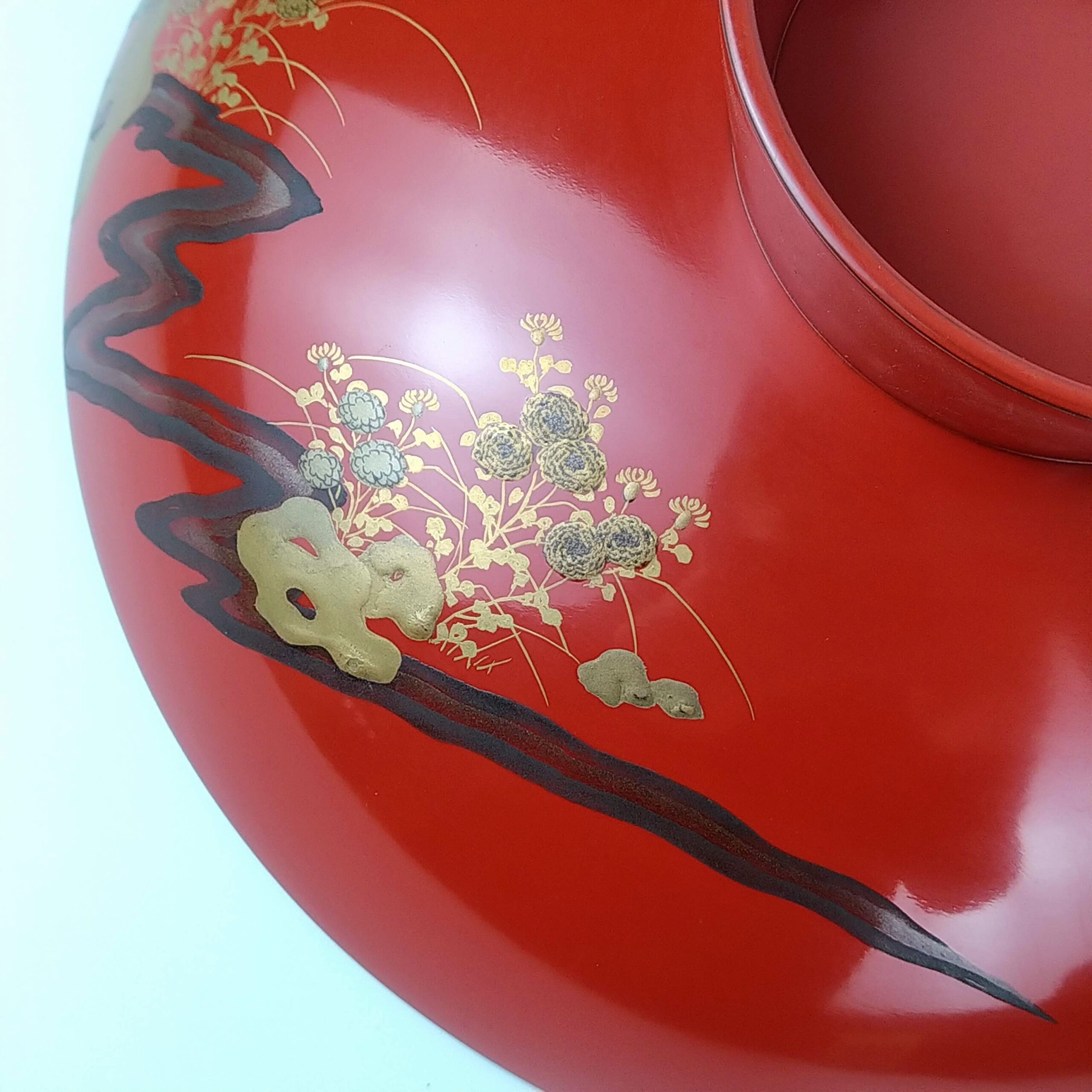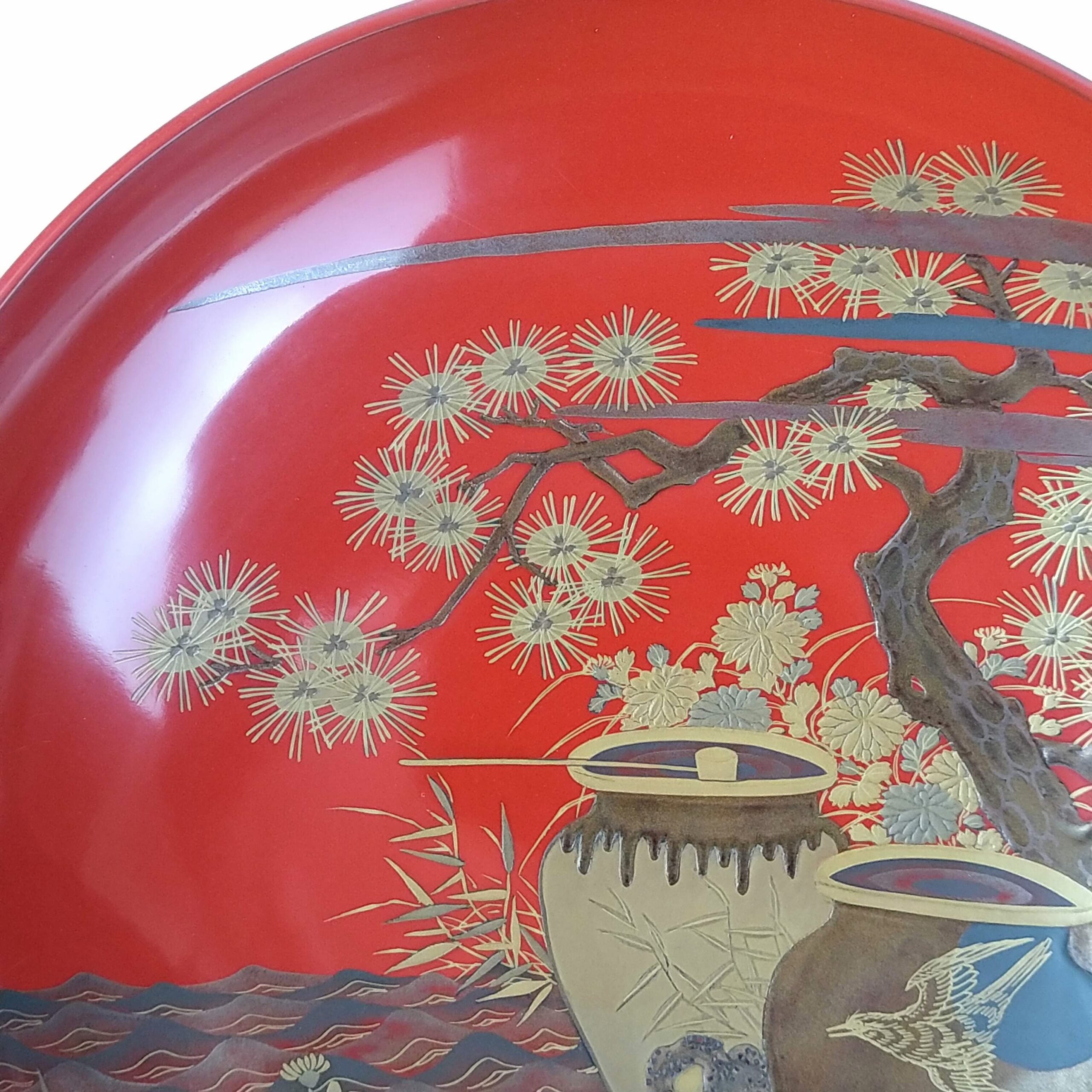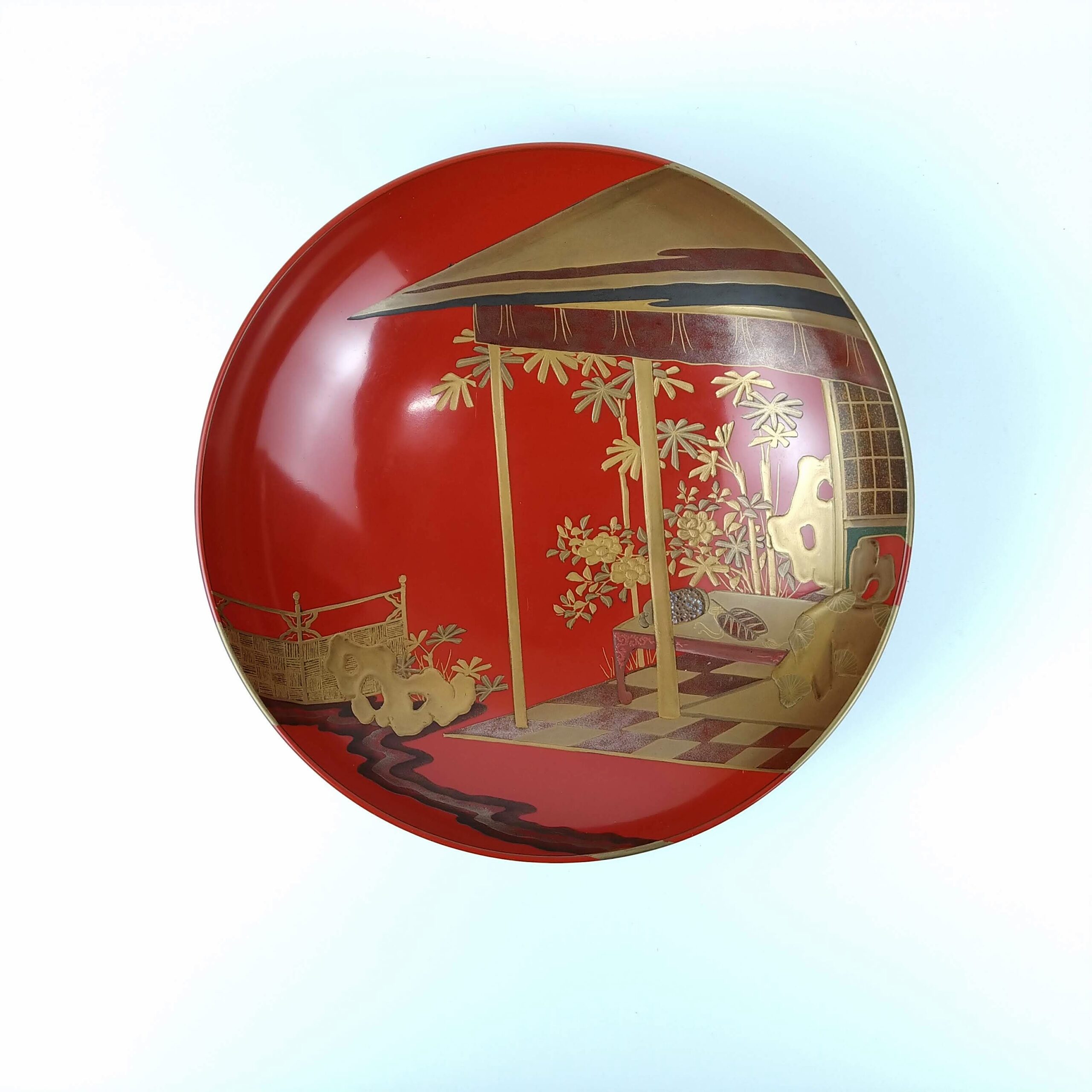 japanese antique Gold lacquer 9 sake cups with different design and stand