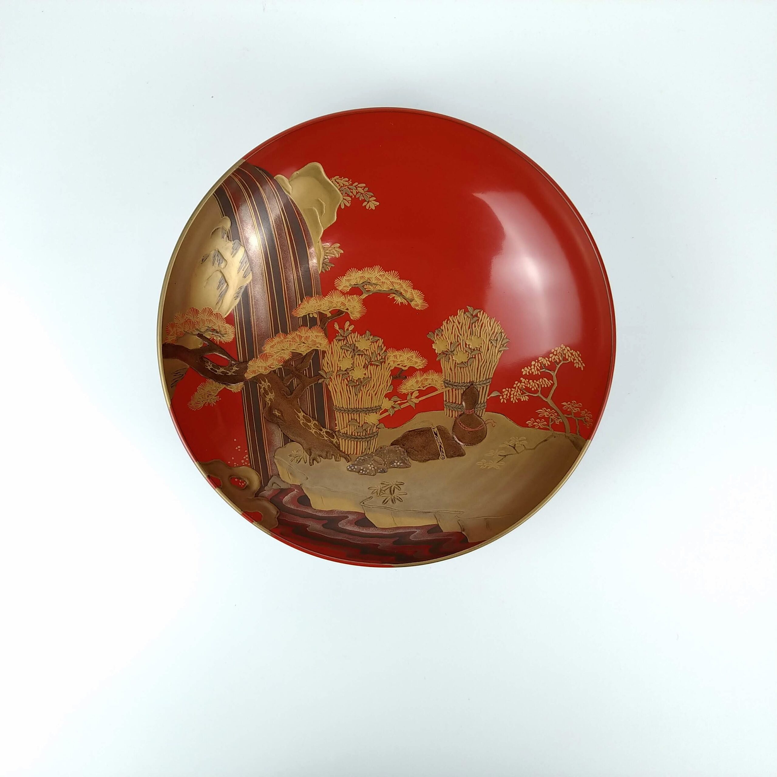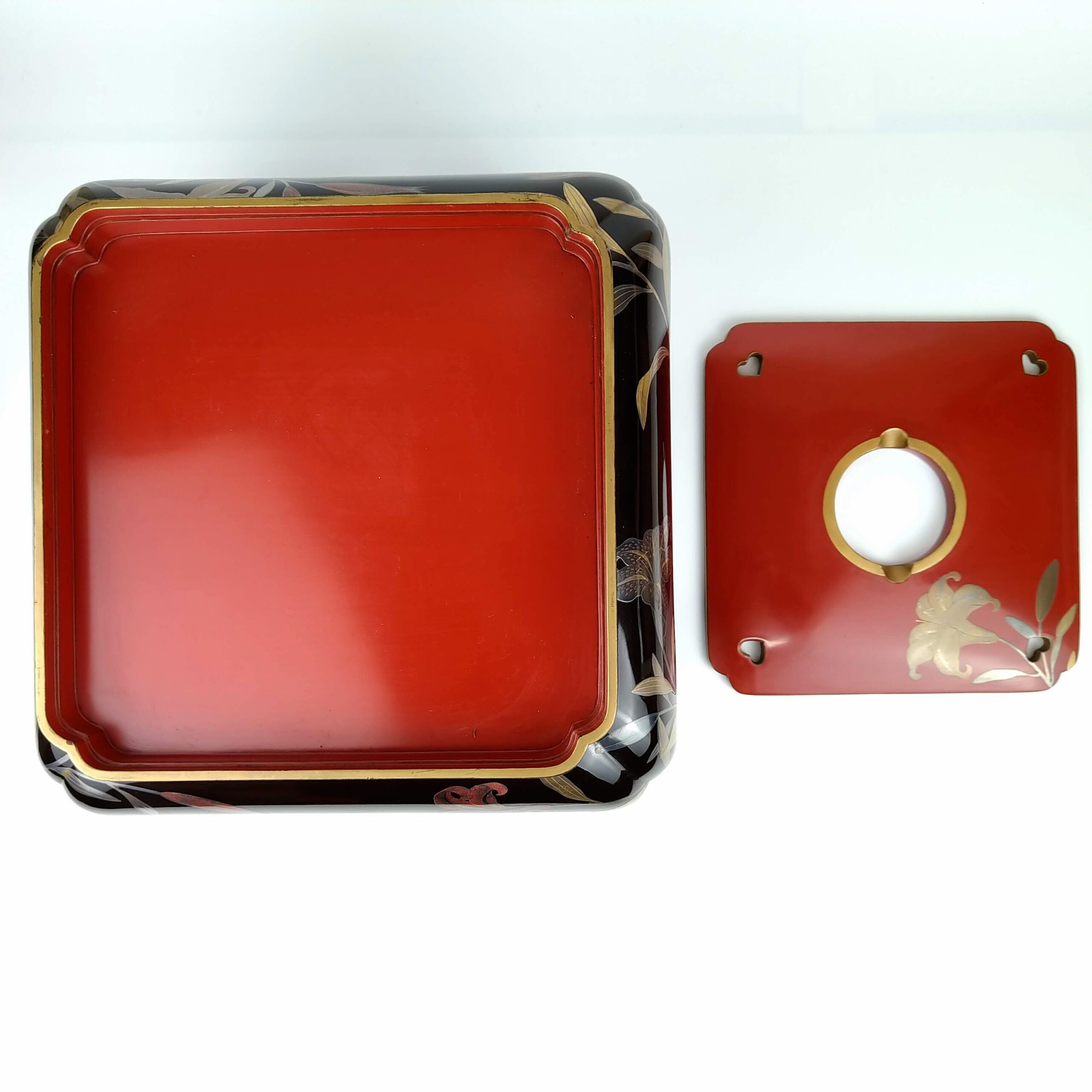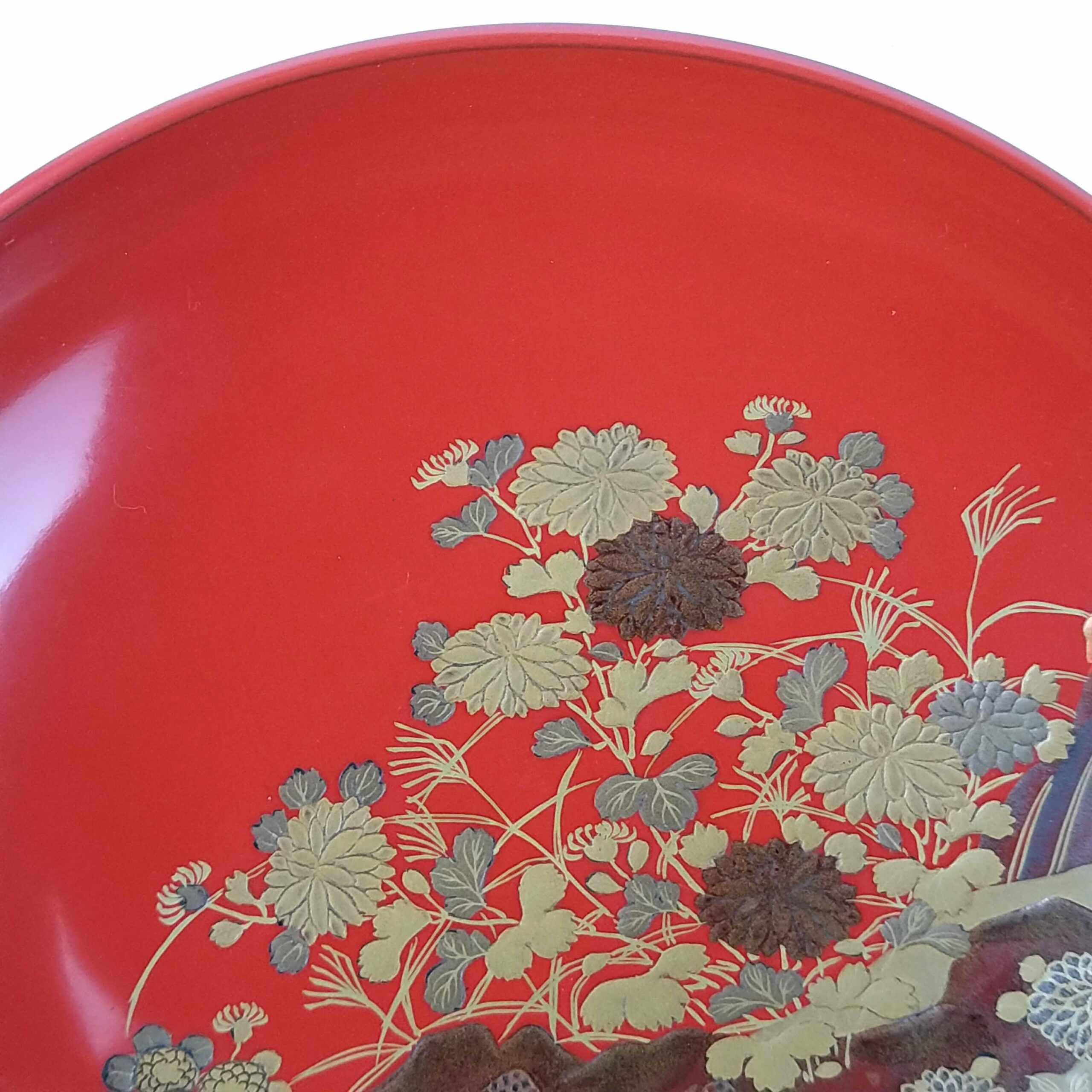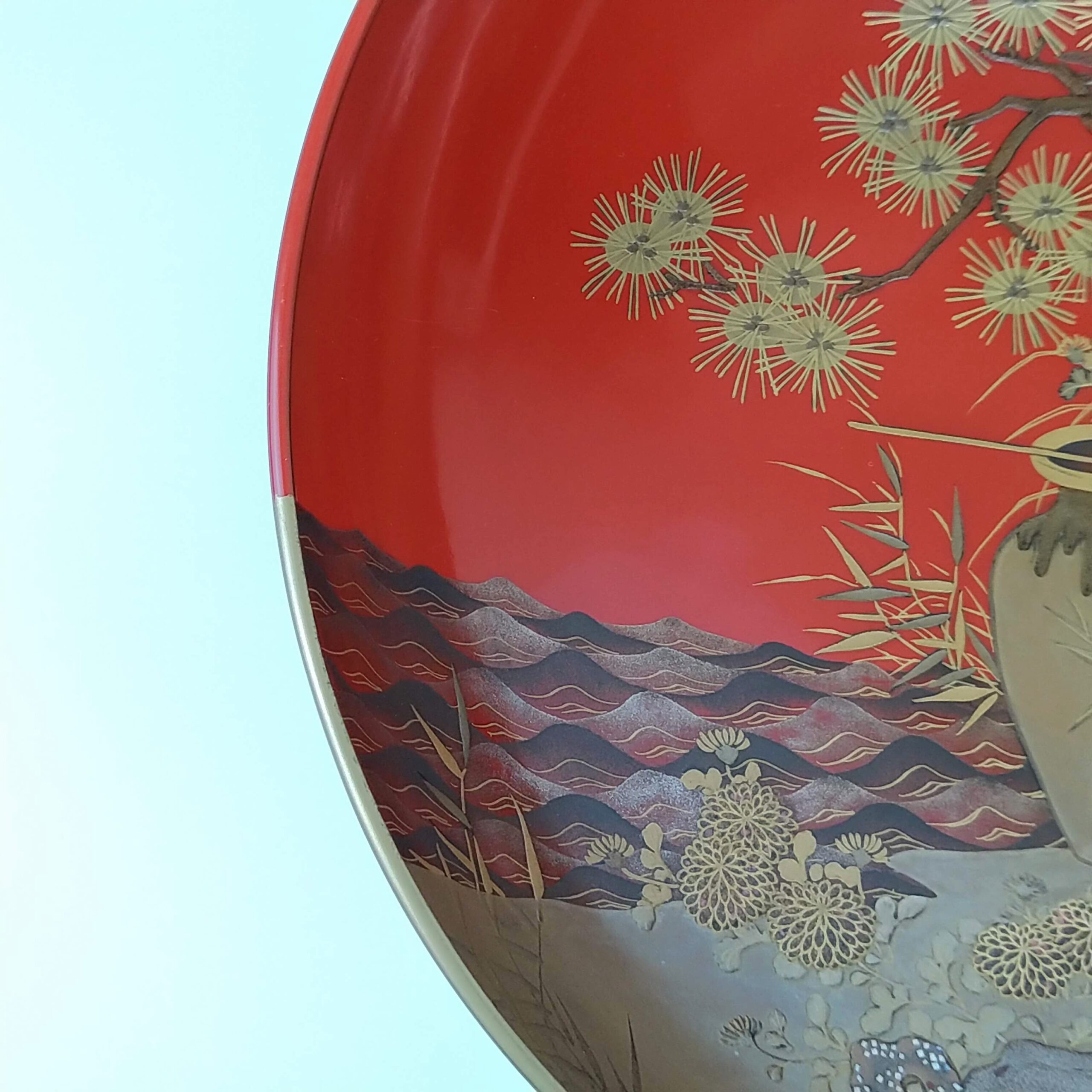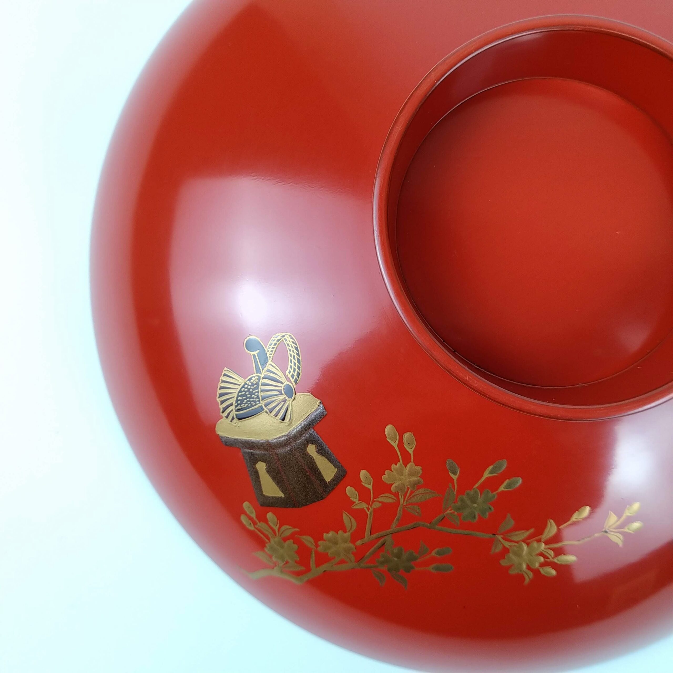 japanese antique Gold lacquer 9 sake cups with different design and stand