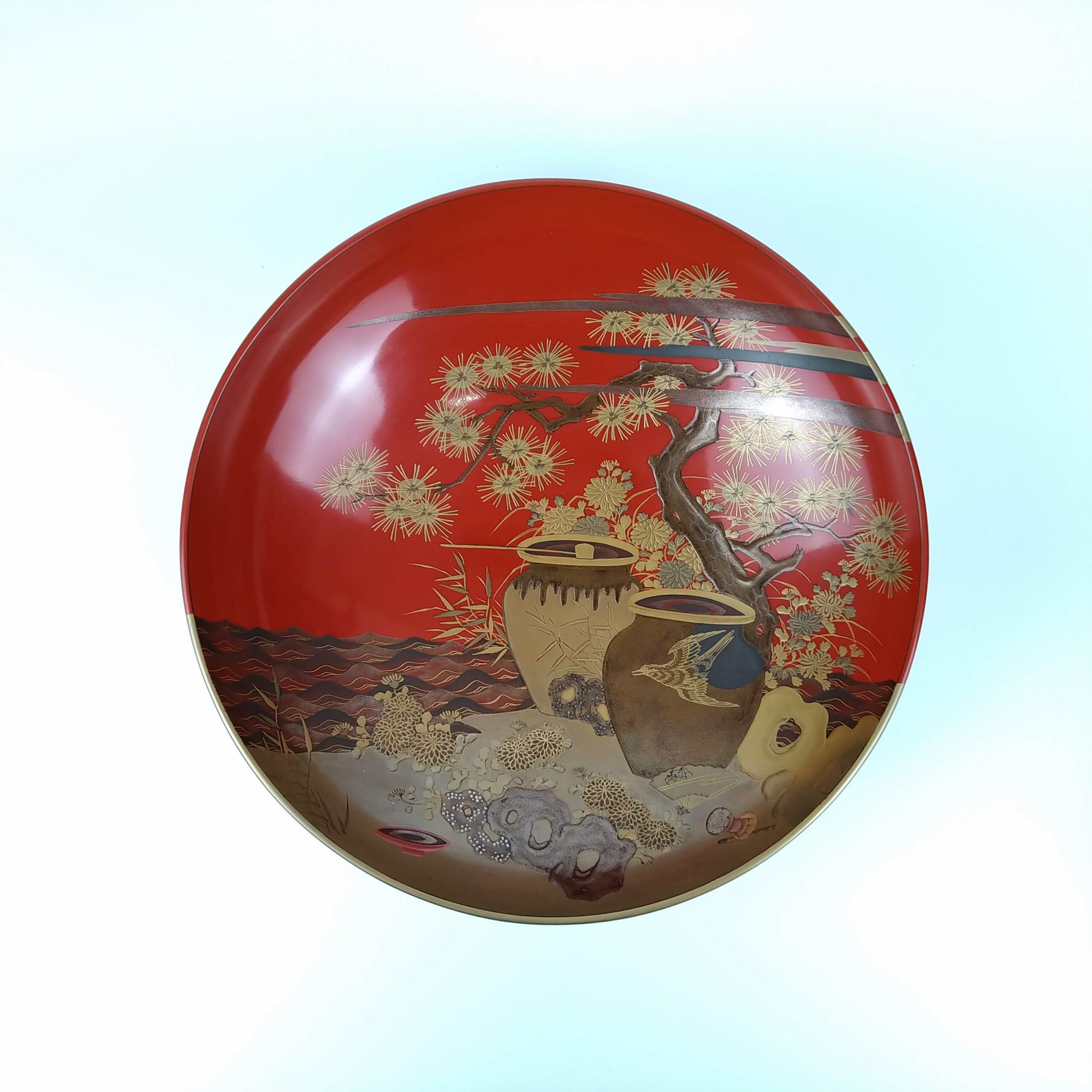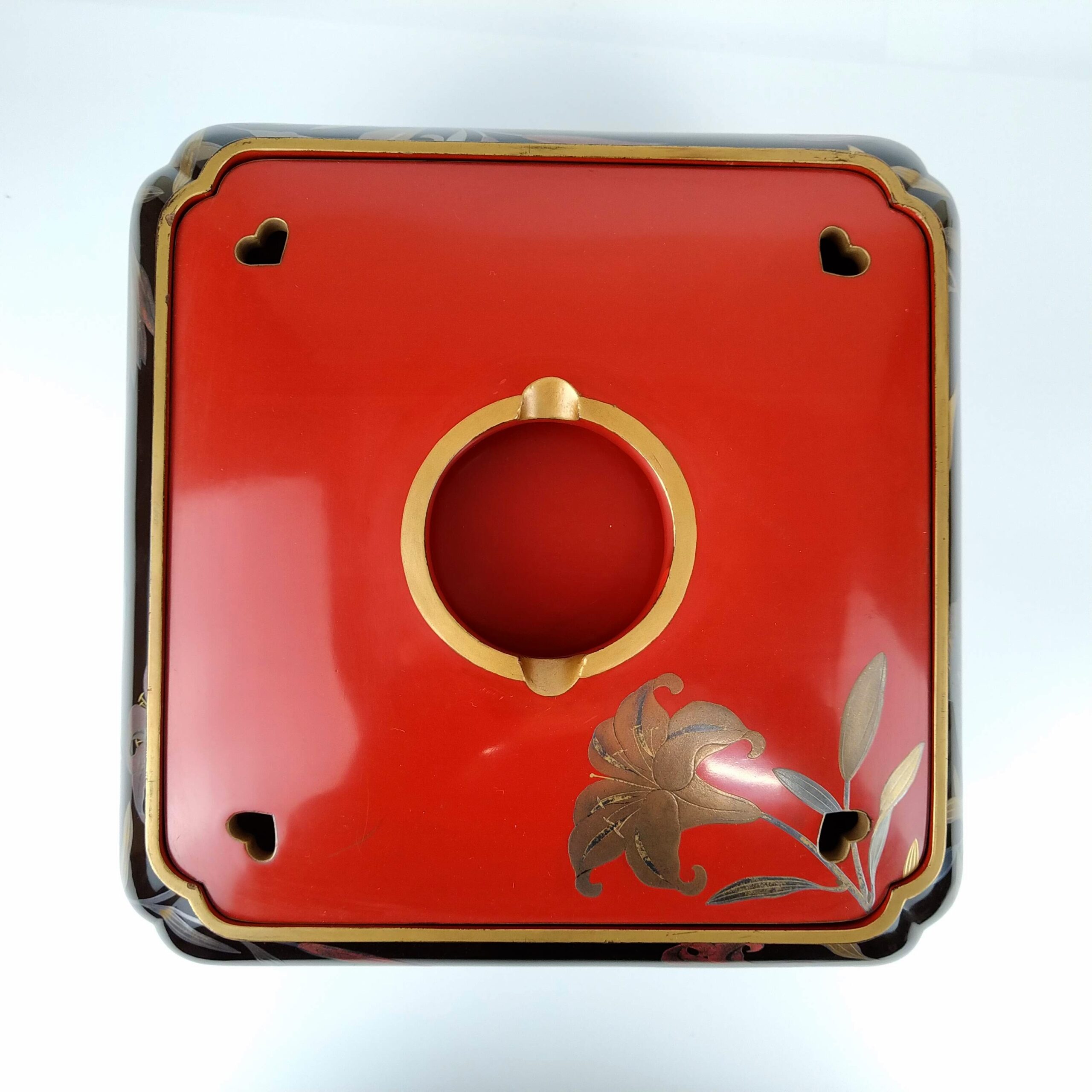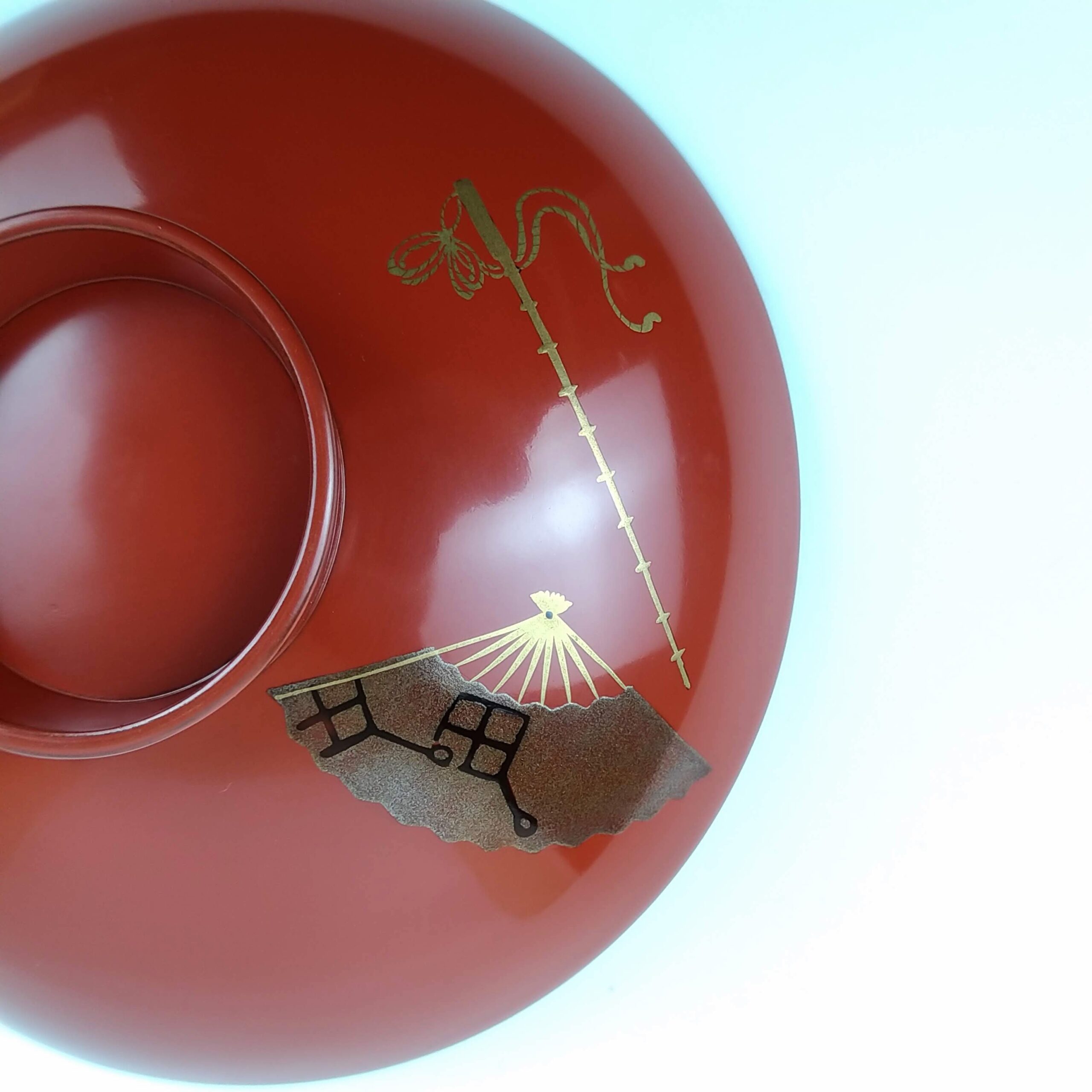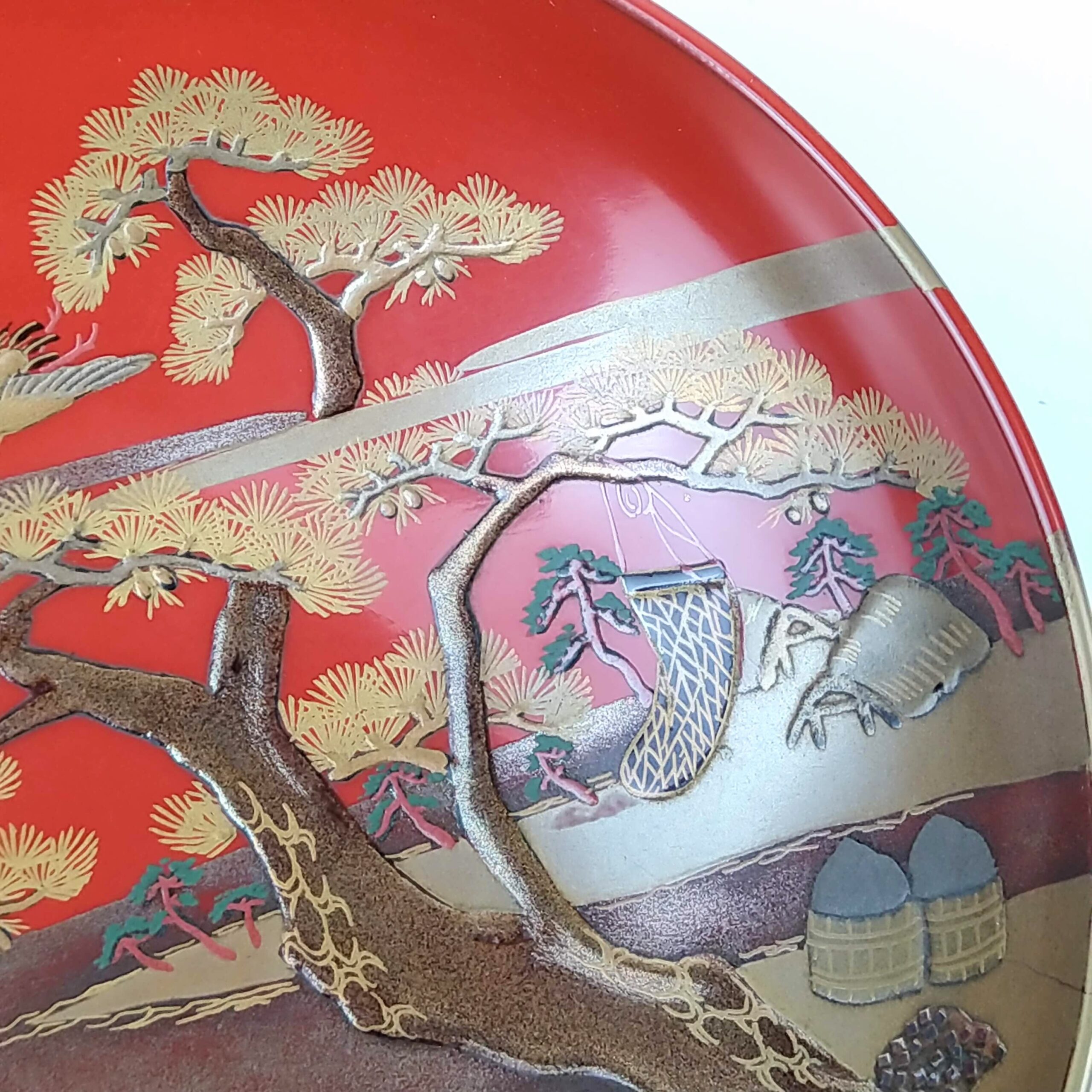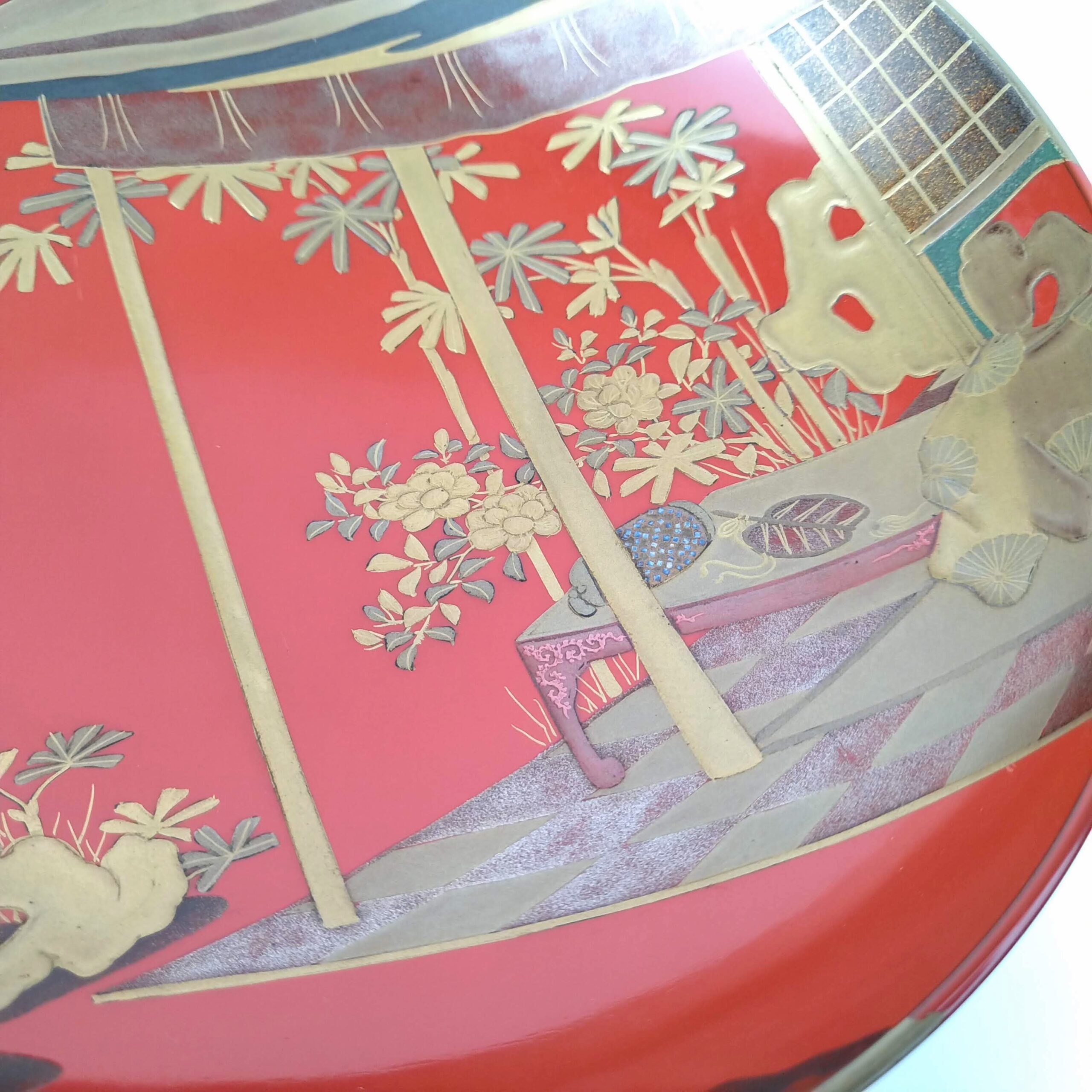 japanese antique Gold lacquer 9 sake cups with different design and stand