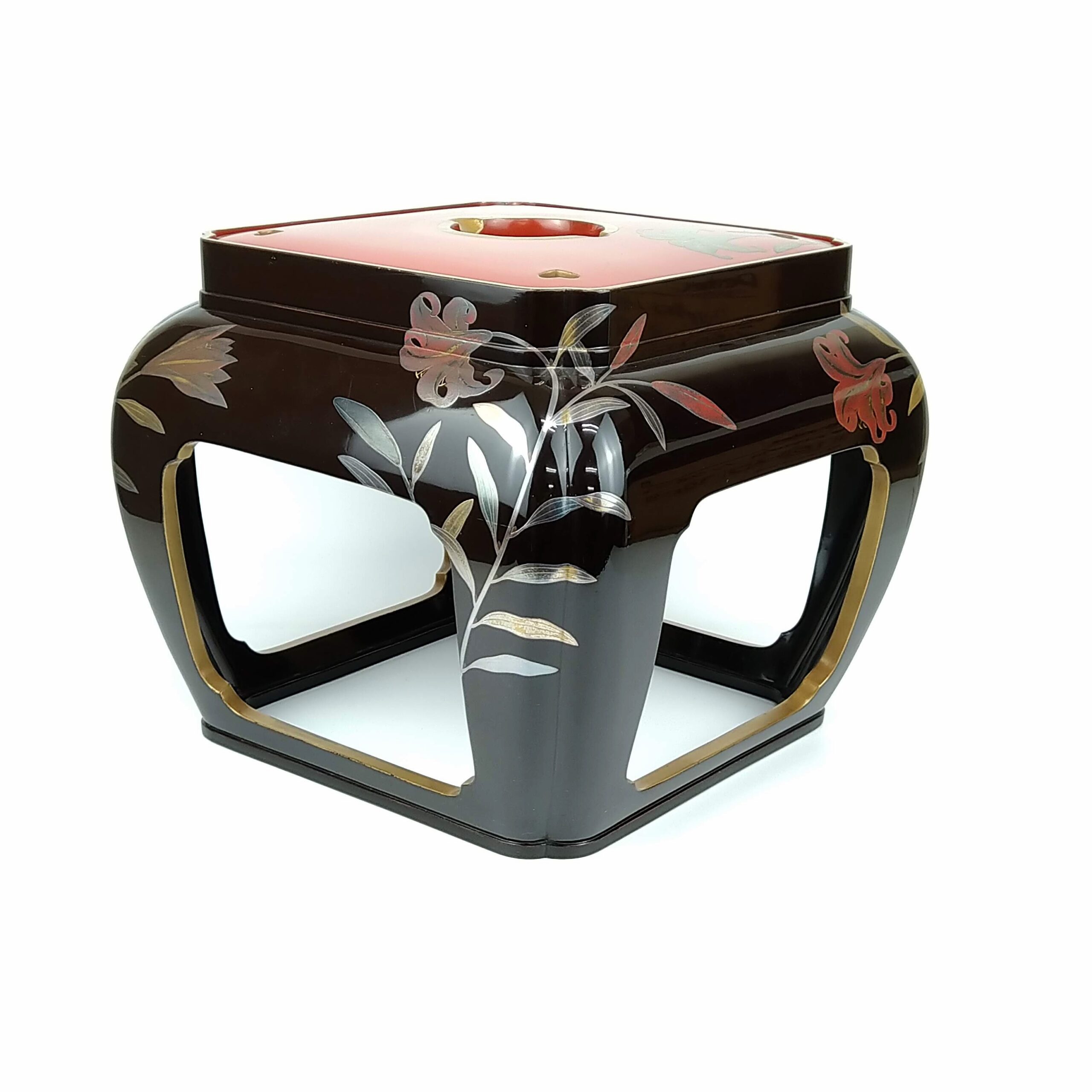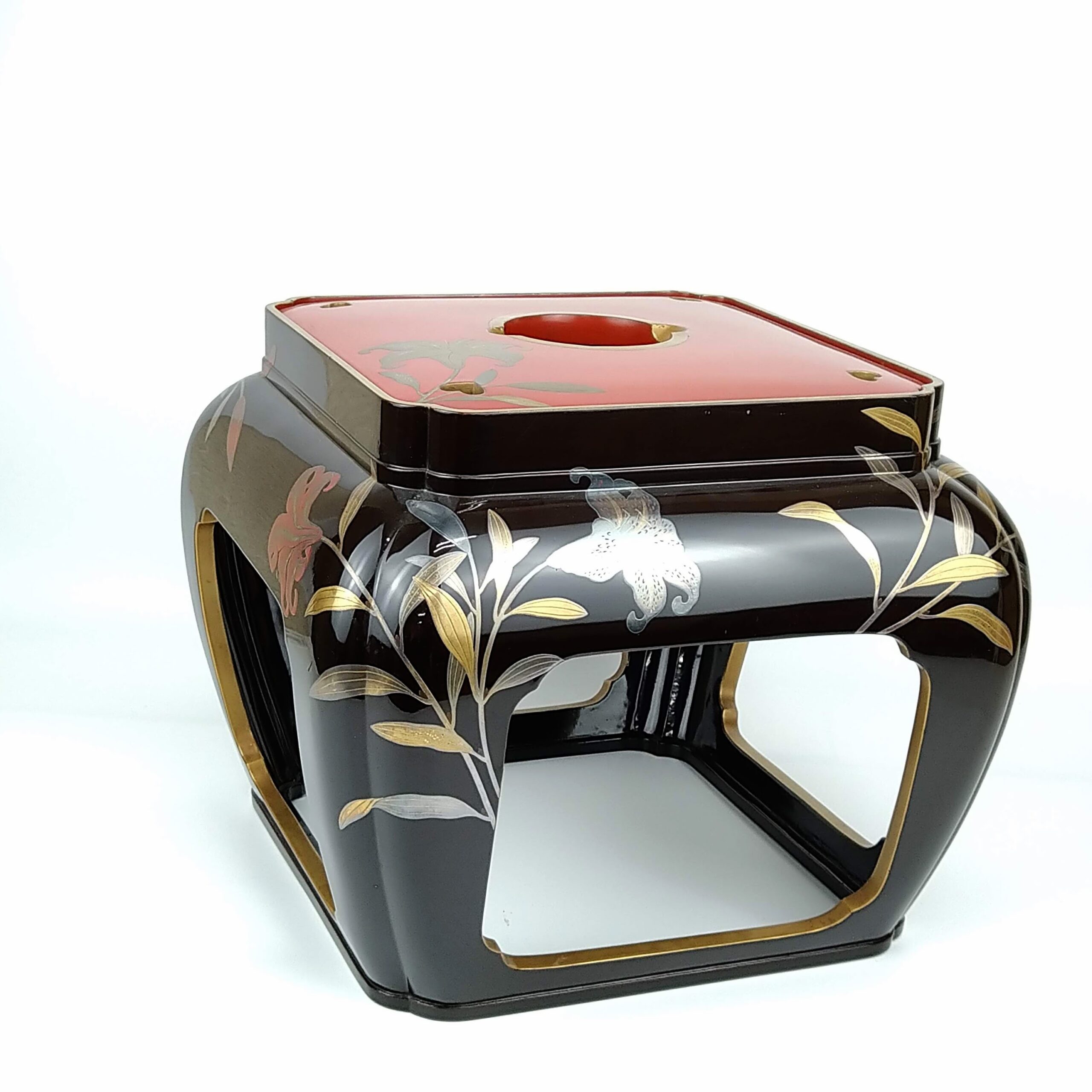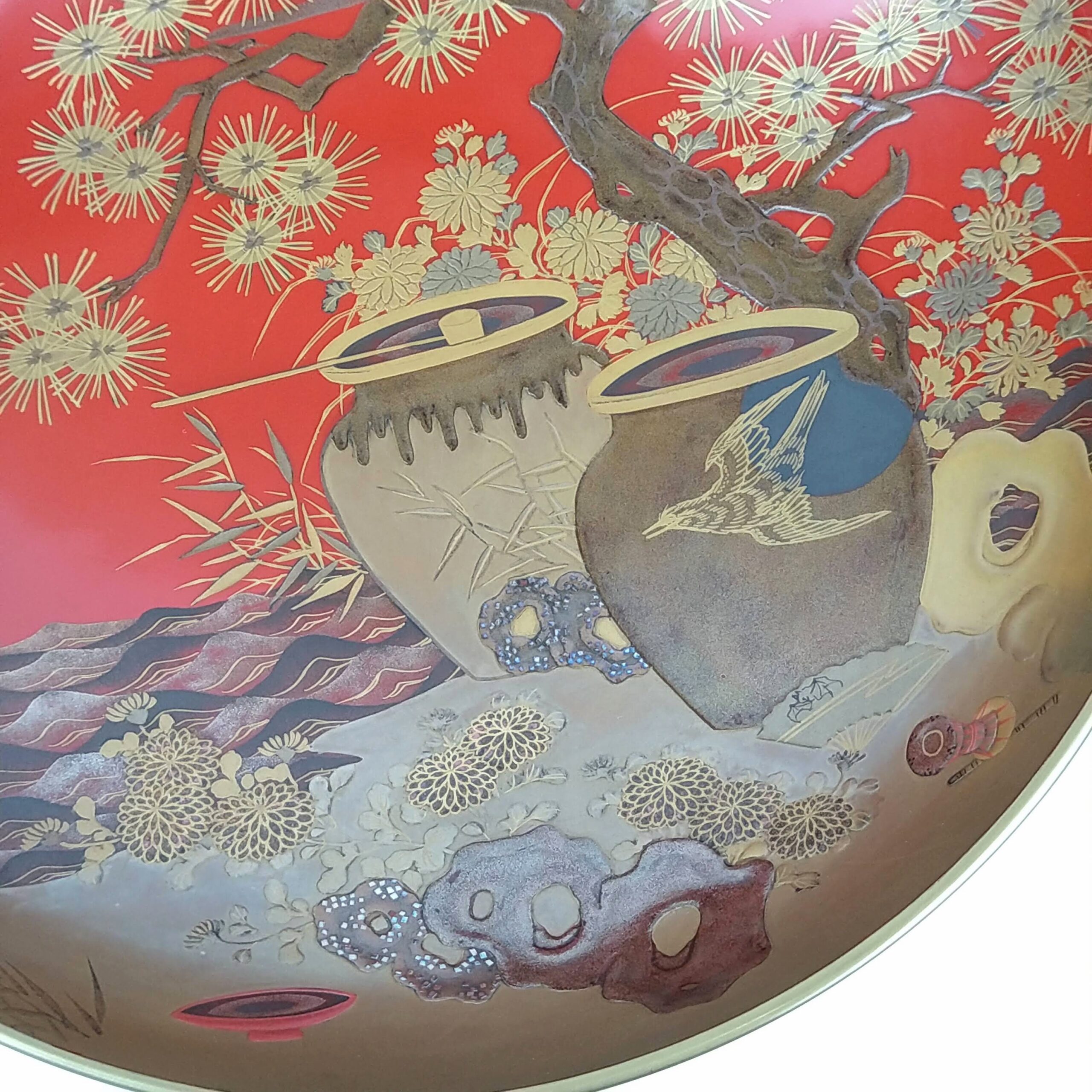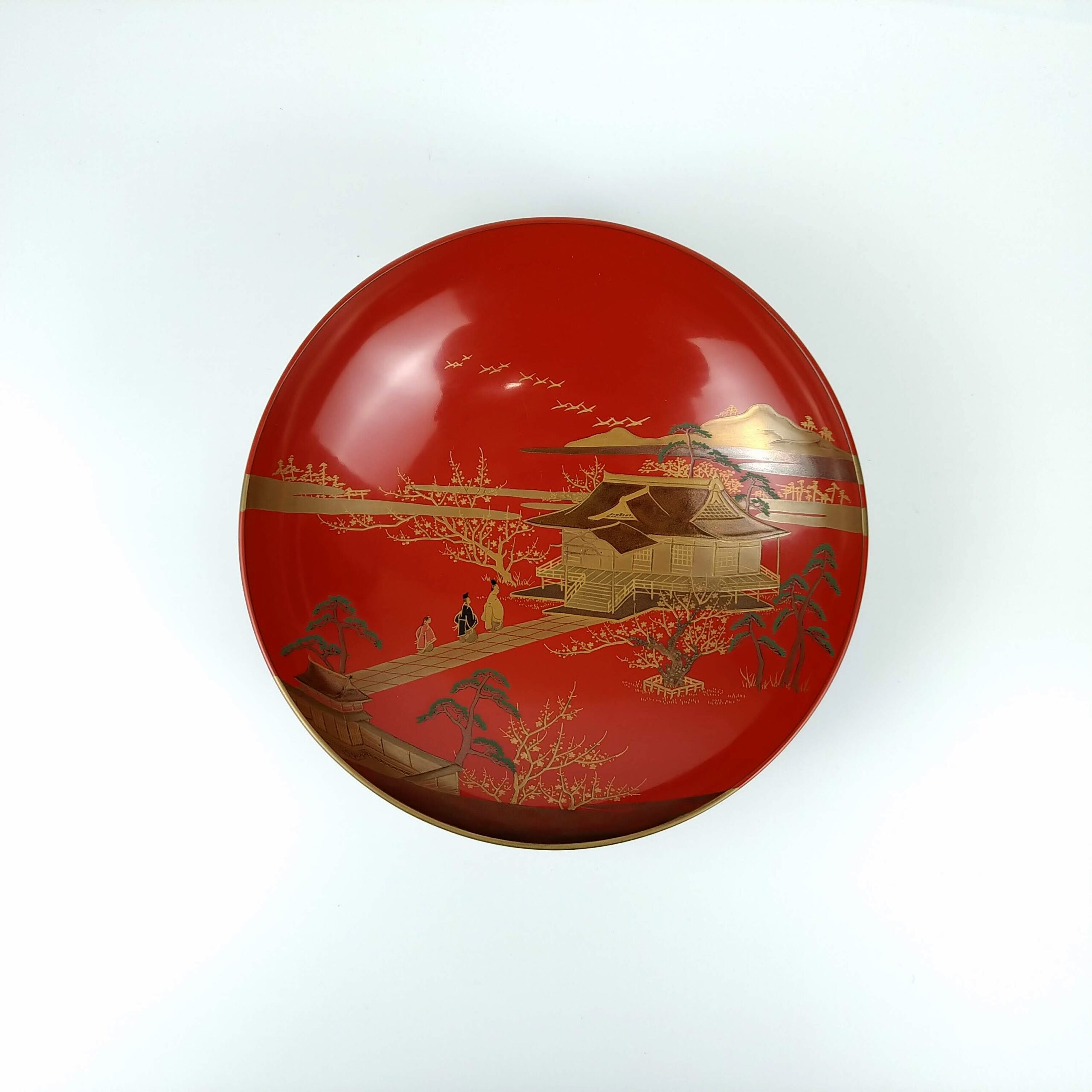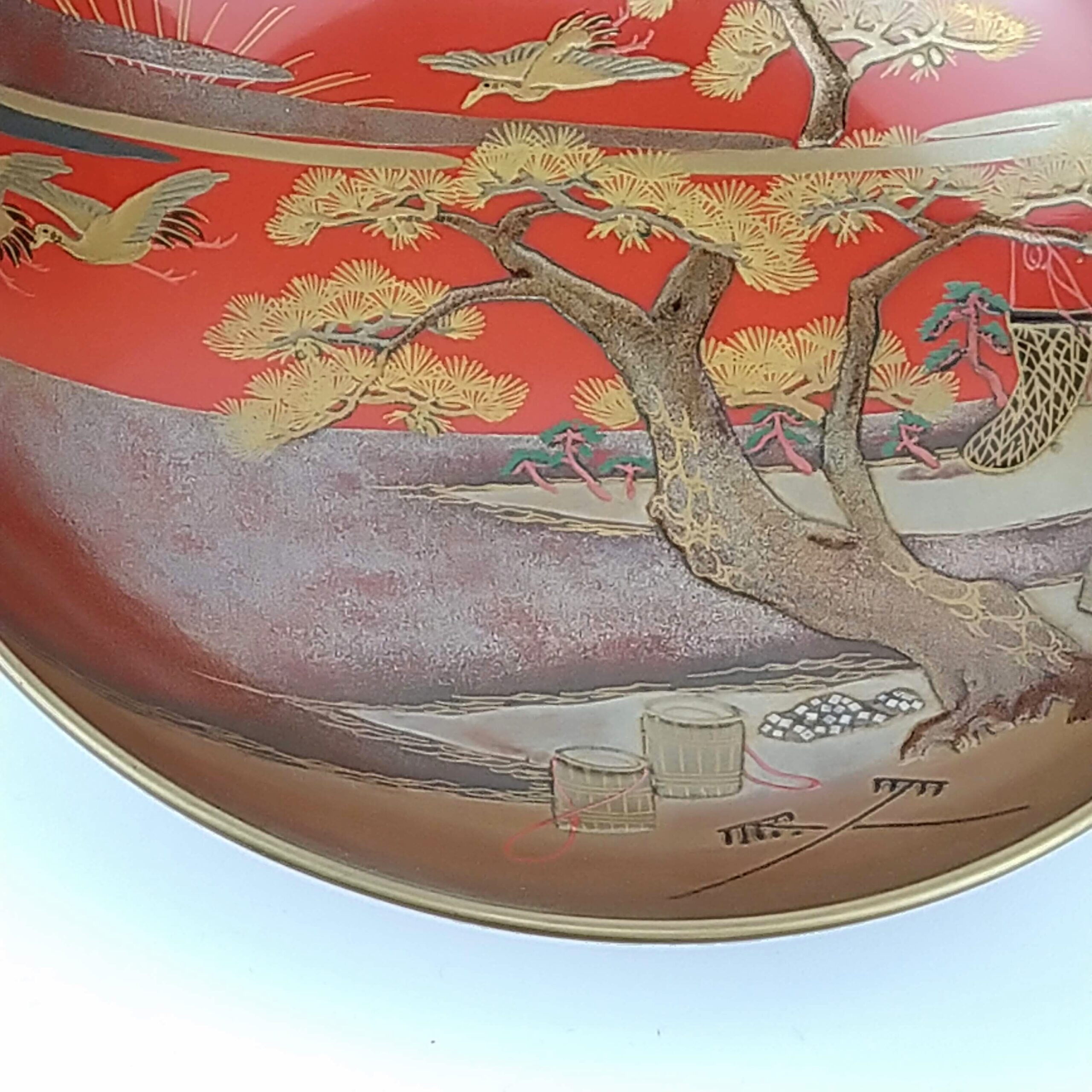 japanese antique Gold lacquer 9 sake cups with different design and stand