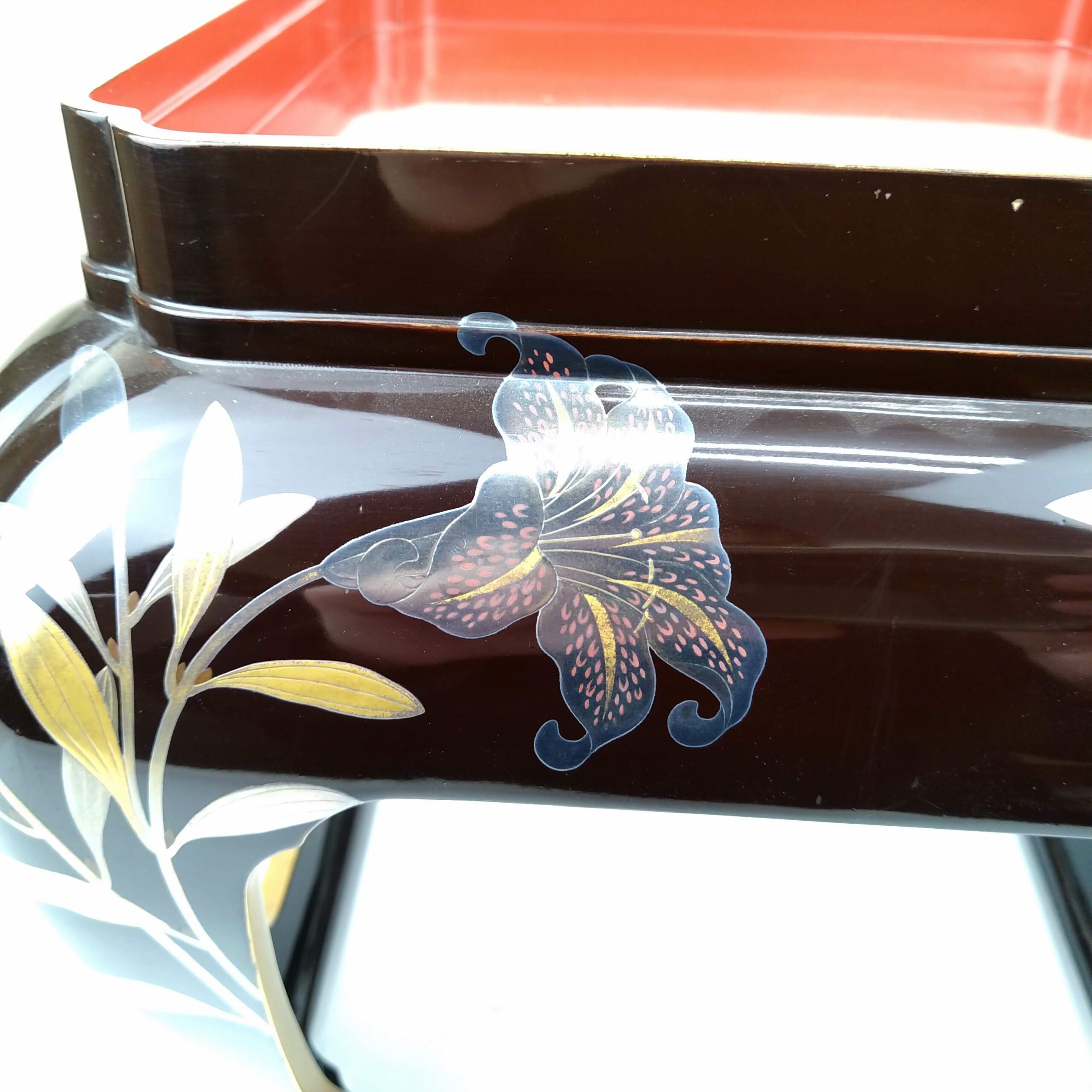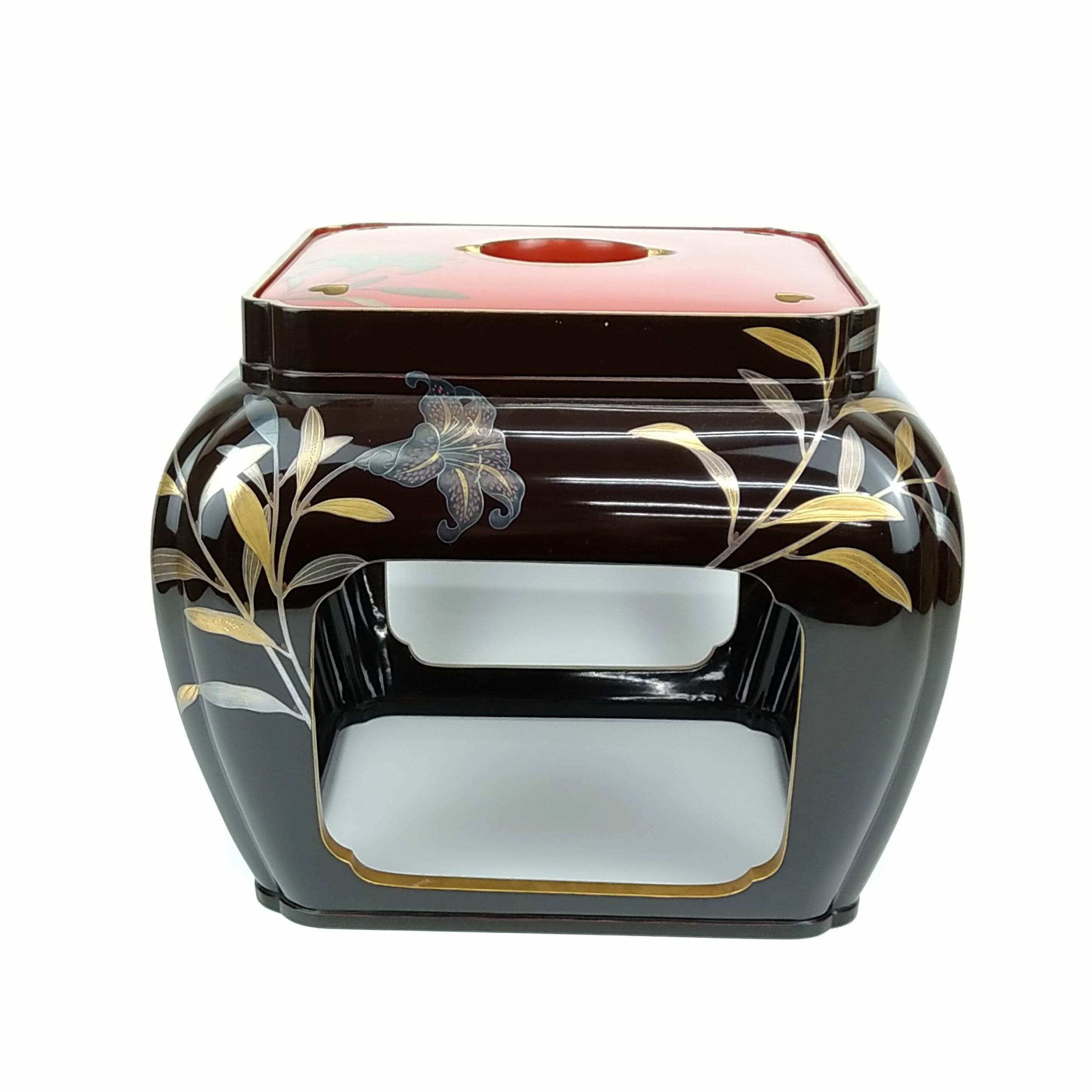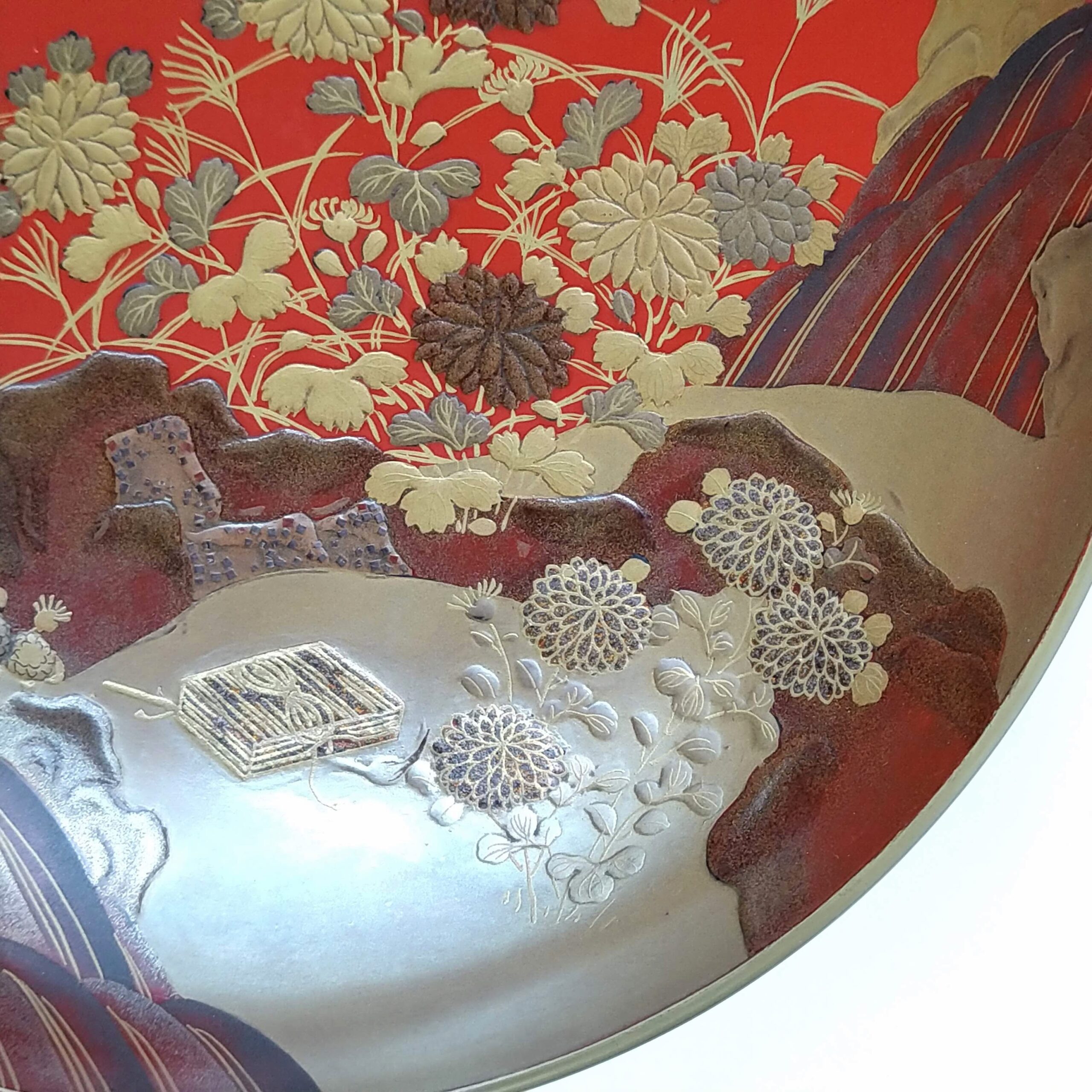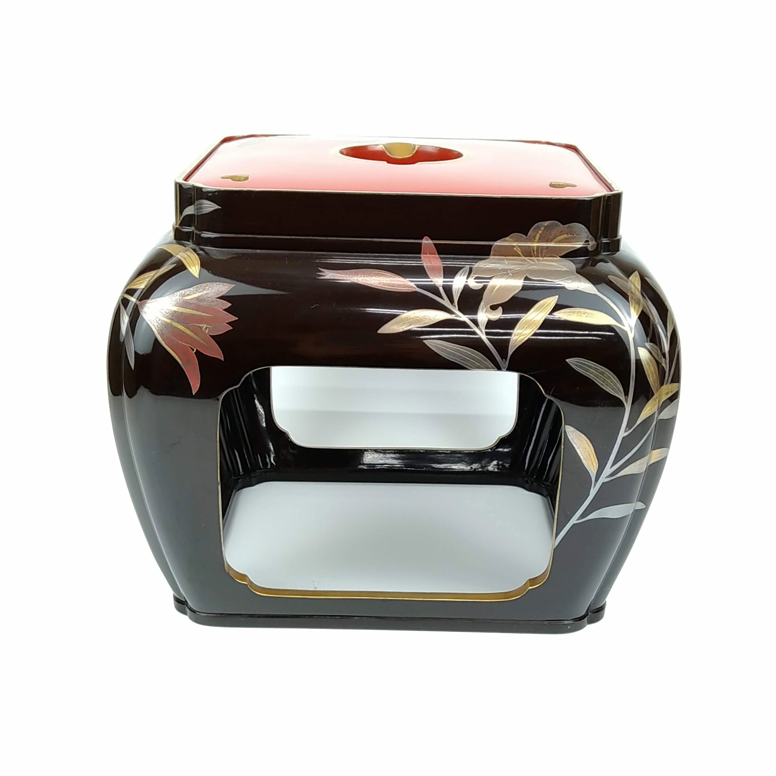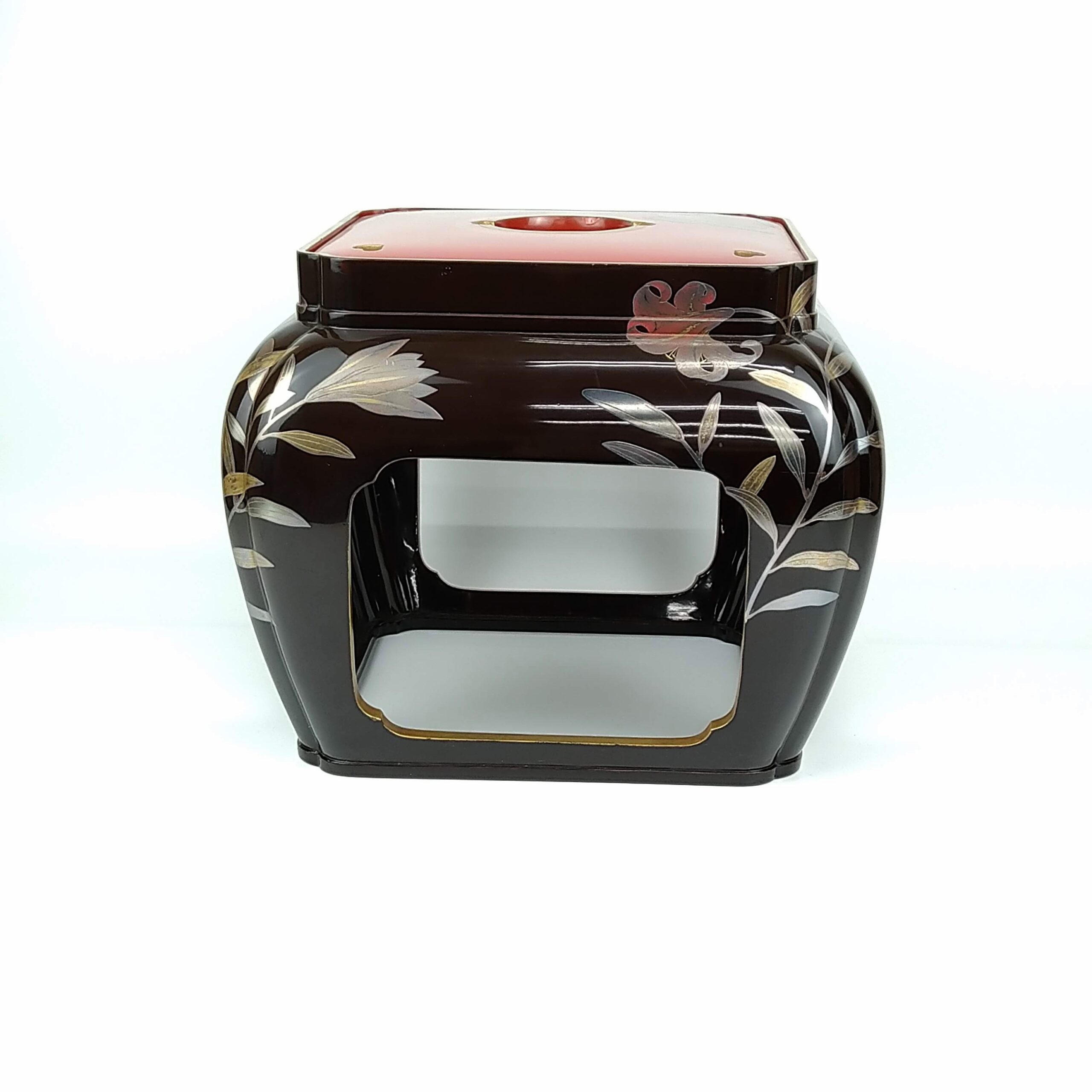 japanese antique Gold lacquer 9 sake cups with different design and stand