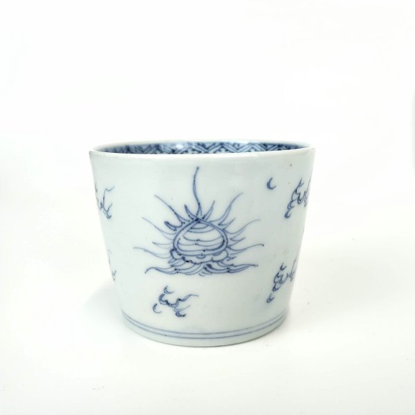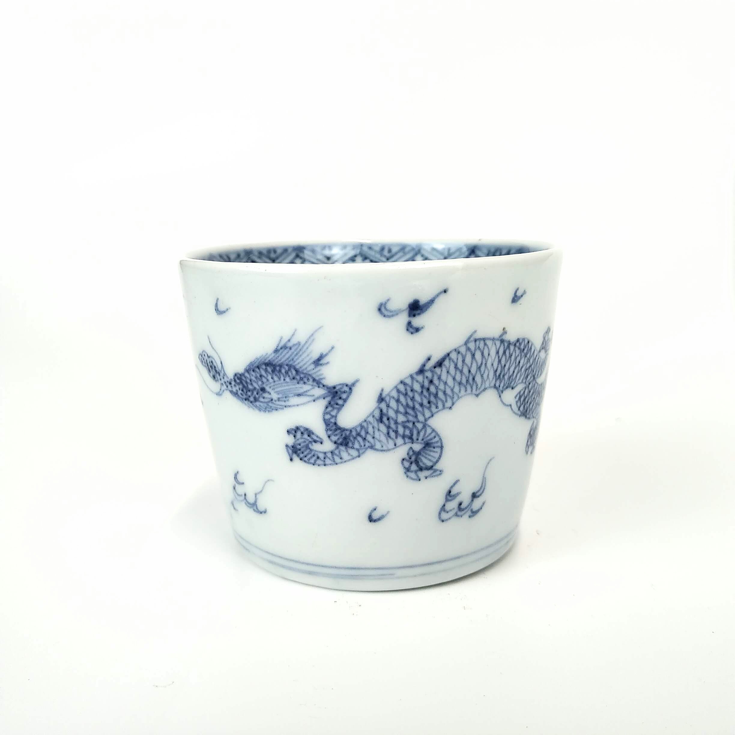 japanese antique Imari ware blue and white soba cup with design of dragon