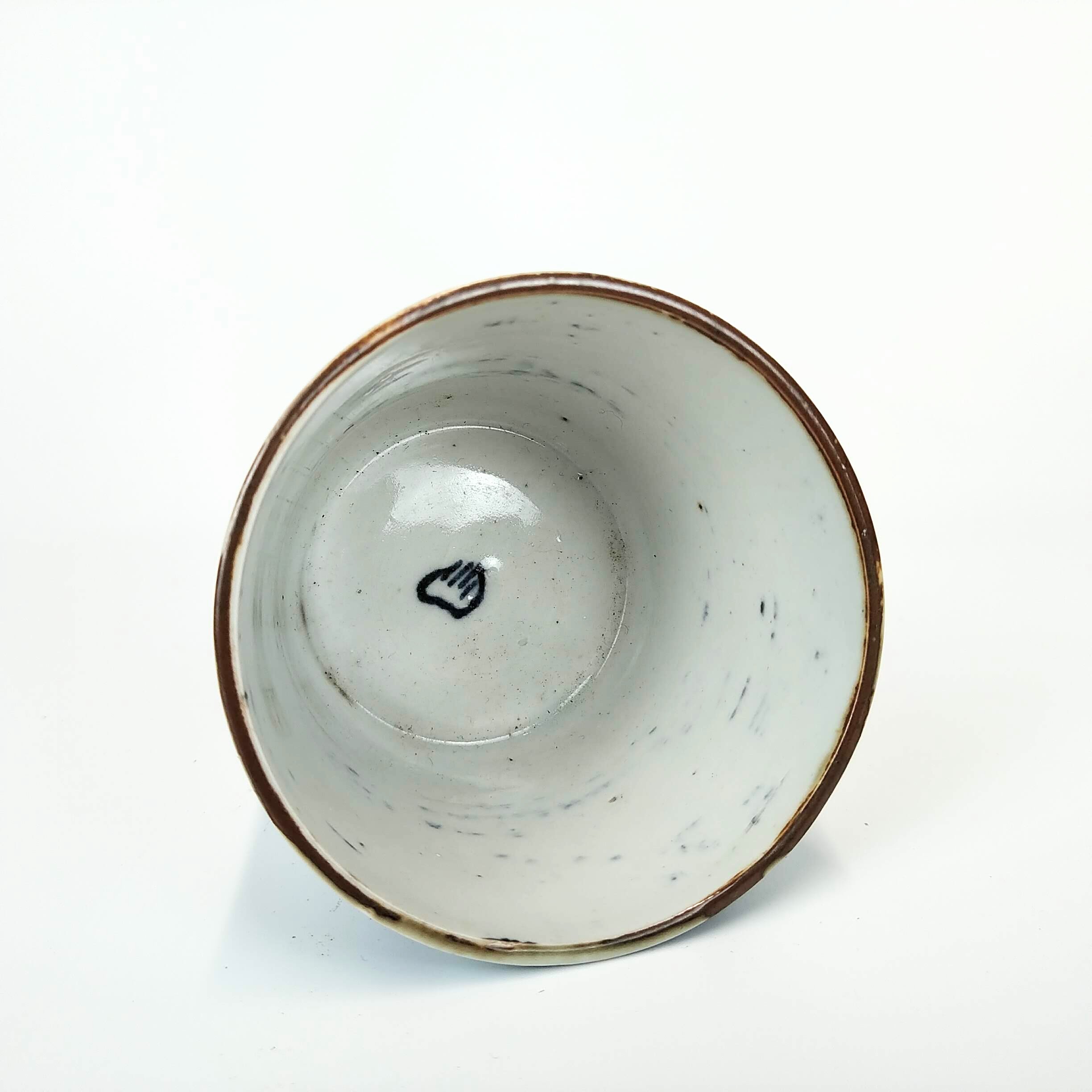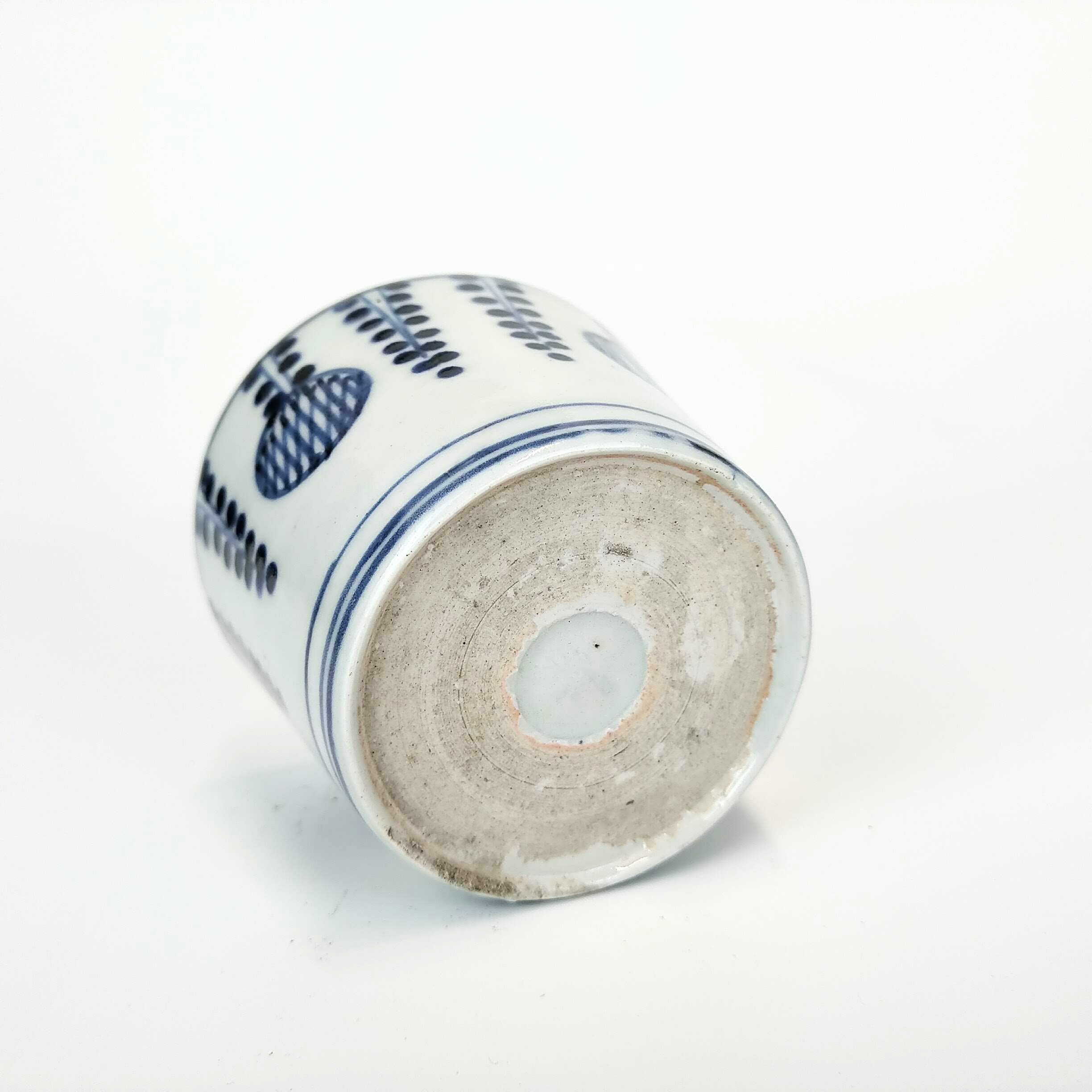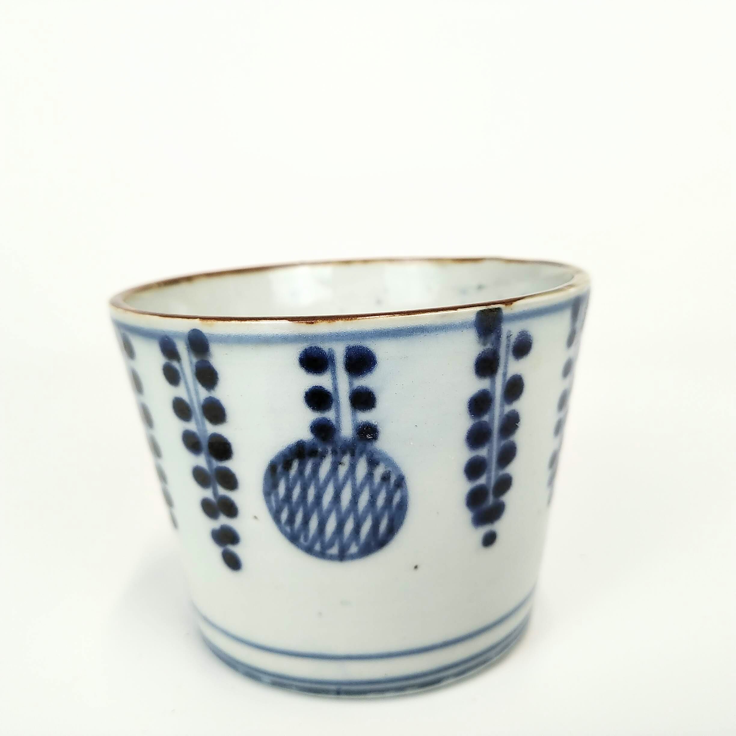 japanese antique Imari blue and white soba cup with design of drooping wisteria in circle