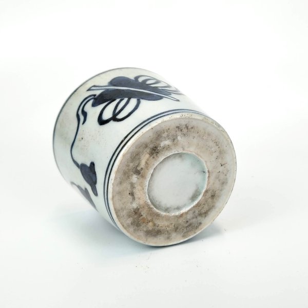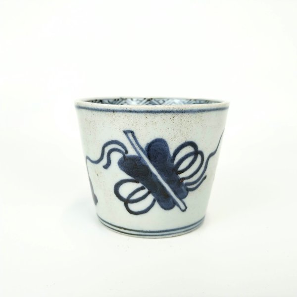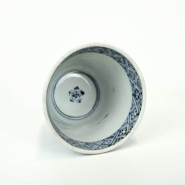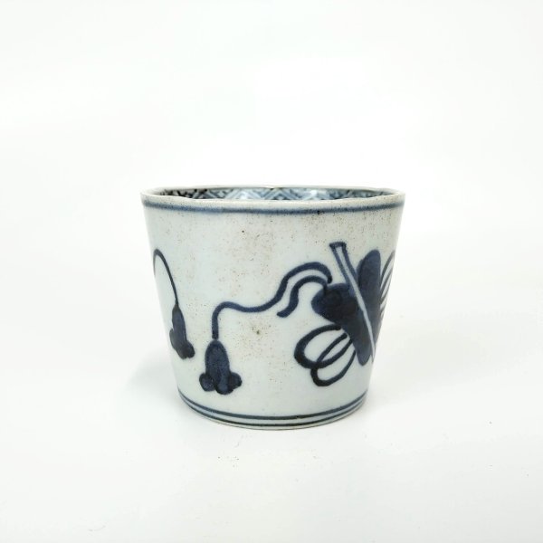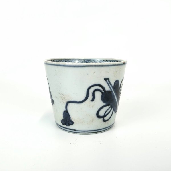 japanese antique Imari blue and white sobacup with design of narcissus