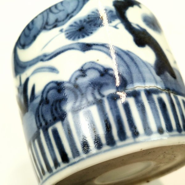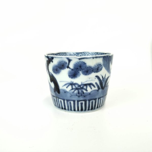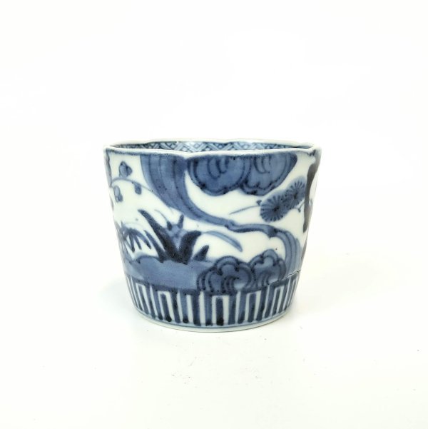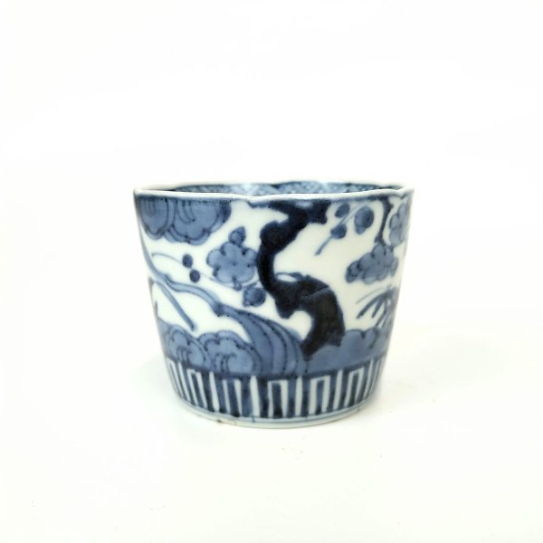 japanese antique Imari blue and white soba cup with design of pine,bamboo and plum
