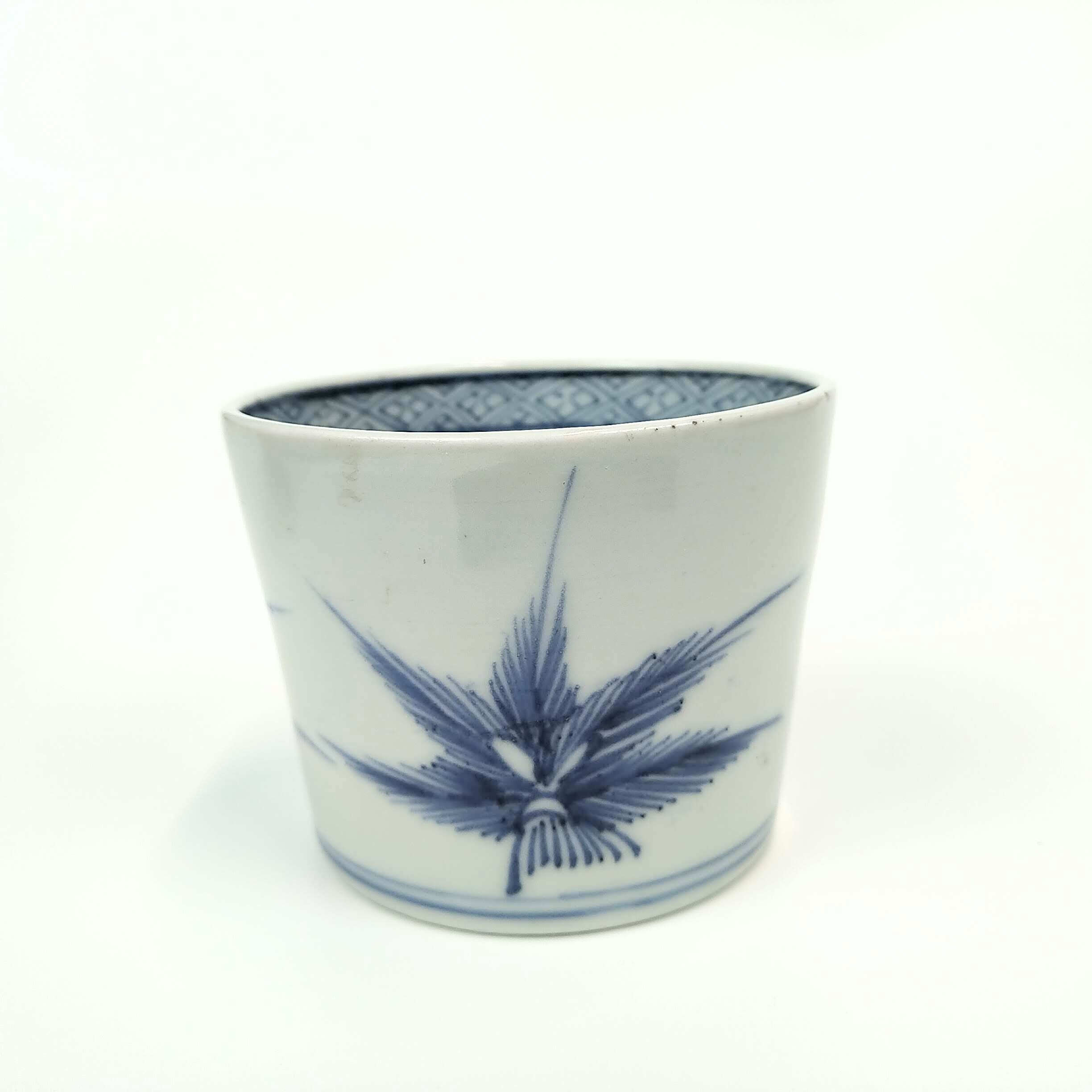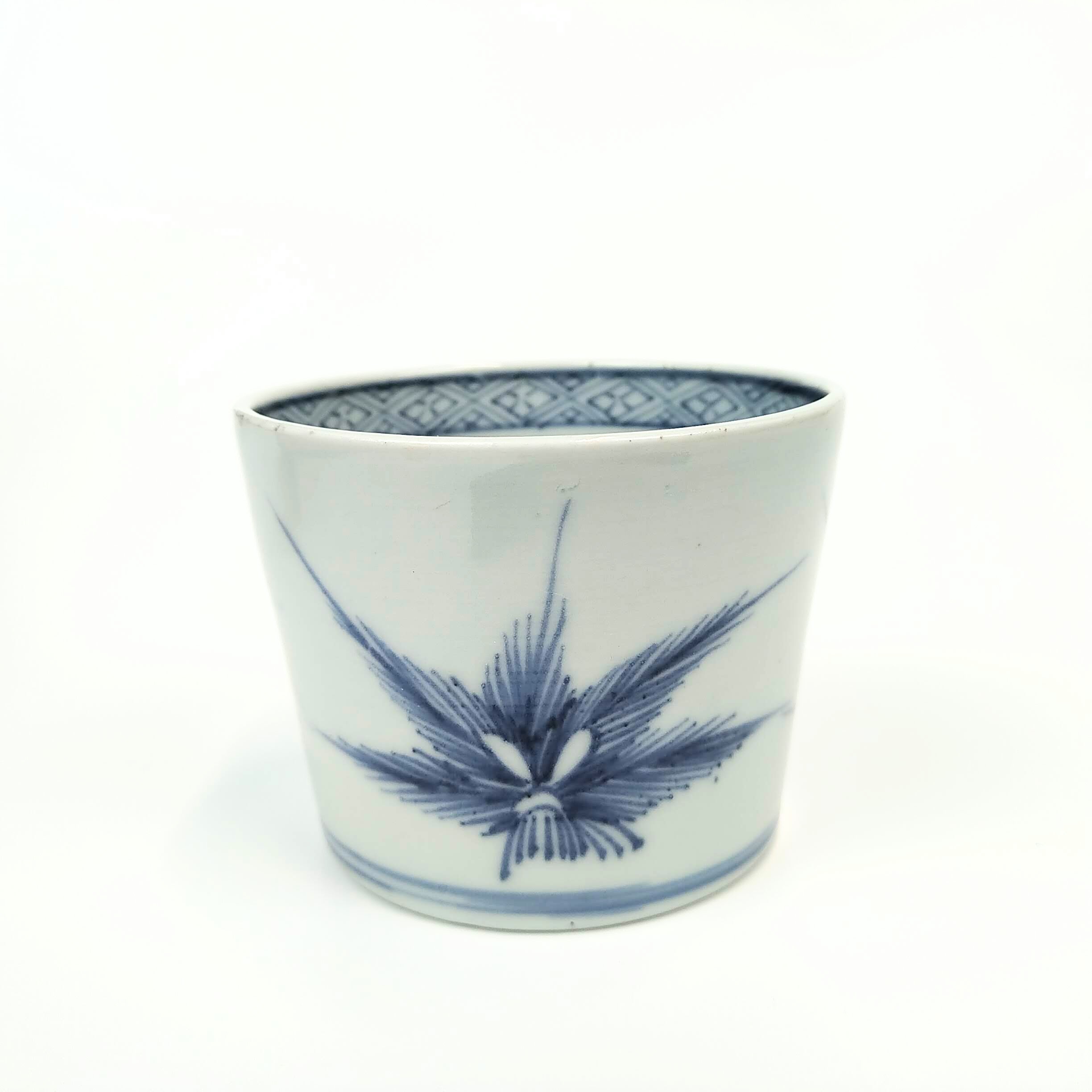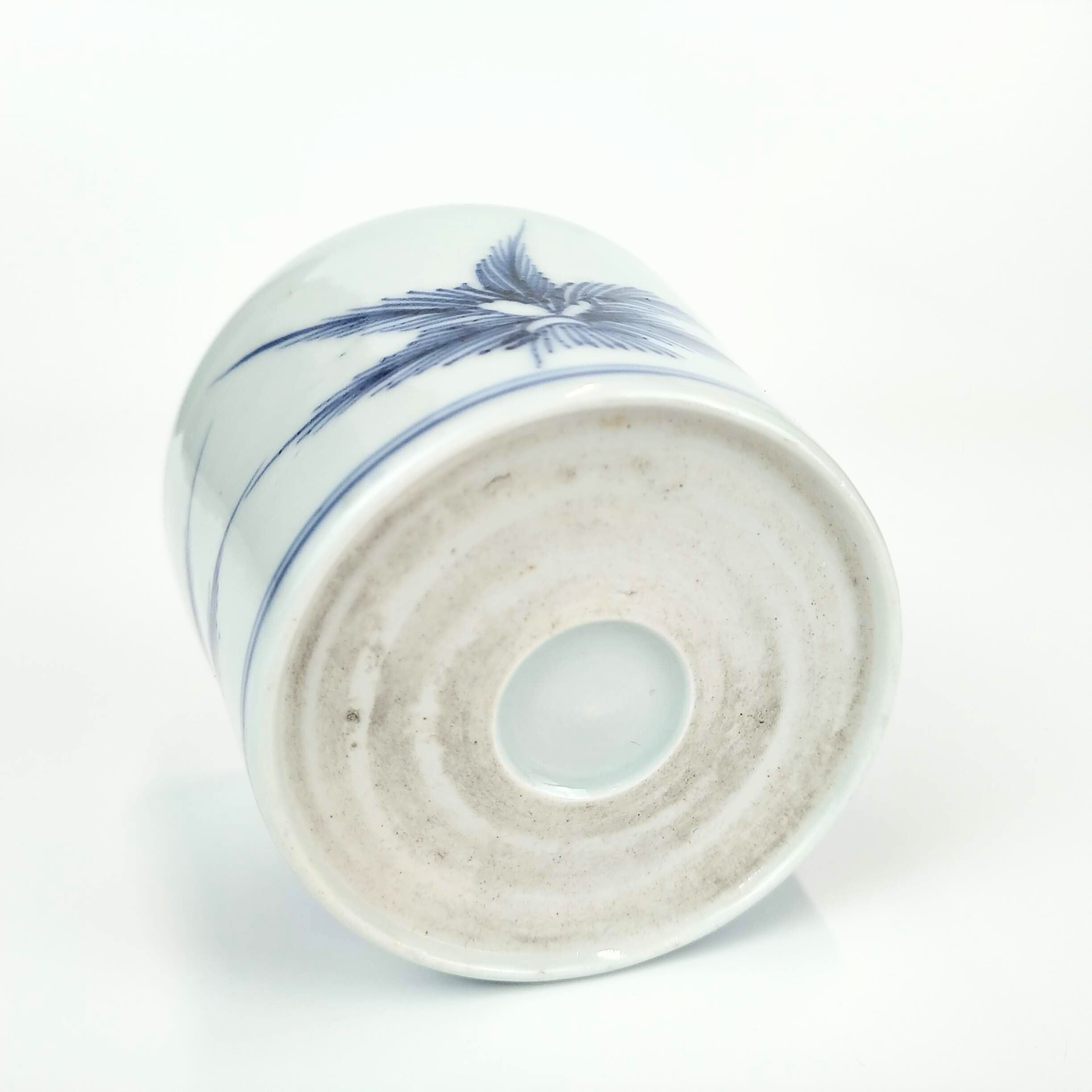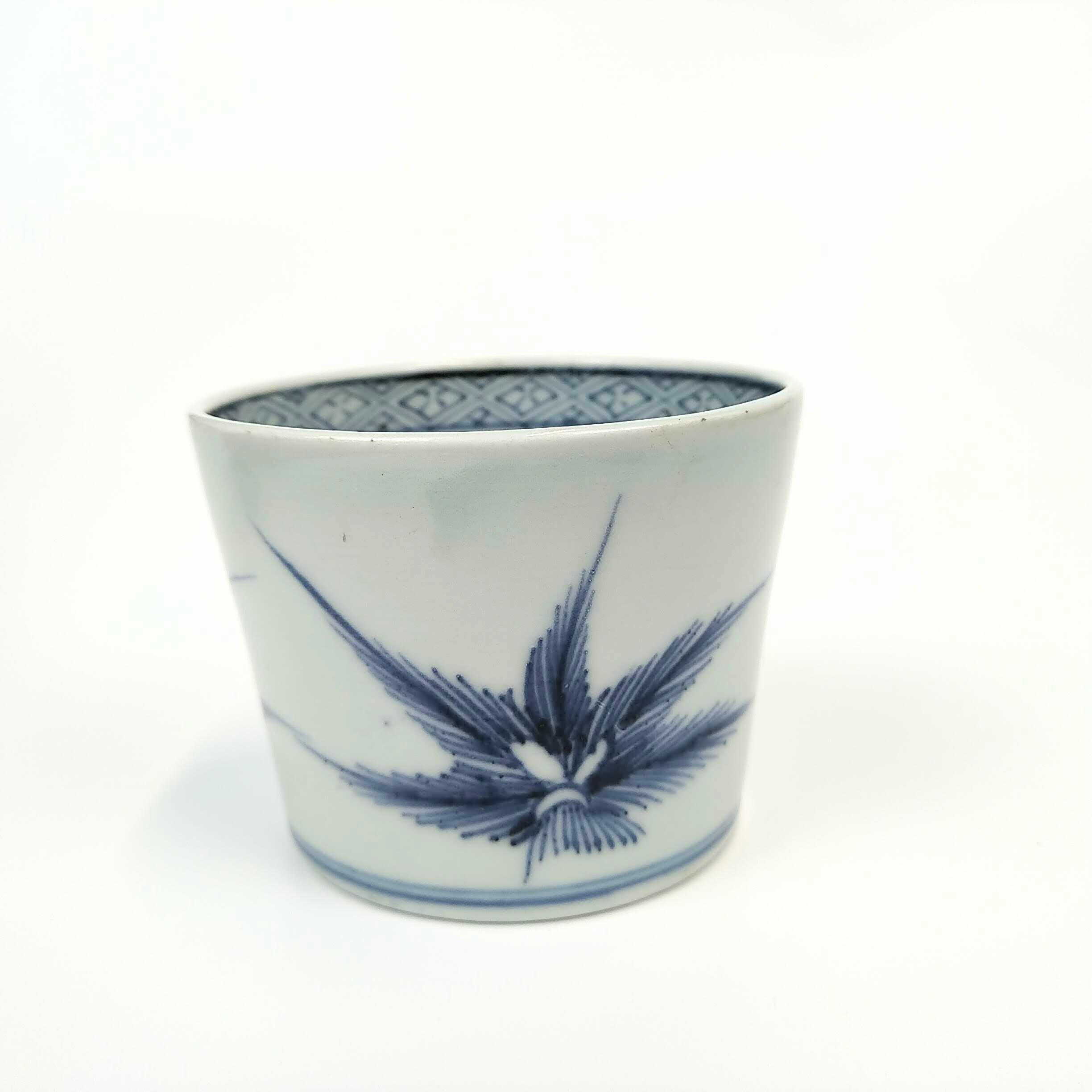 japanese antique Imari blue and white soba cup with design of sheaf of rice