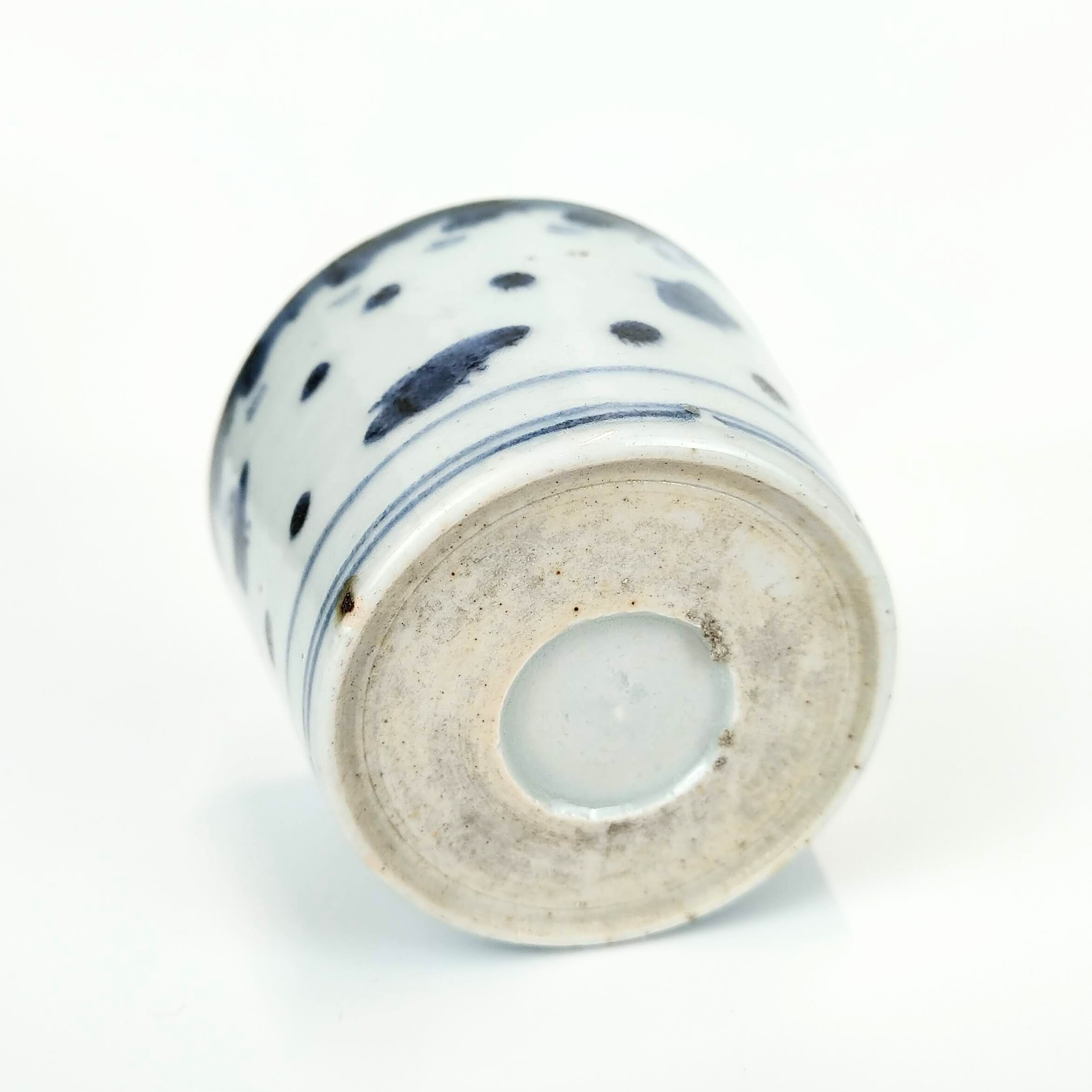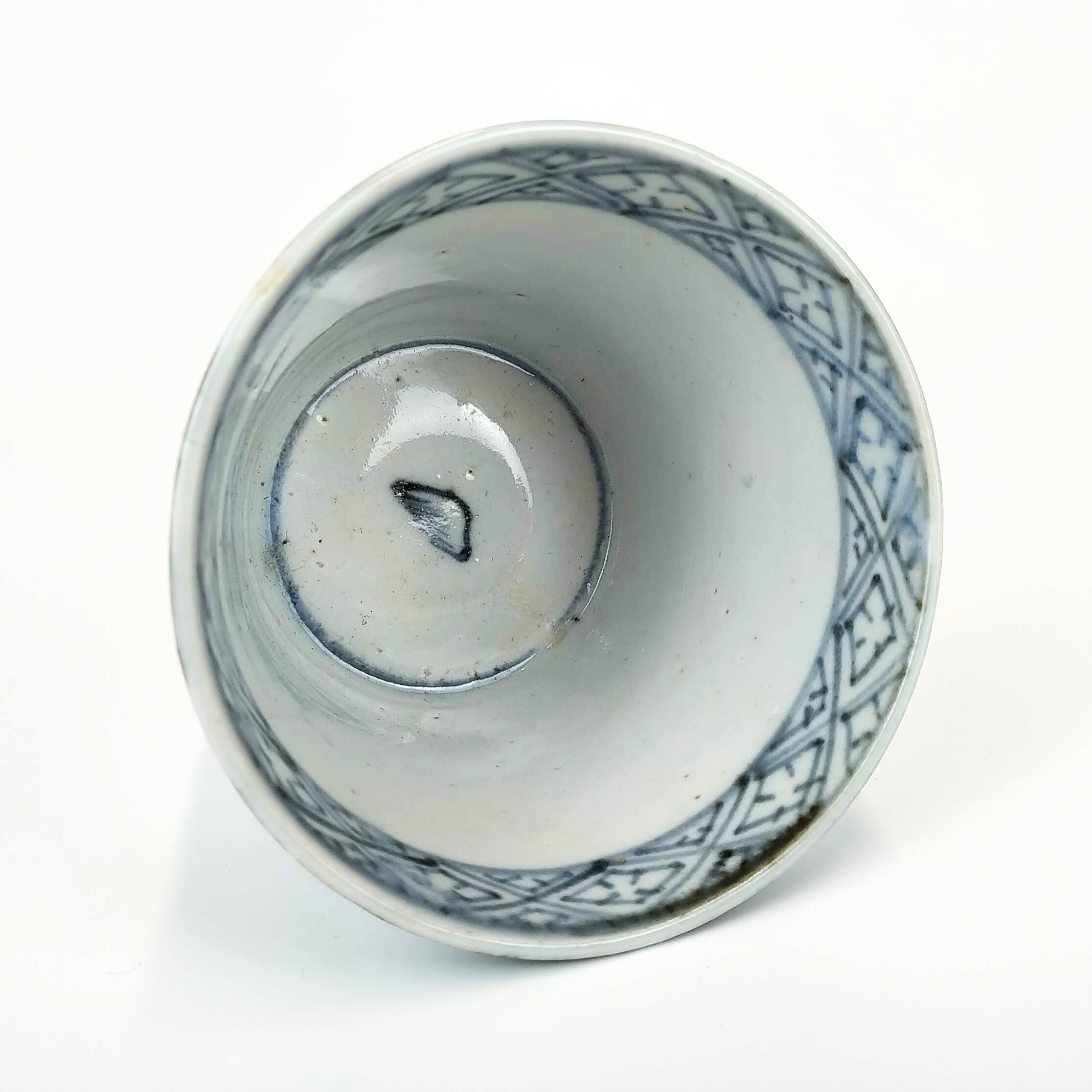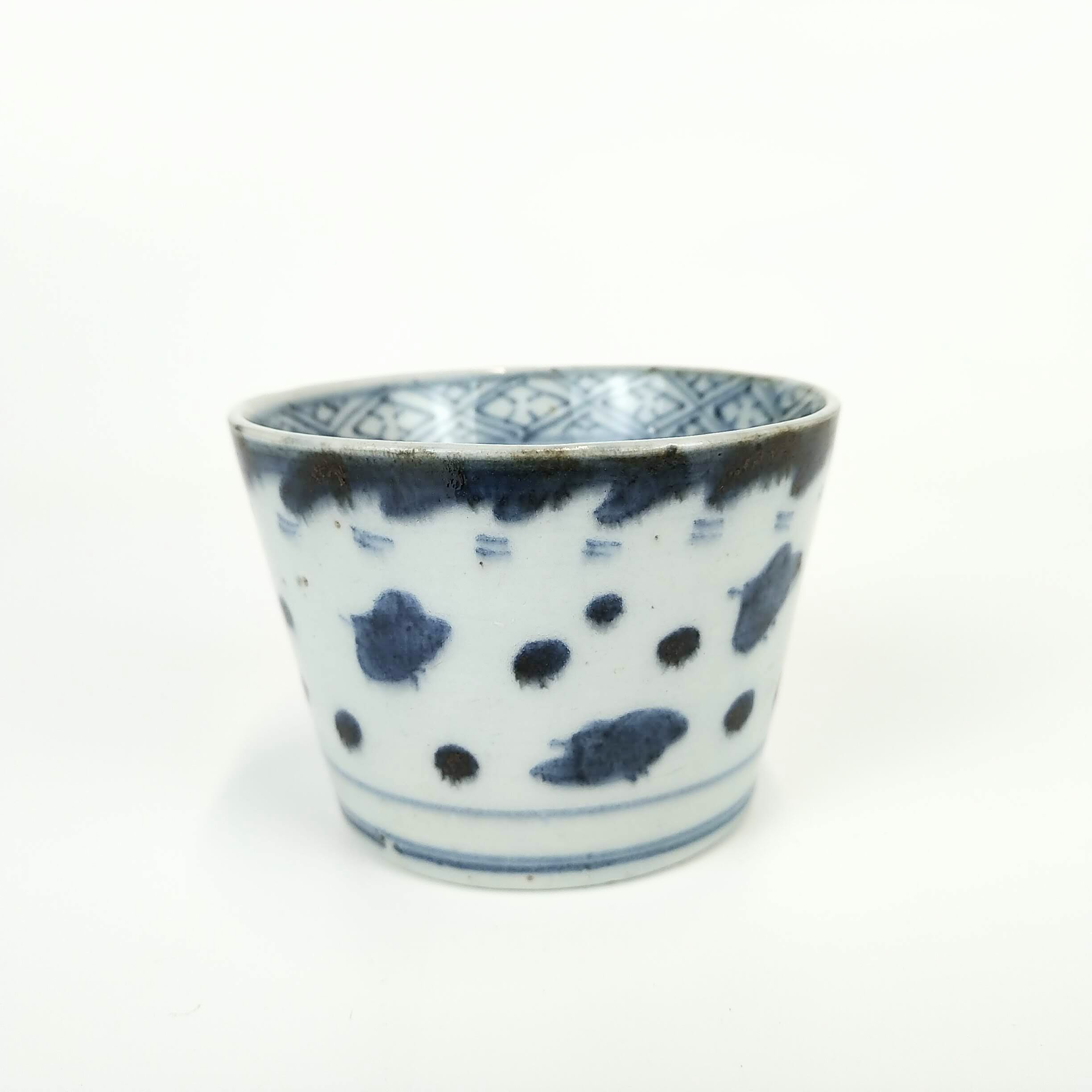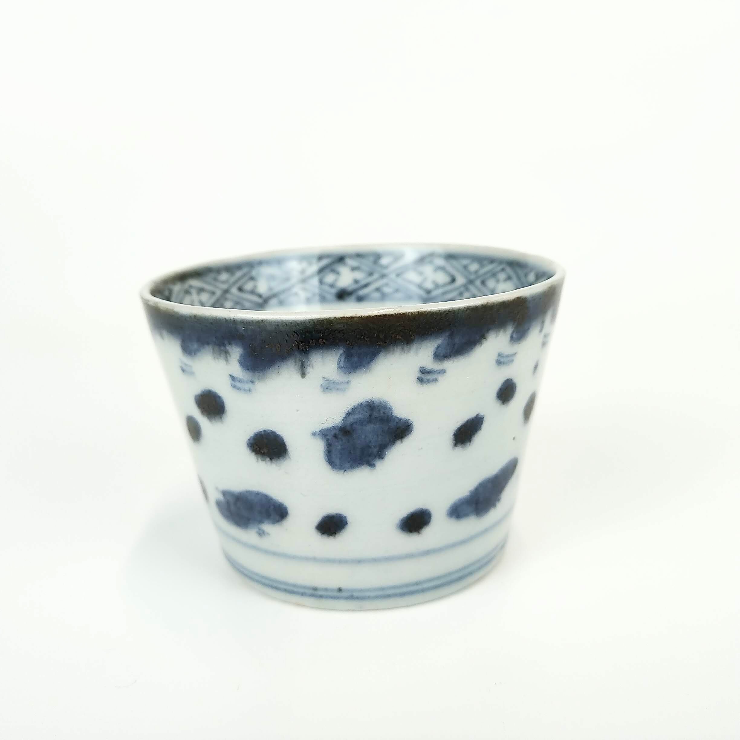 japanese antique Imari blue and white soba cup with design of wave and plover