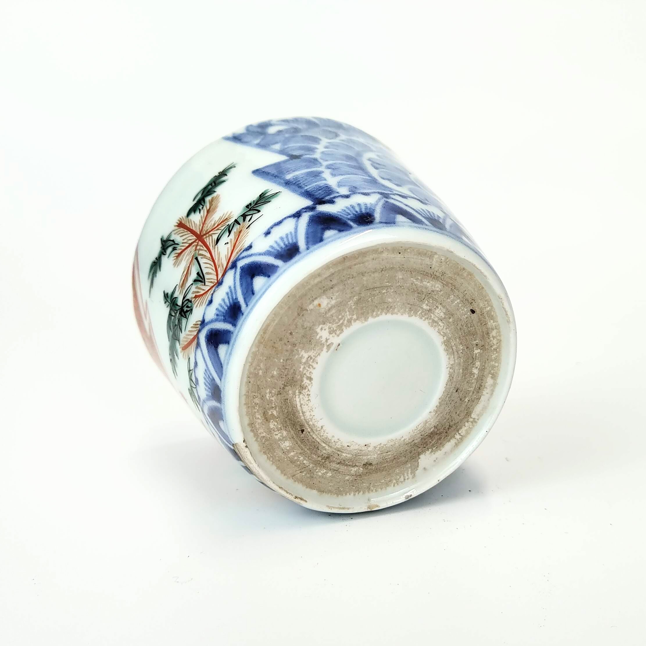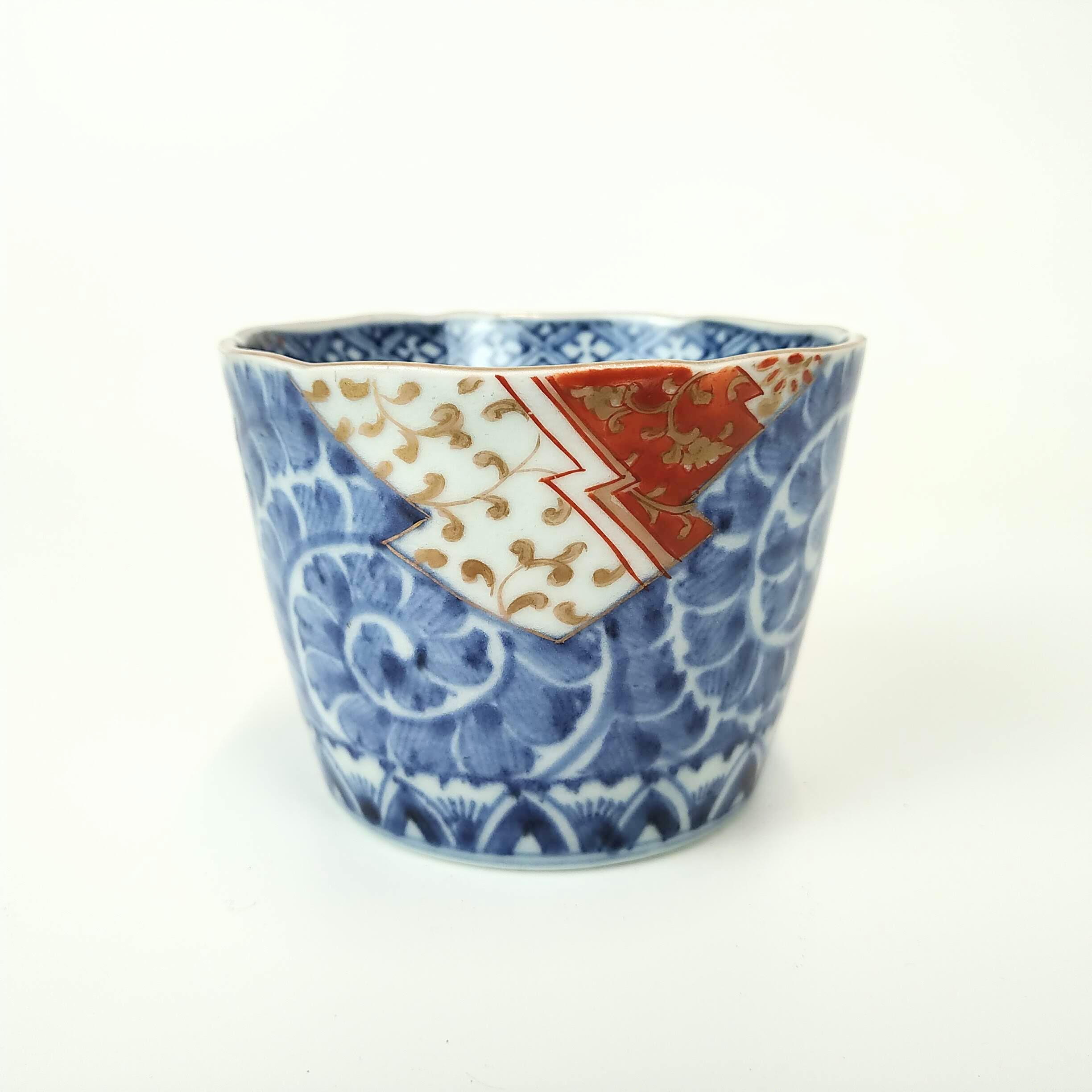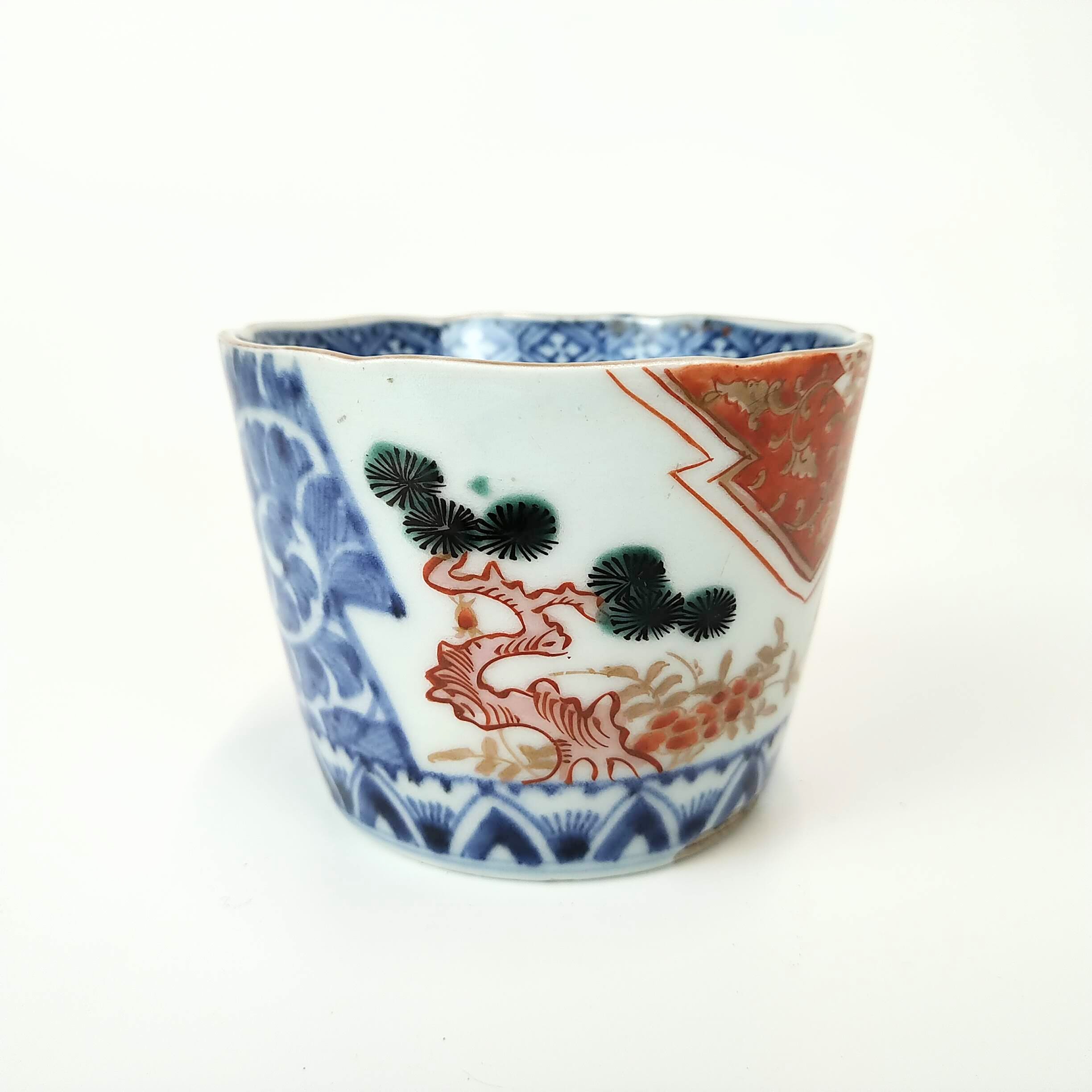 japanese antique Imari colored soba cup with design of pine and arabesque
