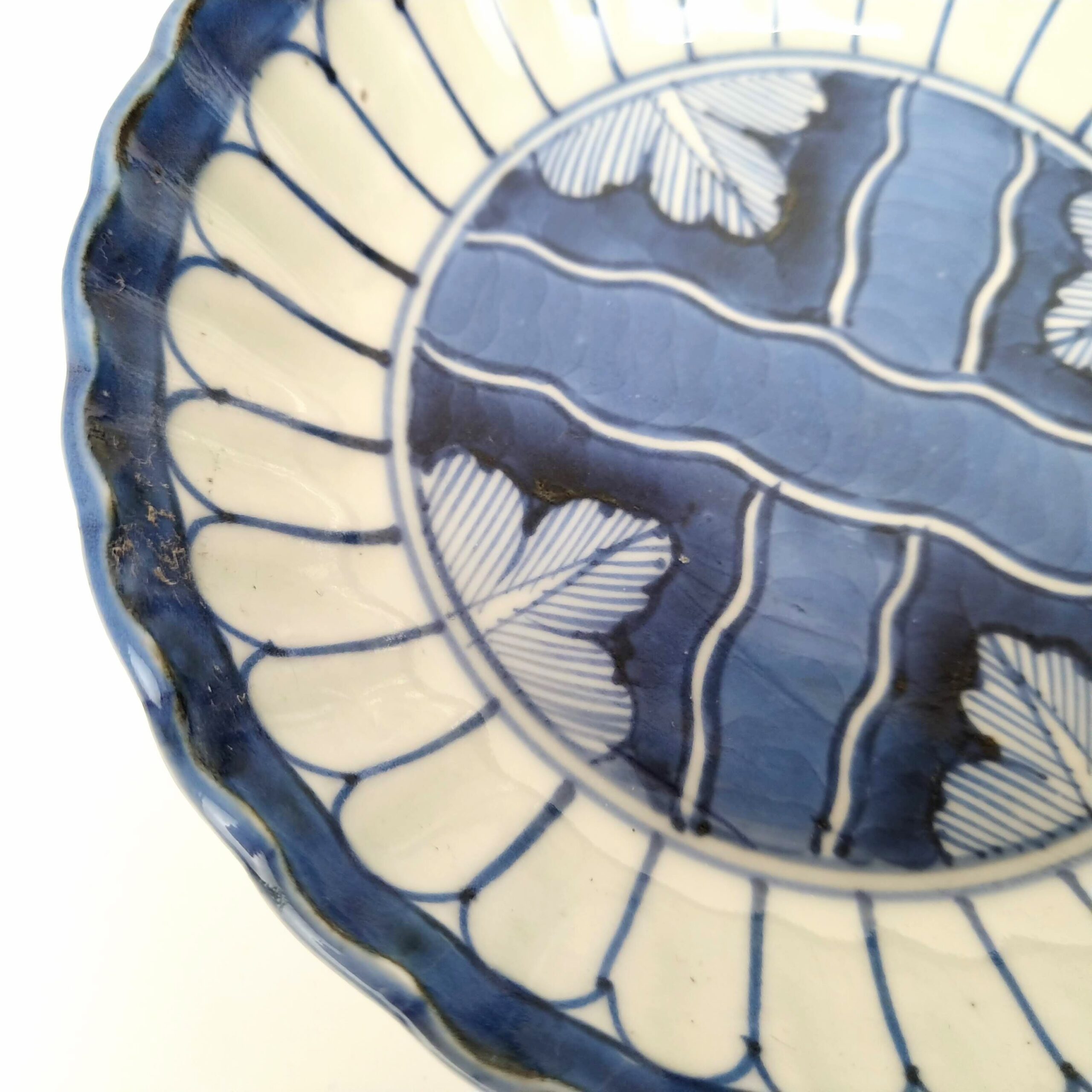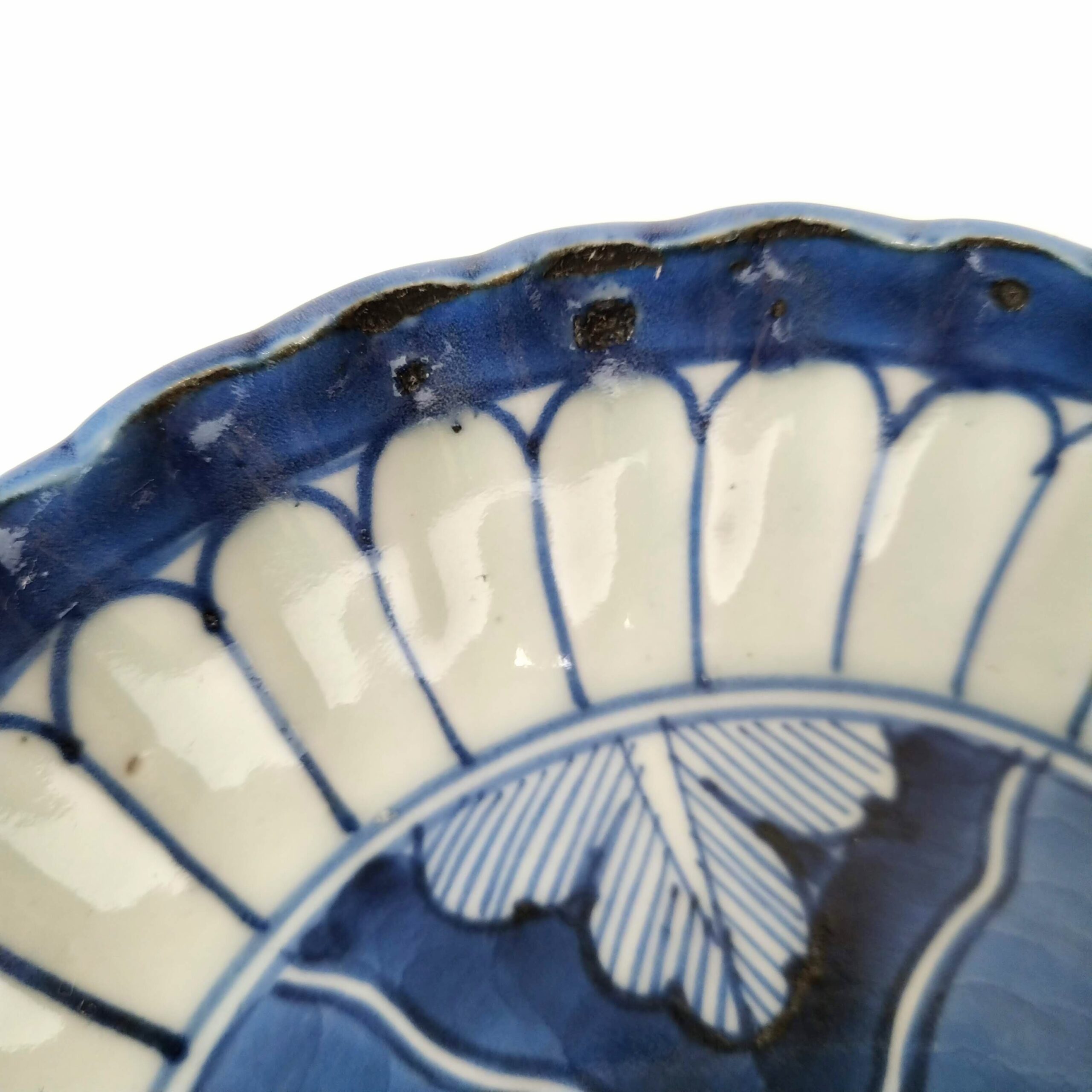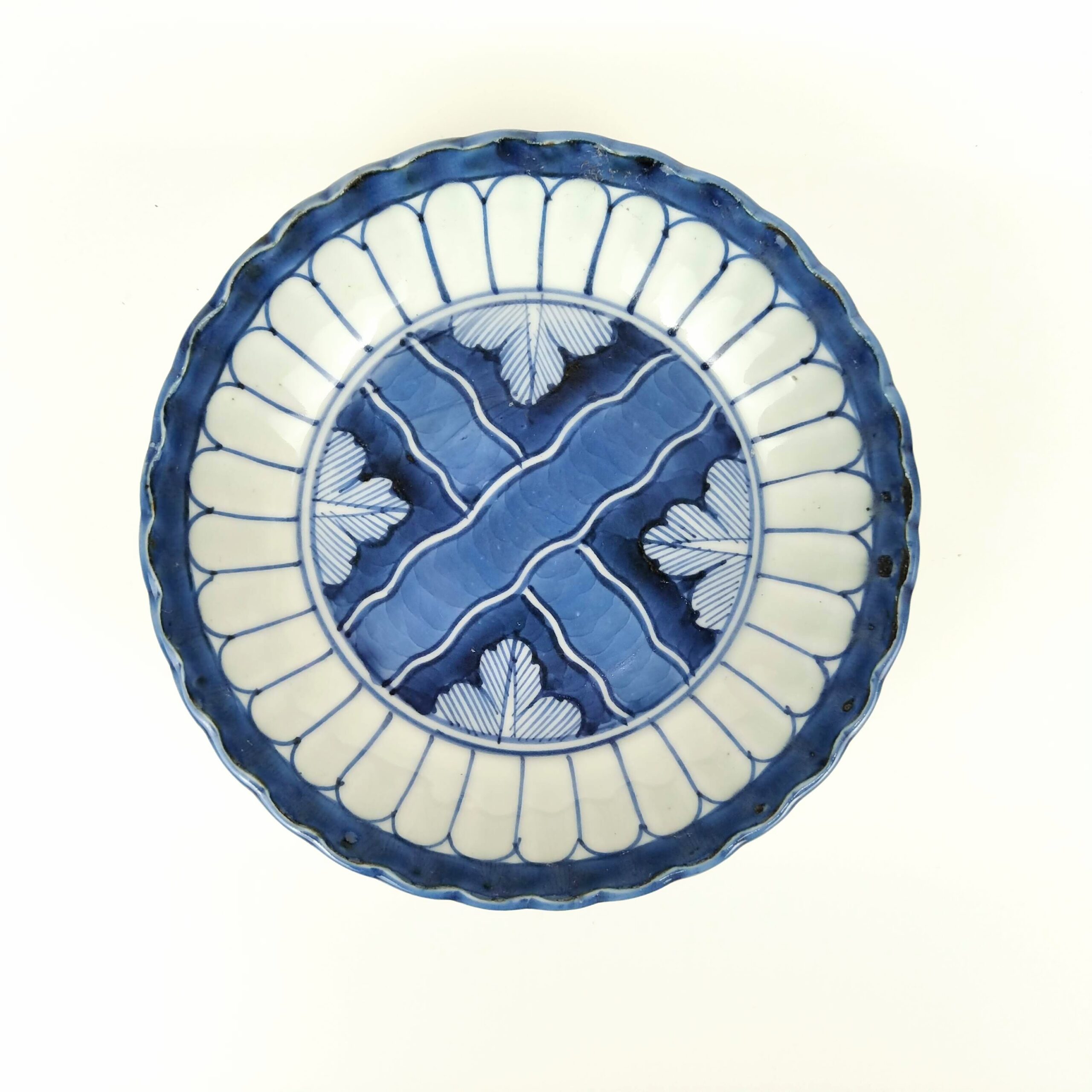 japanese antique Imari ware blue and white bowl with design of chrysanthemum and cross