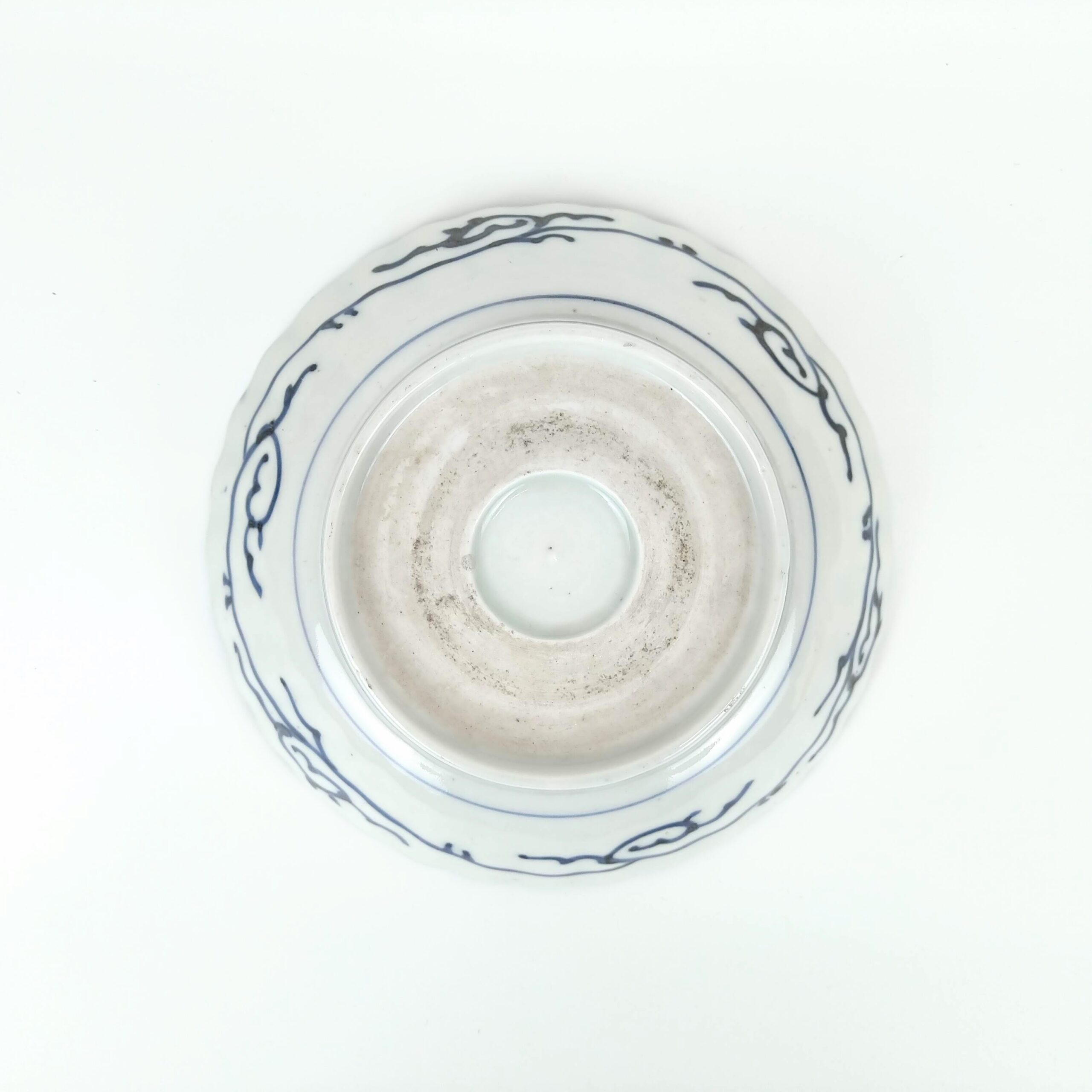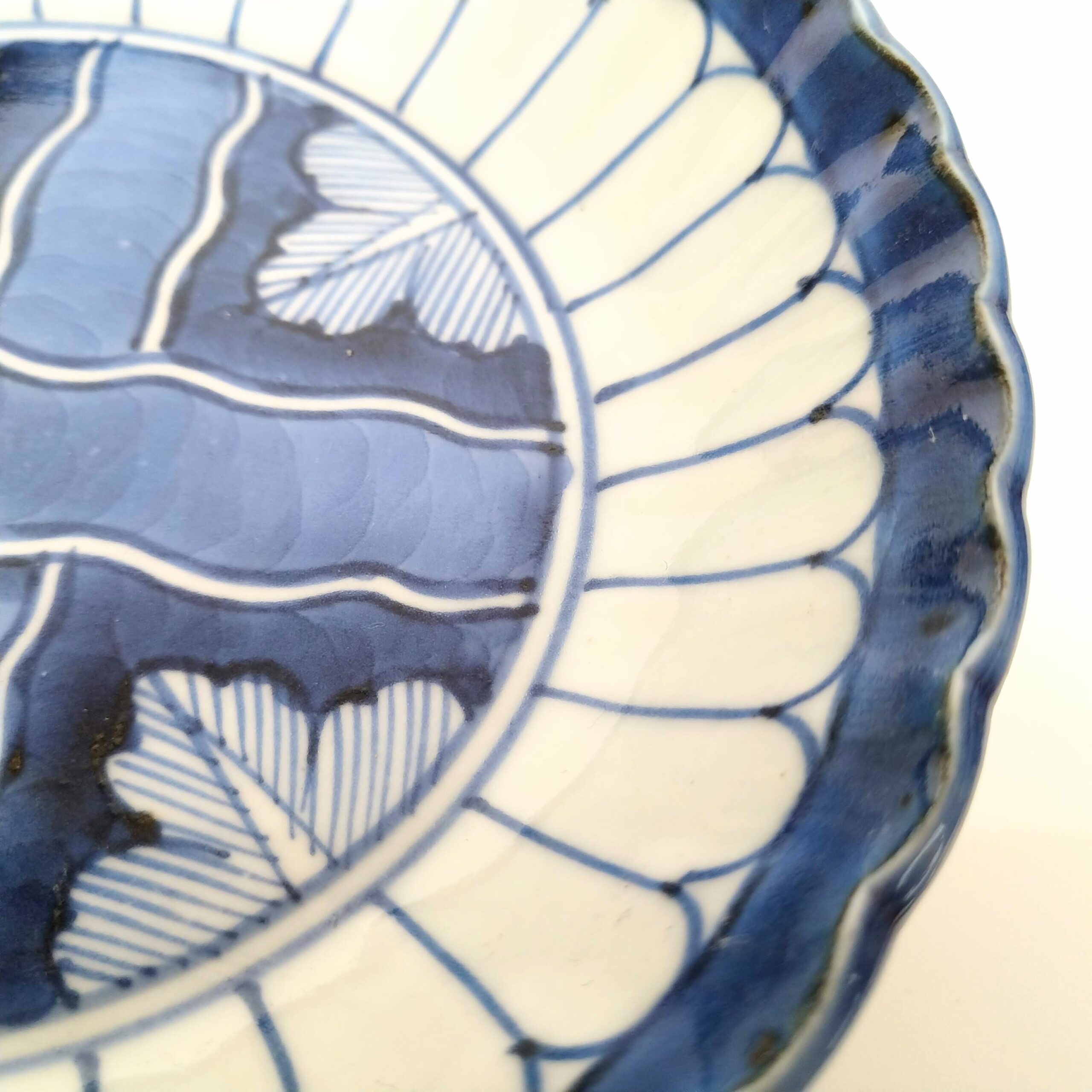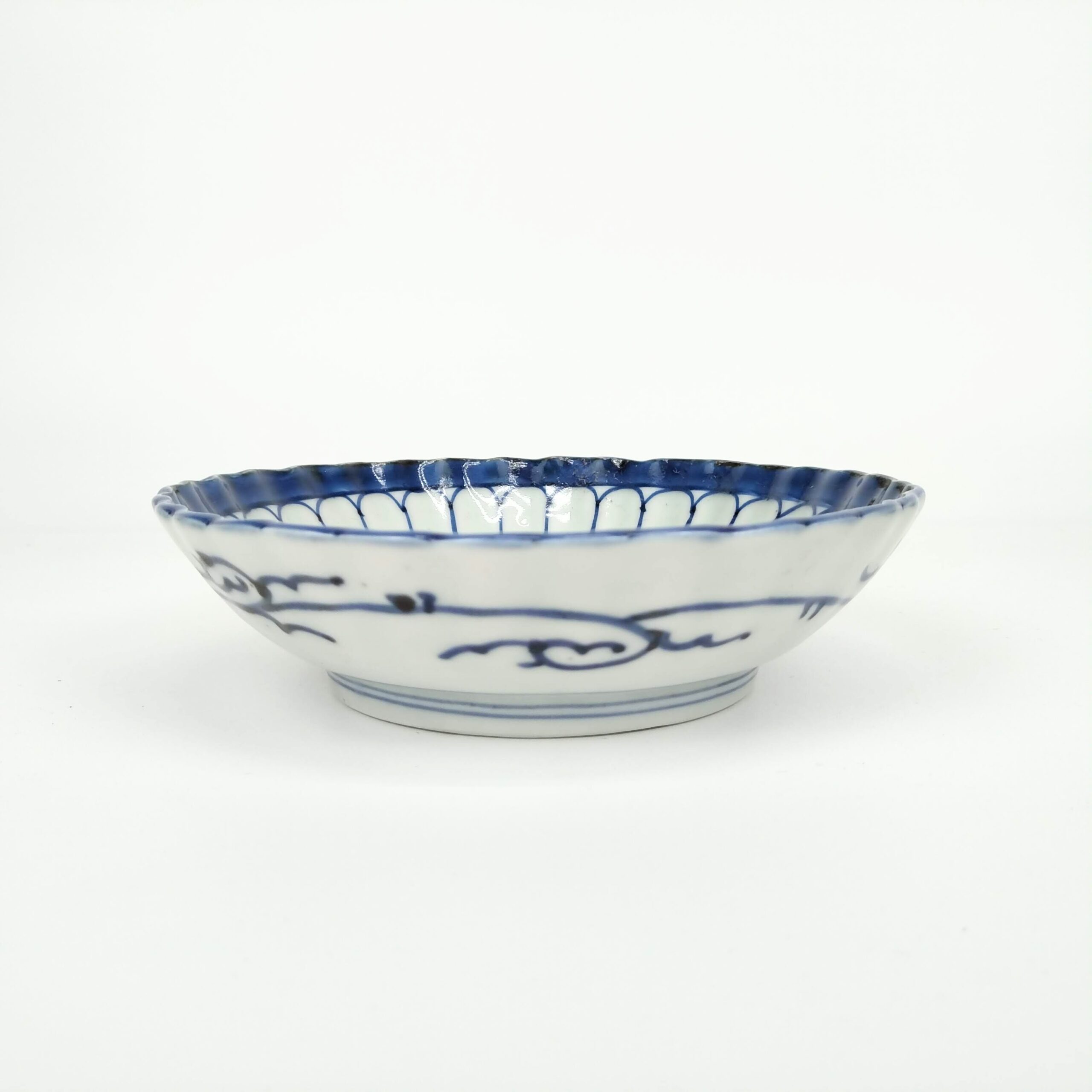 japanese antique Imari ware blue and white bowl with design of chrysanthemum and cross