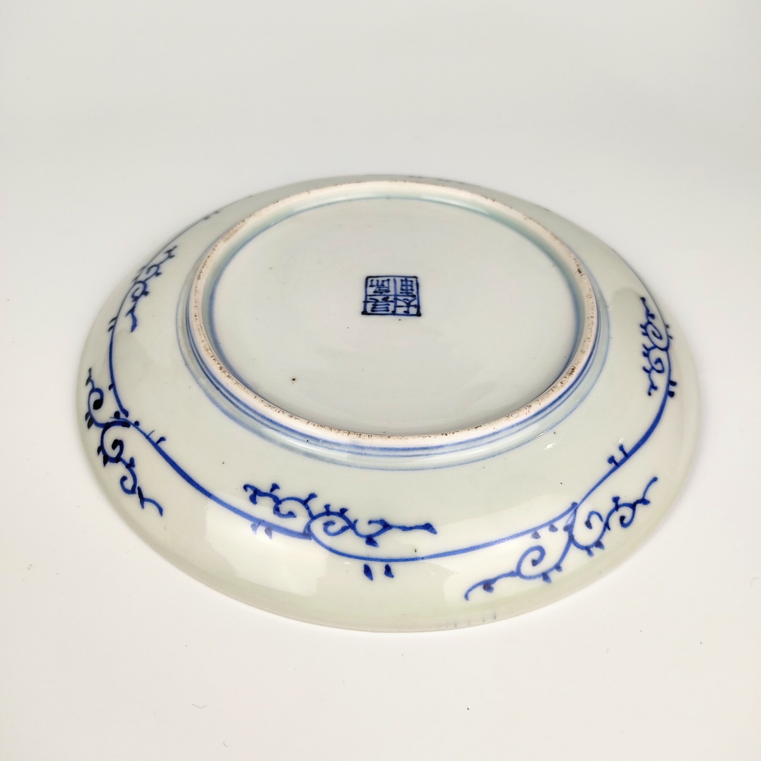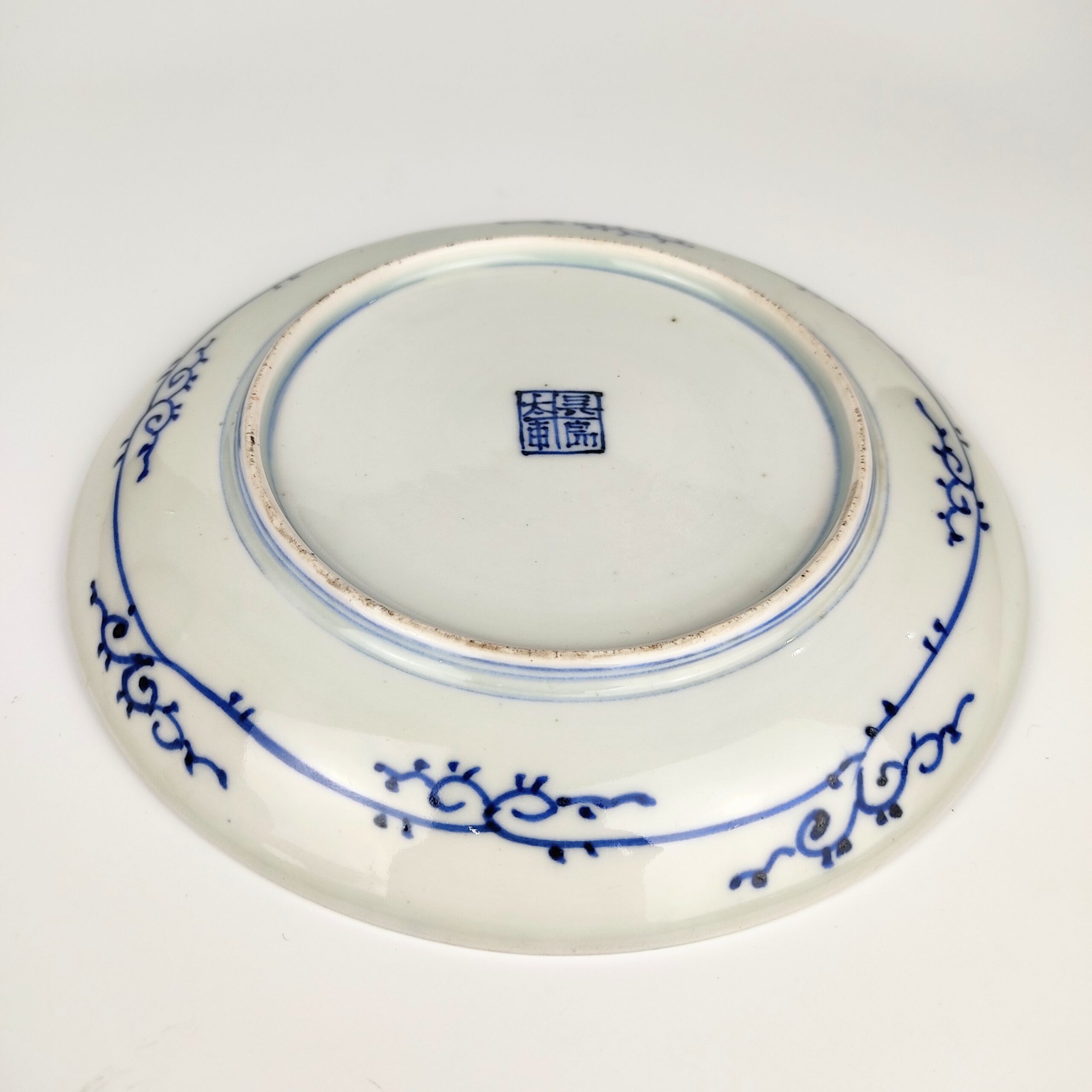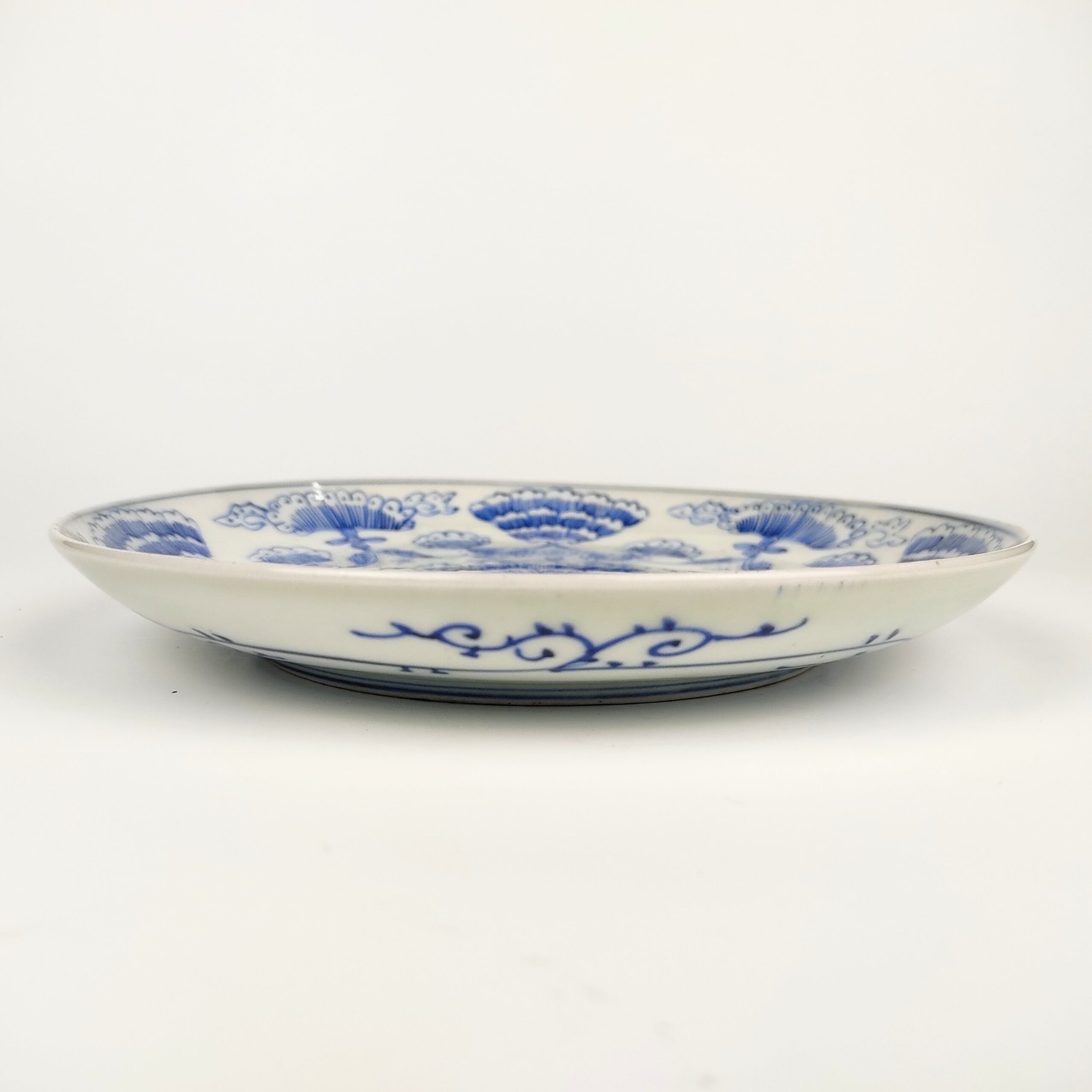 japanese antique Imari ware blue and white dish with design of line drawing