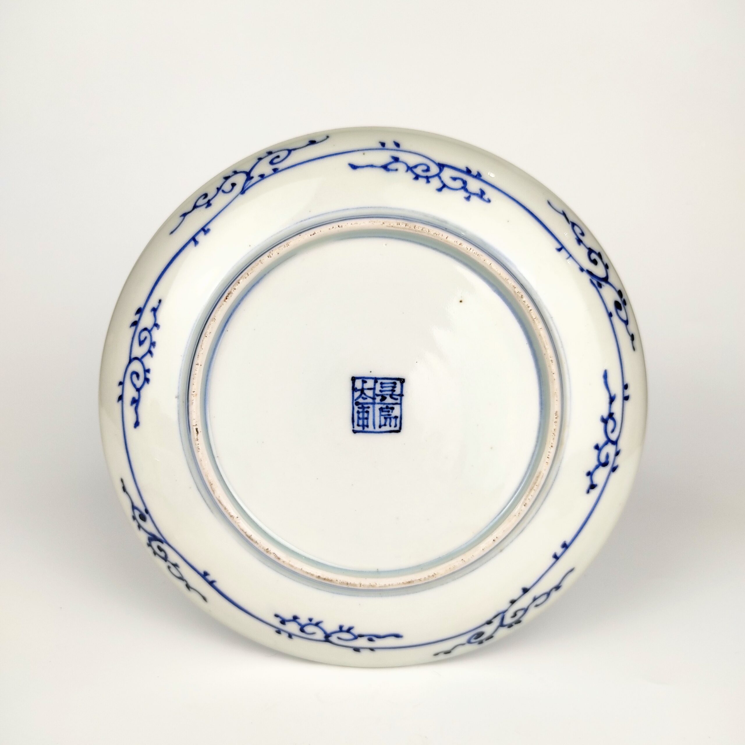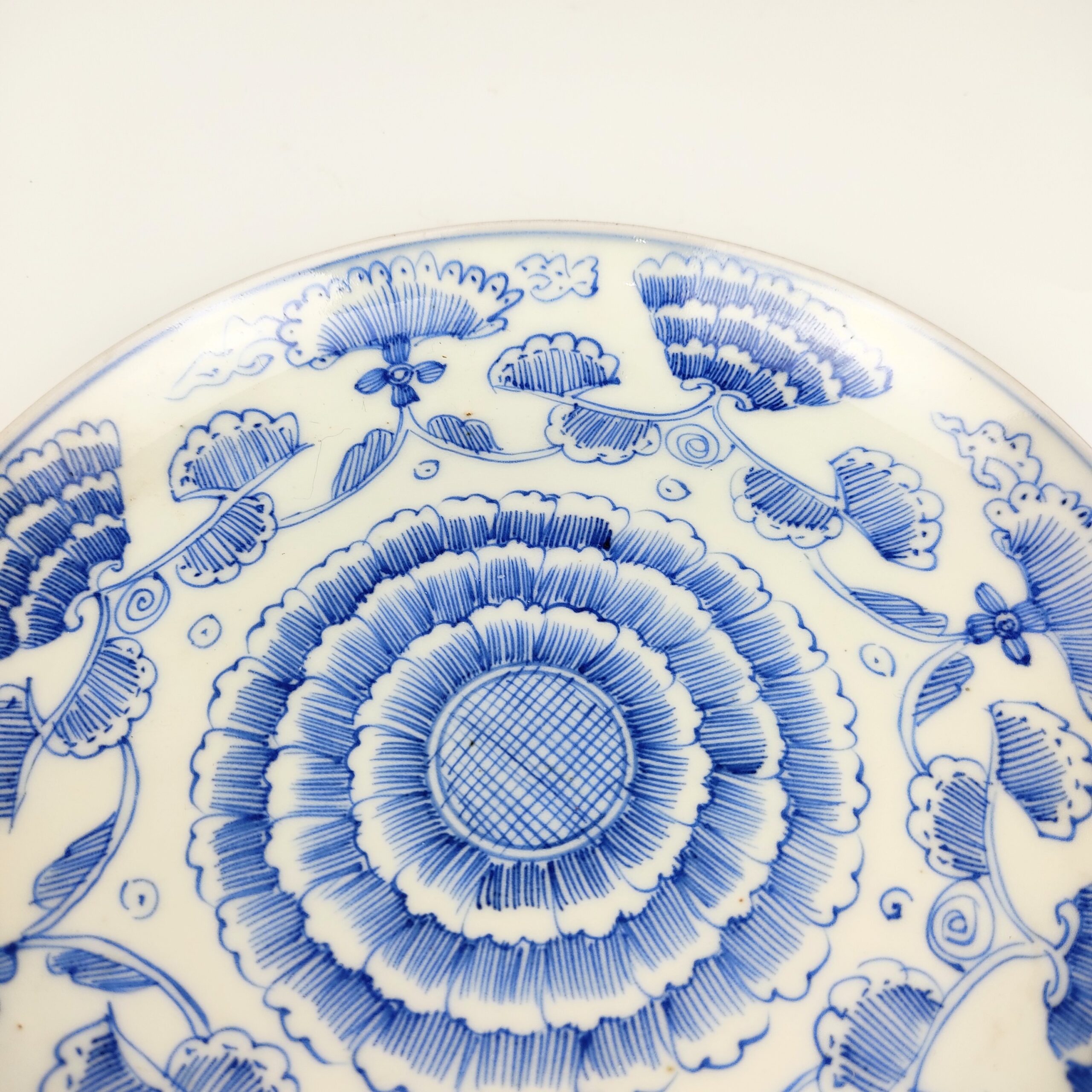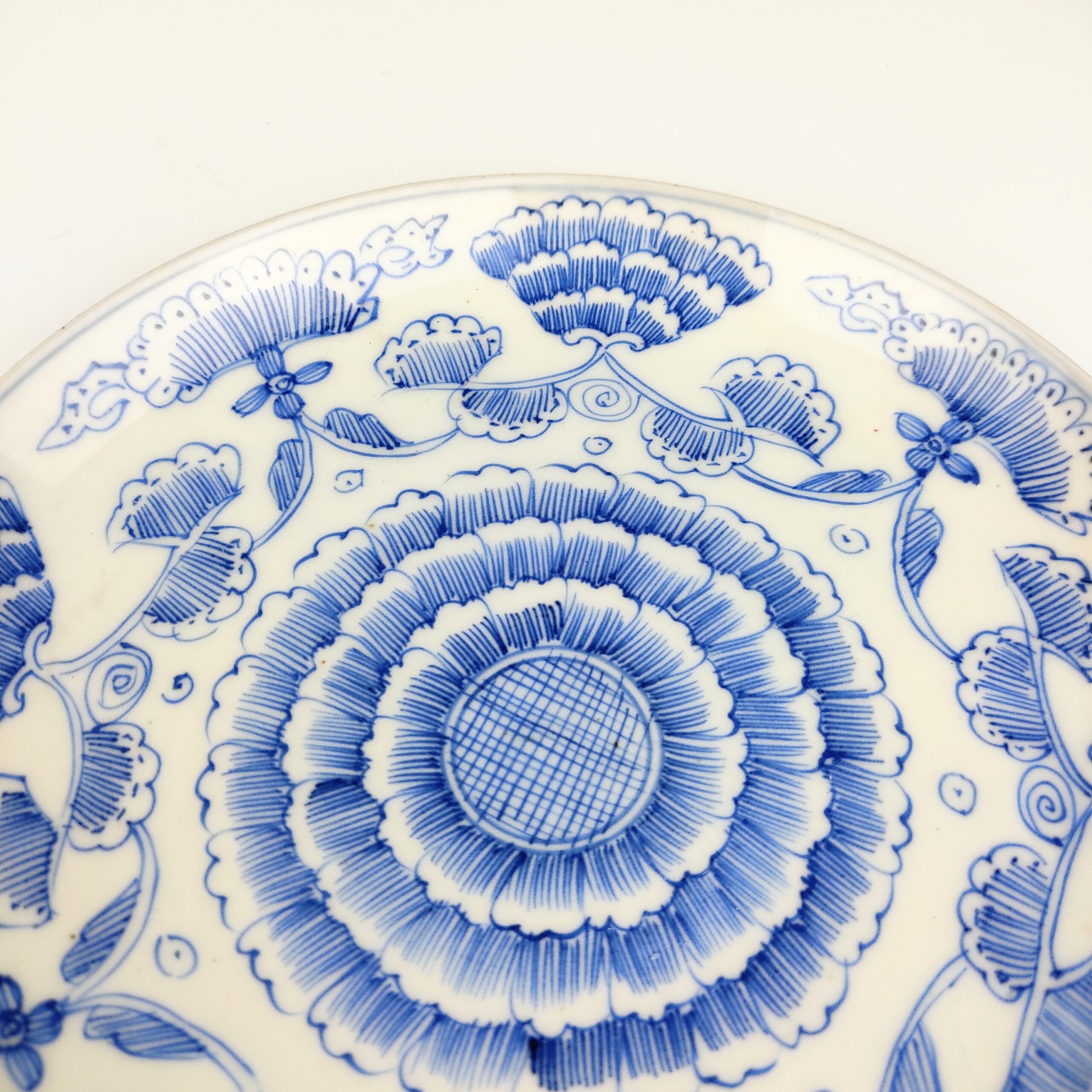 japanese antique Imari ware blue and white dish with design of line drawing