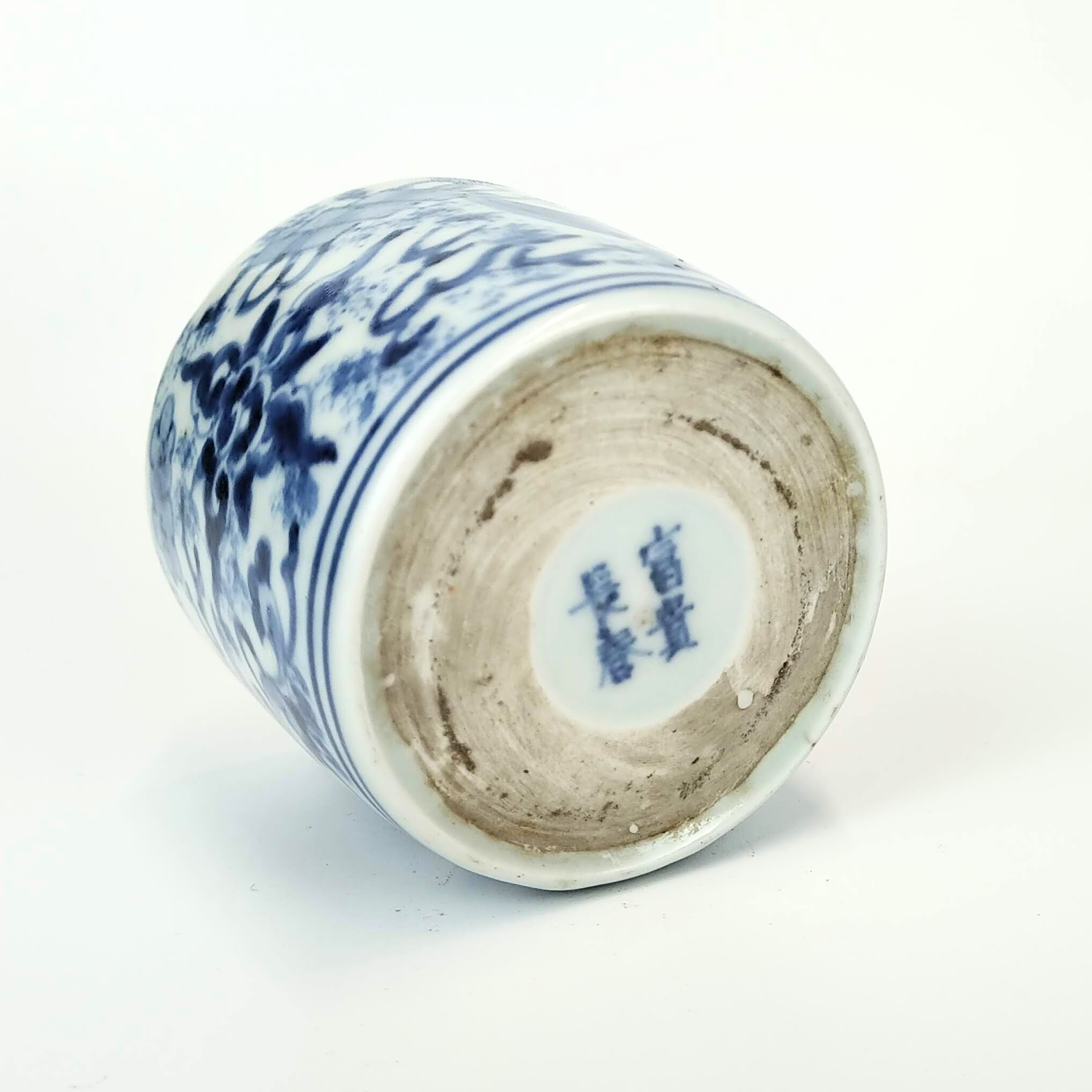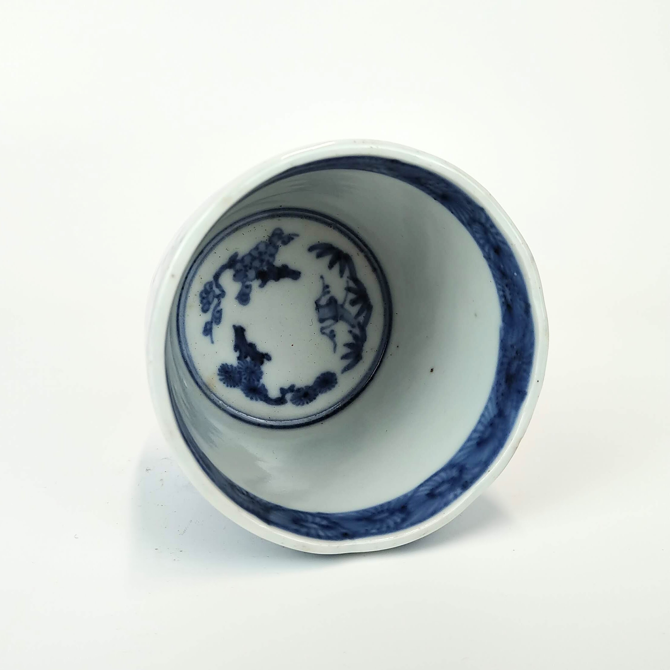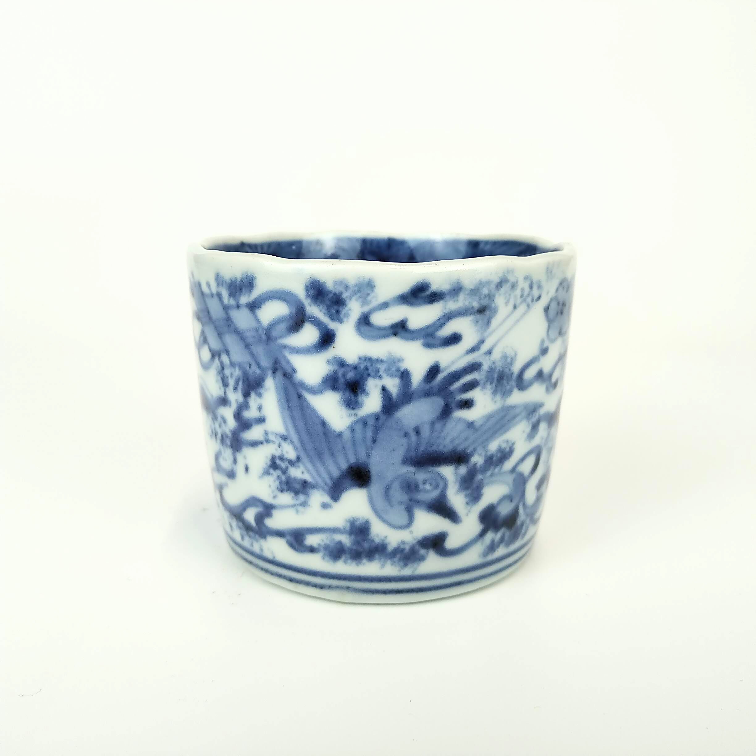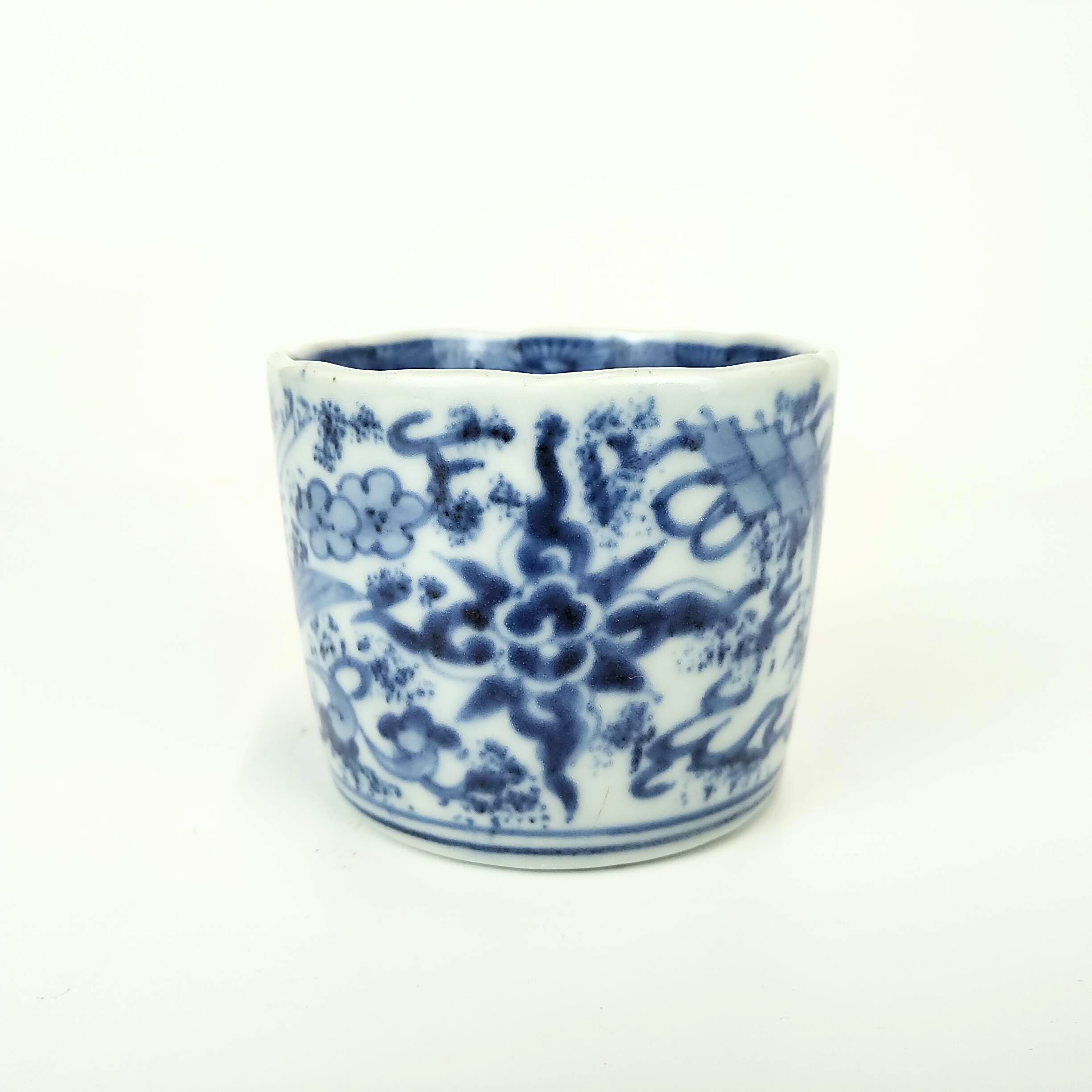japanese antique Imari blue and white small cup with design of sage in bamboo bush