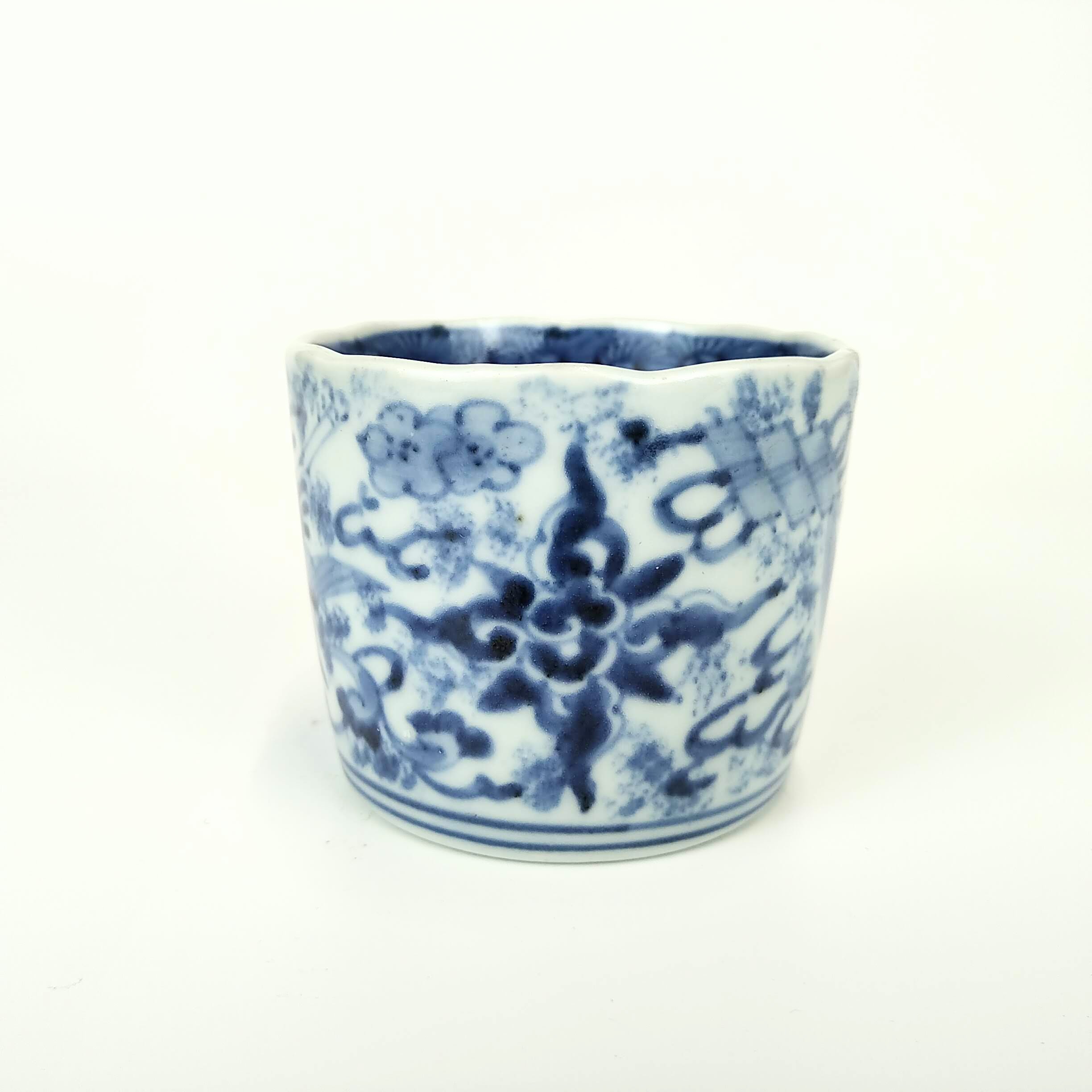 japanese antique imari ware blue and white cup with design of chrysanthemum