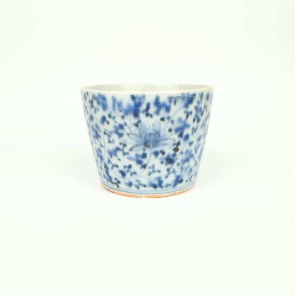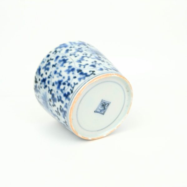 japanese antique Imari ware blue and white soba cup with design of flower arabesque