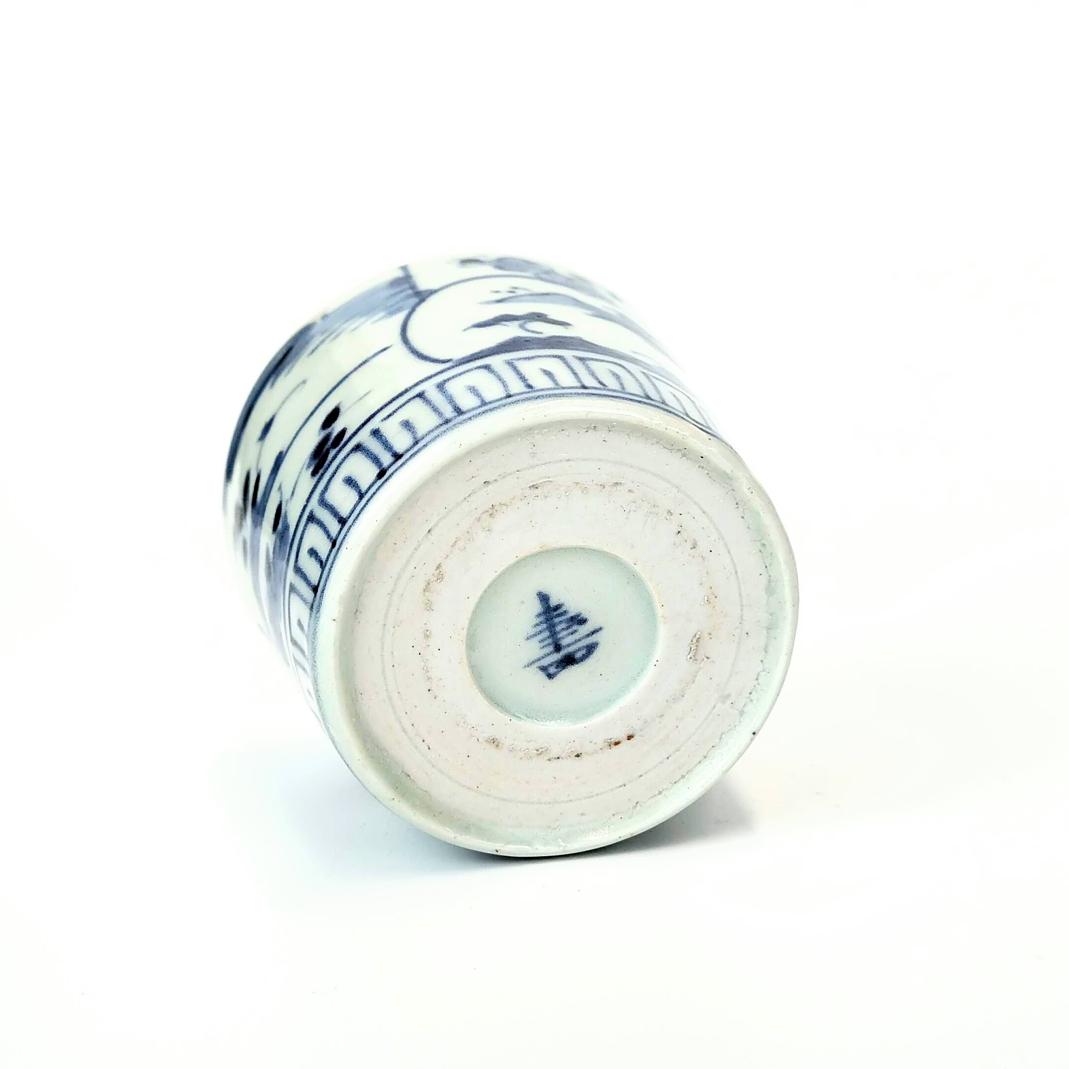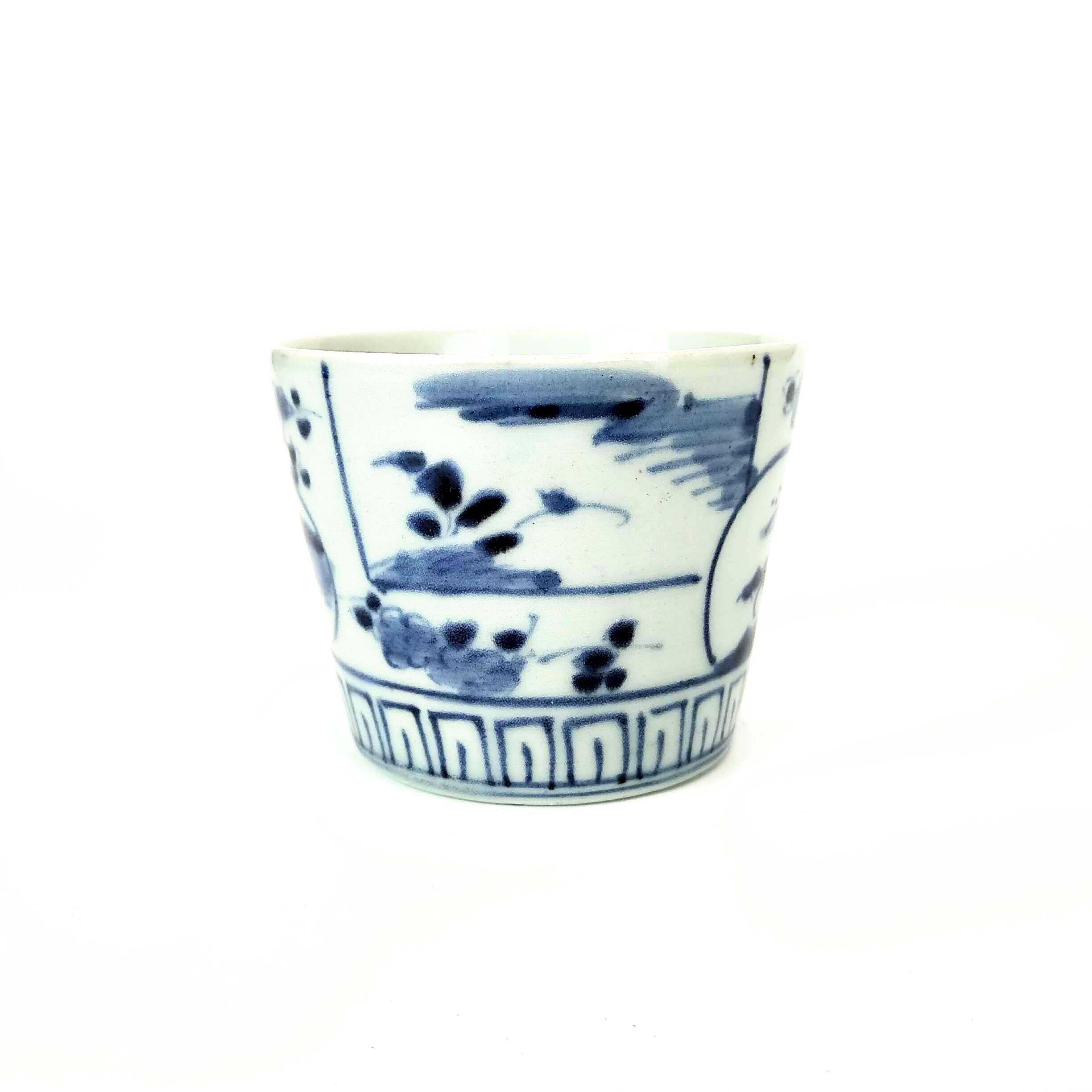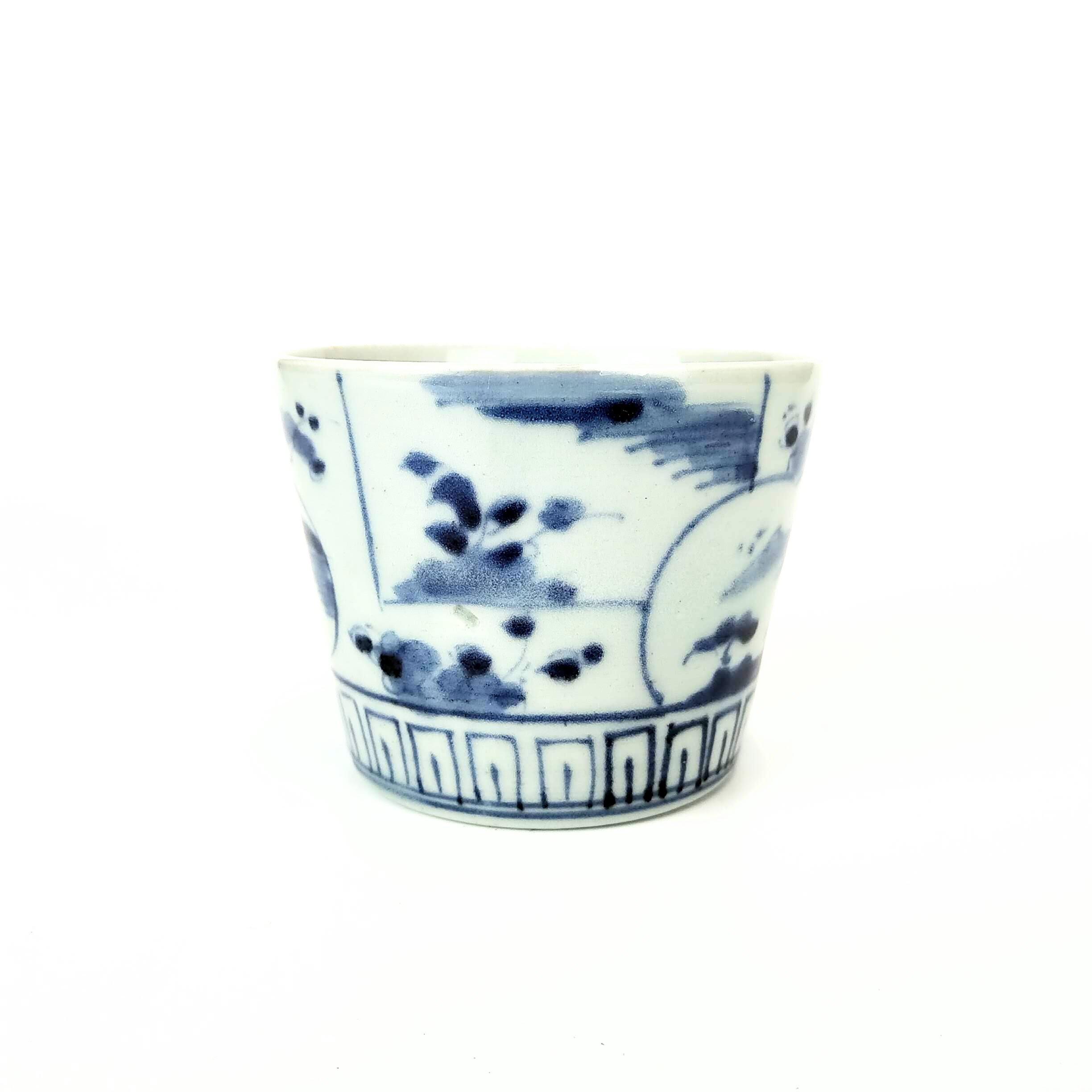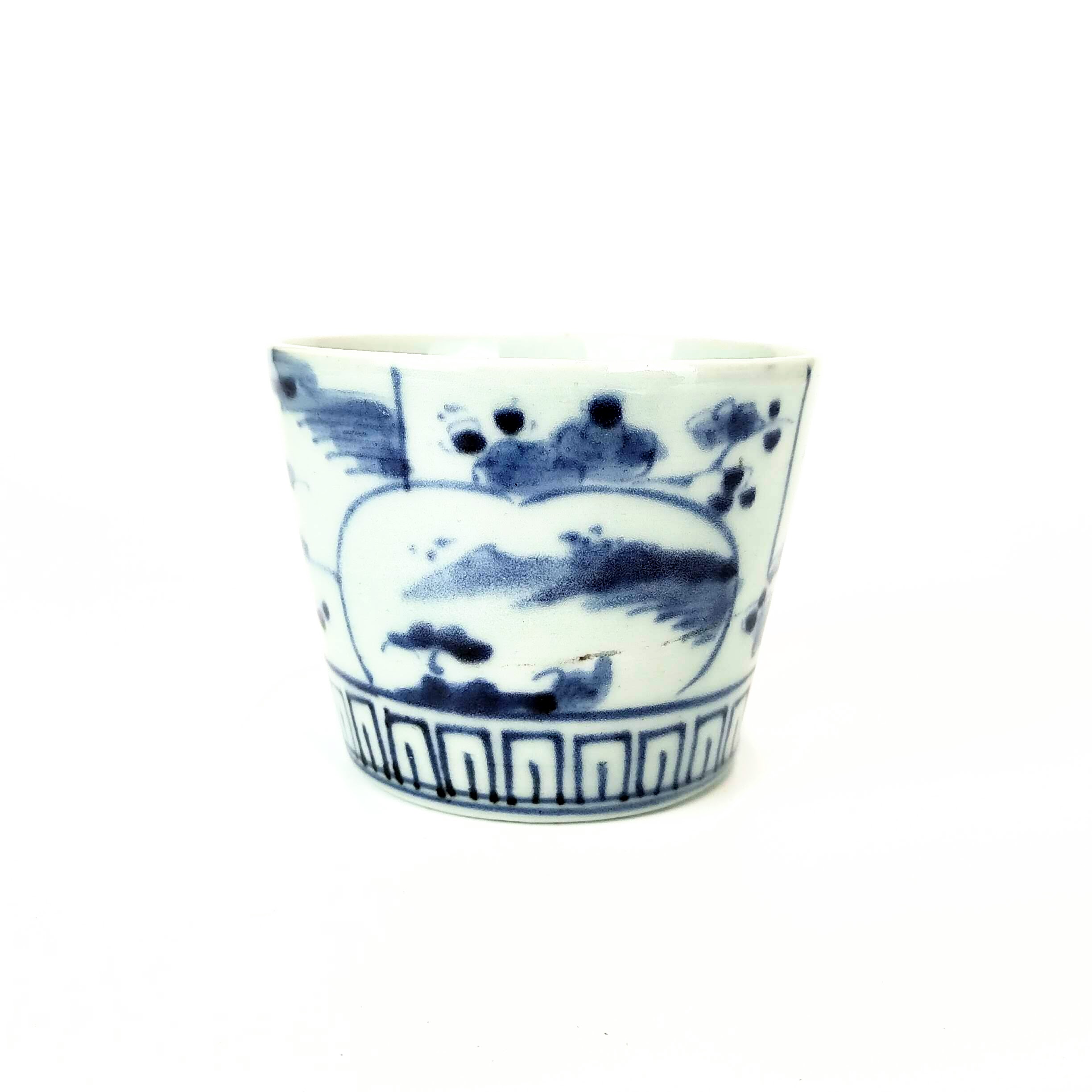 japanese antique Imari ware blue and white soba cup with design of sea and mountain
