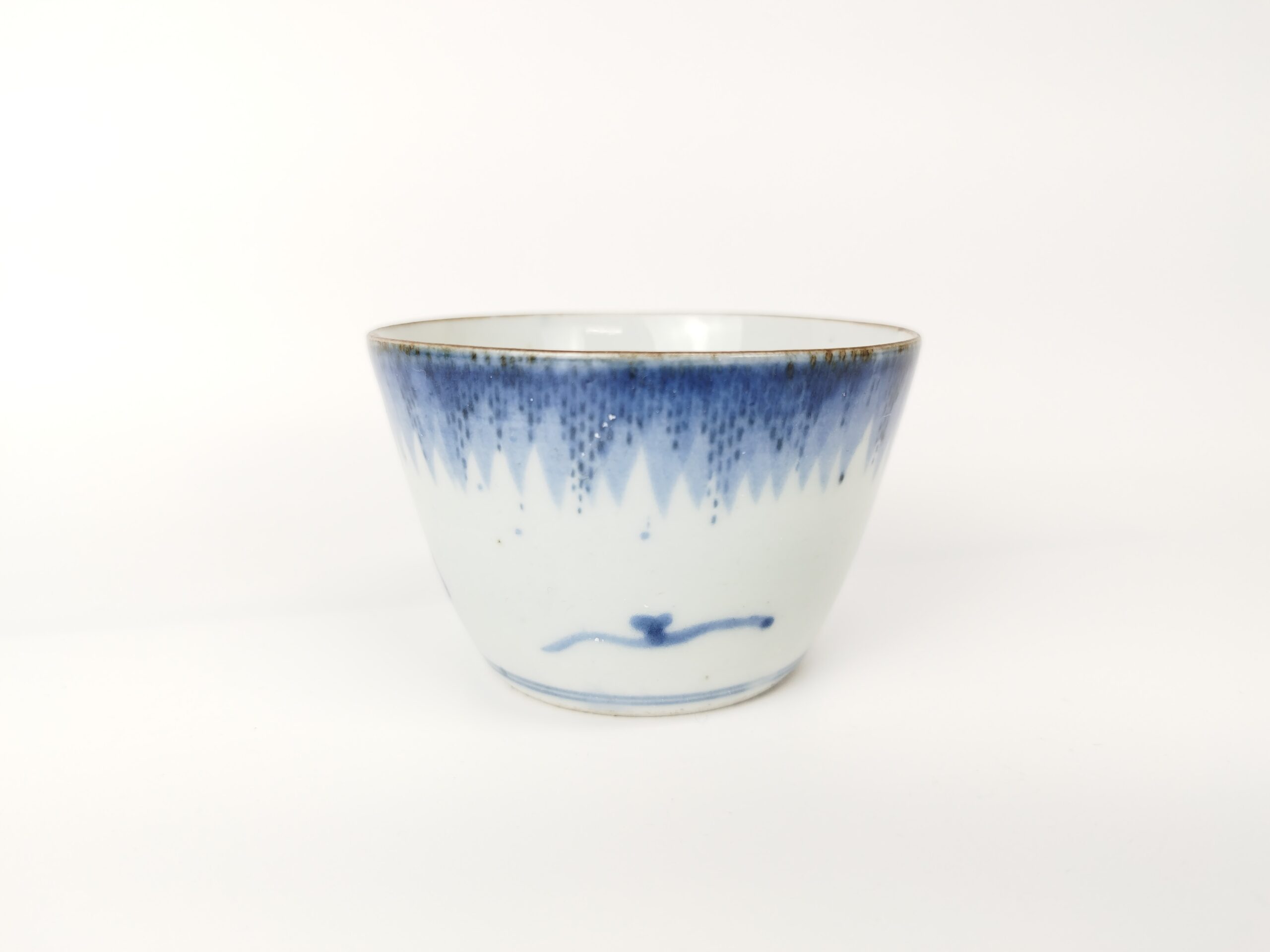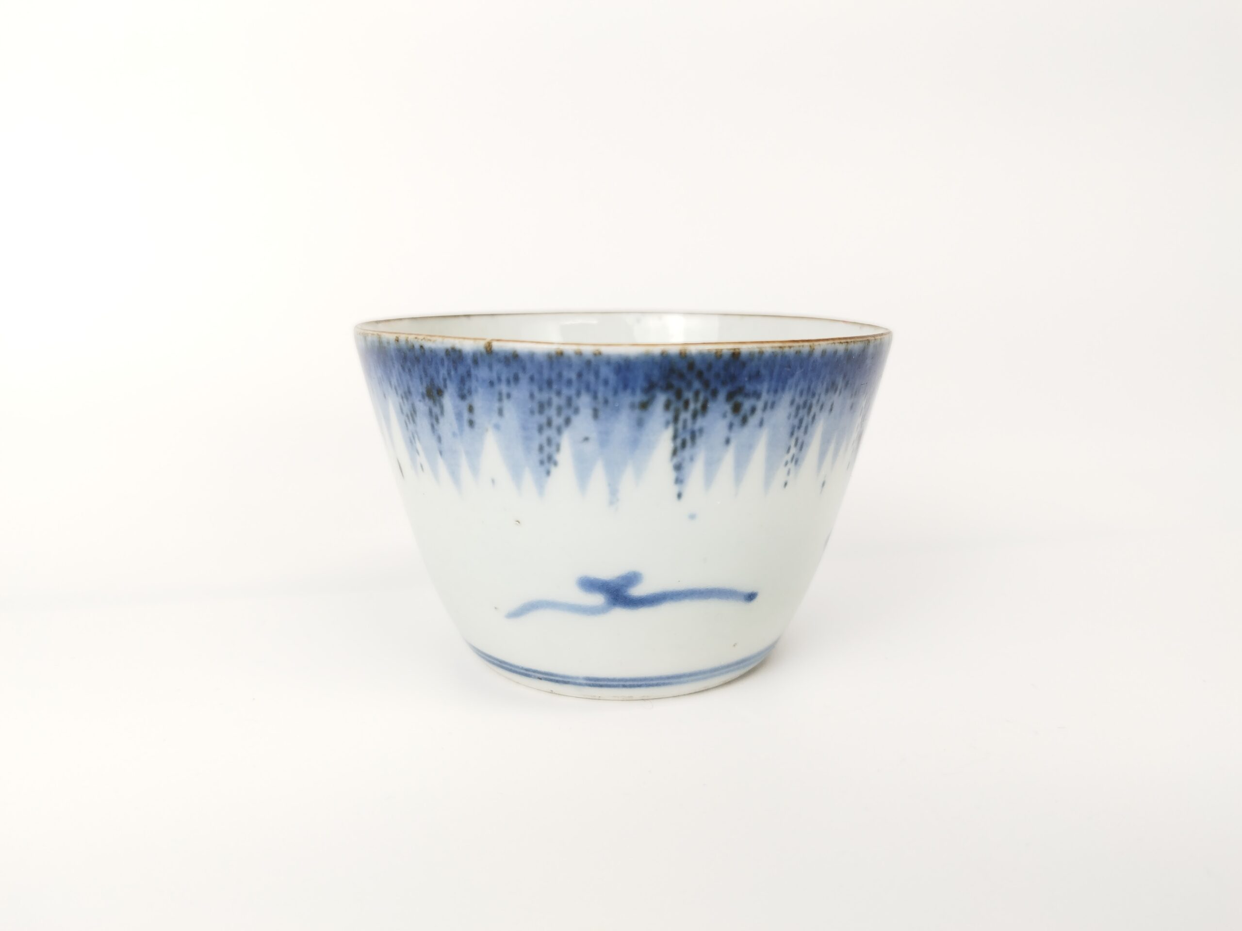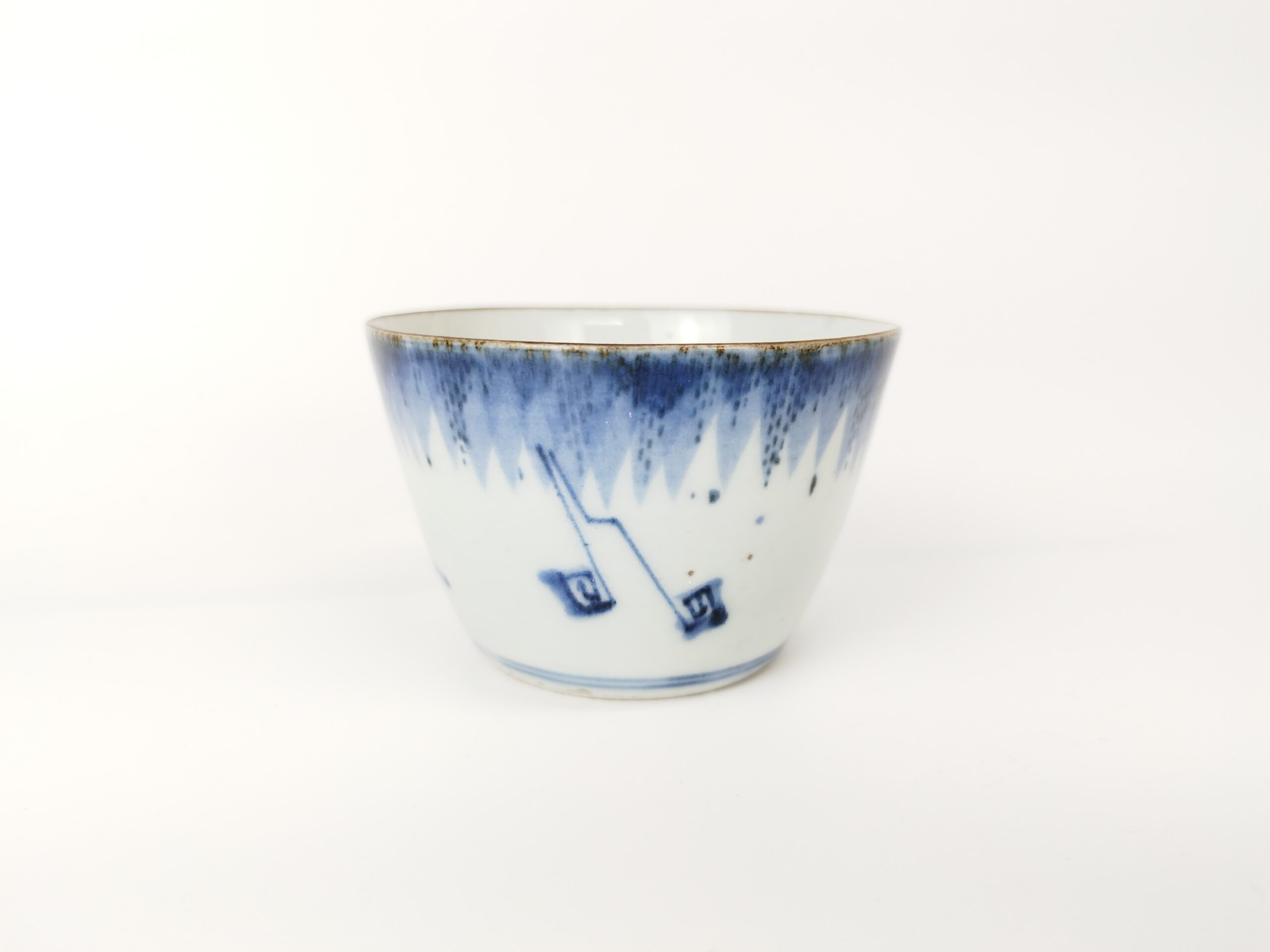 japanese antique Imari ware blue and white soba cup with design of thundery rain