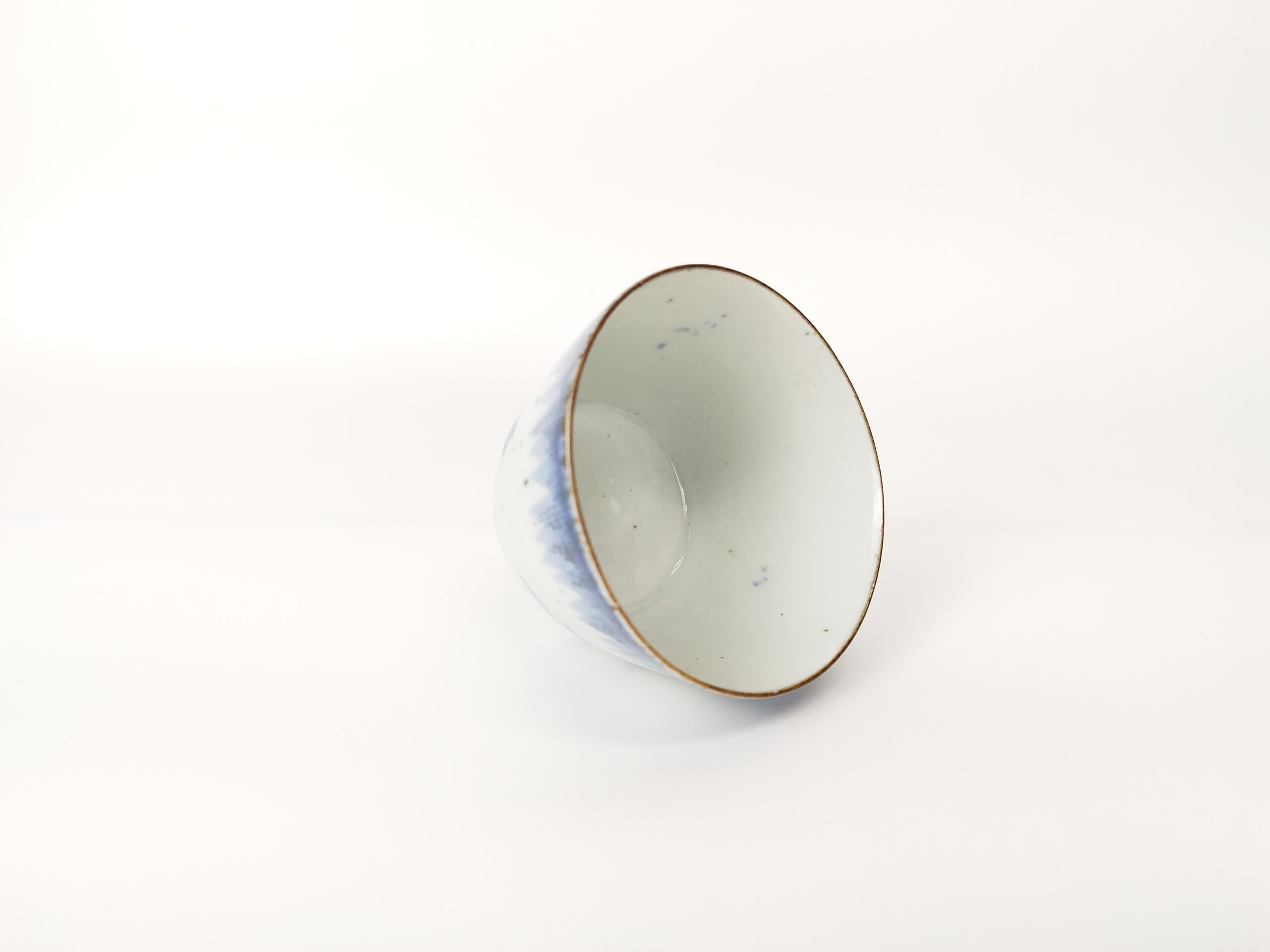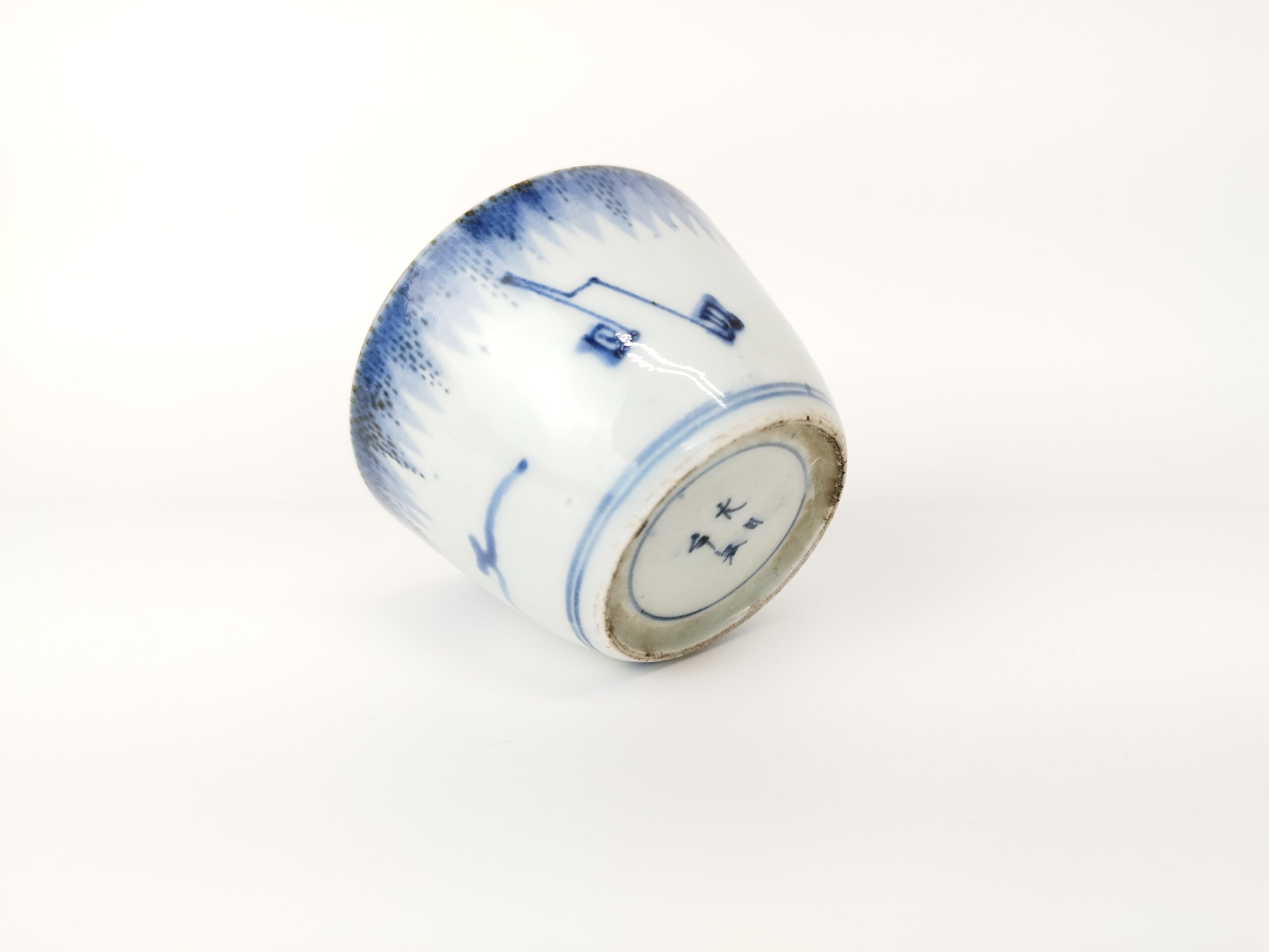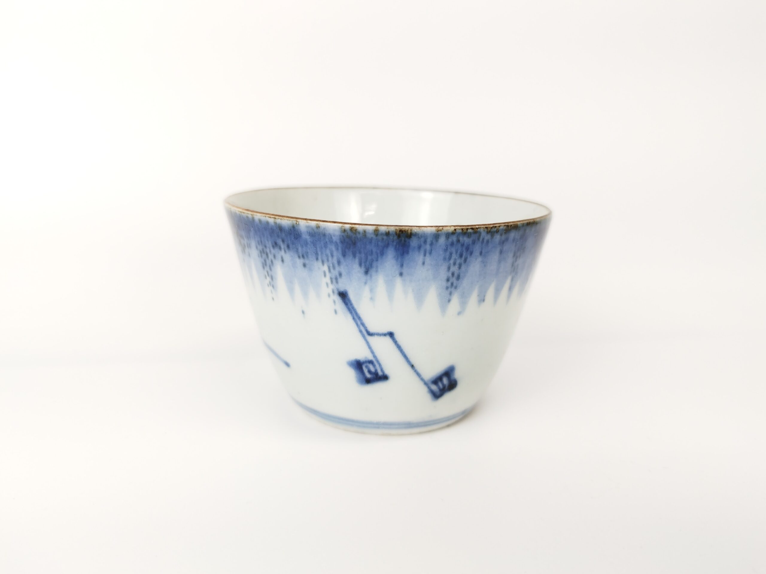 japanese antique Imari ware blue and white soba cup with design of thundery rain