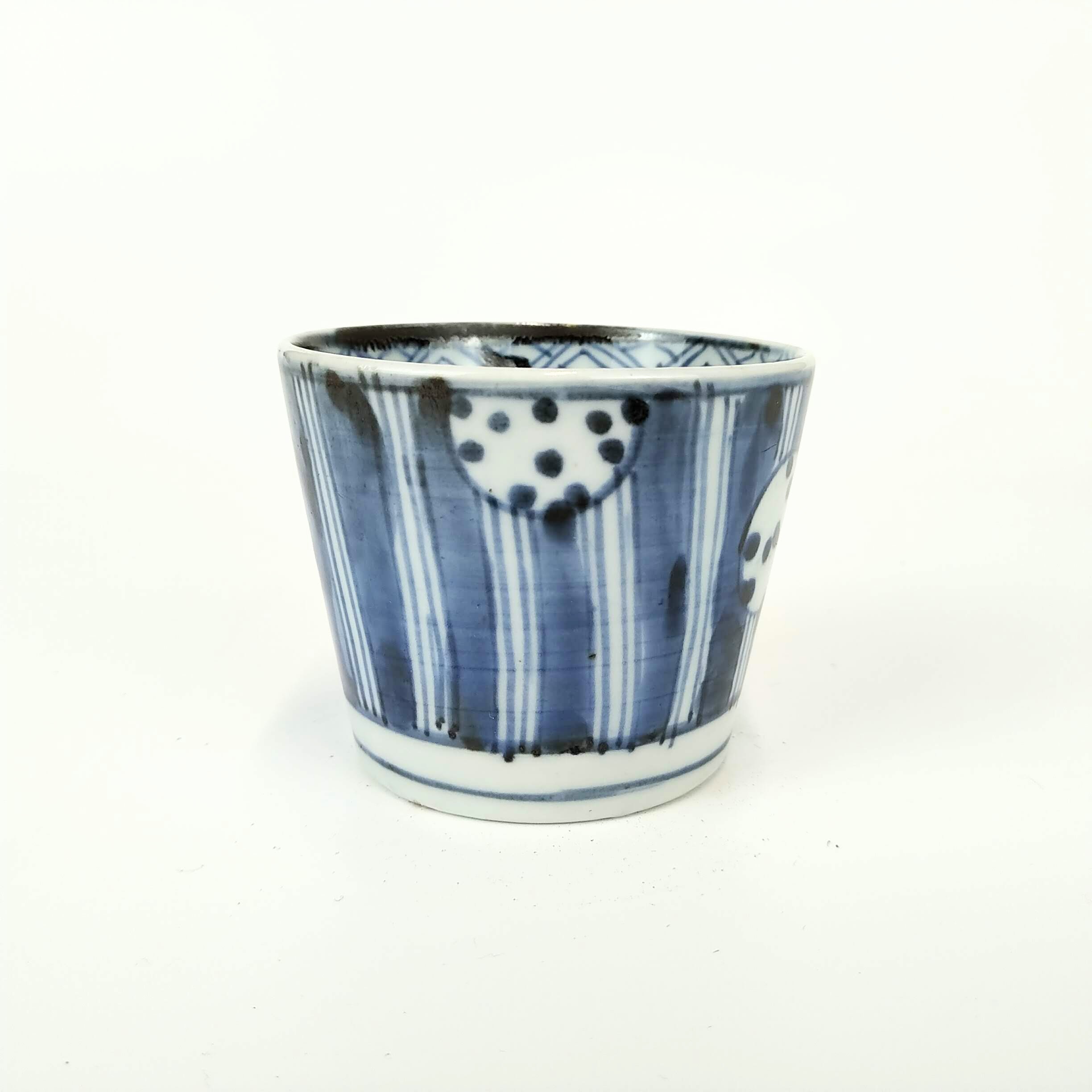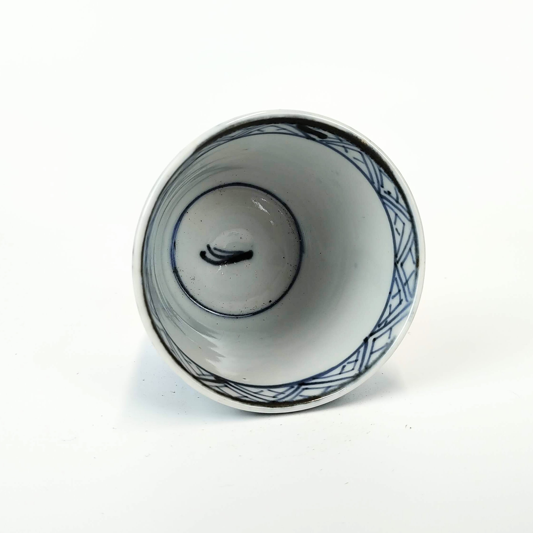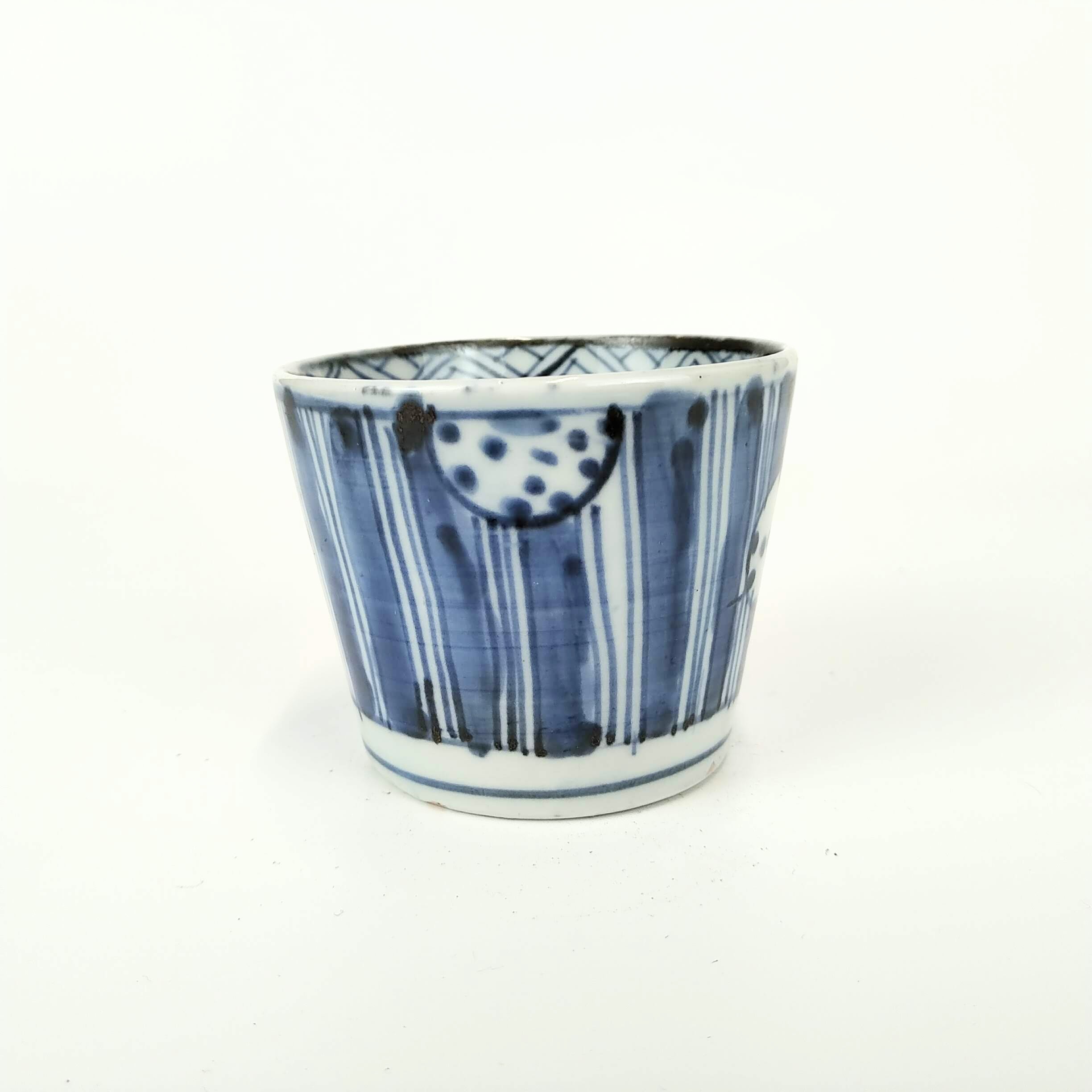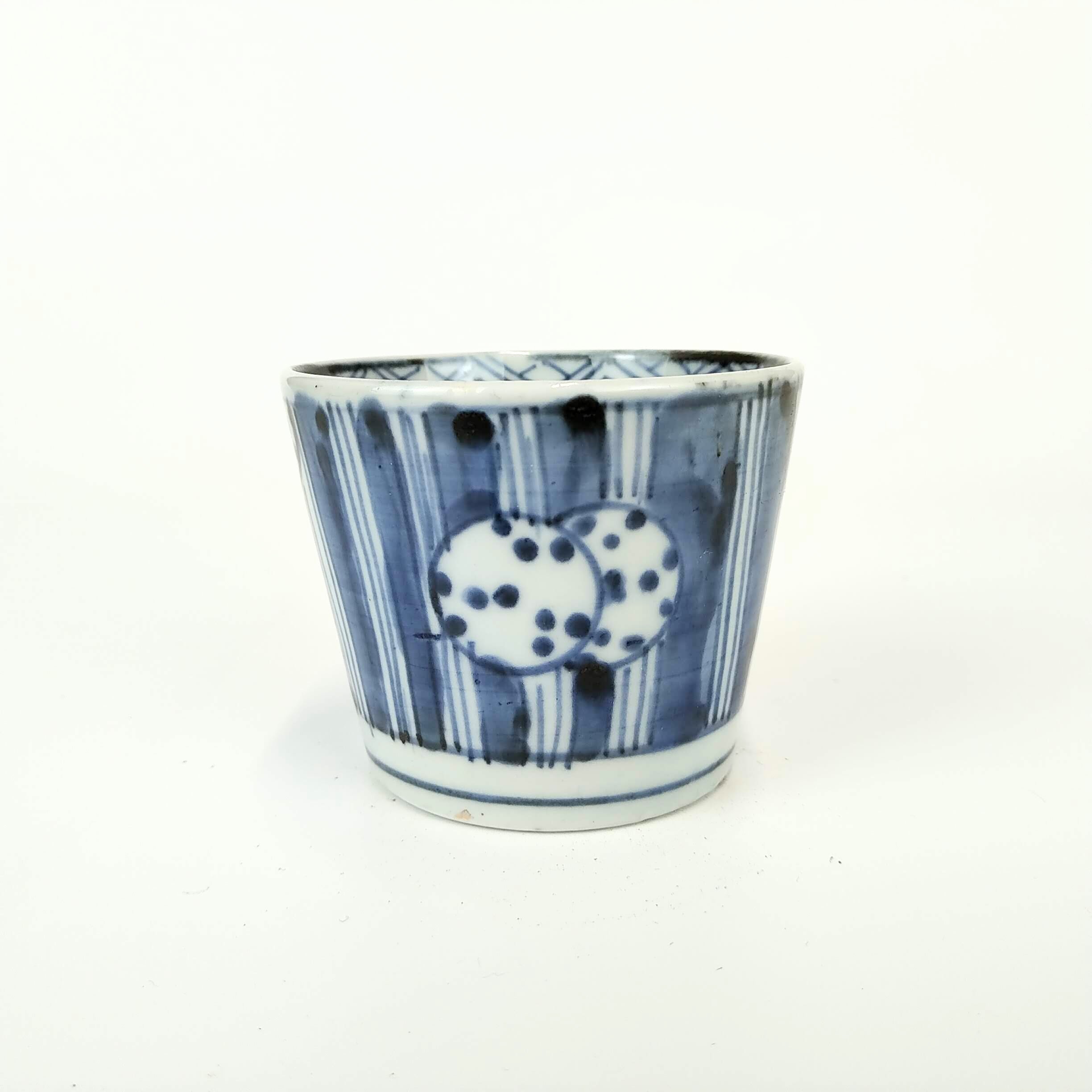 japanese antique Imari ware blue and white small cup with design of young pine