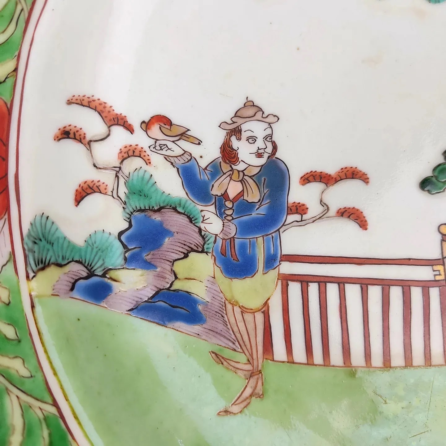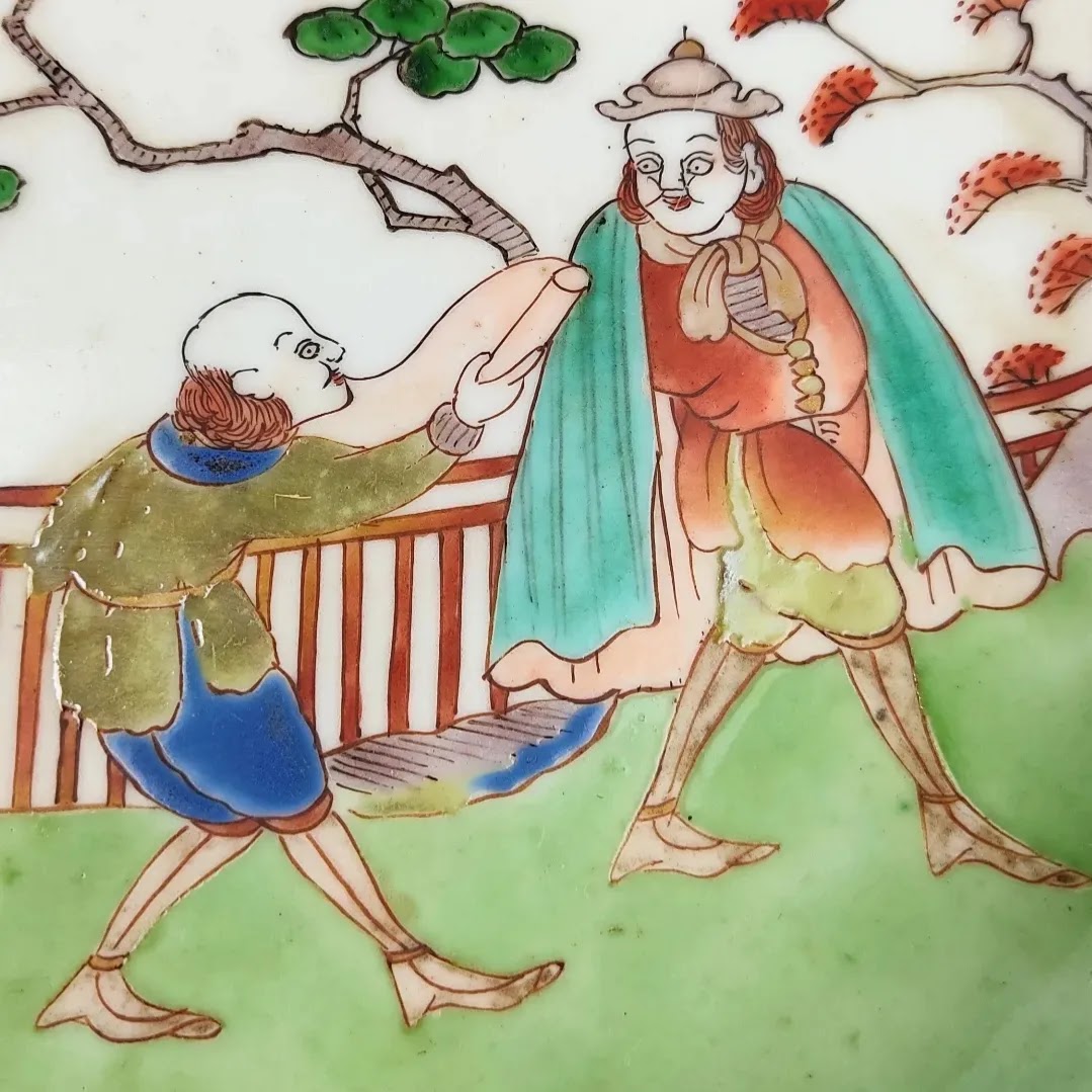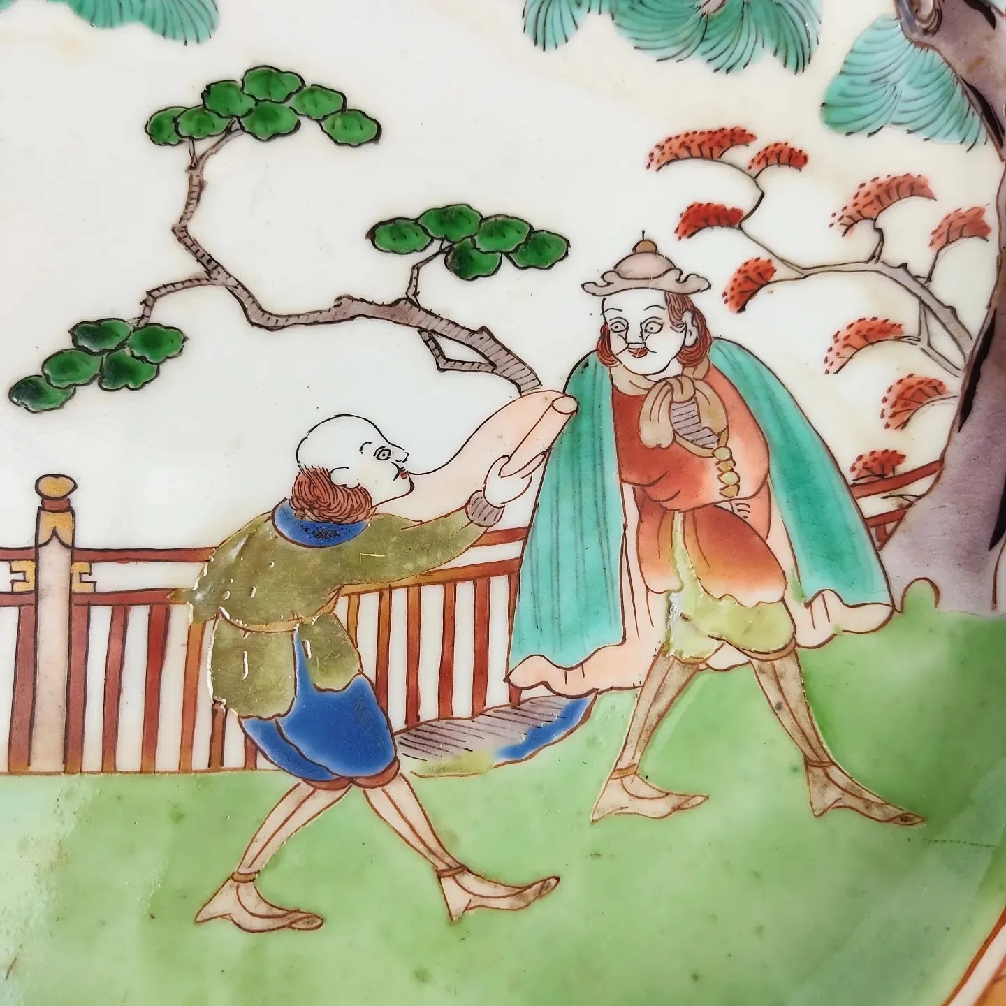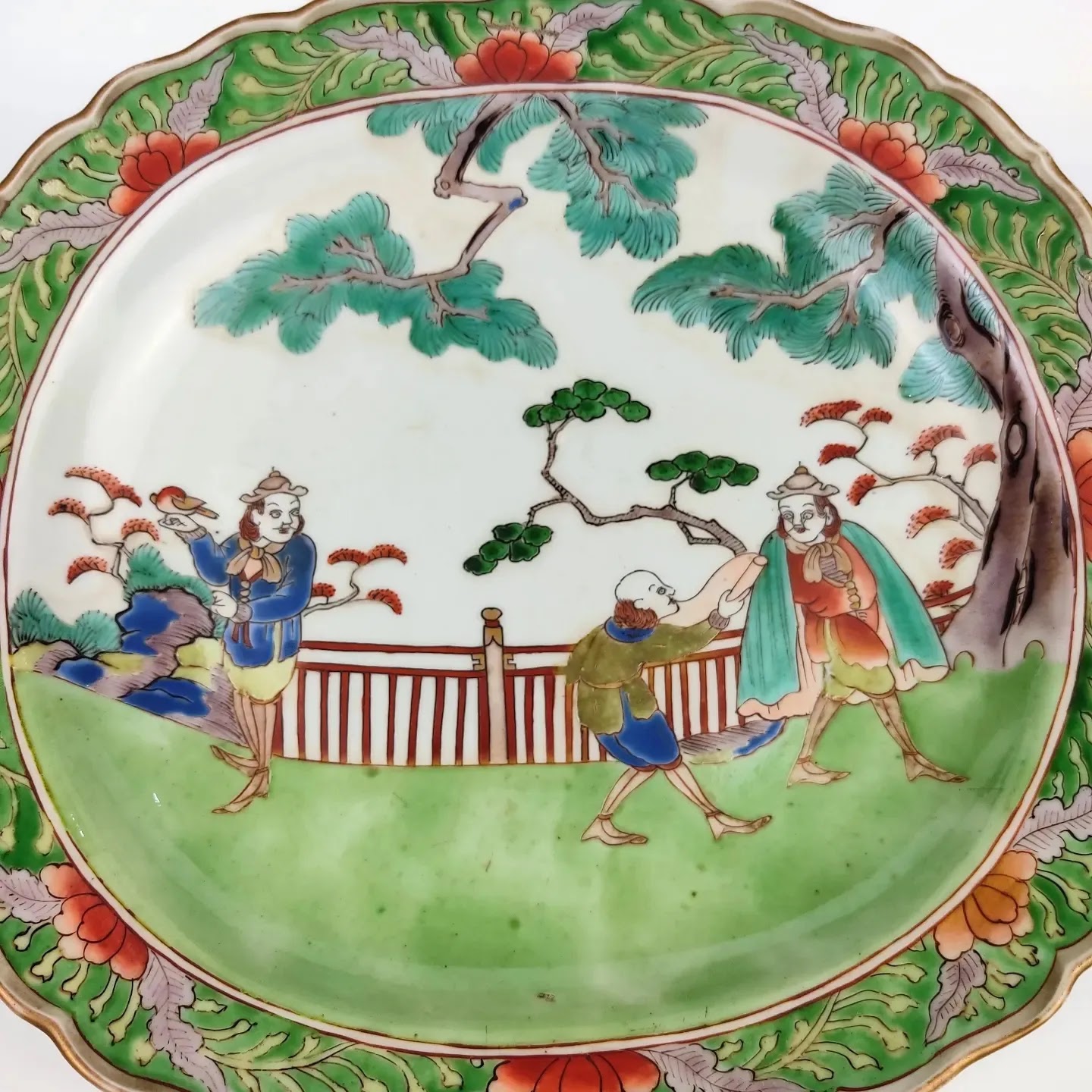 japanese antique Imari ware colored big dish with design of westerner