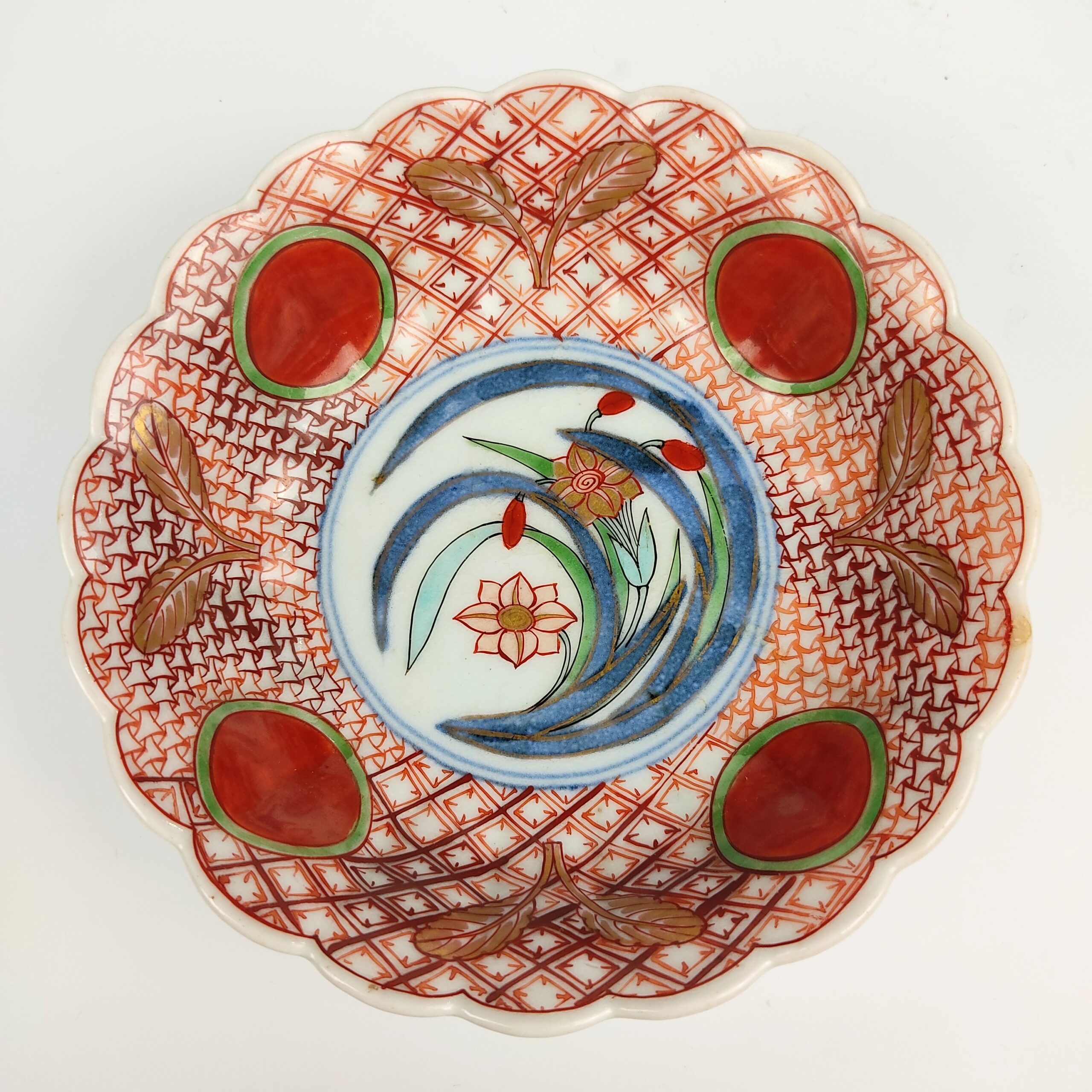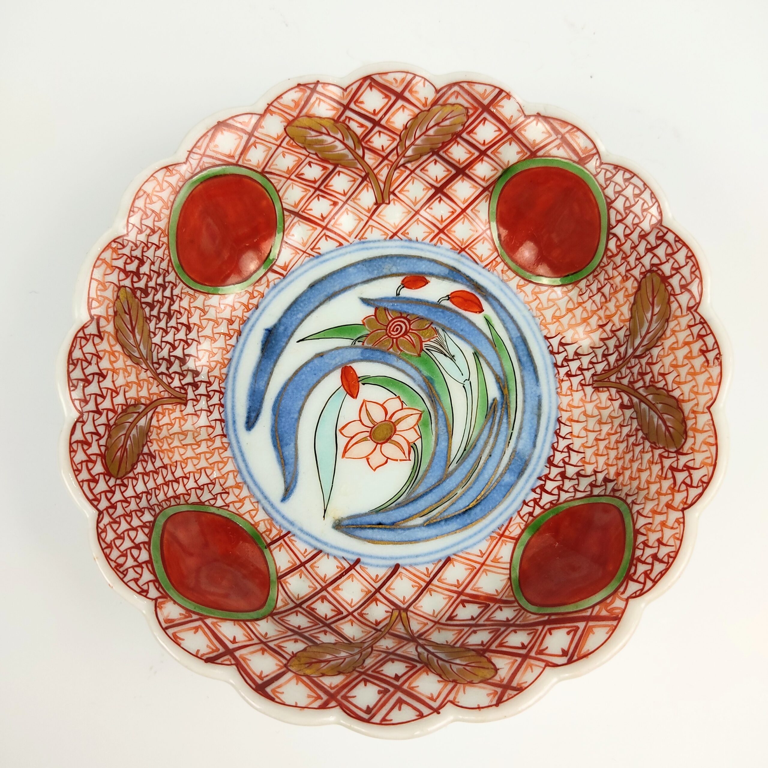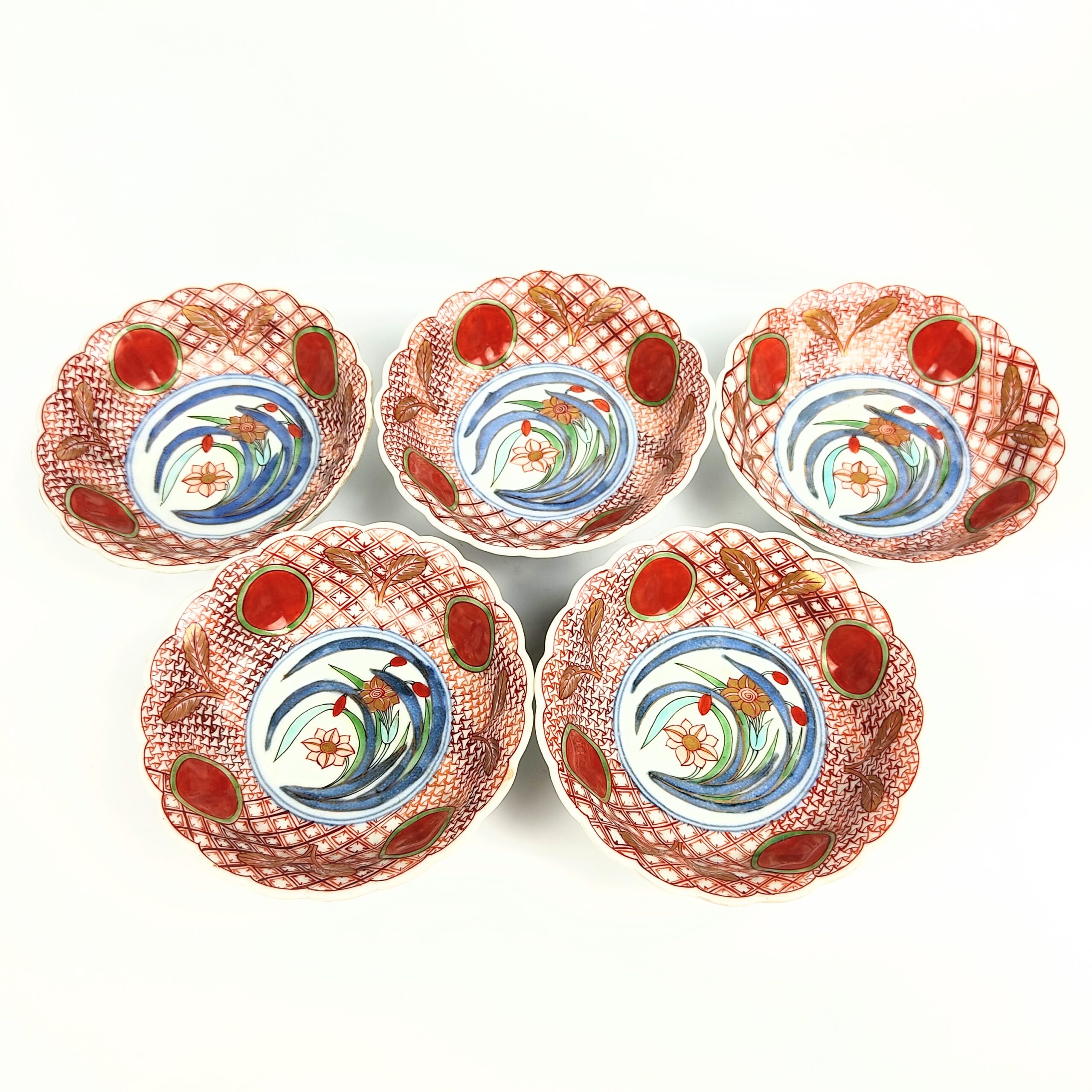 Imari ware colored bowl with design of red jewel and narcissus,set of 5