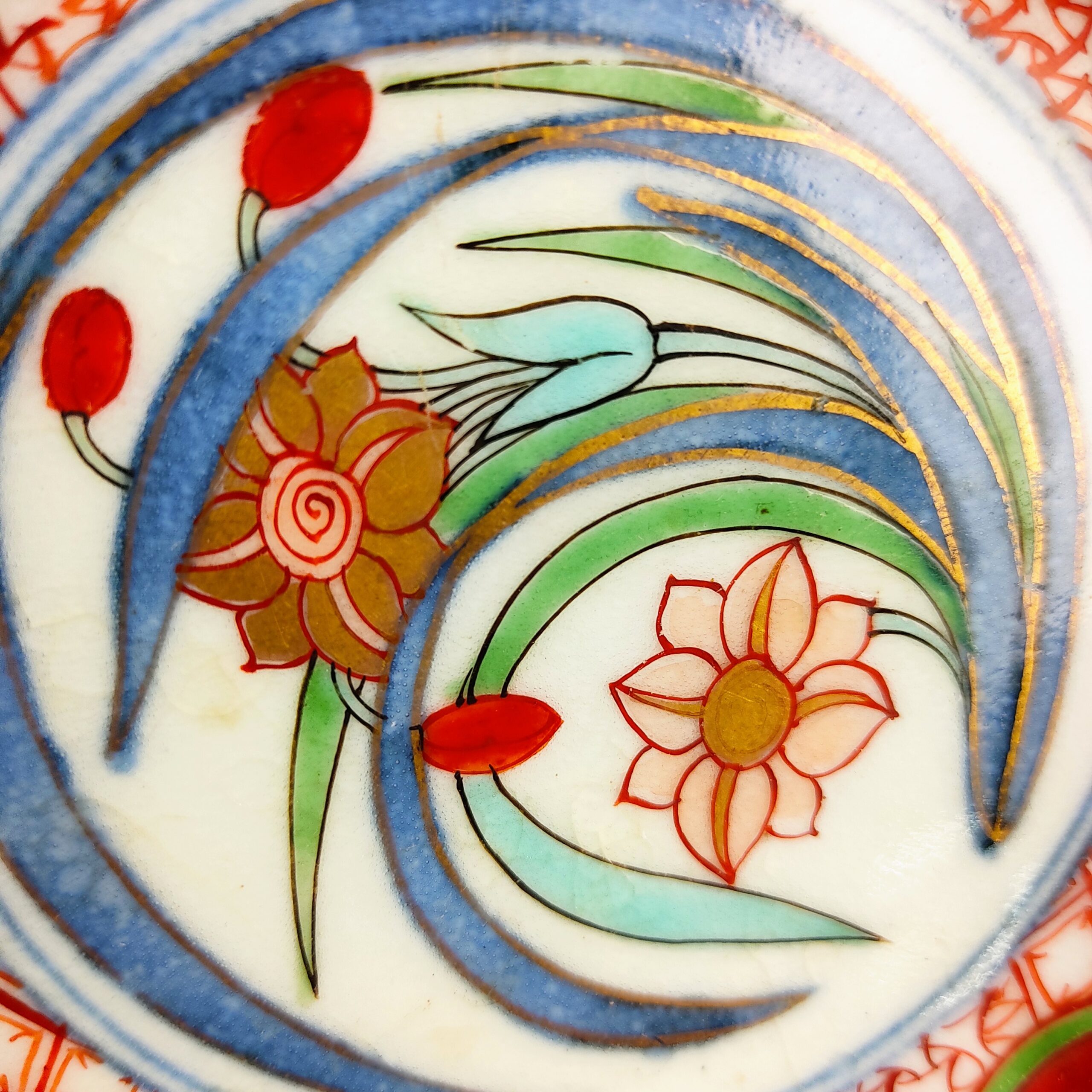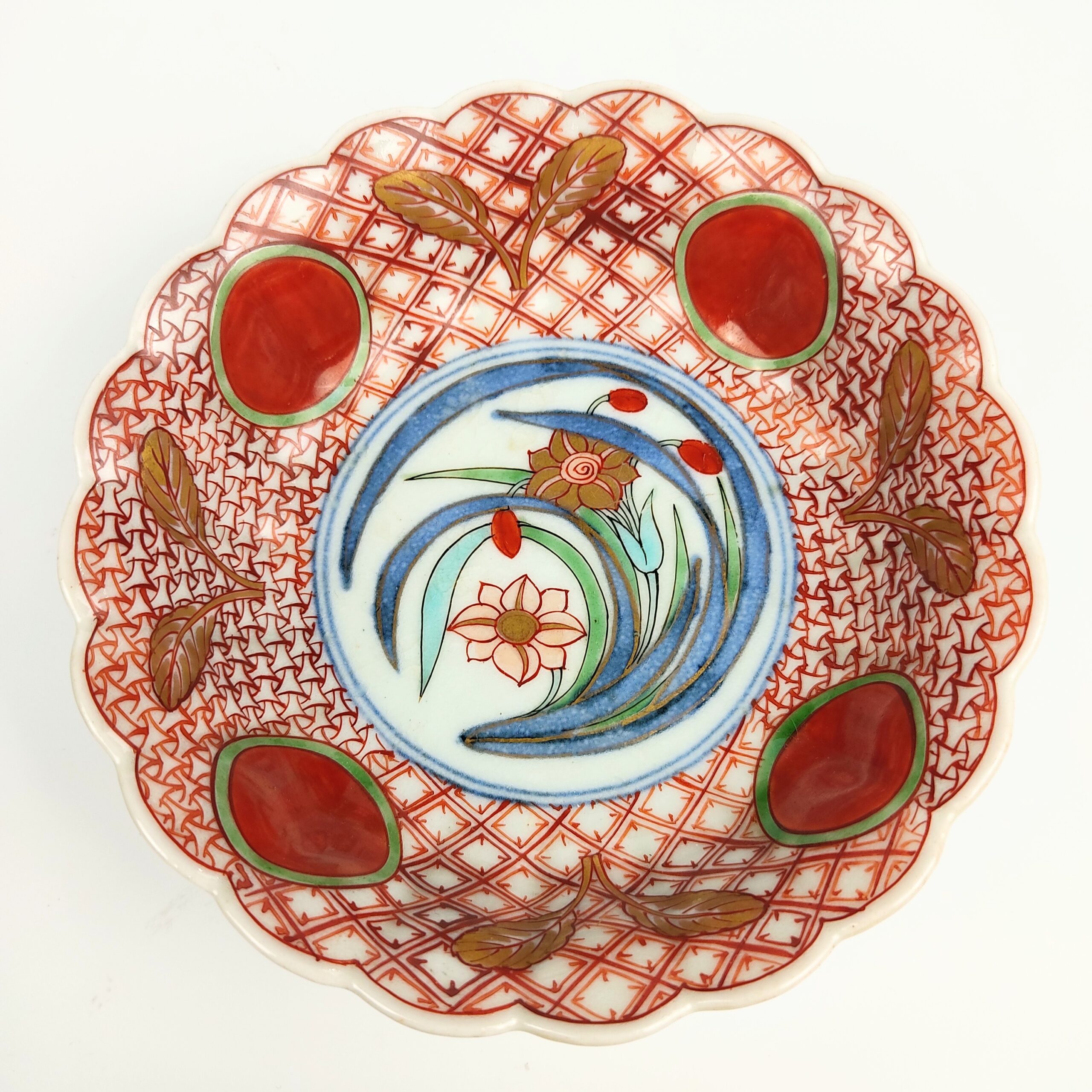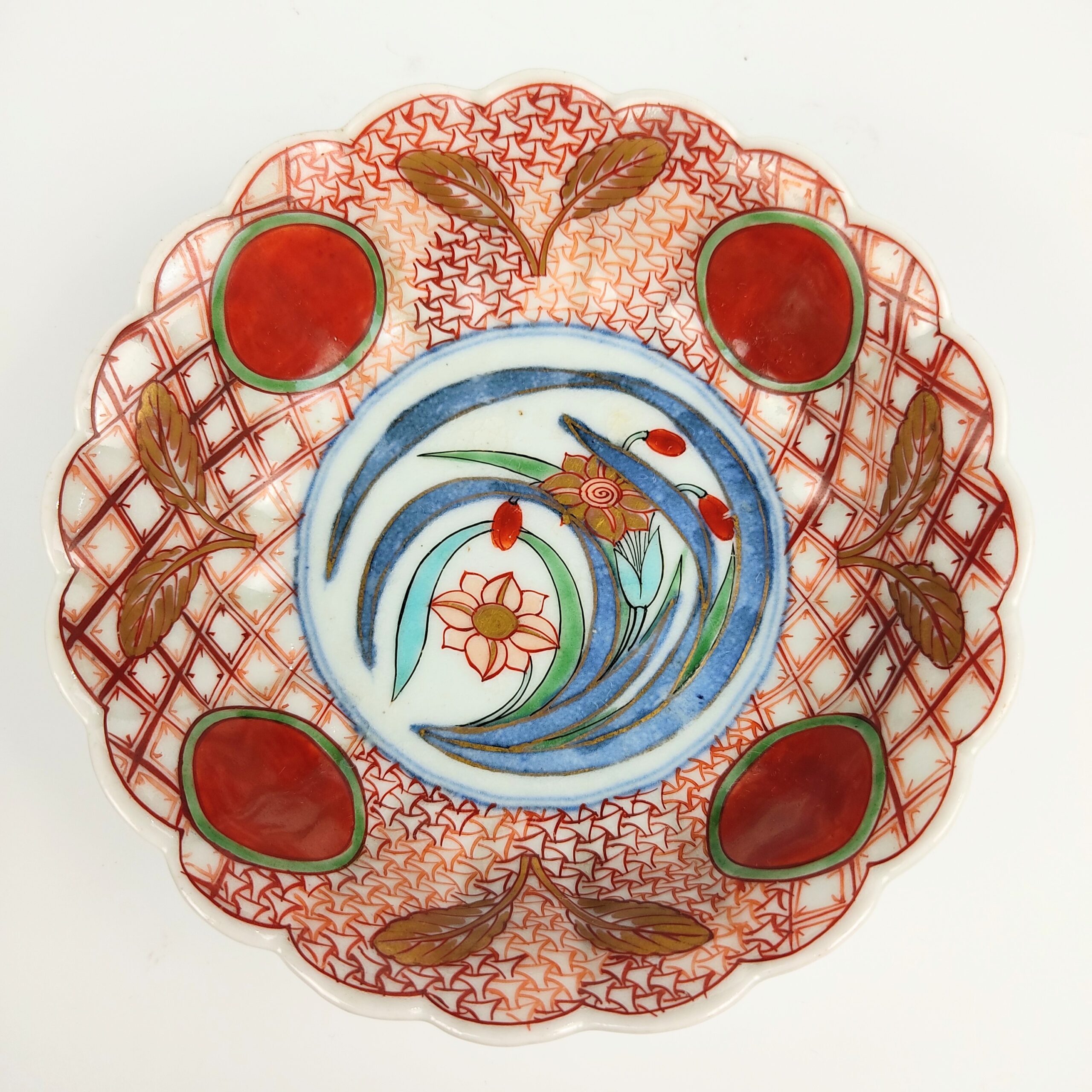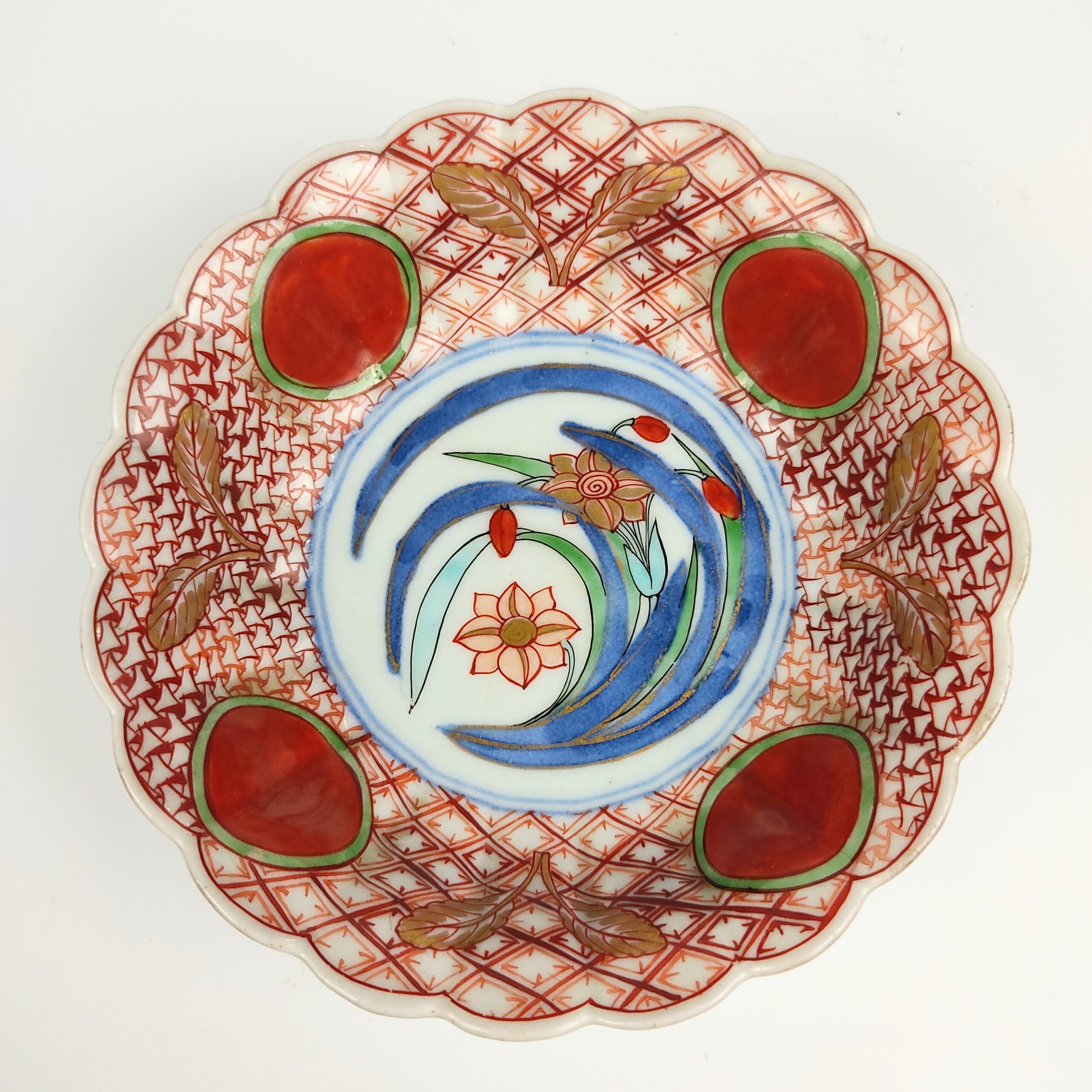Imari ware colored bowl with design of red jewel and narcissus,set of 5