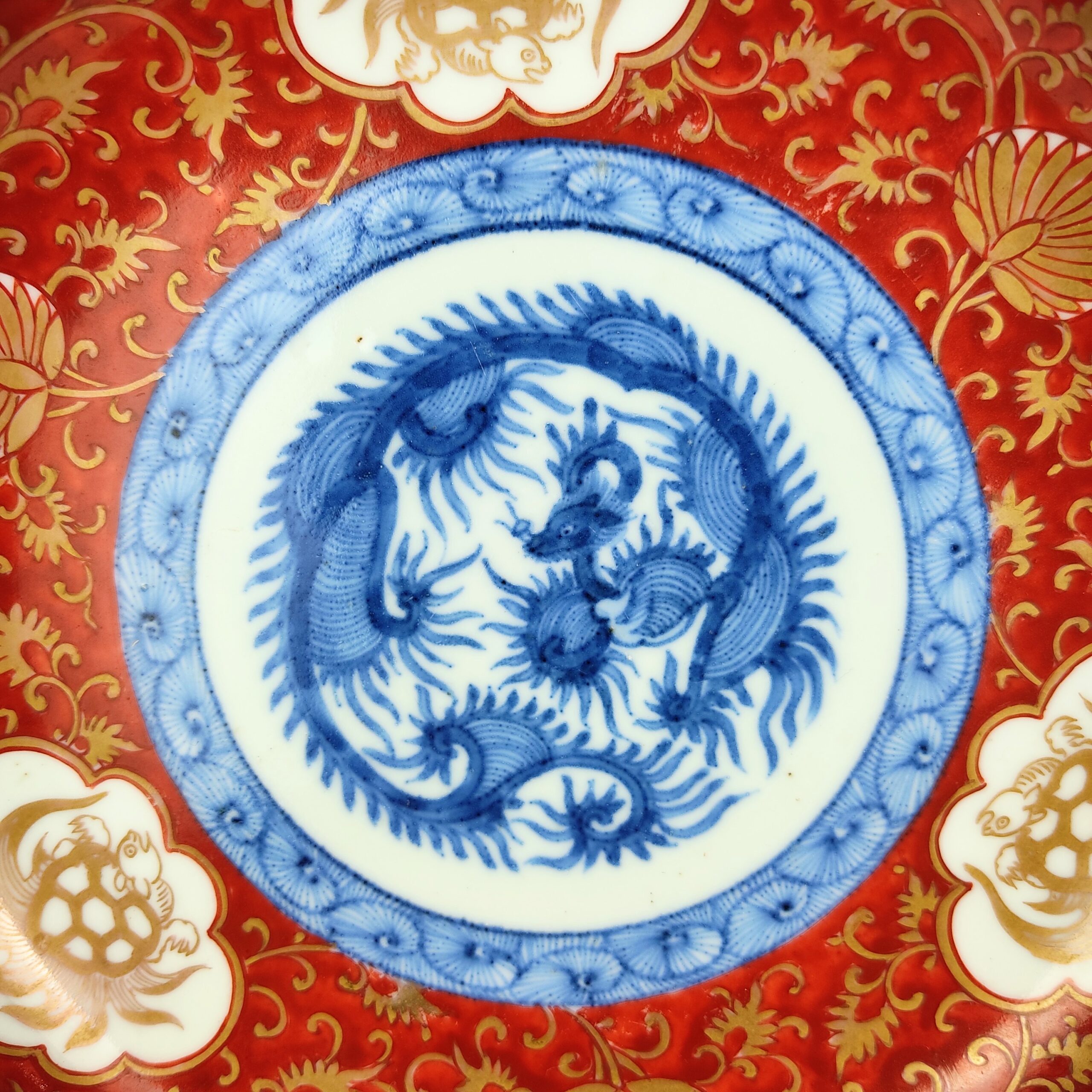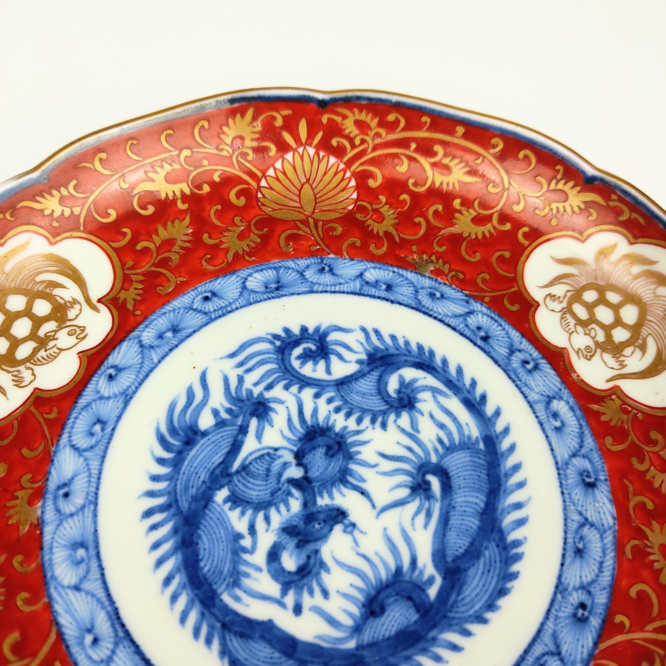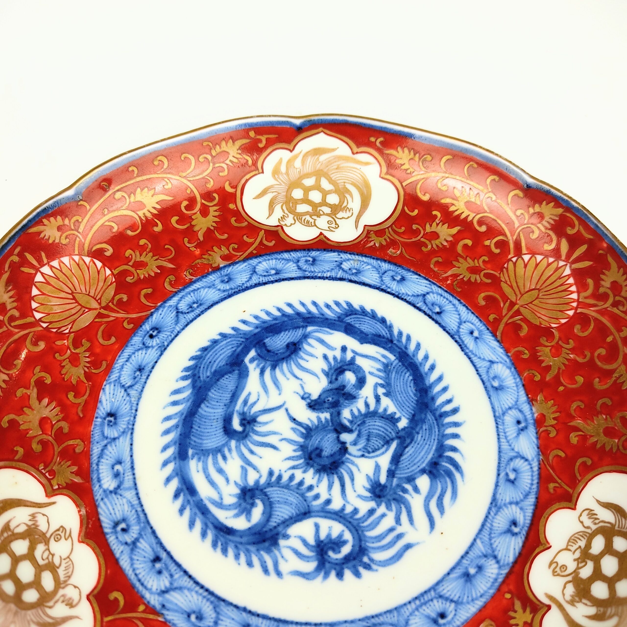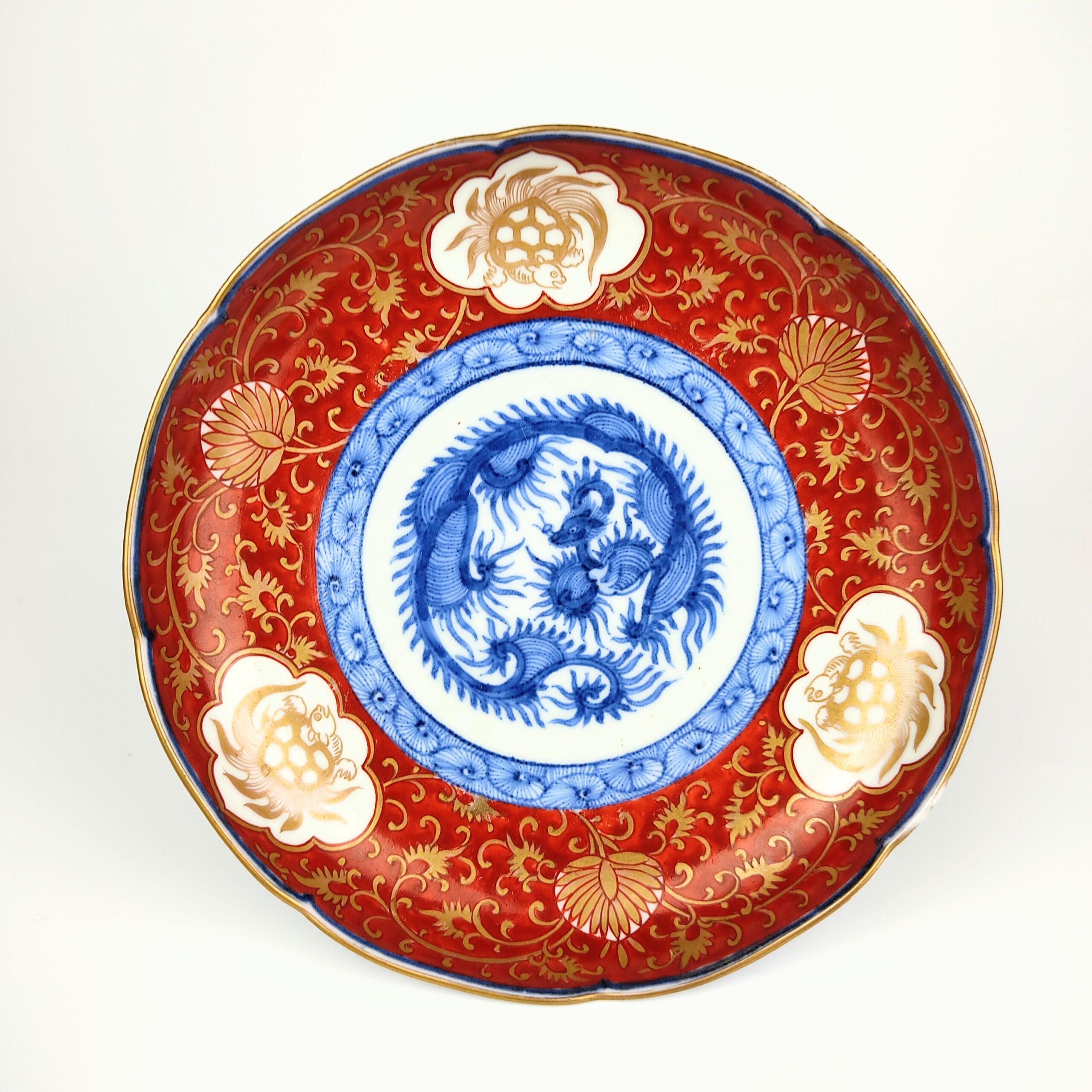 japanese antique Imari ware colored tiny dish with design of butterfly and peony